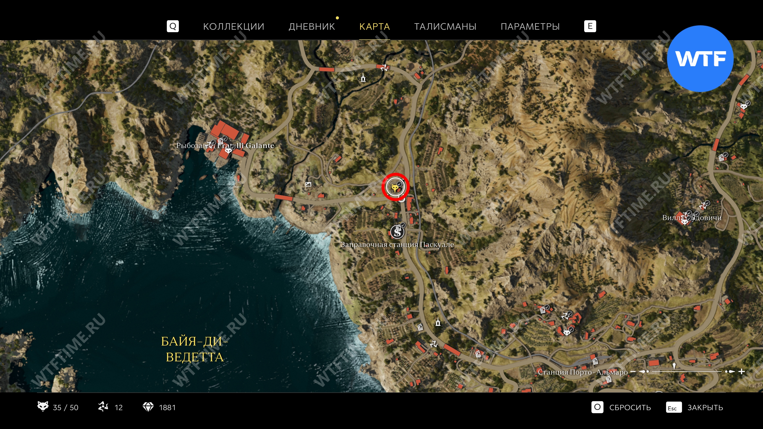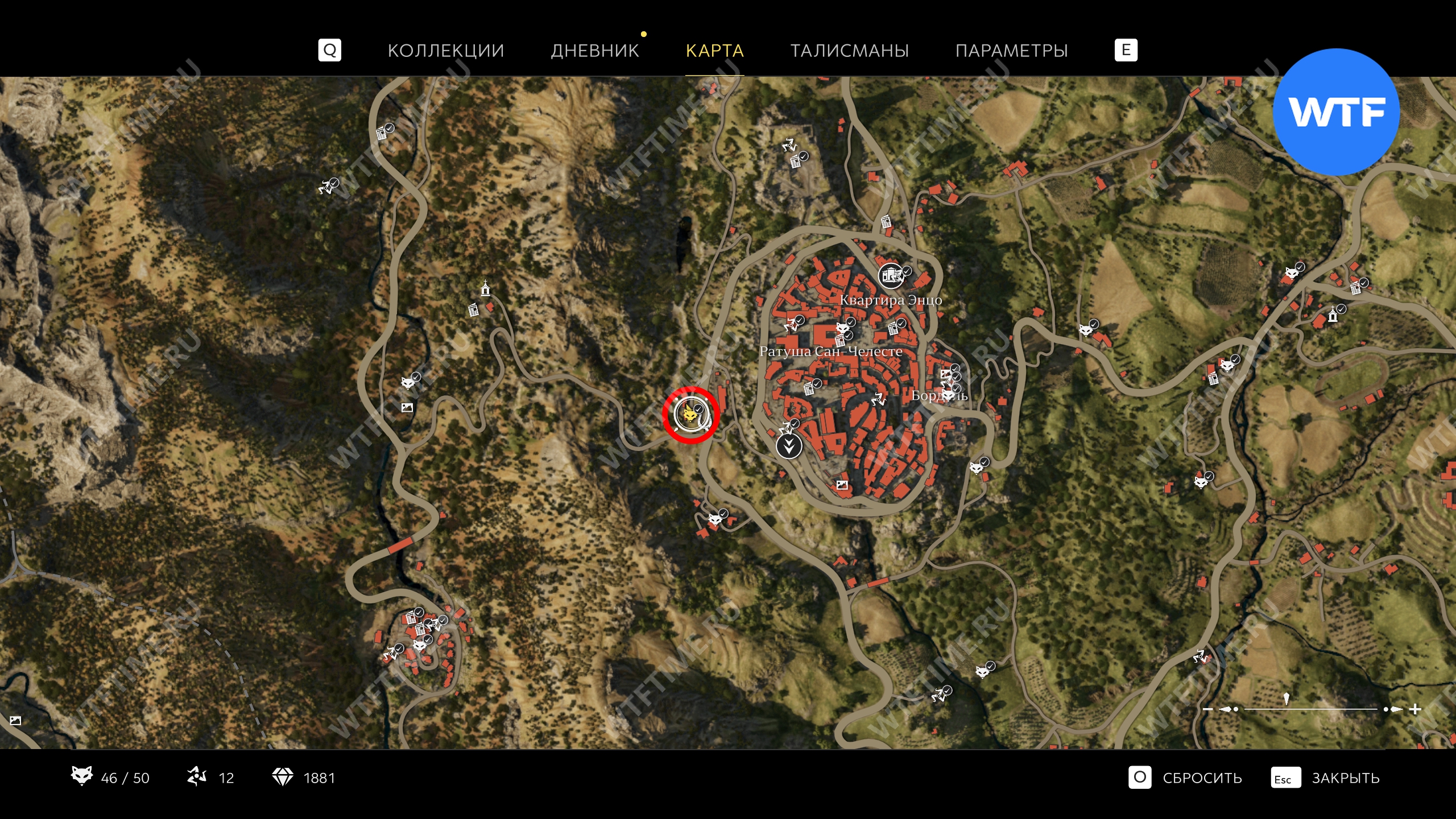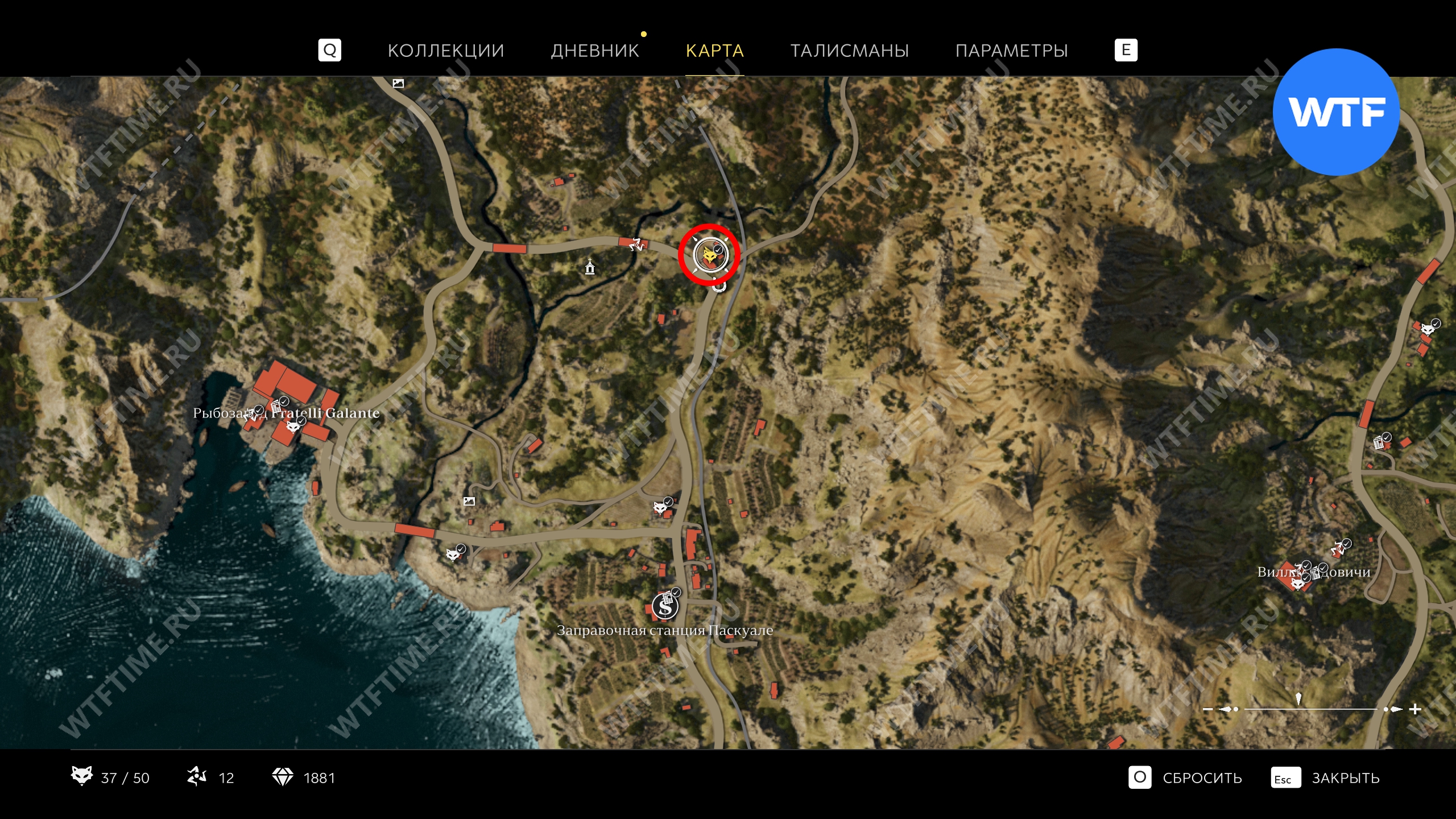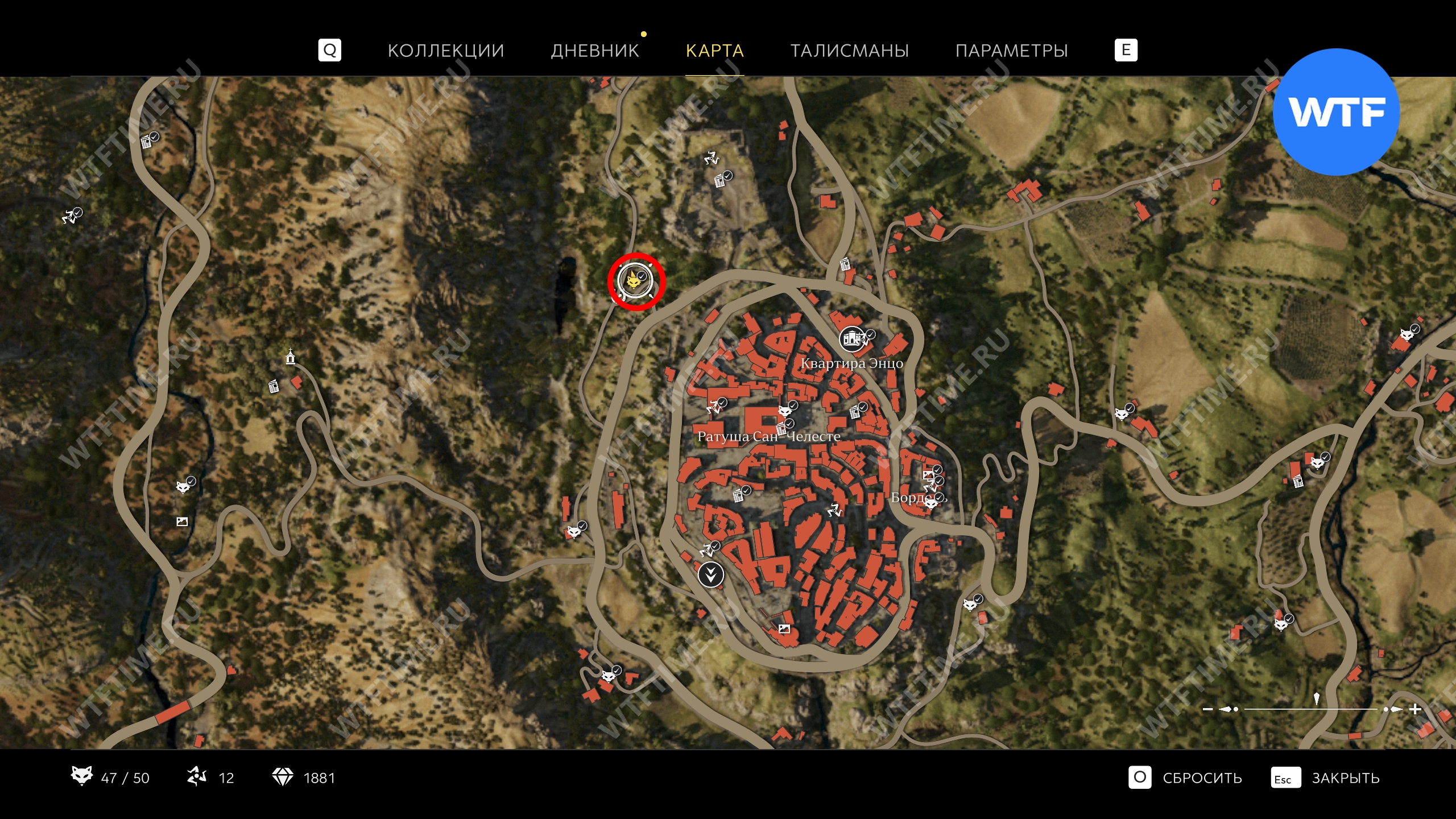 Эту лисицу вы найдете рядом с церковью Пресвятой Богородицы к северу от Порто-Альмаро. Она стоит на балконе справа от хода в храм. Чтобы попасть в эту область, нужно отпереть ворота в точке, где стоит метка игрока на скриншоте ниже.