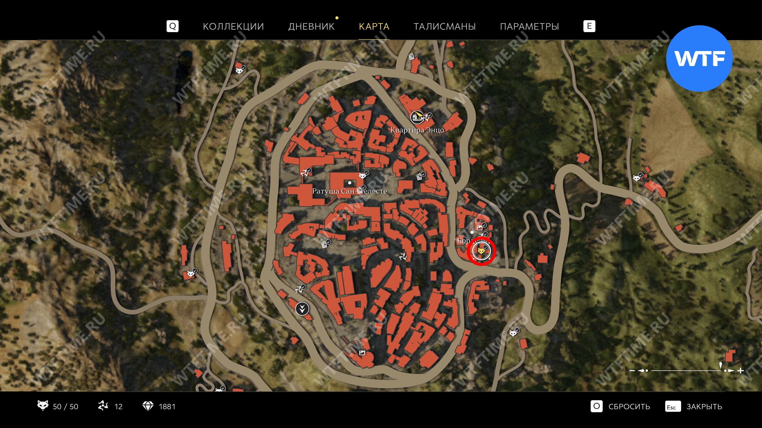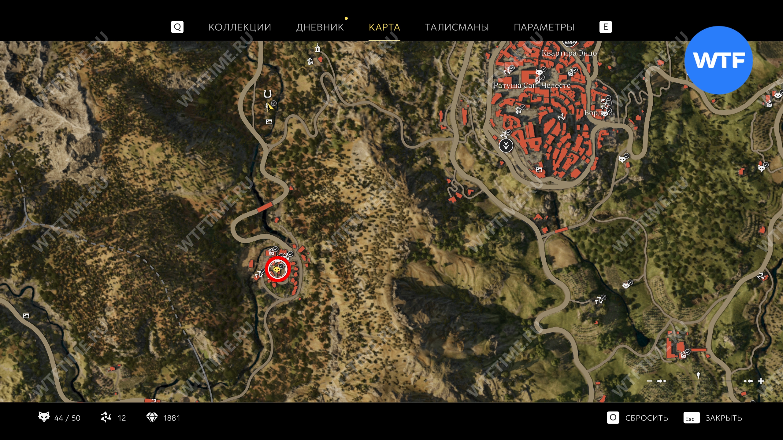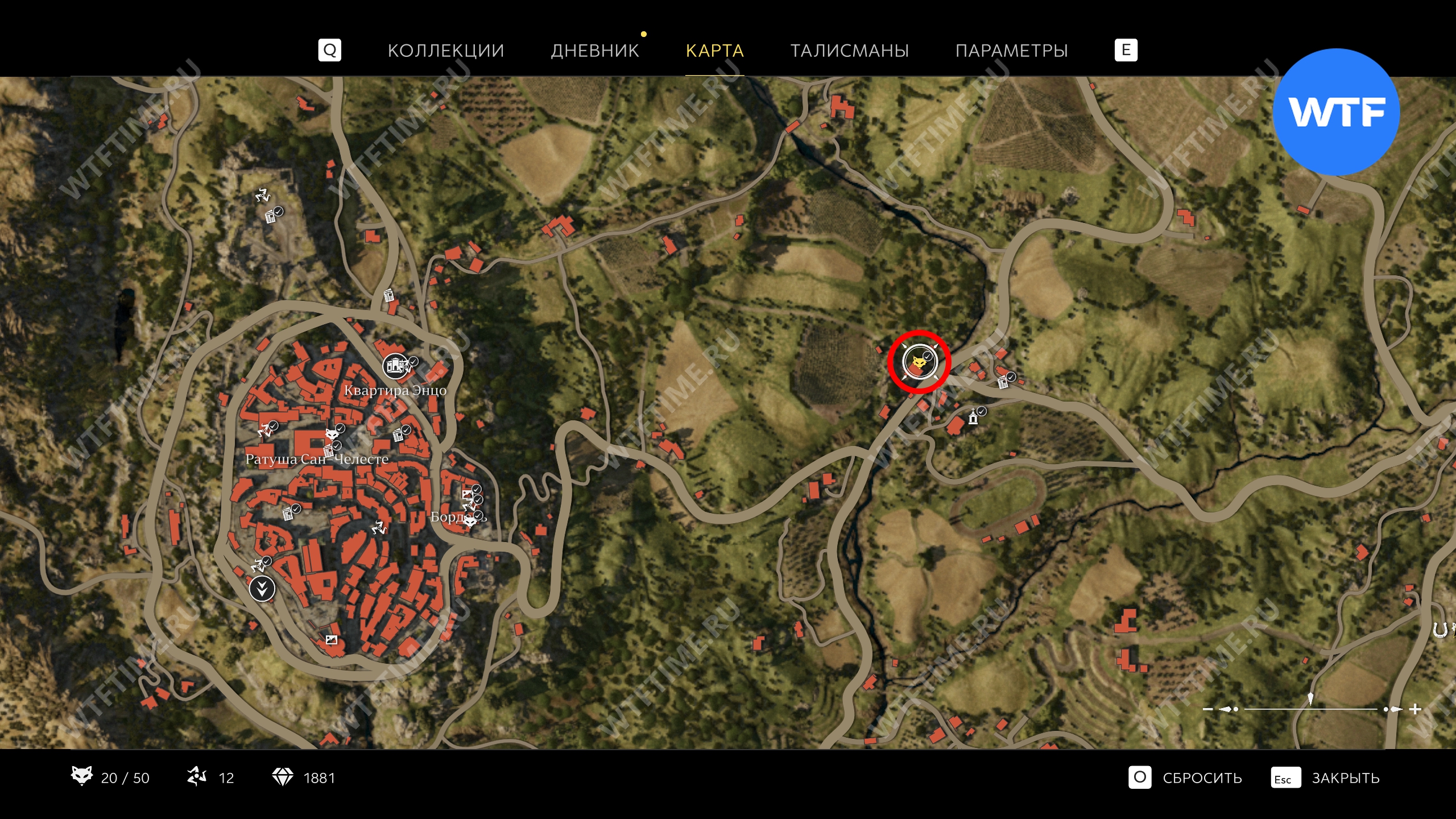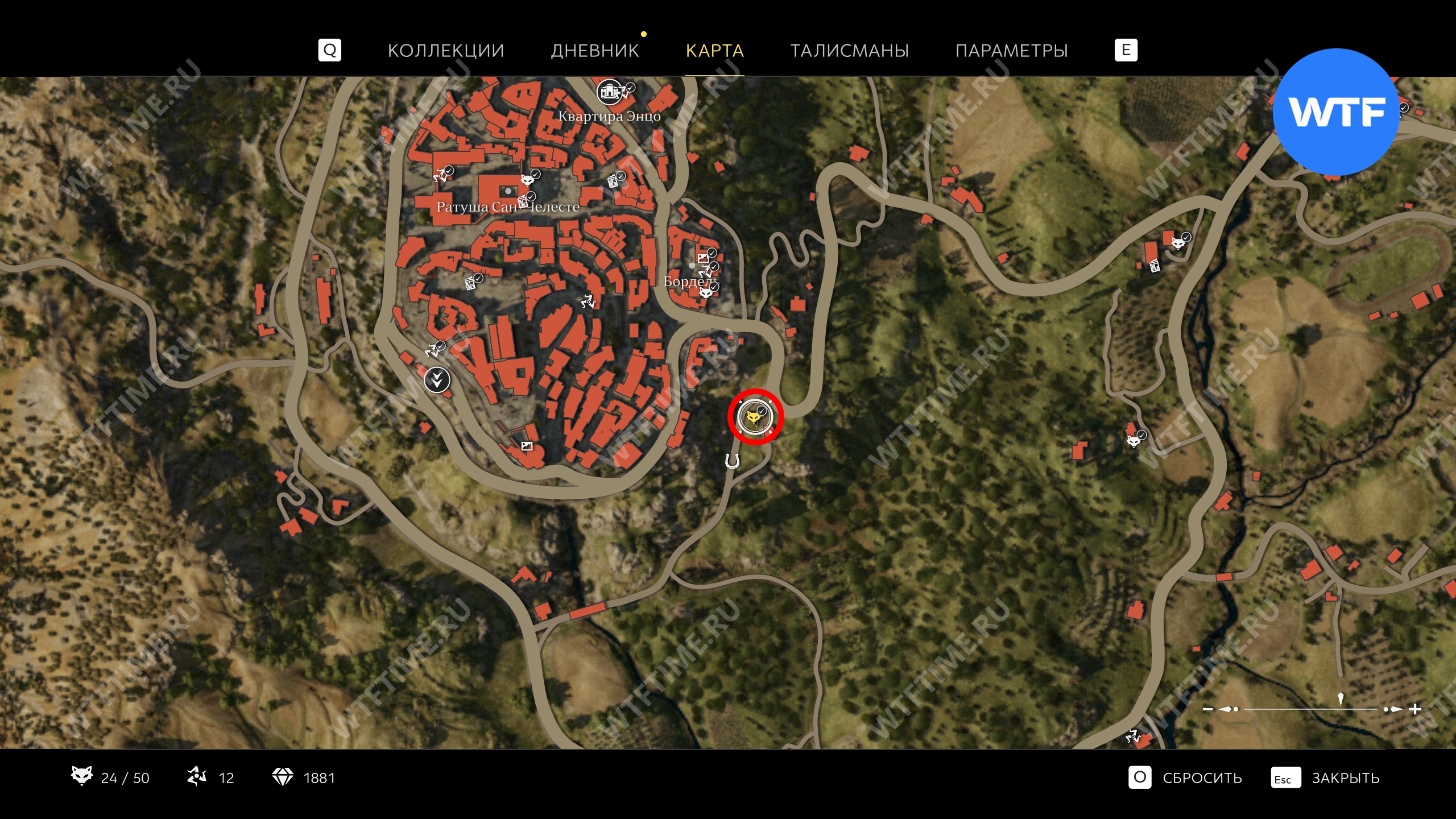 Эту лисицу вы найдете рядом с церковью Пресвятой Богородицы к северу от Порто-Альмаро. Она стоит на балконе справа от хода в храм. Чтобы попасть в эту область, нужно отпереть ворота в точке, где стоит метка игрока на скриншоте ниже.