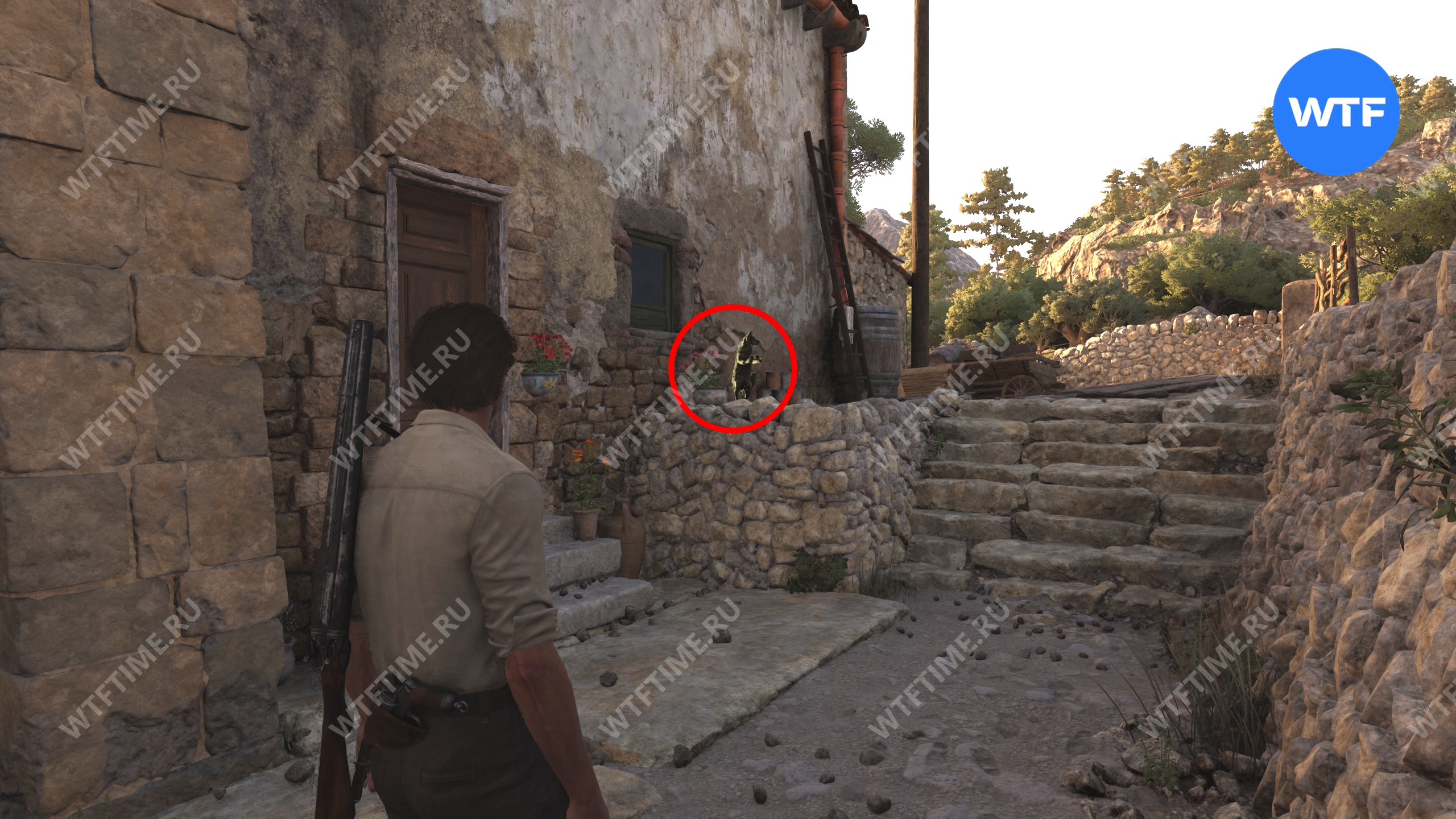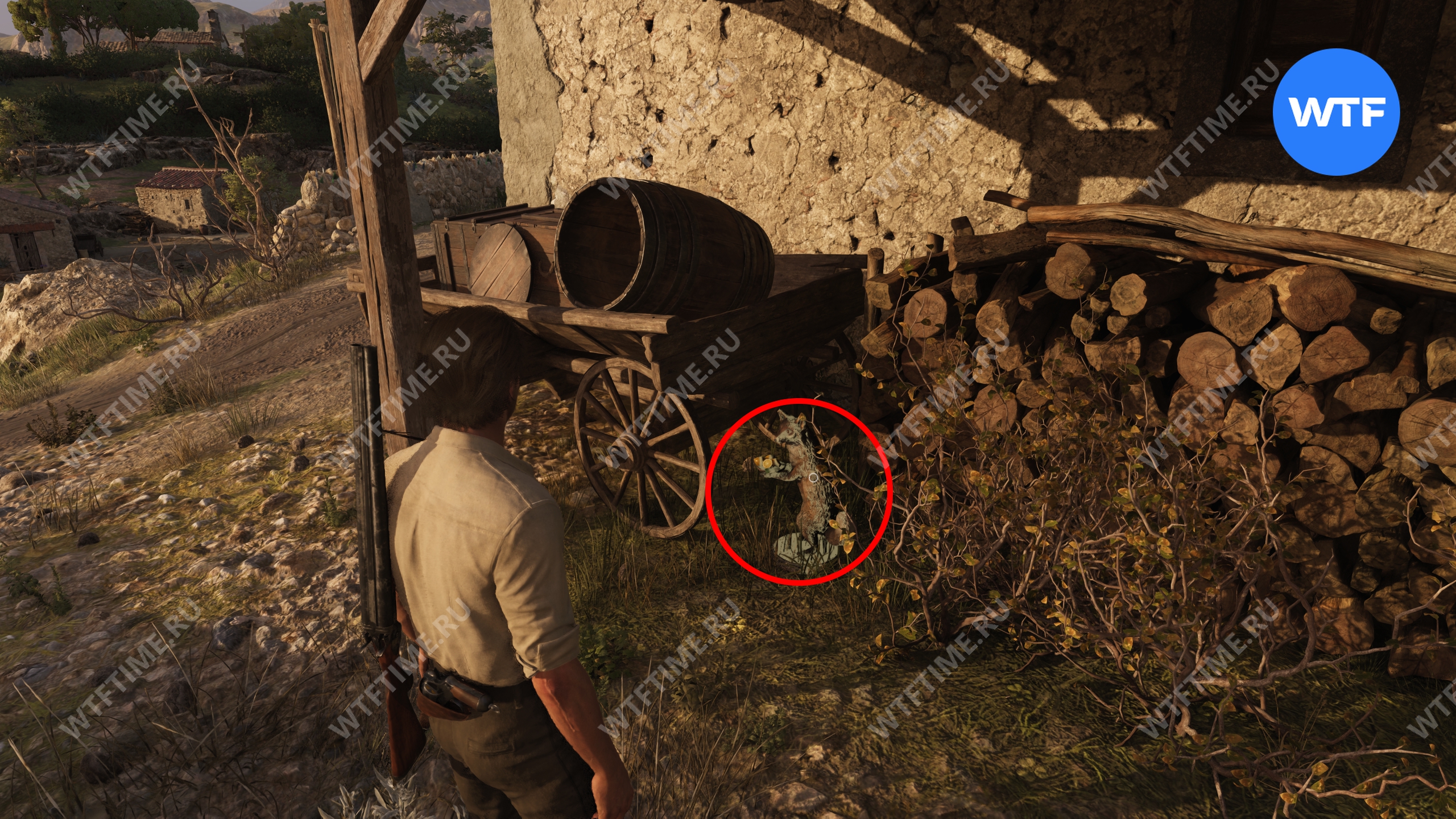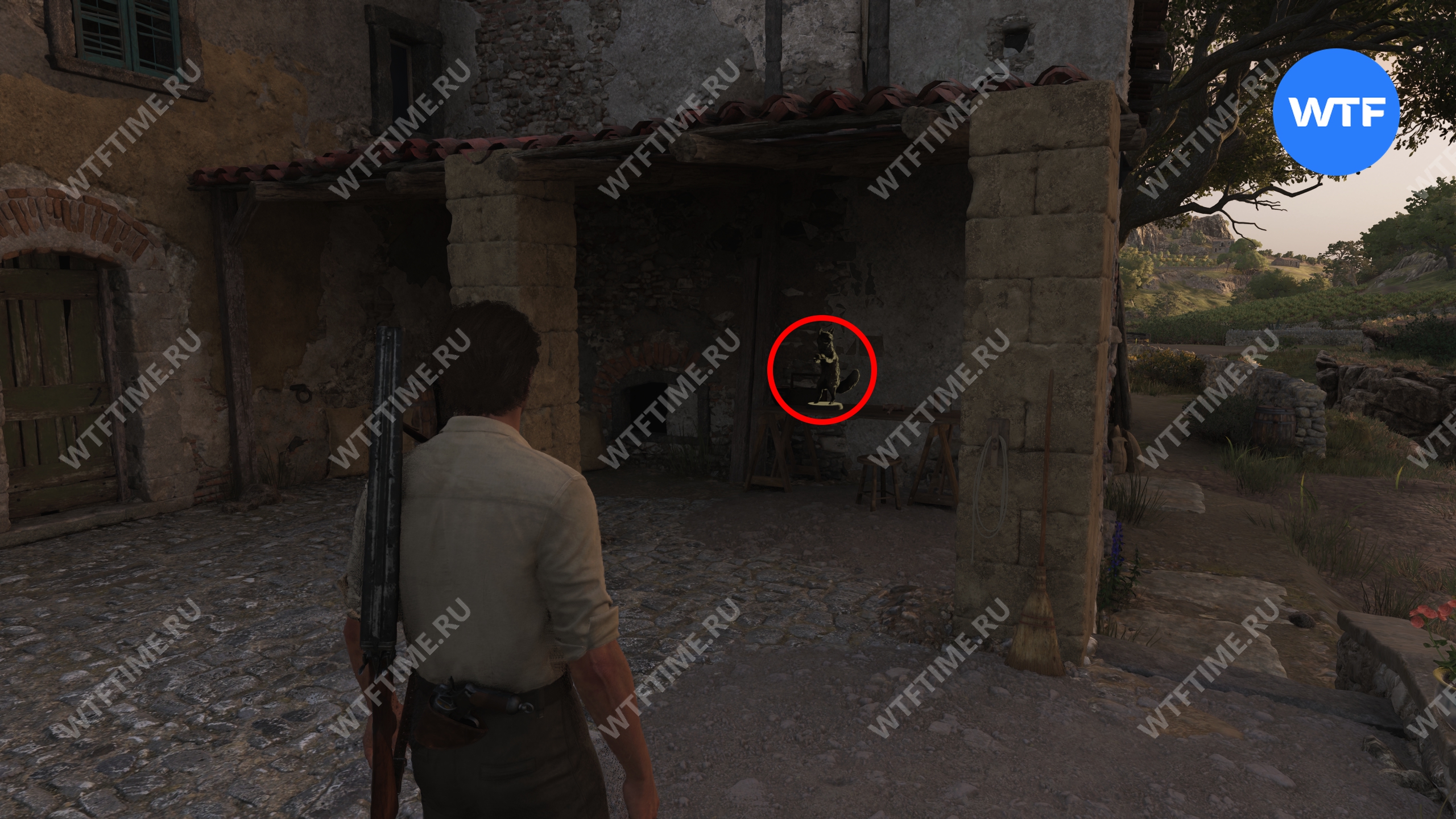 В небольшой деревеньке к северо-востоку от Сан-Челесте, которую вы посещаете в главе 3 «Pizzu», есть еще одна фигурка. Она стоит на перилах каменной лестницы, ведущей на второй этаж здания.