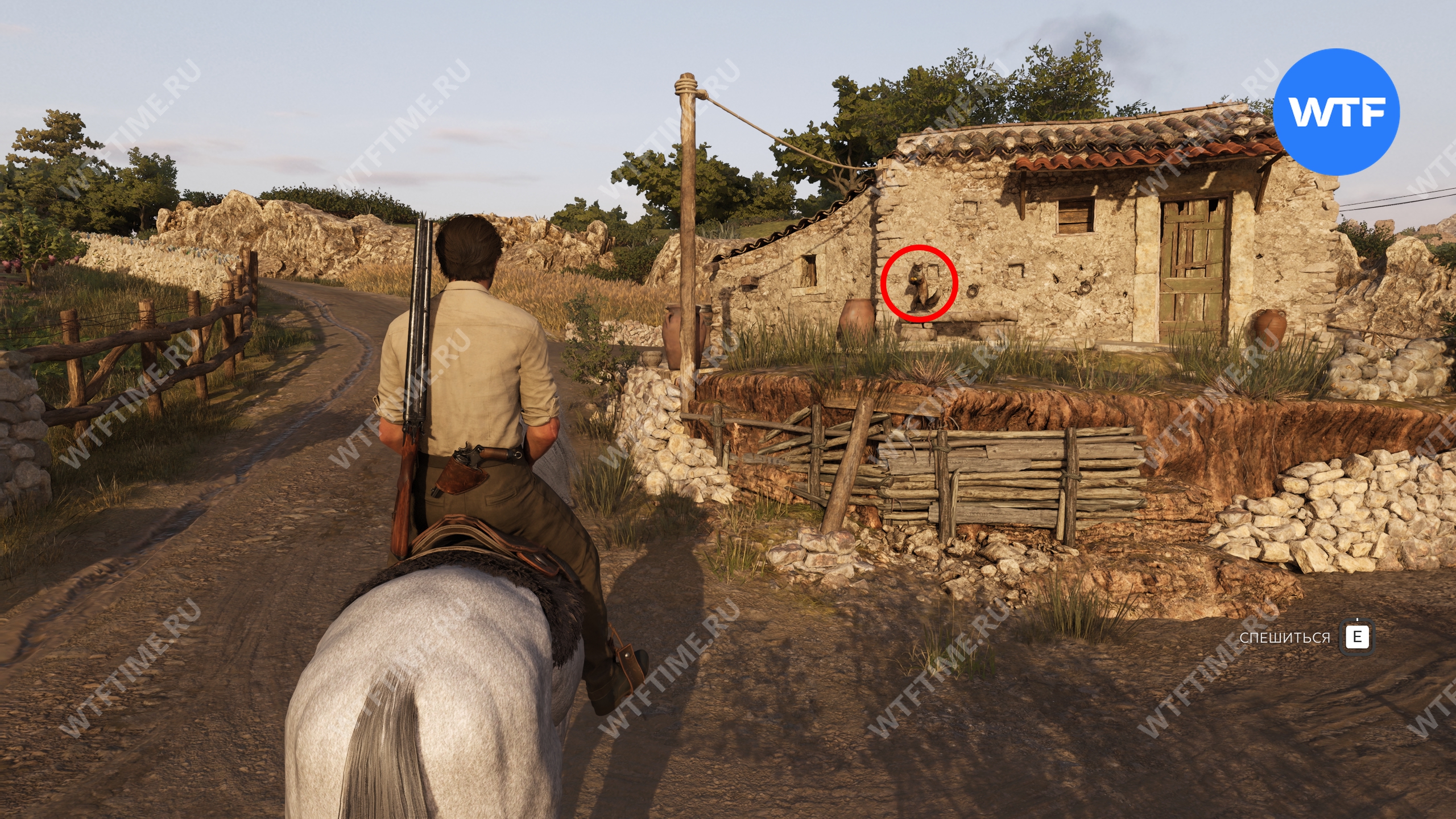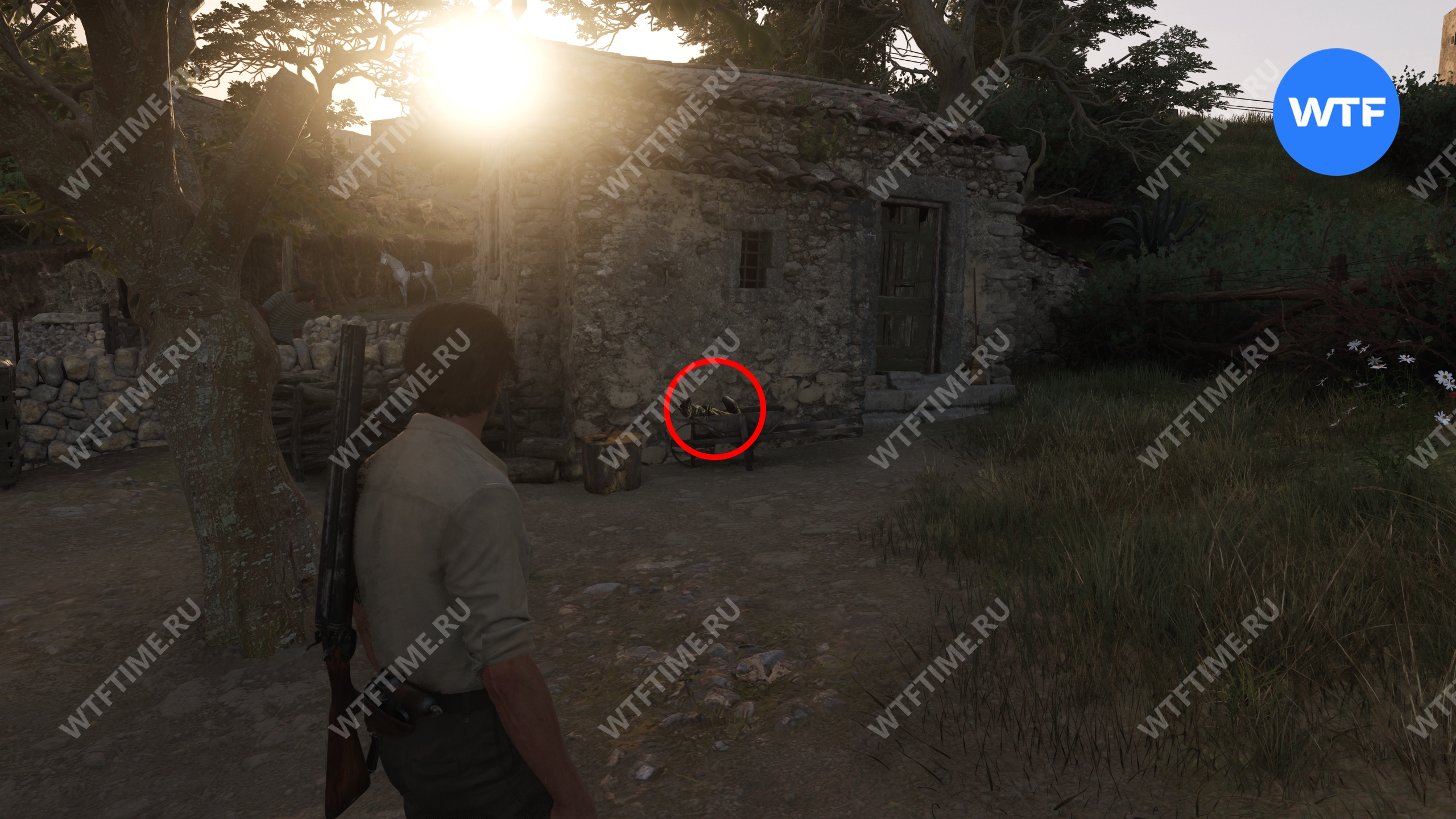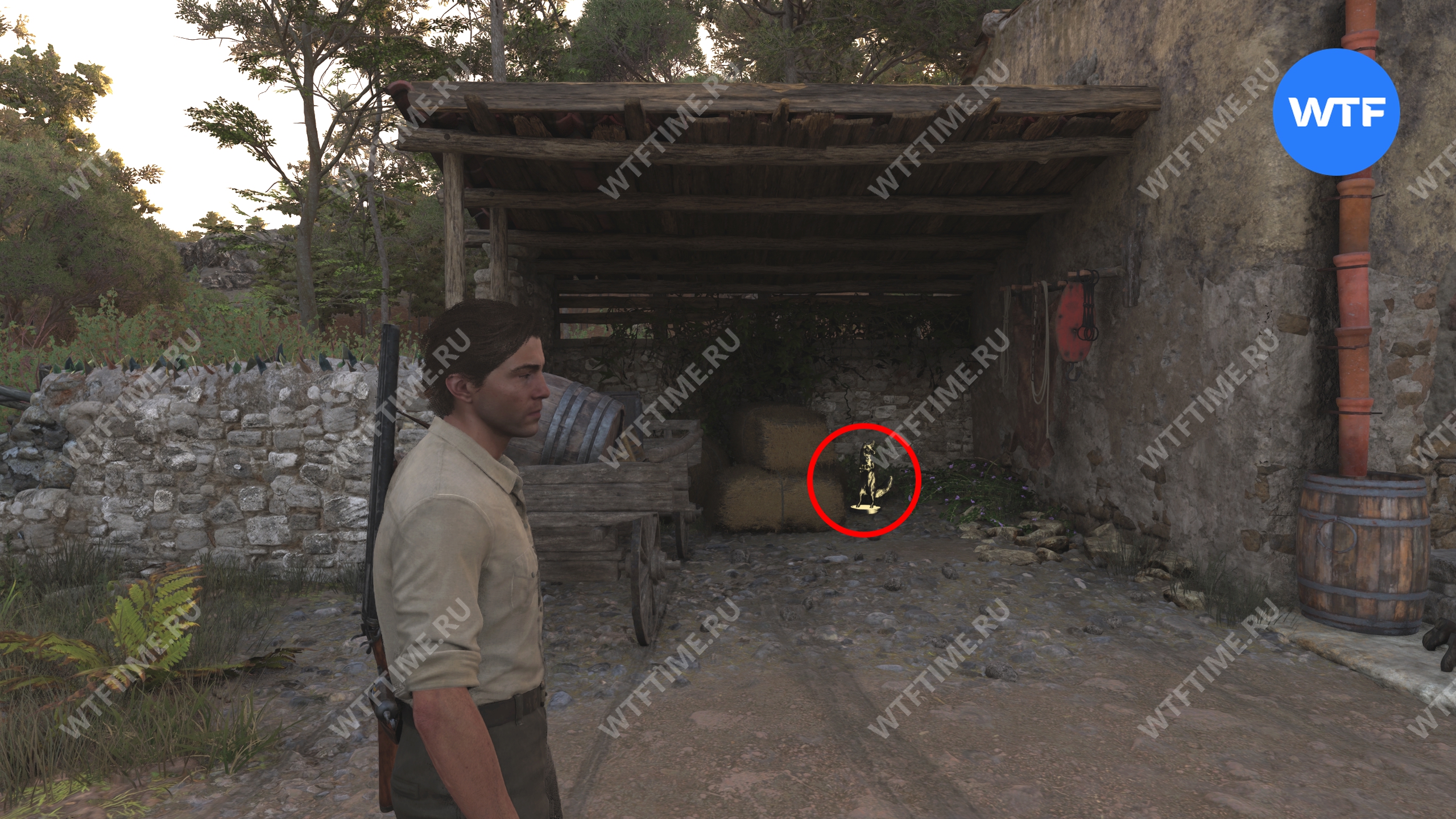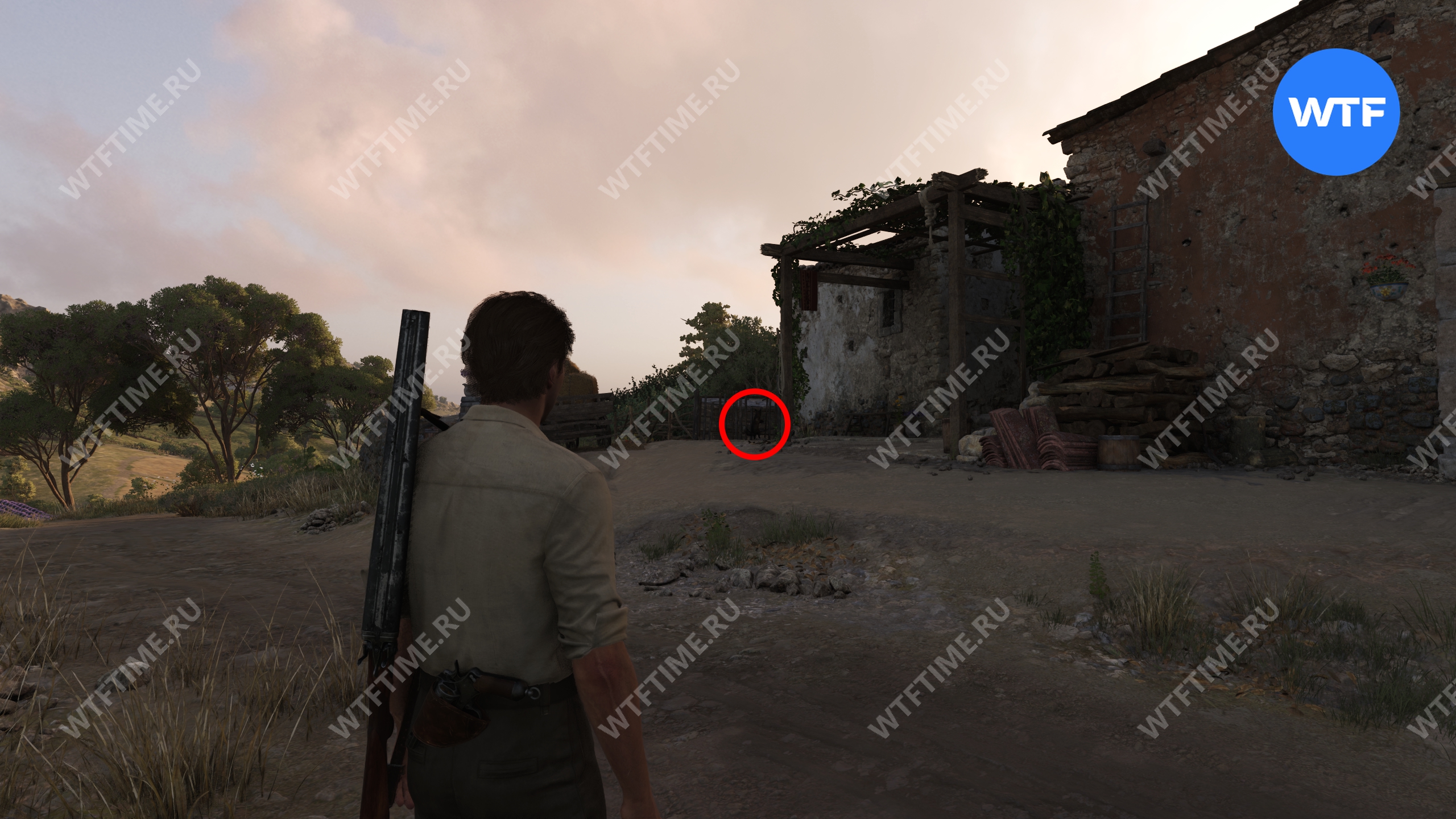 От Виллы Торризи двигайтесь на юго-восток и отыщите дом со скриншотов ниже, стоящий в стороне от дороги. По навесом справа от него стоит телега, еще одна лиса прячется за ней.