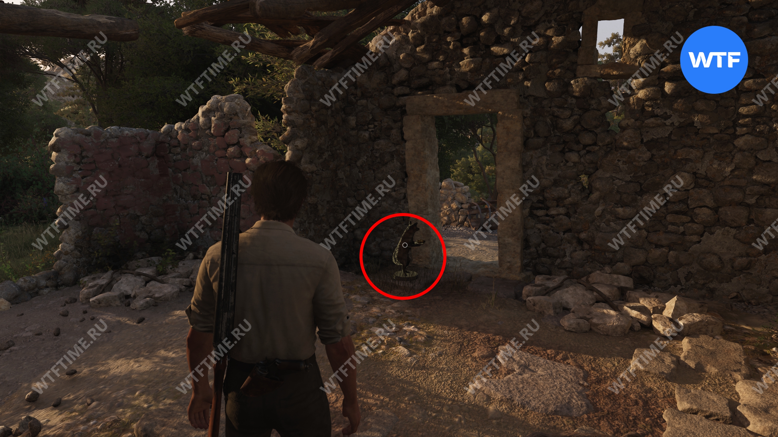 К юго-востоку от предыдущего места есть полуразрушенное здание, не обозначенное на карте. Внутри него стоит коллекционная фигурка.