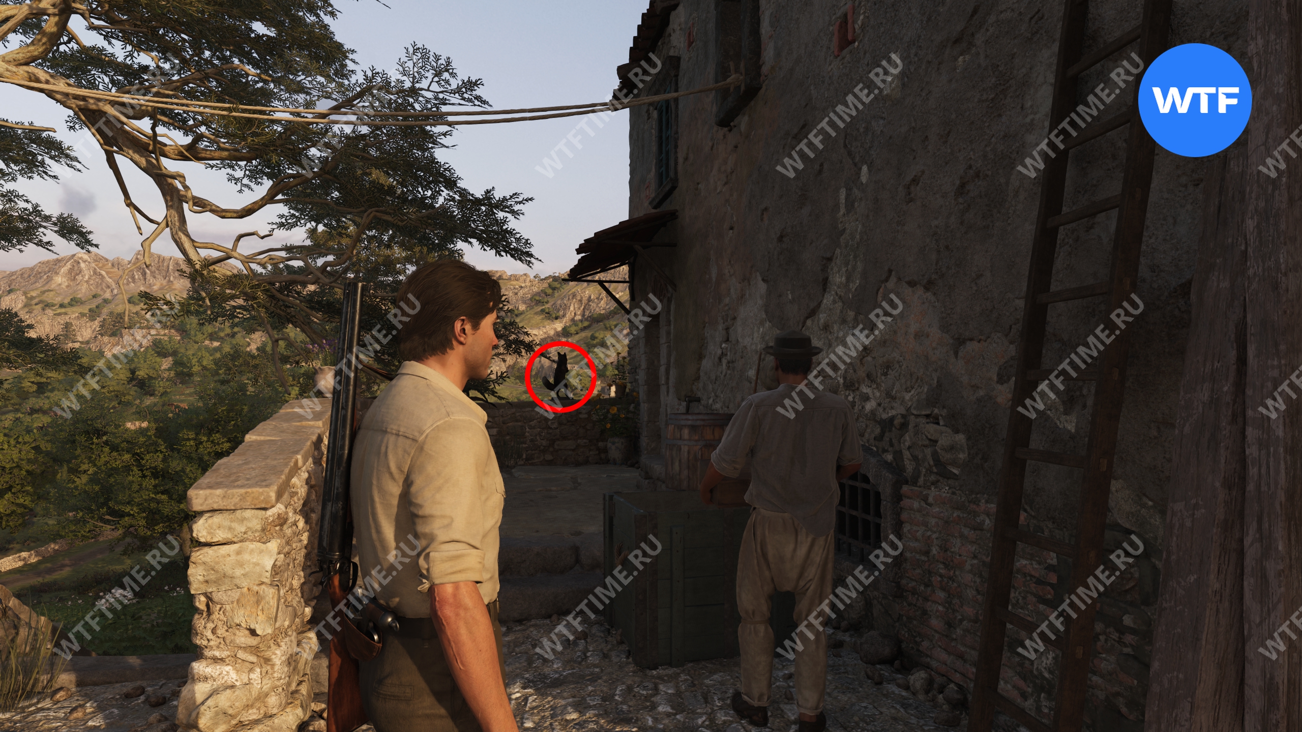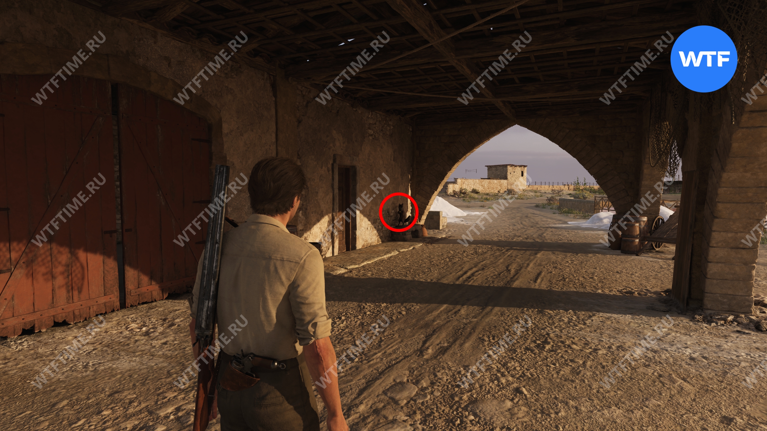 На сыромятне к юго-западу от Сан-Челесте, которую вы посещаете по сюжету в главах 6 и 8, можно найти еще одну лисицу. Чтобы её найти, от входа в здание с печатным станком нужно пойти направо и подняться по лестнице, показанной на скриншоте ниже.