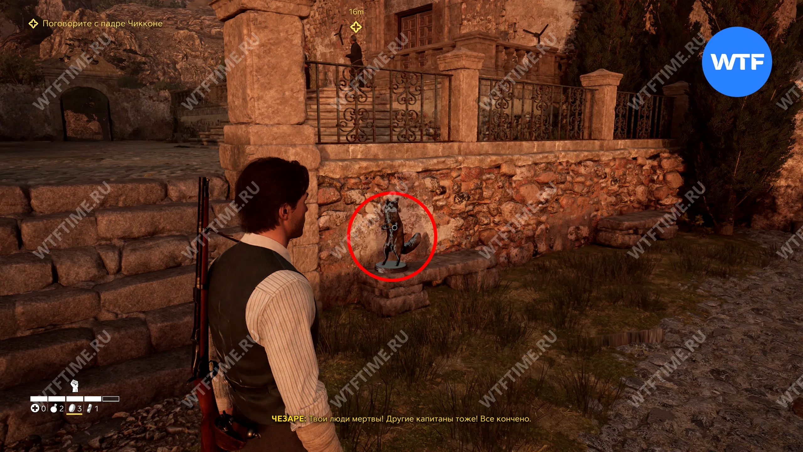 От Виллы Торризи идите по дороге на север и заберите фигурку лисы, стоящую внутри небольшой часовни. По сюжету вы бываете здесь несколько раз, но зайти внутрь можно только в свободном режиме.