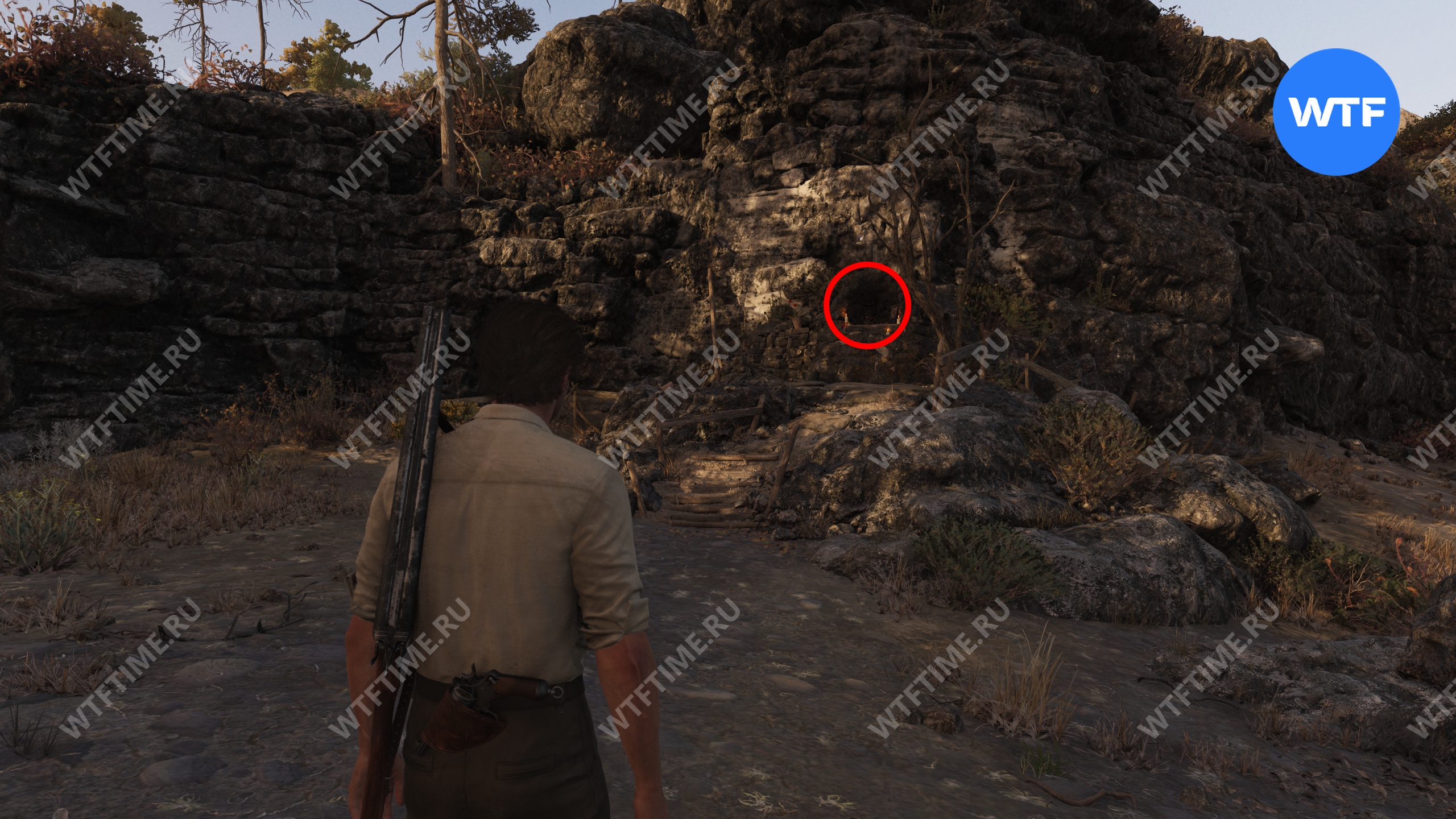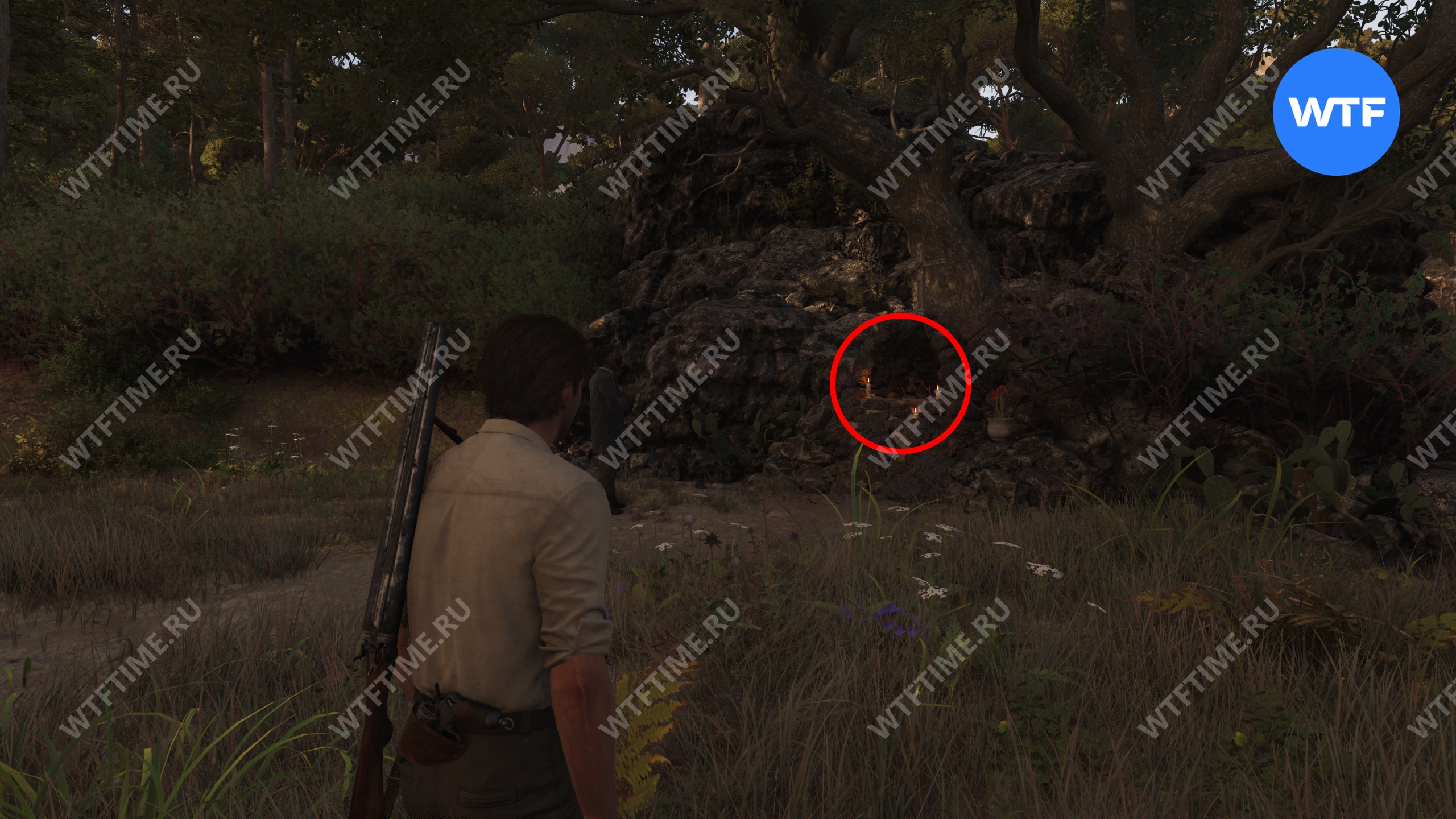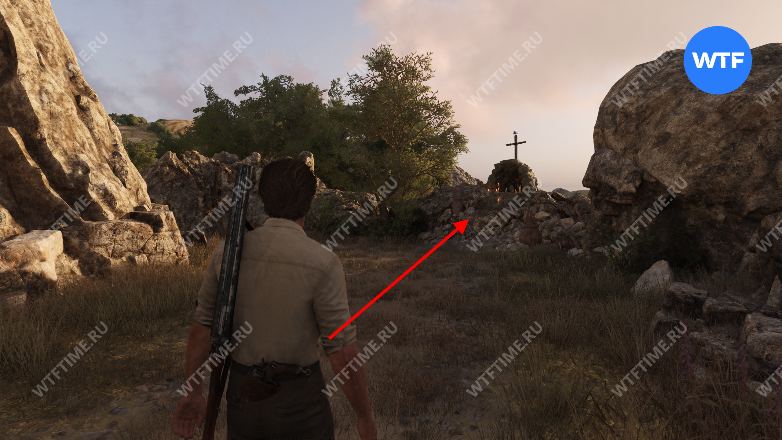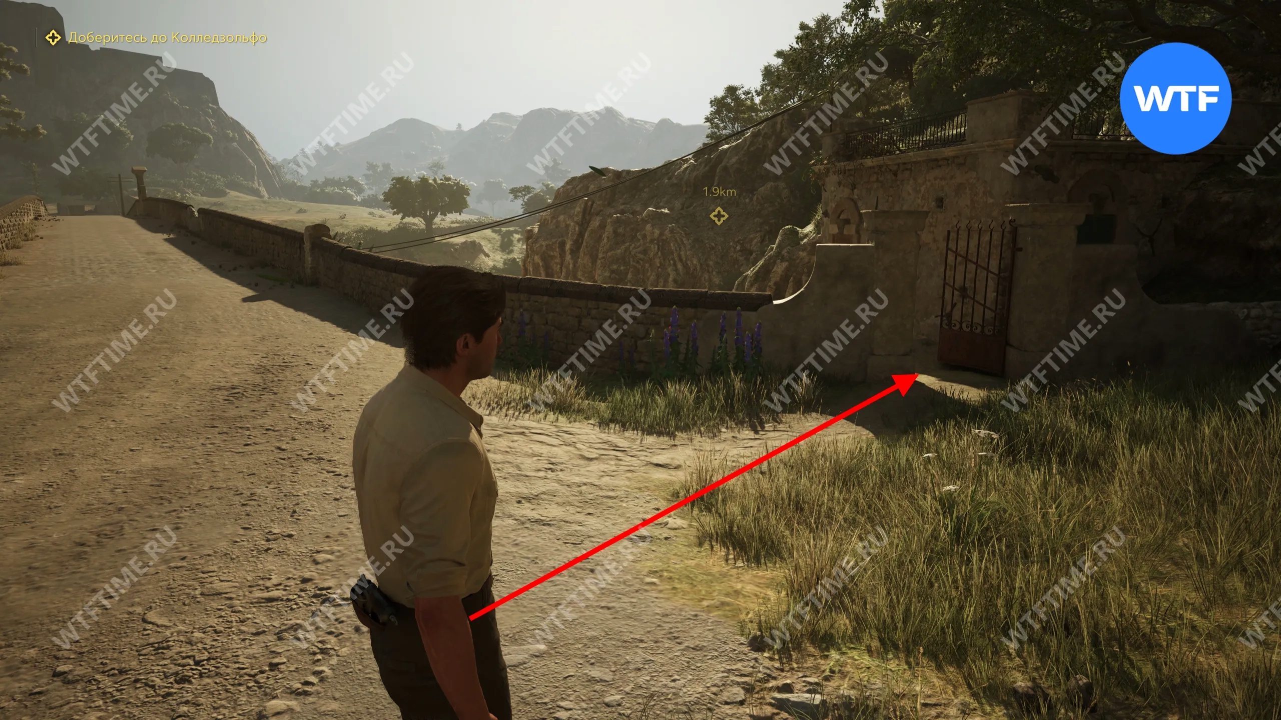 От Сан-Челесте езжайте по дороге на запад. В месте, где стоит лошадь на скриншоте ниже, есть небольшая калитка, через которую можно пройти только пешком. Она приведет вас к последнему алтарю.