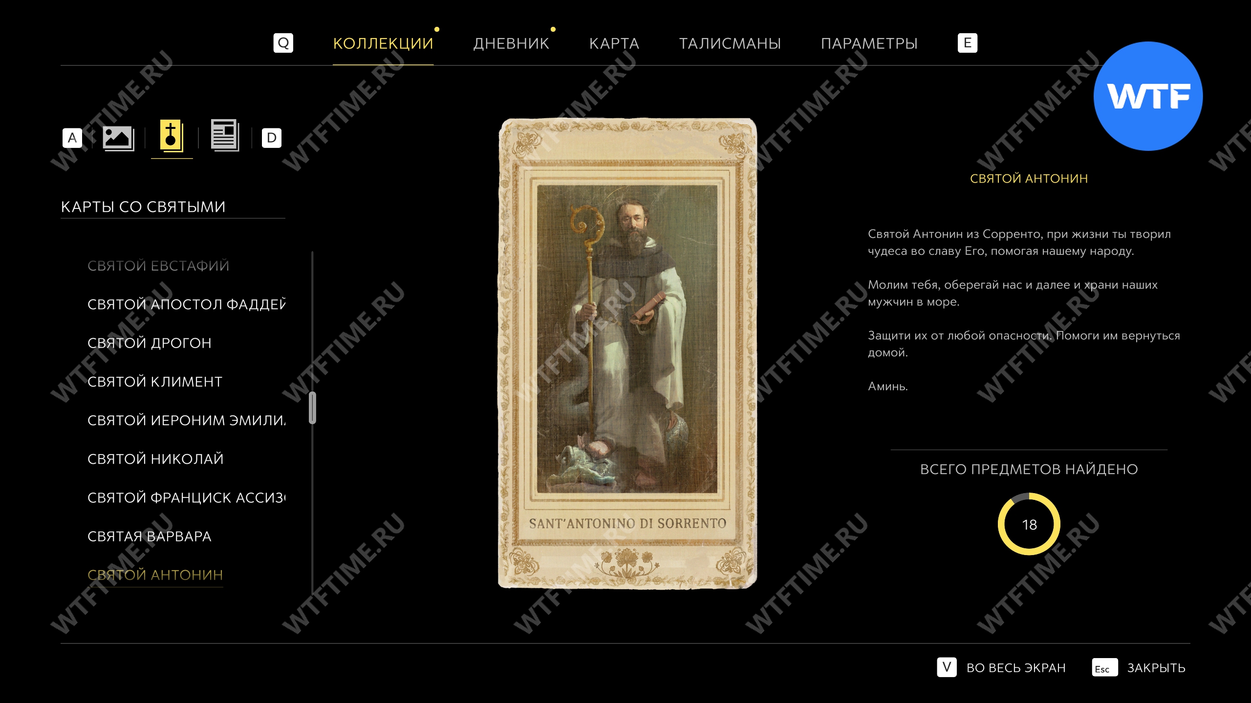 Всего в Mafia The Old Country можно найти 20 карт со святыми: две из них получаются только в рамках сюжетных миссий, а остальные 18 можно забрать в свободном режиме.