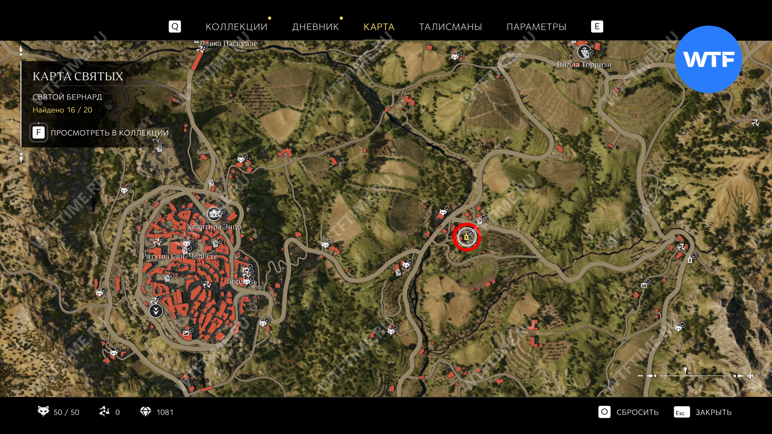 Доберитесь до Колледзольфо и поднимитесь на вершину холма в юго-западной части города. Там есть часовня, возле которой можно подобрать еще одну карту со святыми.
