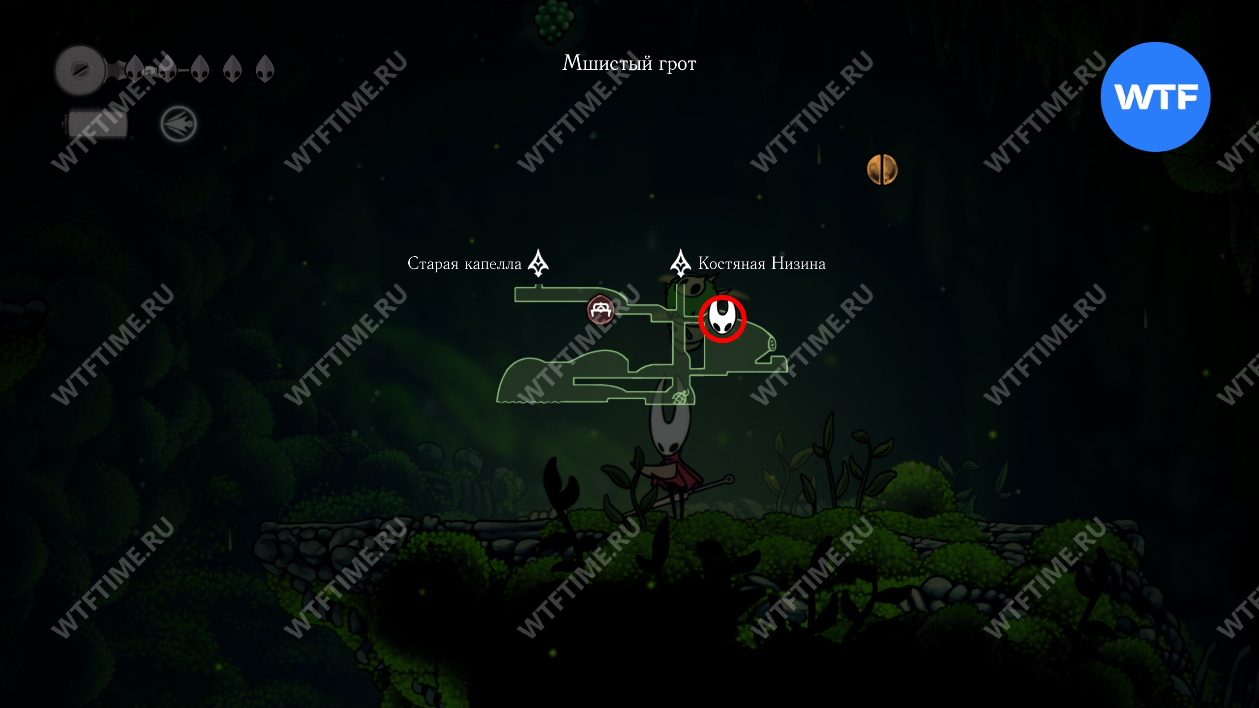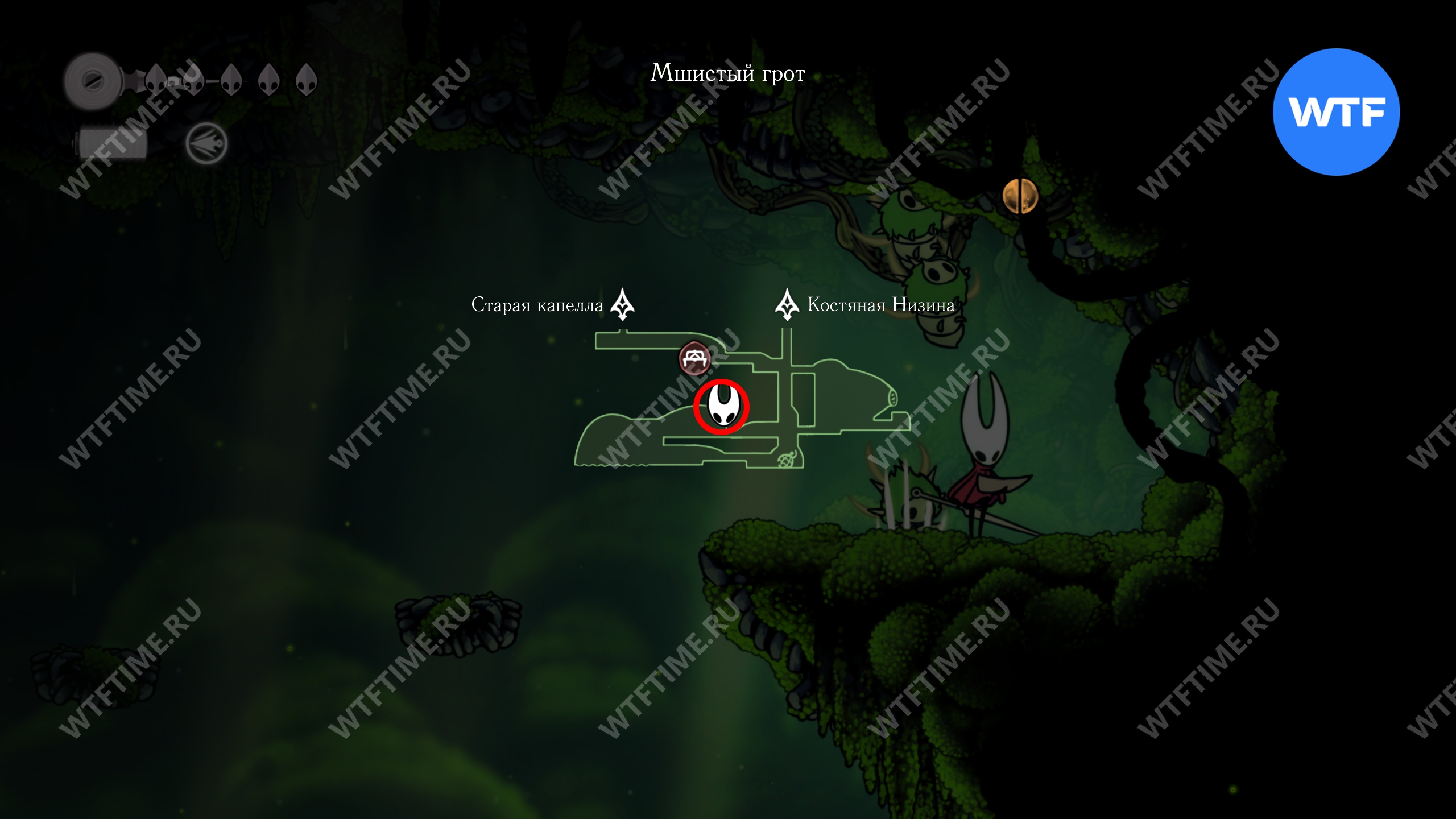 Вторую болотную ягоду можно также найти в Мшистом гроте, но добраться до неё будет уже сложнее. Место, где она растет, показано на карте ниже. Это прямо после подъема по платформам с перекатывающимися существами, правее перехода в Старую капеллу.