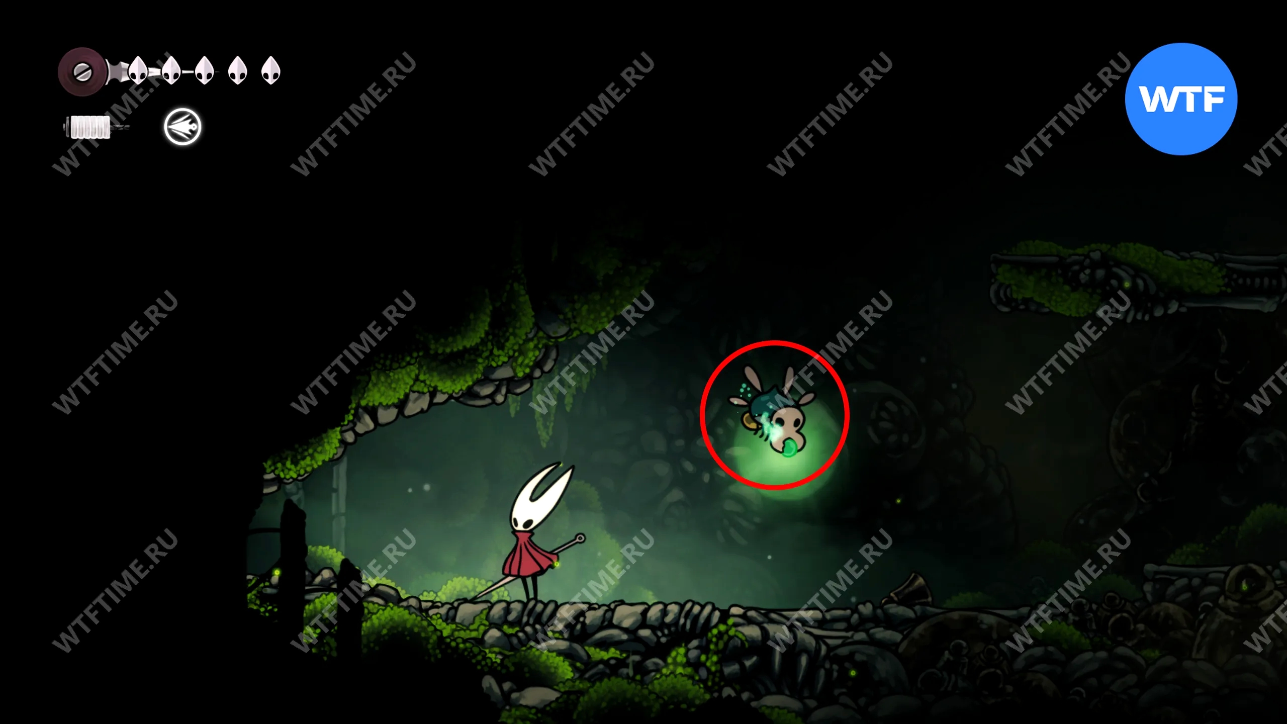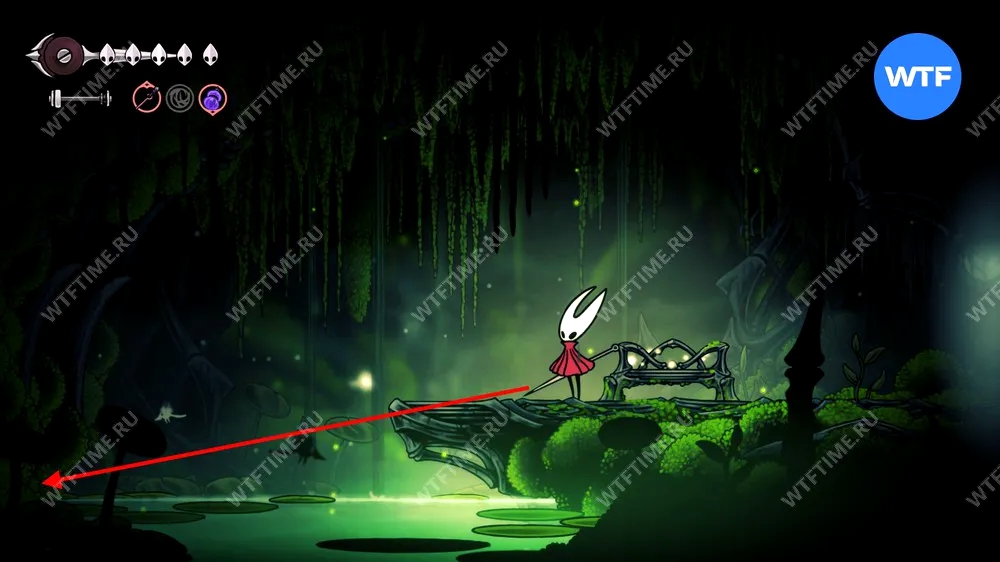 Прыгайте вниз, а затем идите все время налево, мимо Капеллы Странника. Пройдя налево до упора вы увидите платформы, по которым можно начать обратный подъем наверх. Двигайтесь в сторону входа и по пути увидите муху, которая летает с болотной ягодой в зубах.