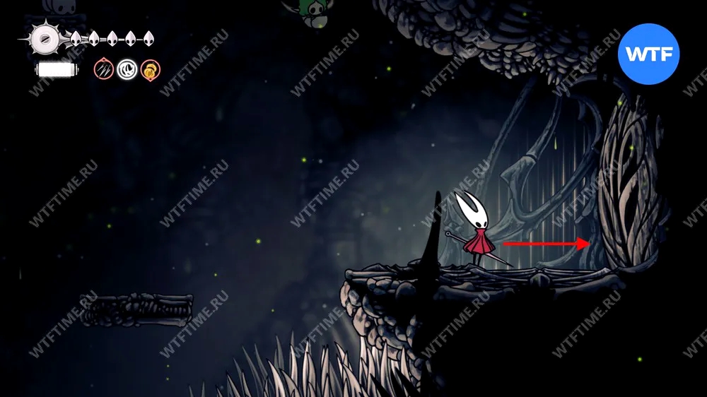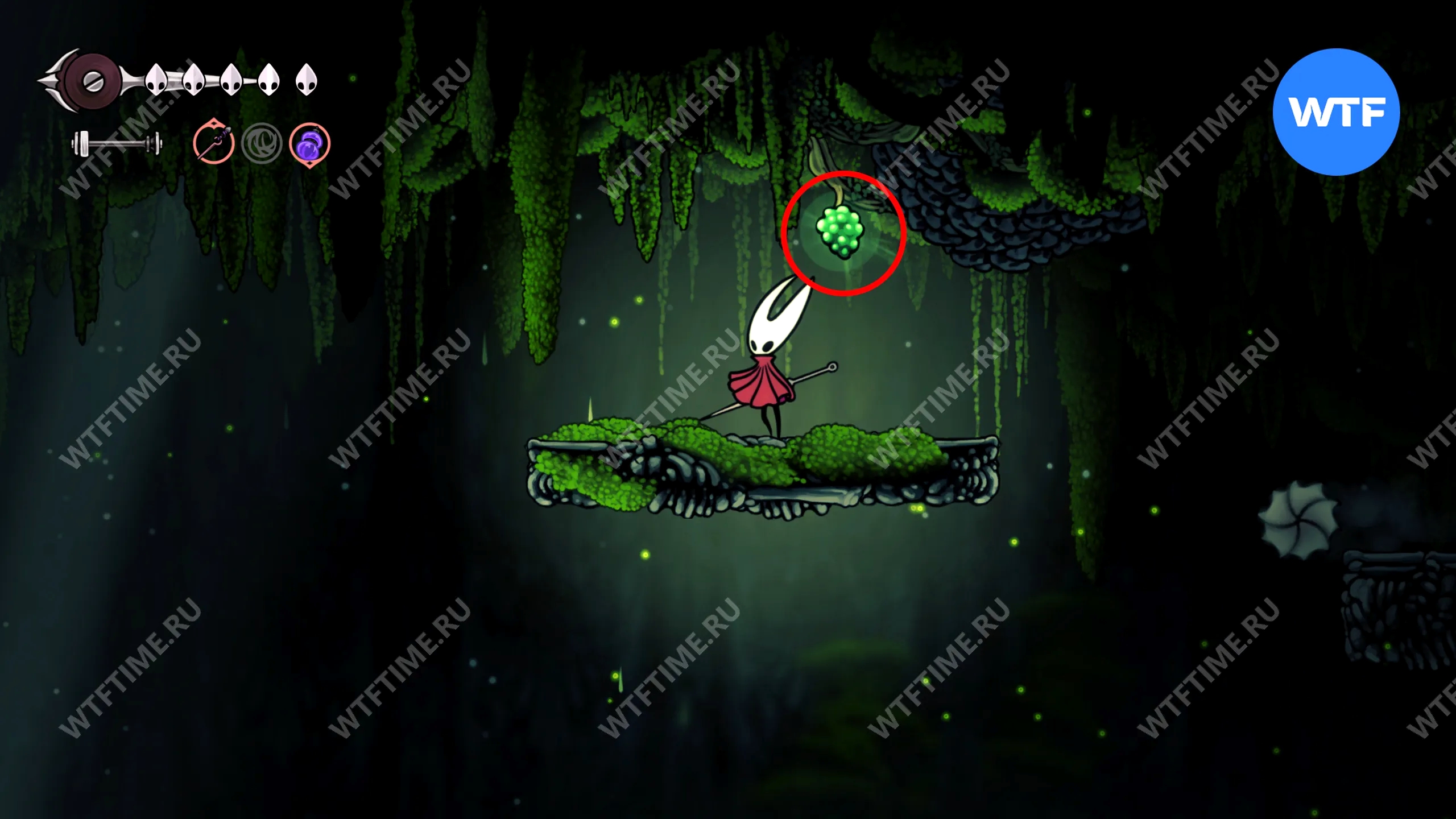 Импульс от атаки подбросит Хорнет еще выше и позволит сбить ягоду в прыжке. Вам может потребоваться несколько попыток, чтобы это повторить. Если враг умрет раньше, просто перейдите в Старую капеллу и вернитесь обратно, чтобы его воскресить.