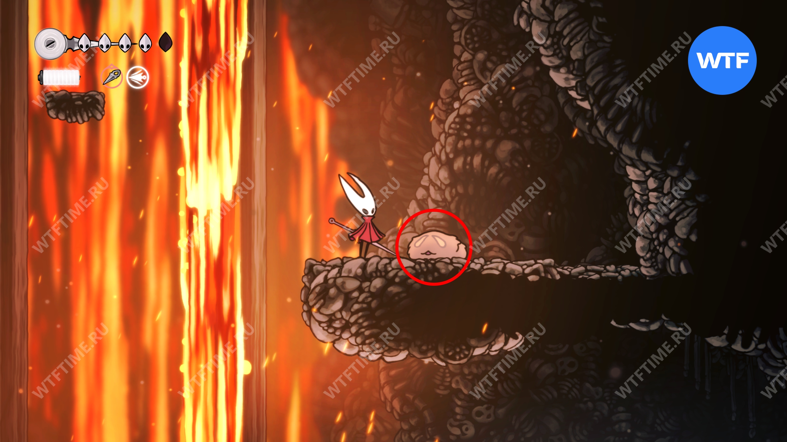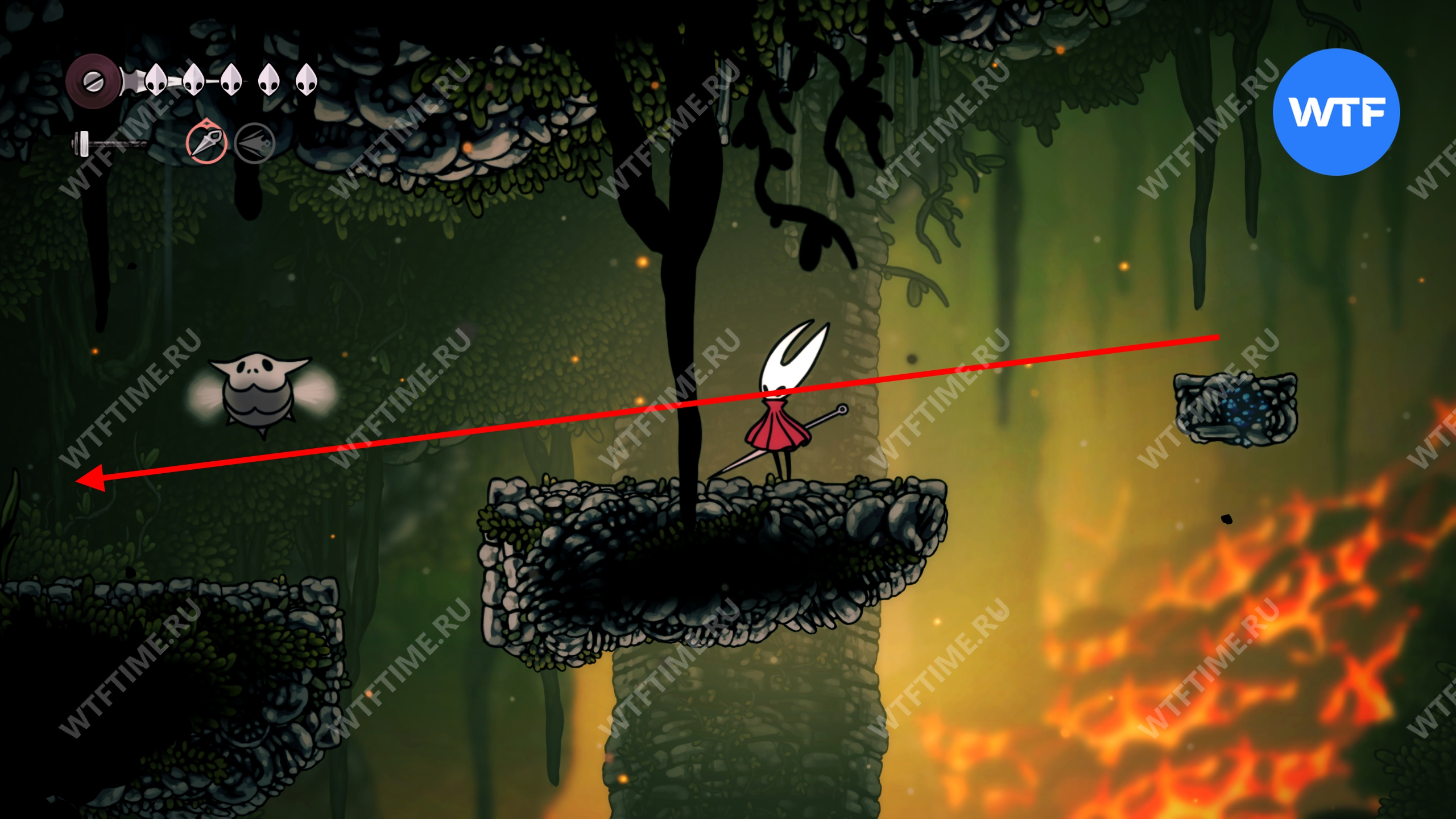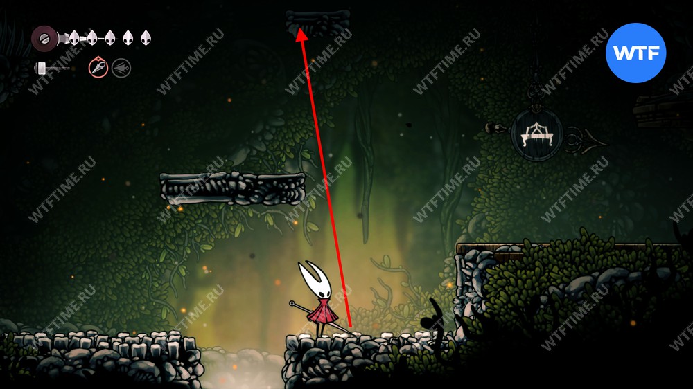 От алтаря прыгайте налево по верхним платформам, используя новое умение, пока в итоге не доберетесь до рычага. Нажмите на него, чтобы опустить блок, а затем идите наверх и вправо, чтобы найти еще одну потерявшуюся блоху.