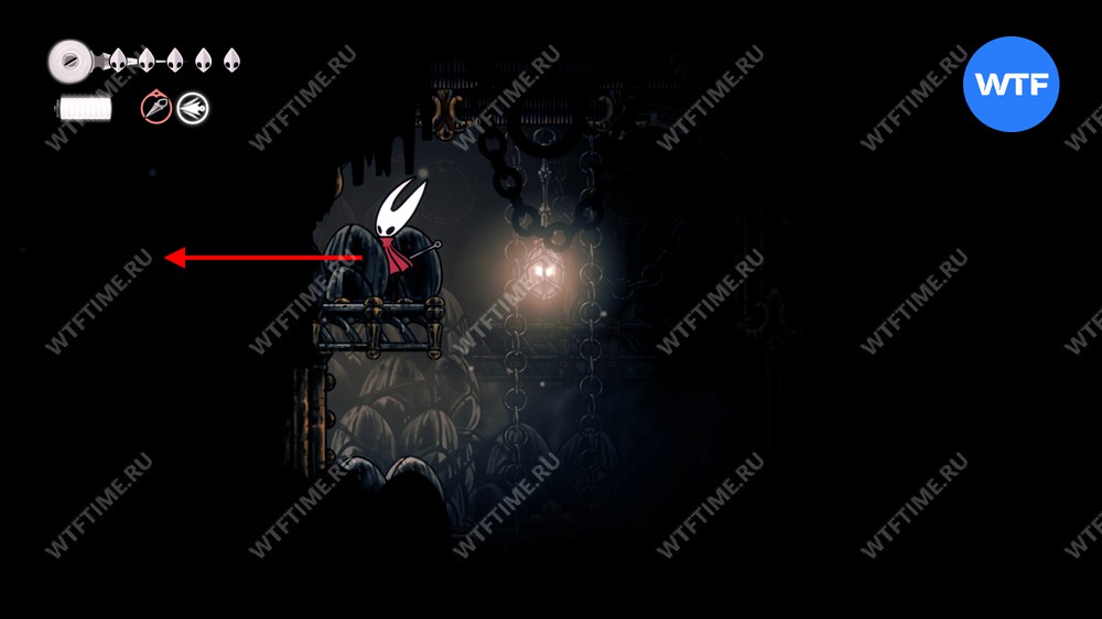 От лавочки идите налево и спуститесь вниз на лифте. Затем идите по платформе направо до конца, чтобы сломать статую с осколками панциря, а затем спускайтесь на следующем лифте вниз.