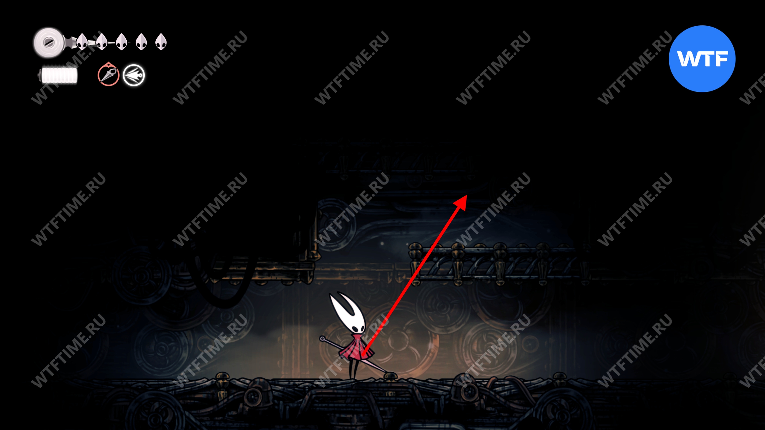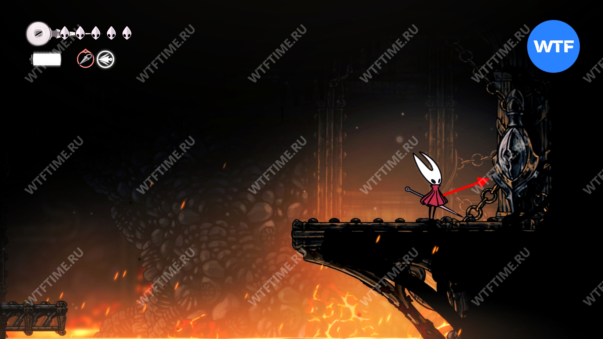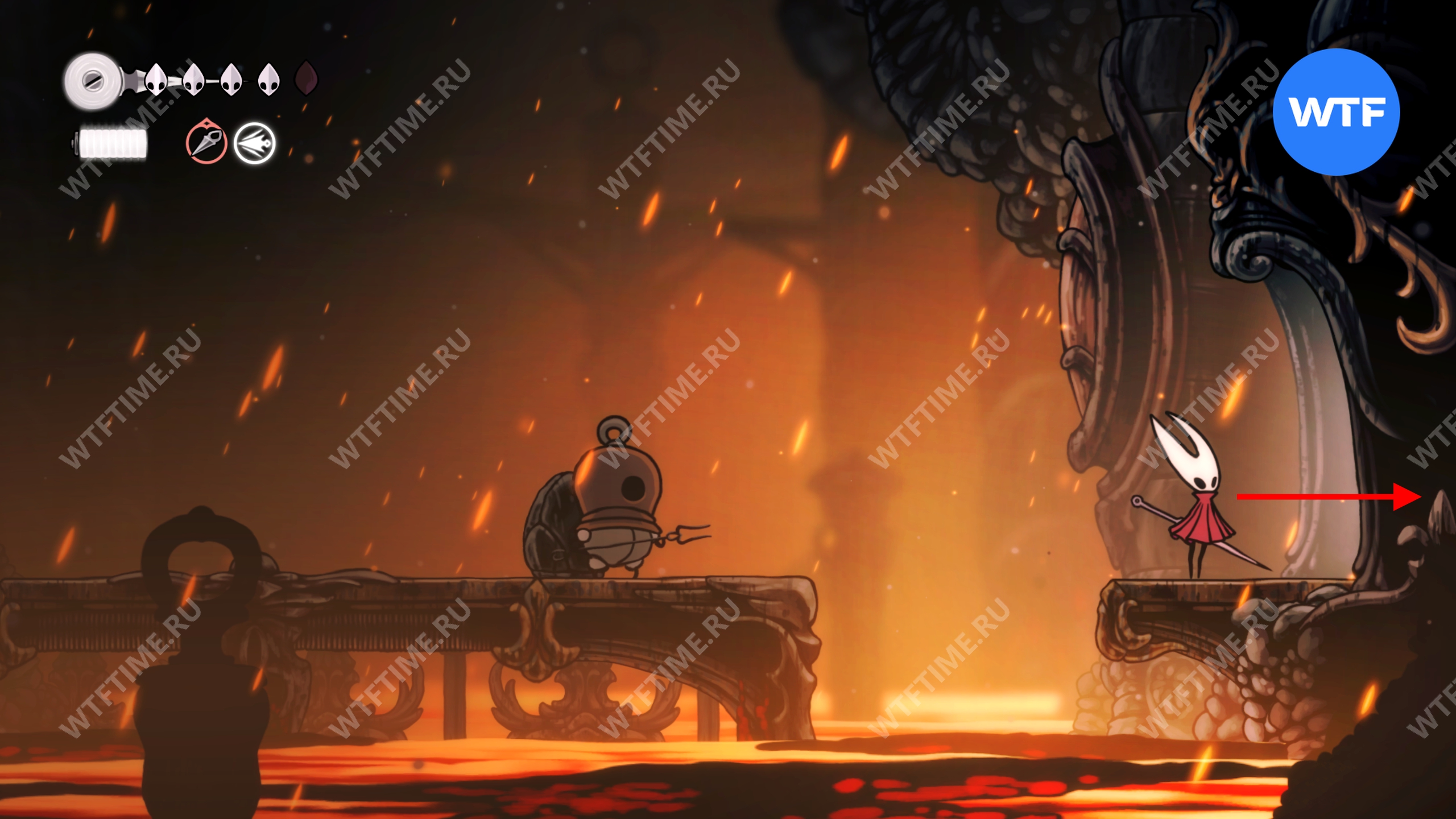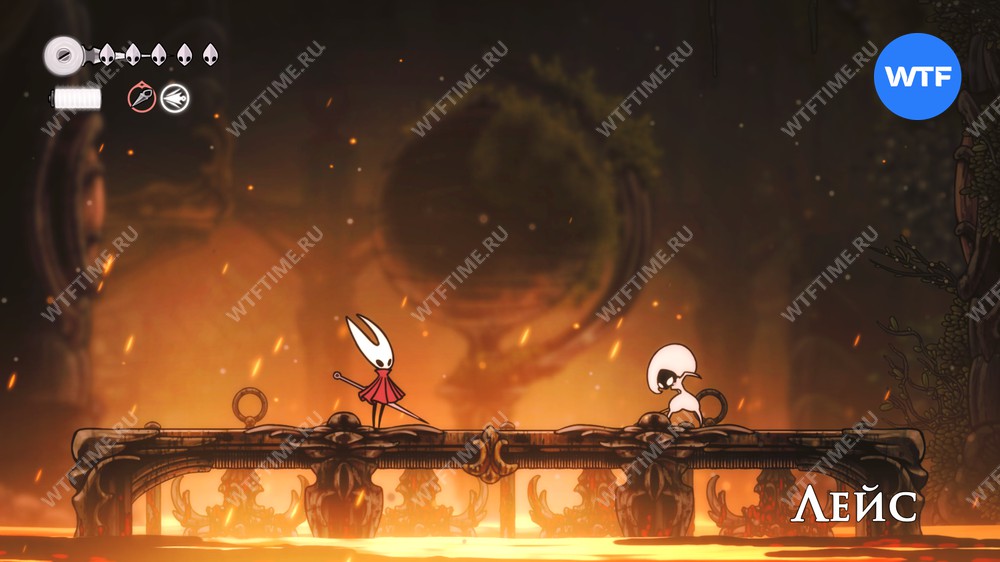 Также обратите внимание на саму платформу: Лейс не может с неё упасть, а вот Хорнет очень даже может. Не подходите близко к краю и не давайте себя столкнуть во время проведения ударов мечом.