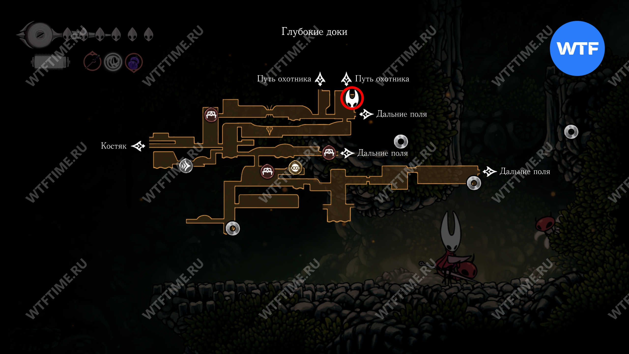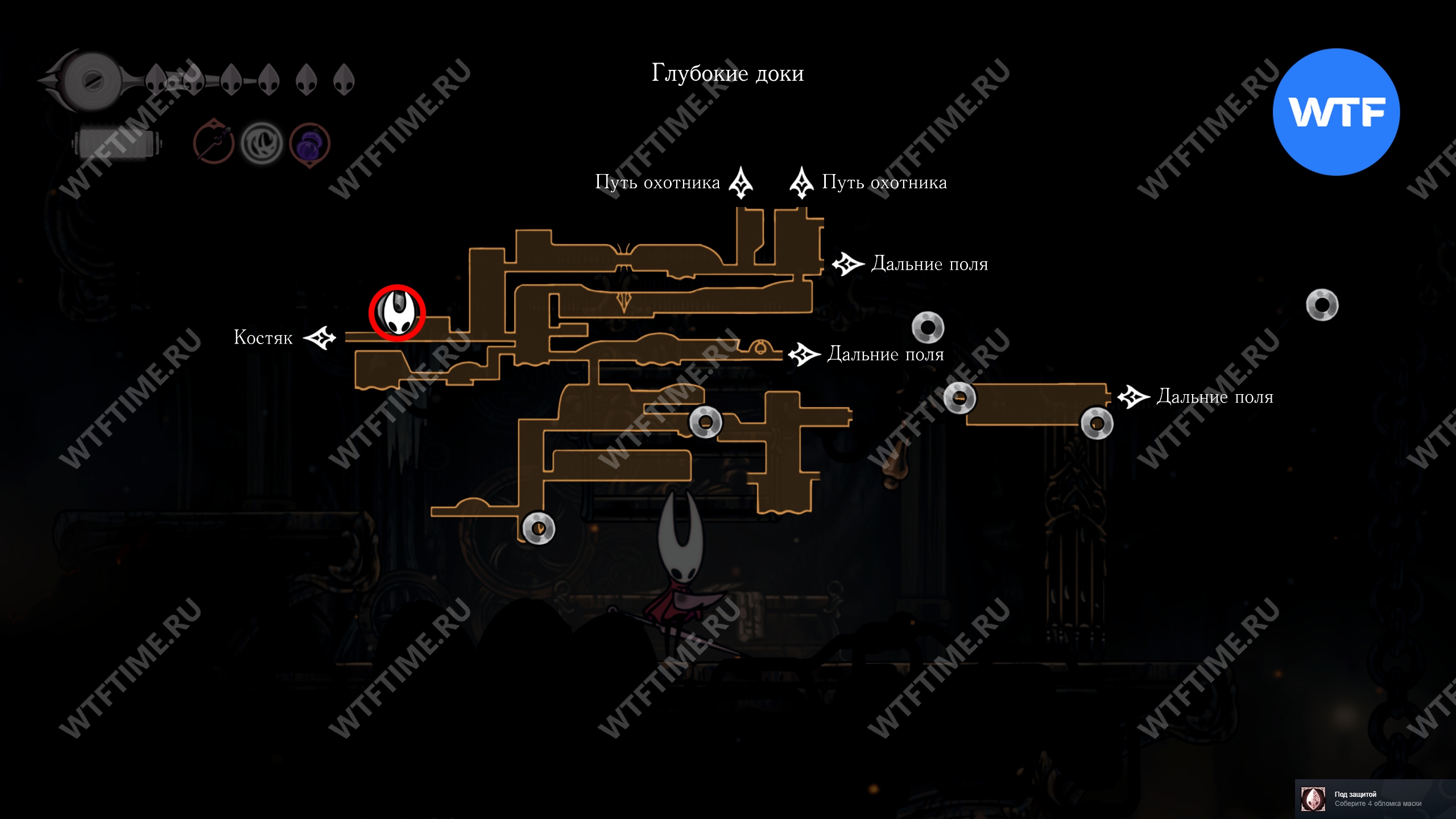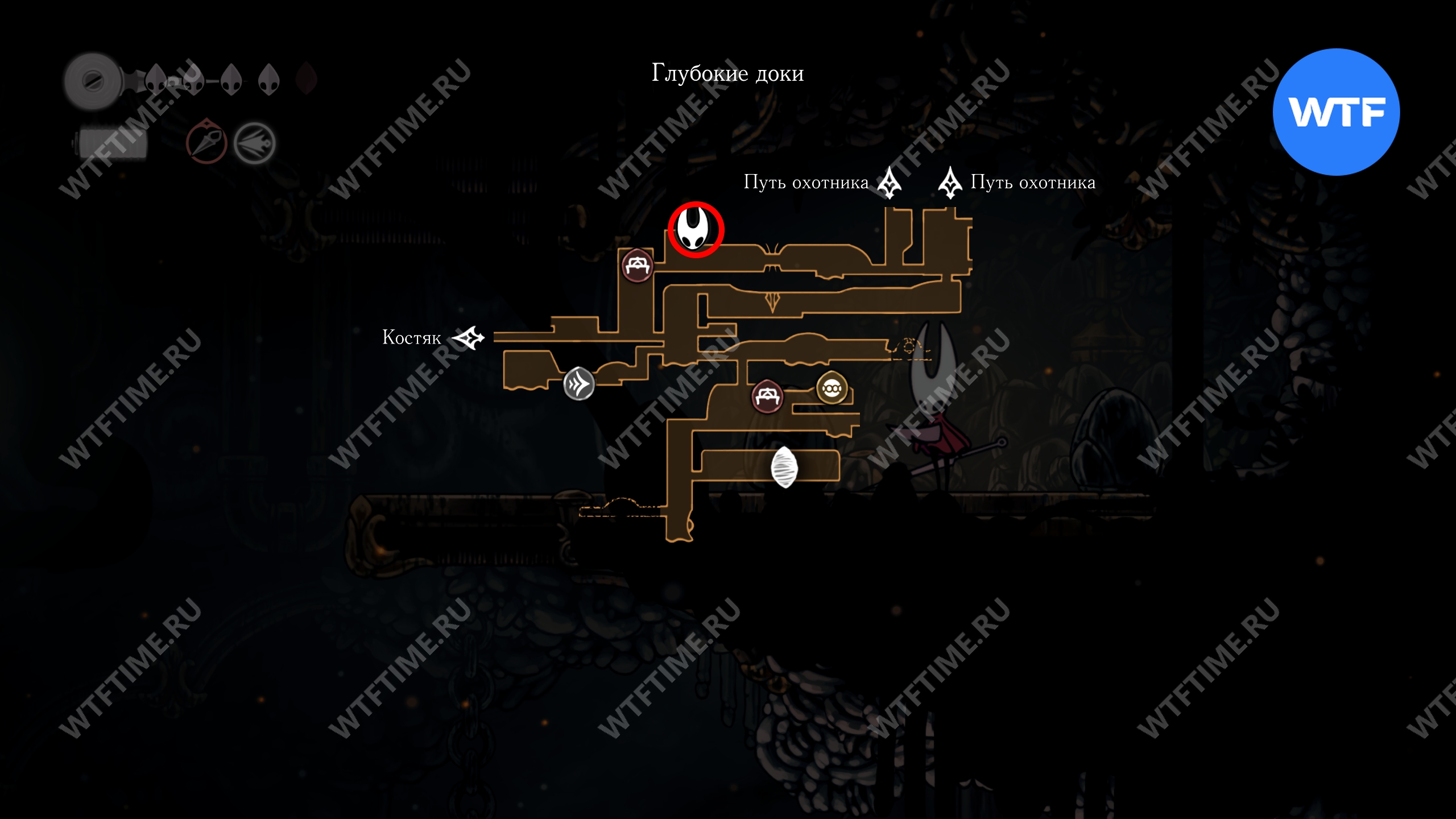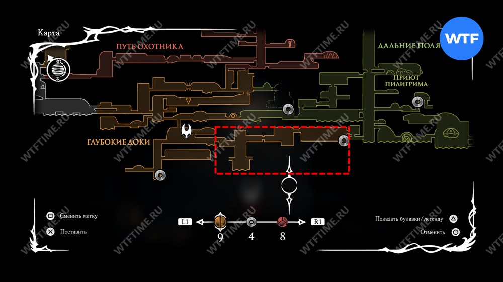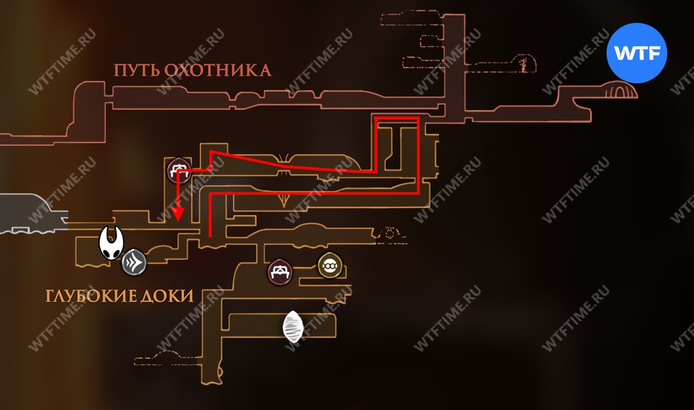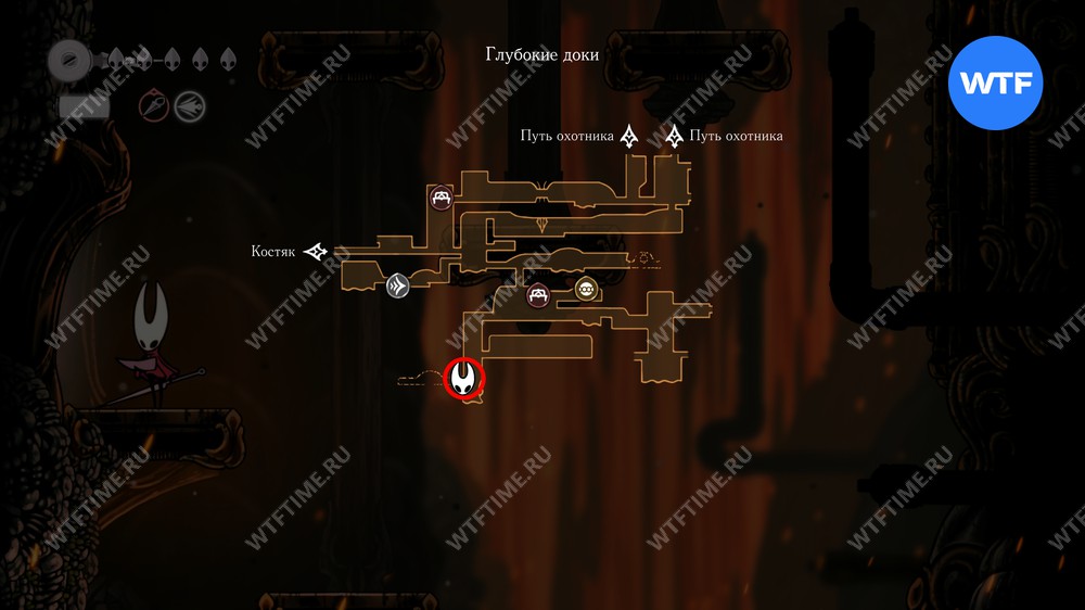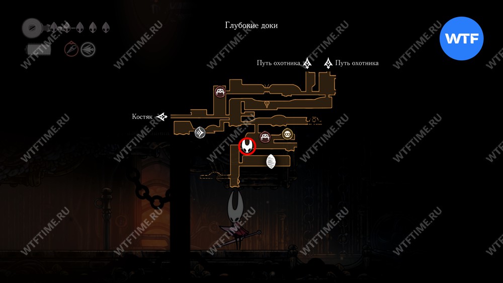 После прохождения Панцирного леса и получения навыка Цепкий захват, позволяющего вам прыгать по стенам, рекомендуем вернуться в Глубокие доки для дальнейшего изучения.