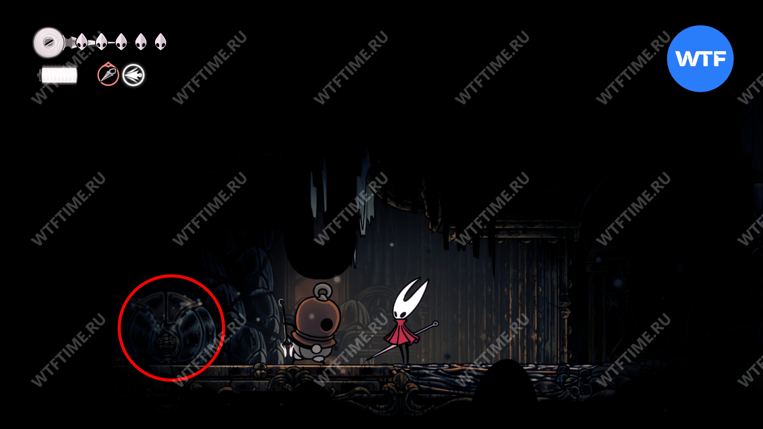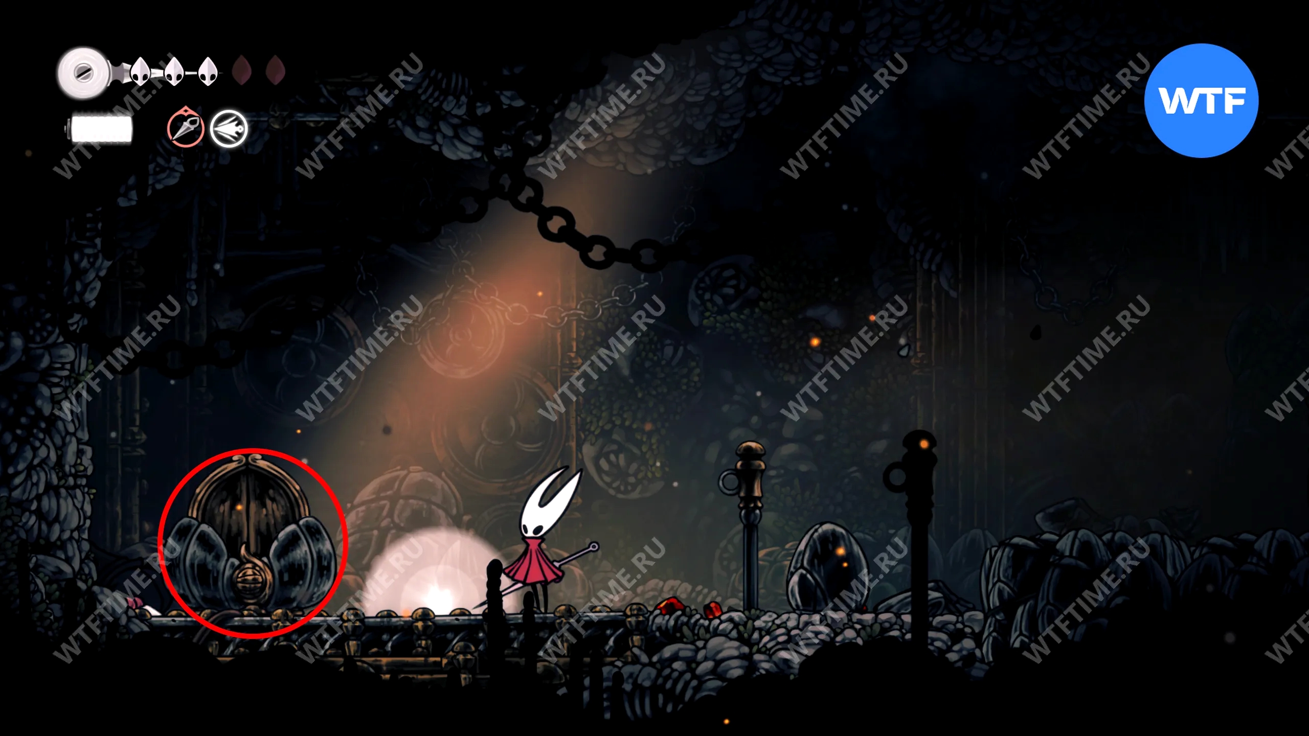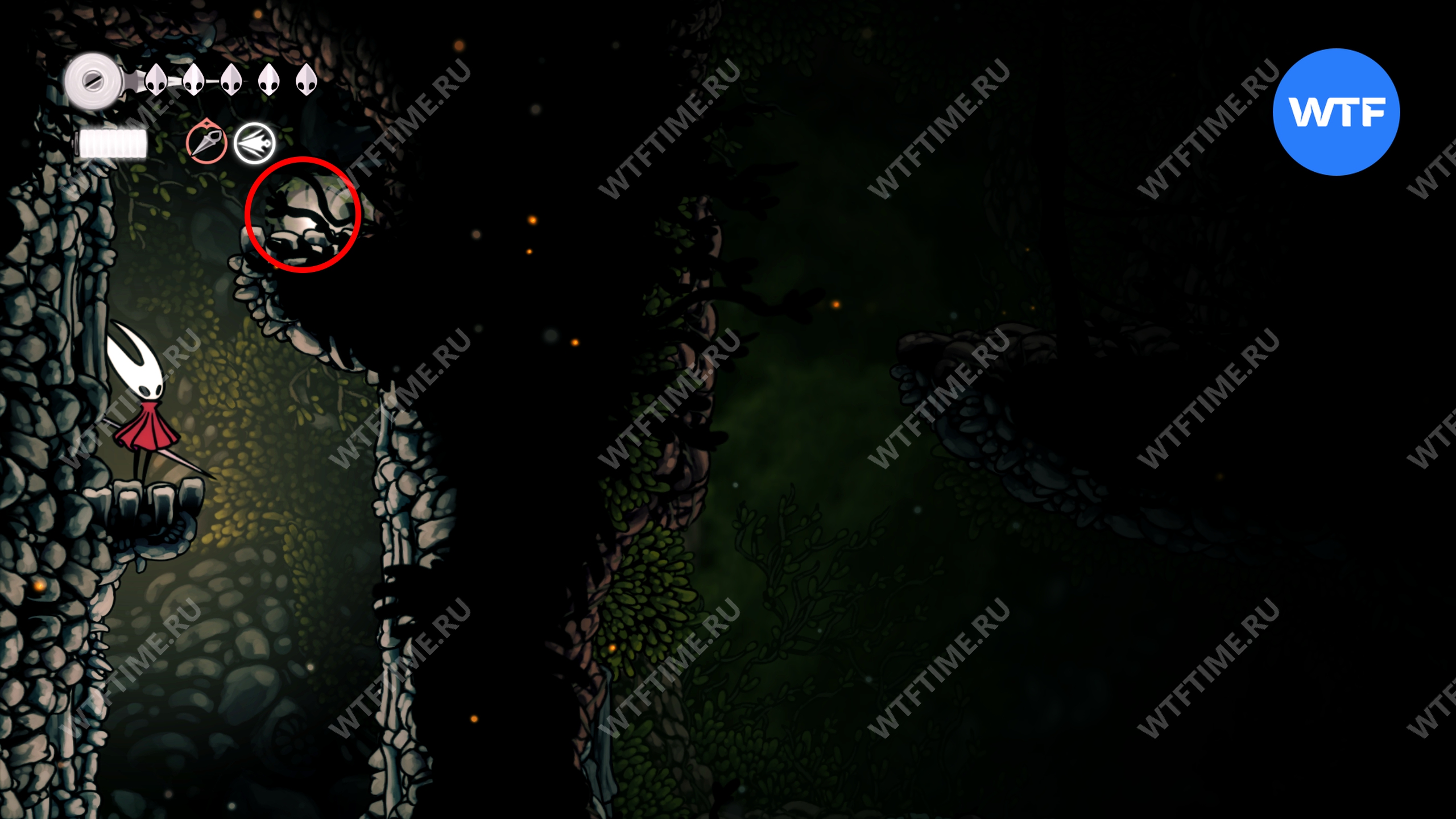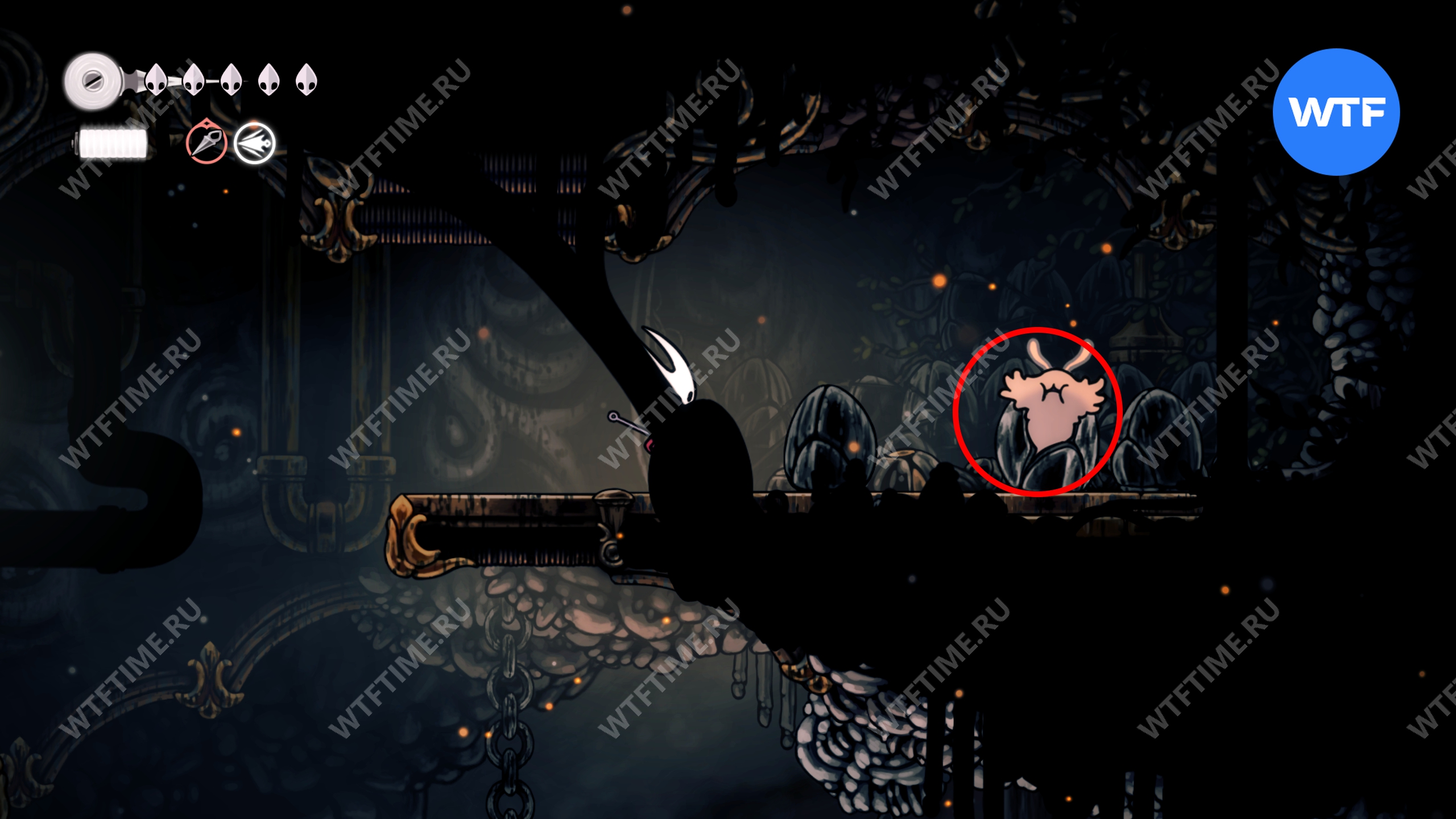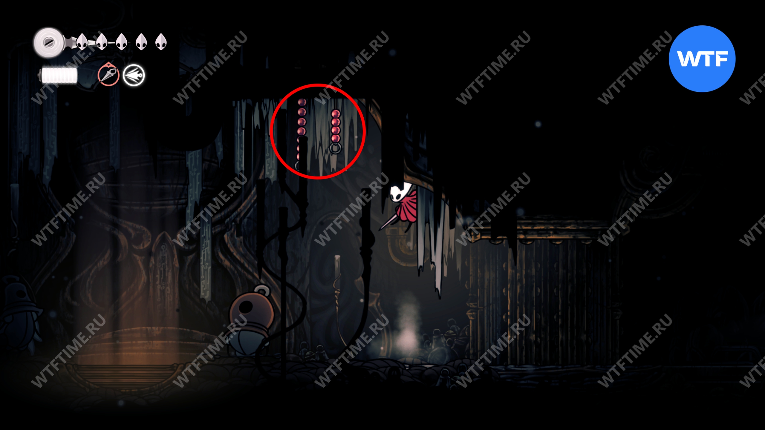 После прохождения Панцирного леса и получения навыка Цепкий захват, позволяющего вам прыгать по стенам, рекомендуем вернуться в Глубокие доки для дальнейшего изучения.