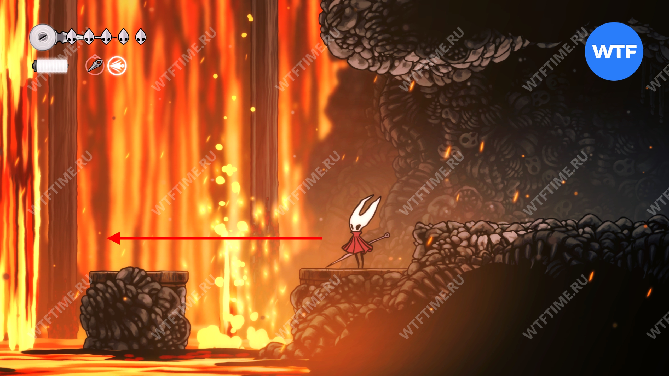 Обратите внимание. Все время прыгайте и не стойте на месте, иначе огонь очень быстро вас убьет.