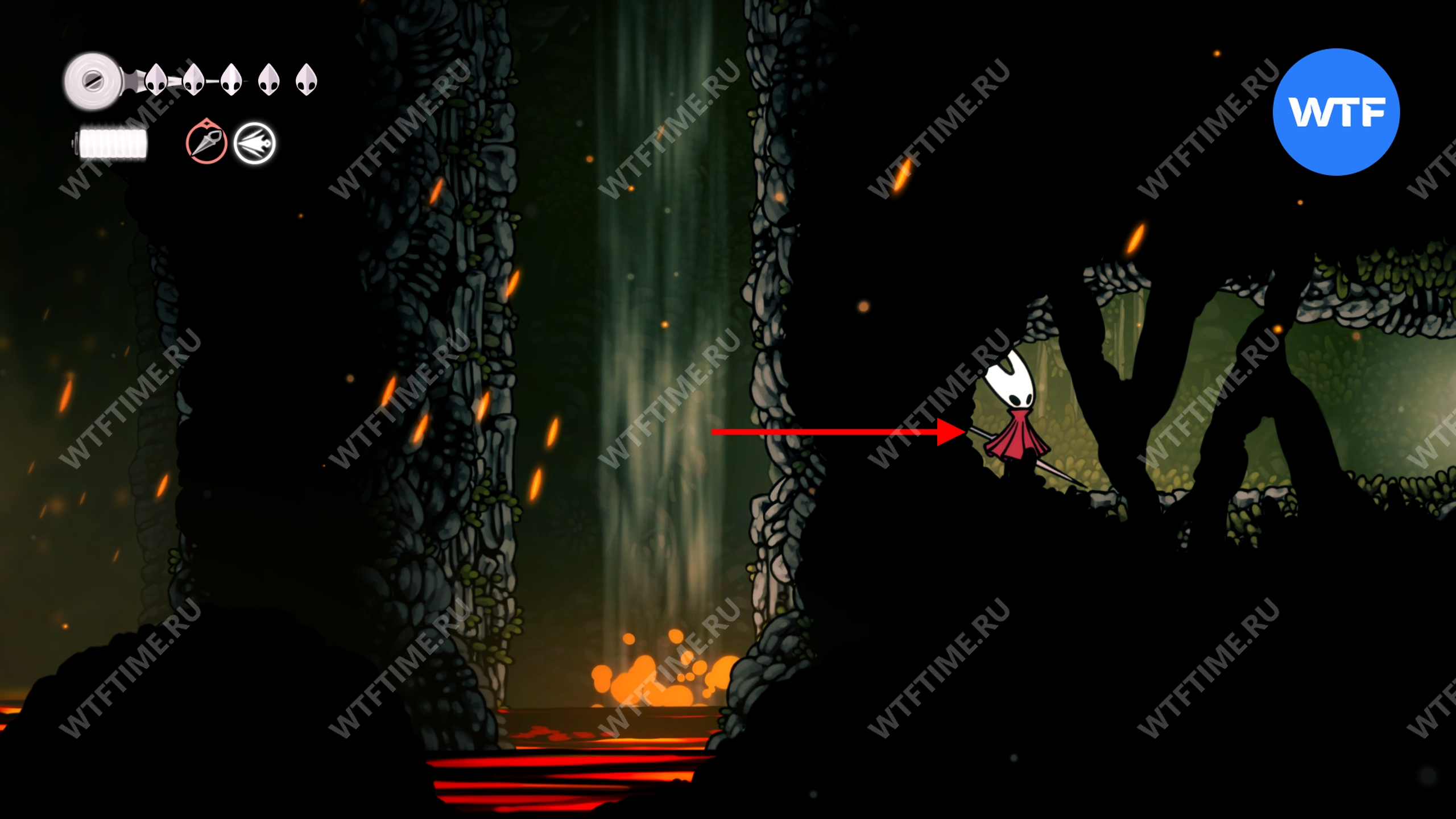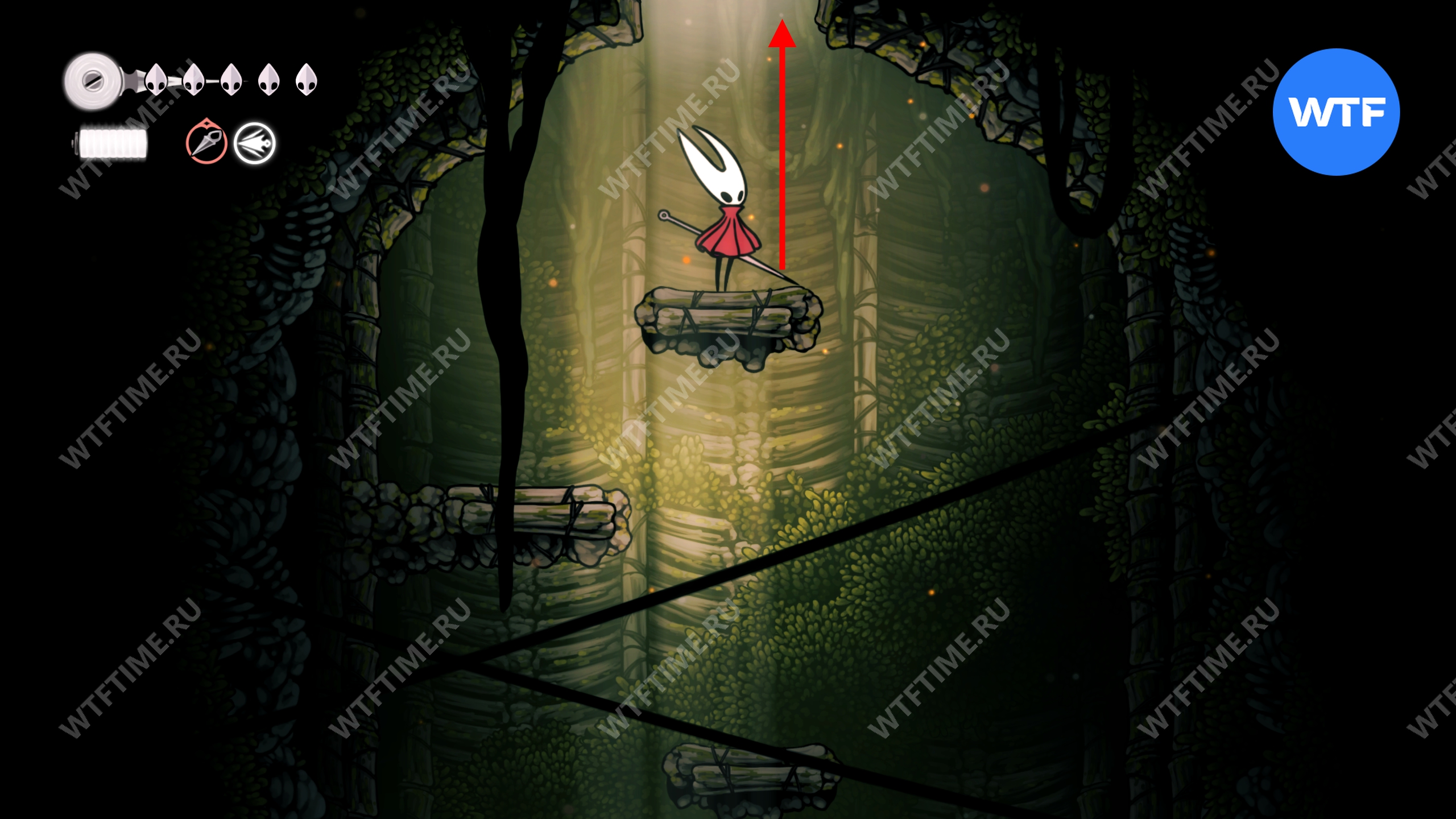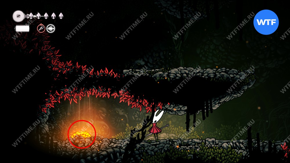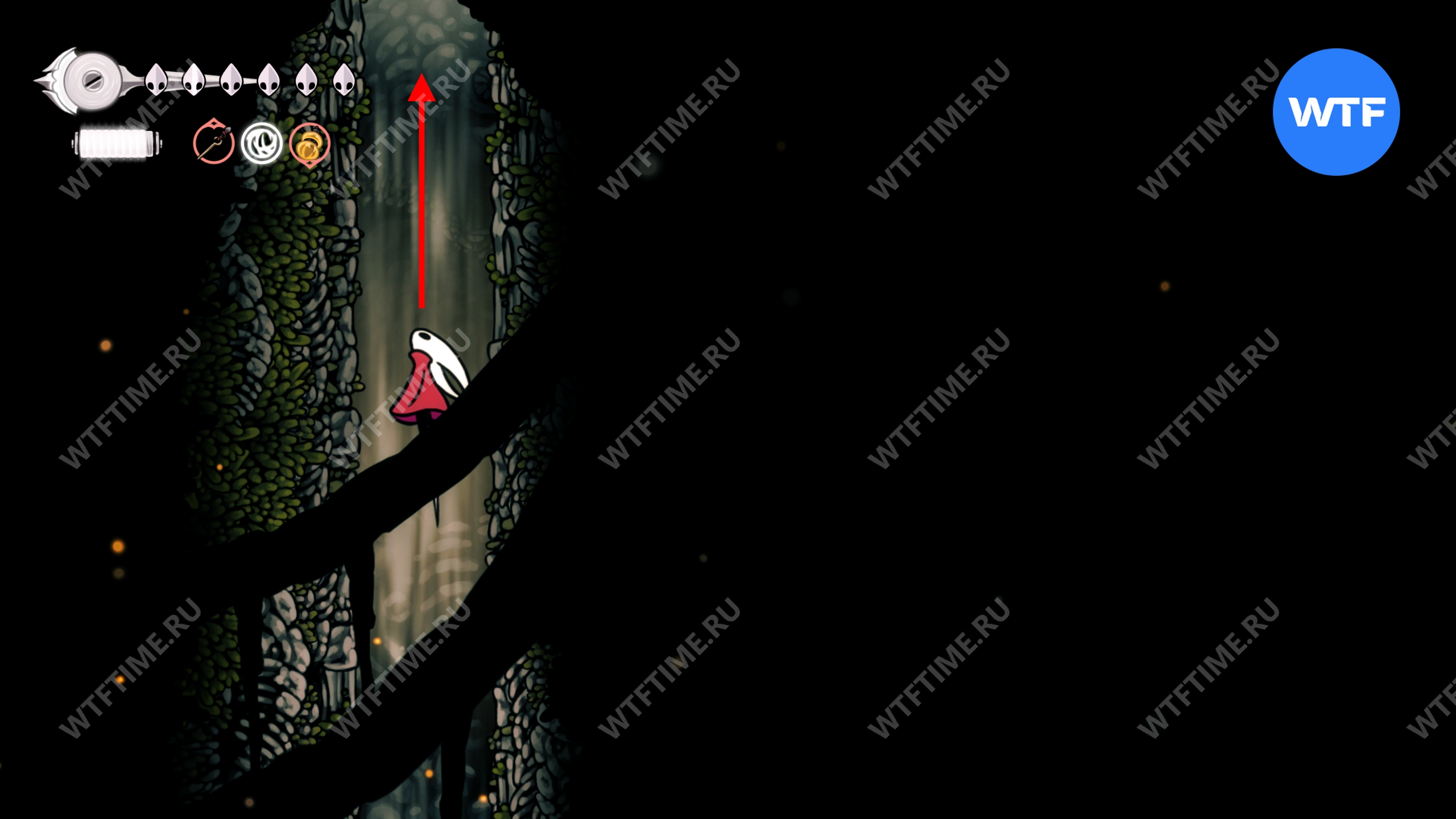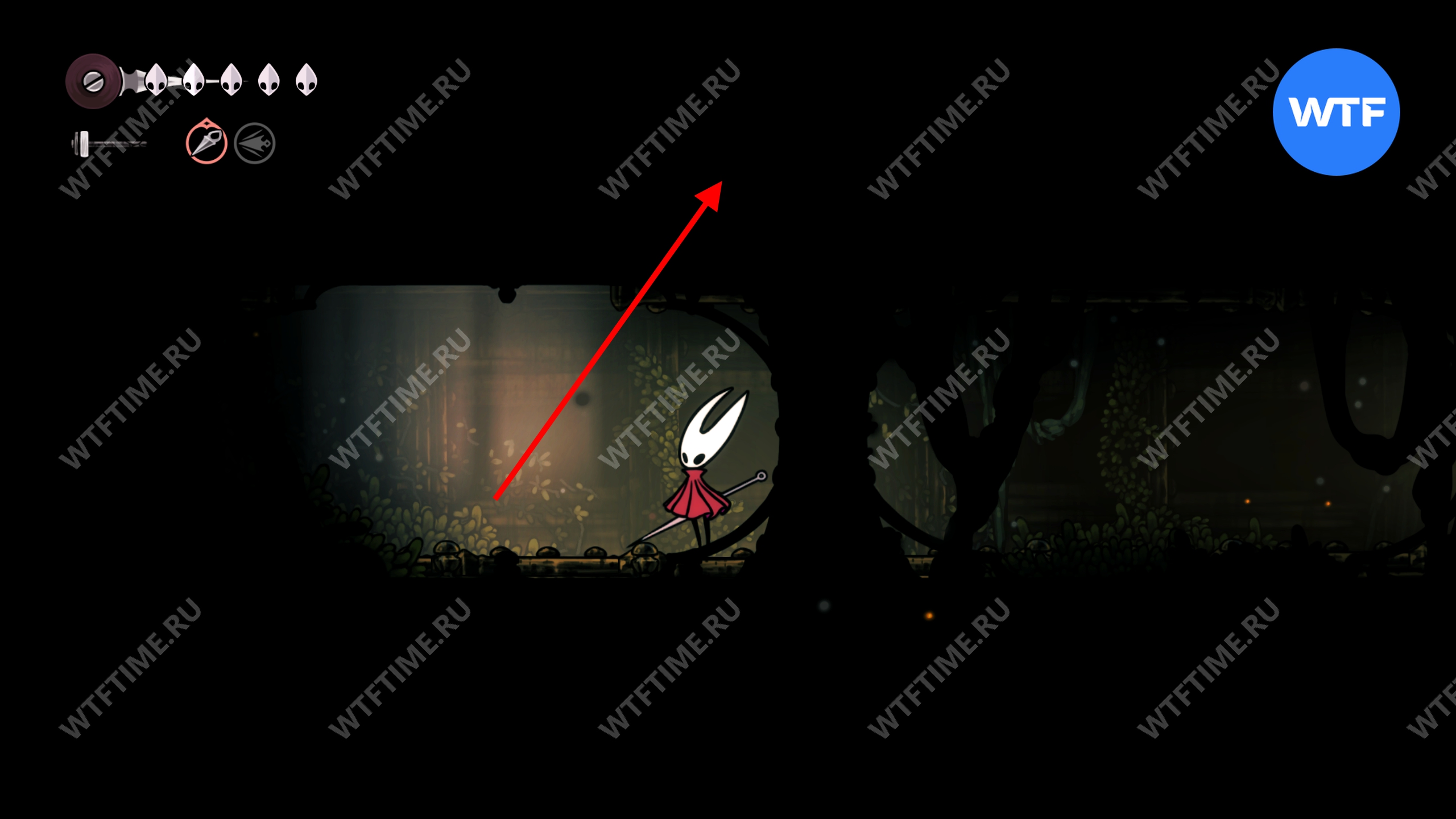 Чуть левее и ниже платформы с колокольчиком есть стена, которую можно разрушить. Этот проход вернет вас обратно в Глубокие доки, однако ходить туда сейчас особого смысла нет.