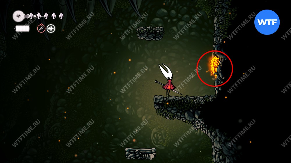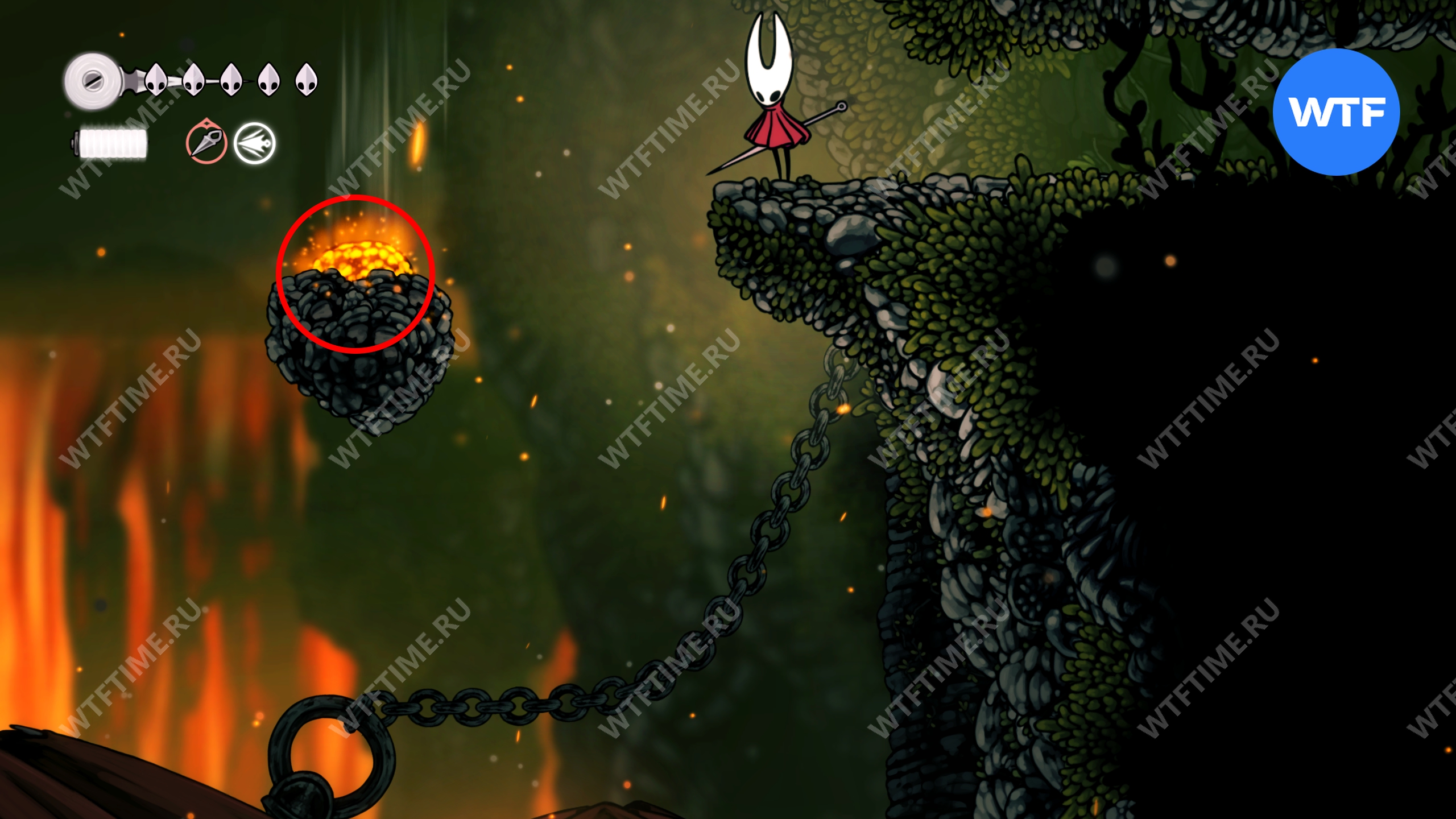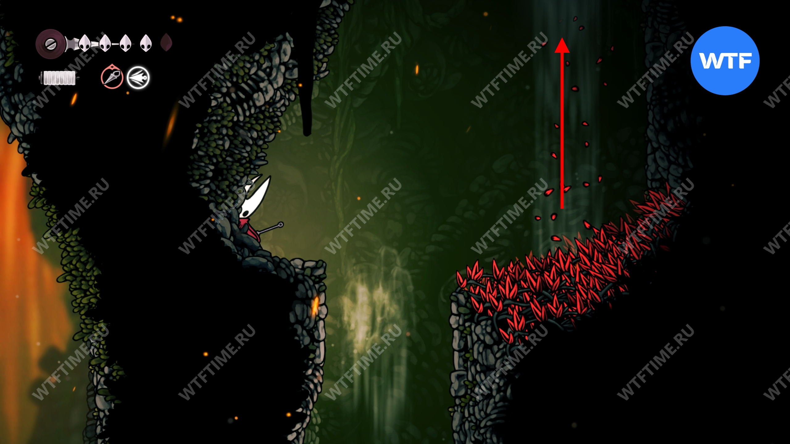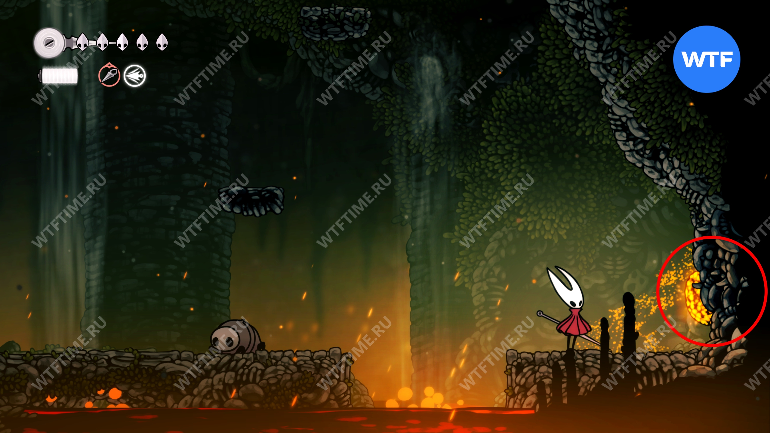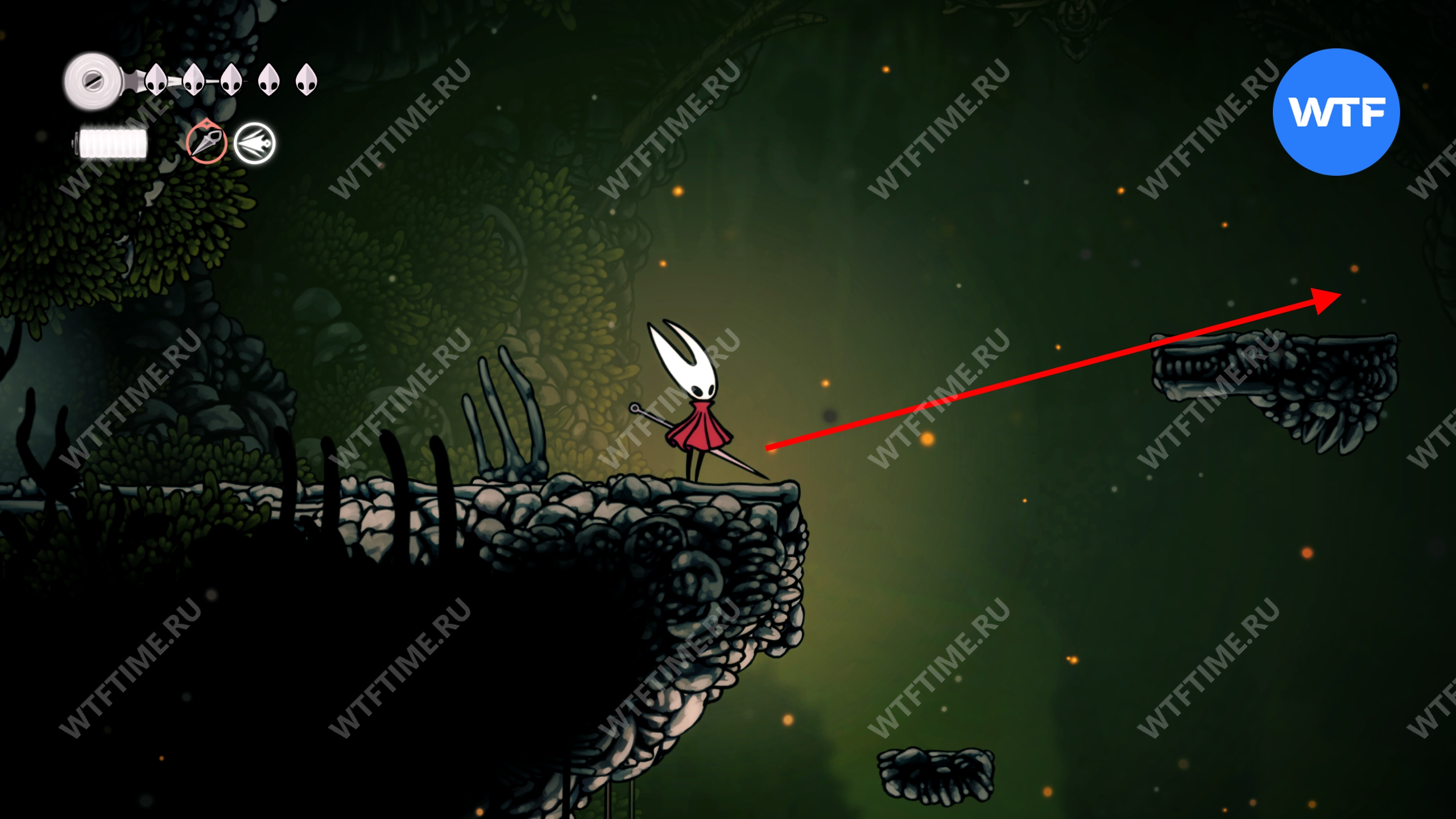 Чуть левее и ниже платформы с колокольчиком есть стена, которую можно разрушить. Этот проход вернет вас обратно в Глубокие доки, однако ходить туда сейчас особого смысла нет.