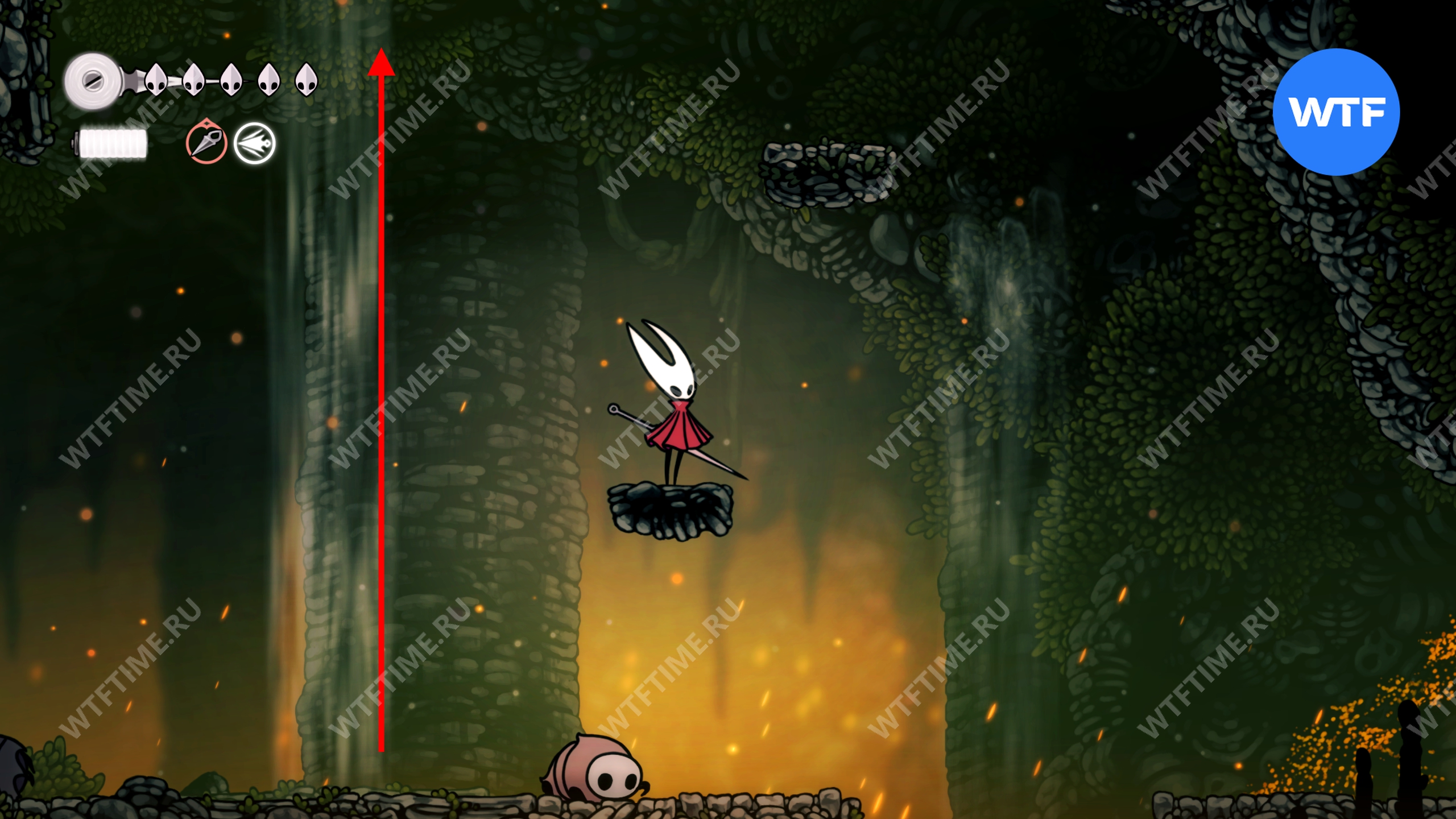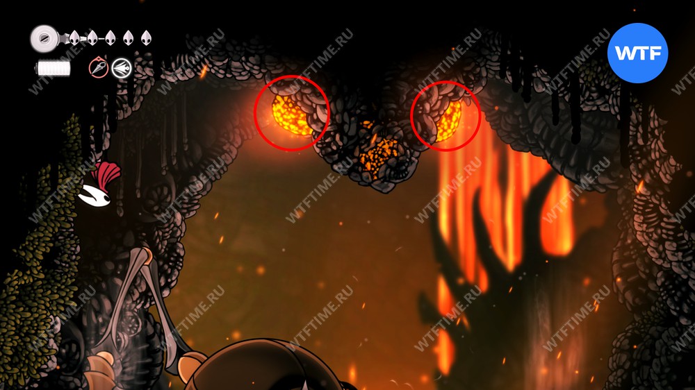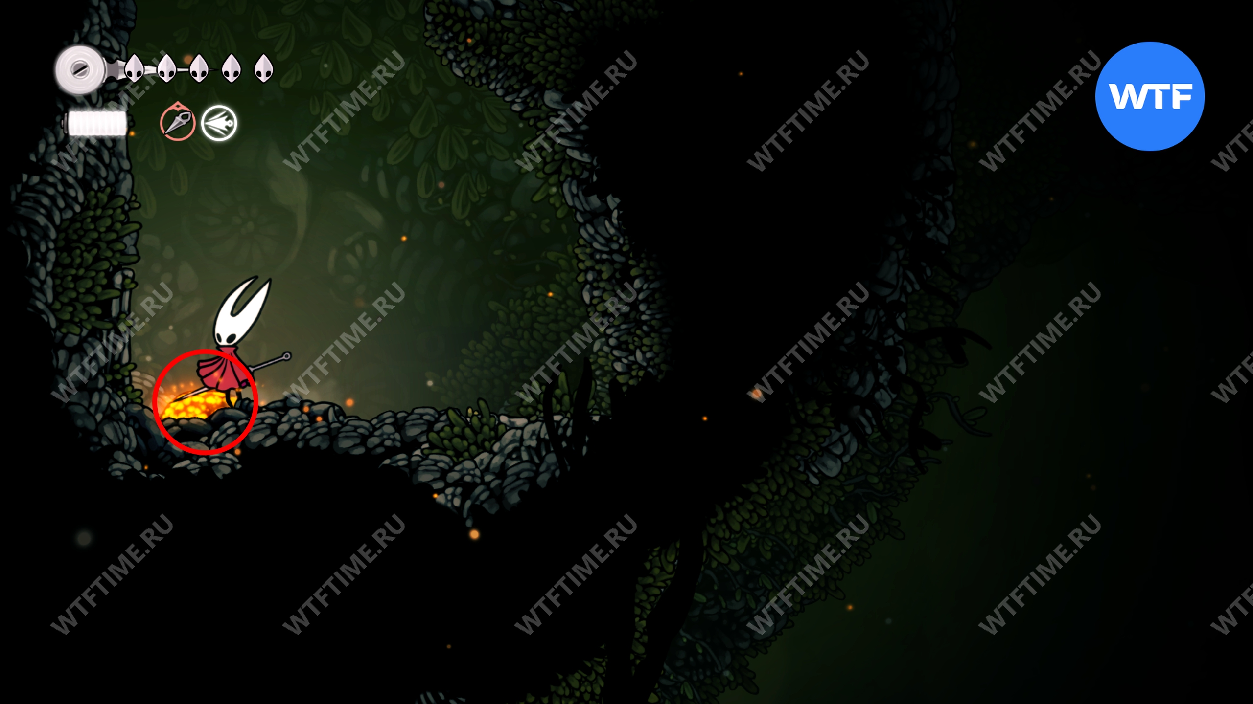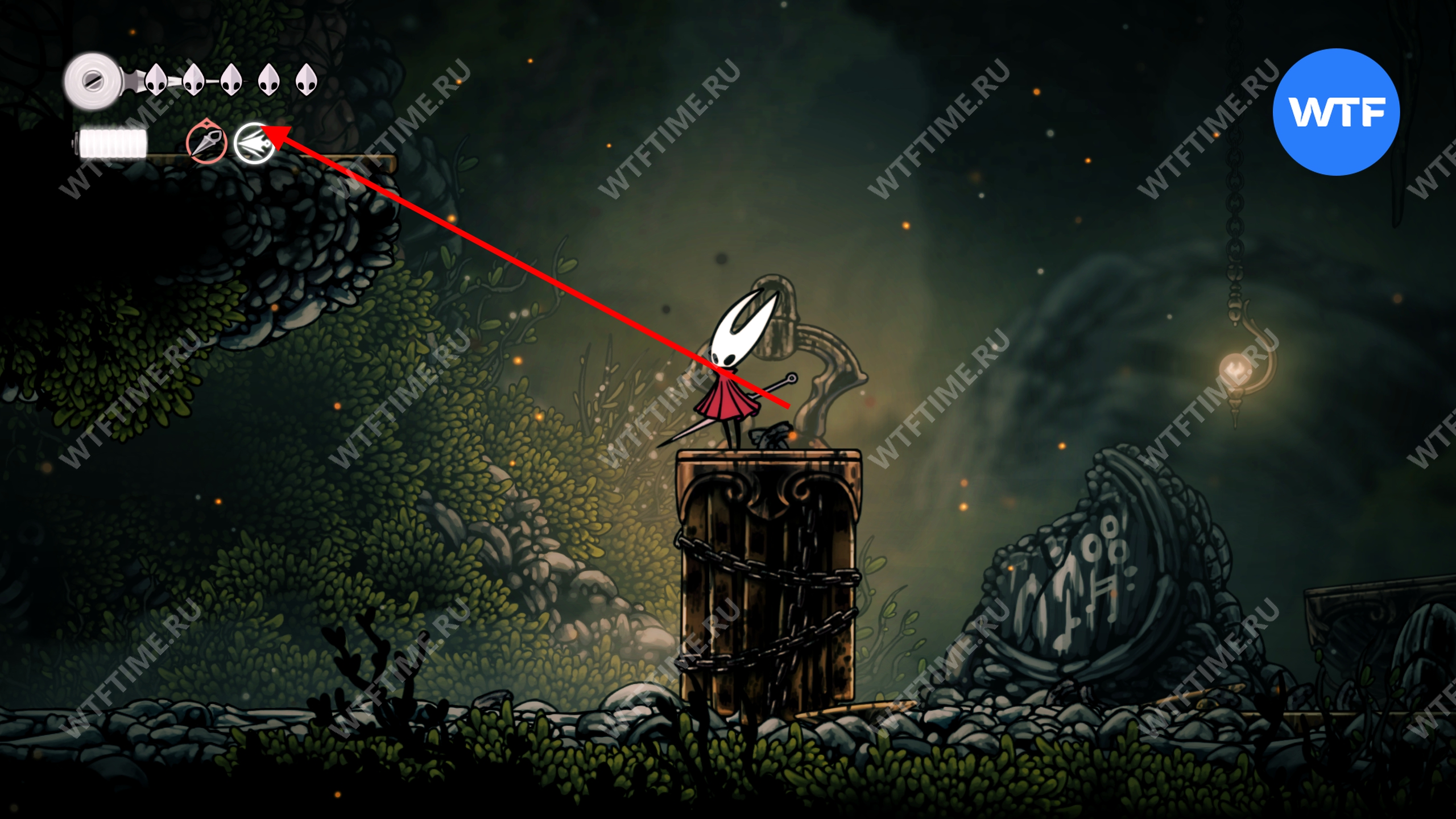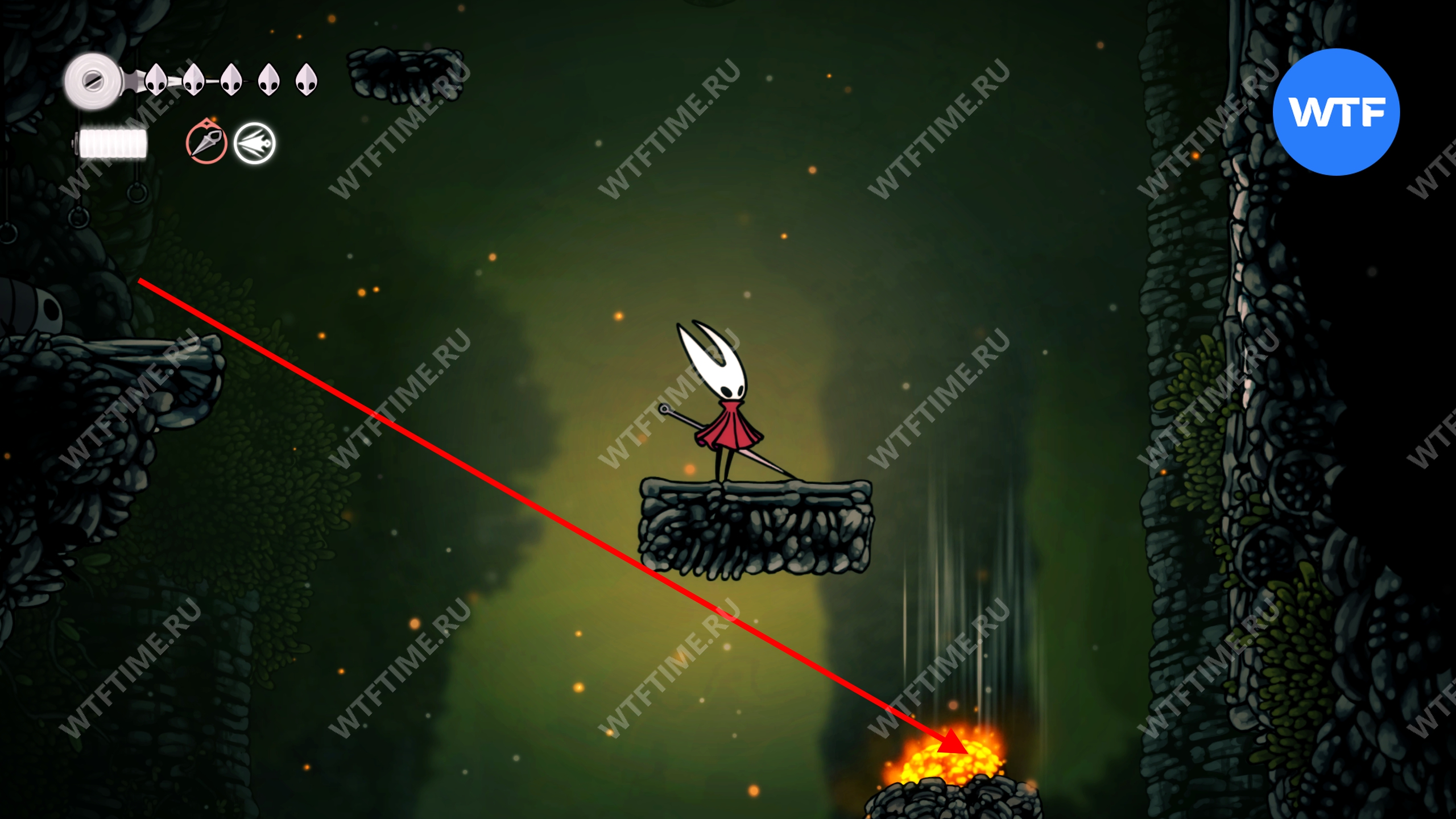 Чуть левее и ниже платформы с колокольчиком есть стена, которую можно разрушить. Этот проход вернет вас обратно в Глубокие доки, однако ходить туда сейчас особого смысла нет.