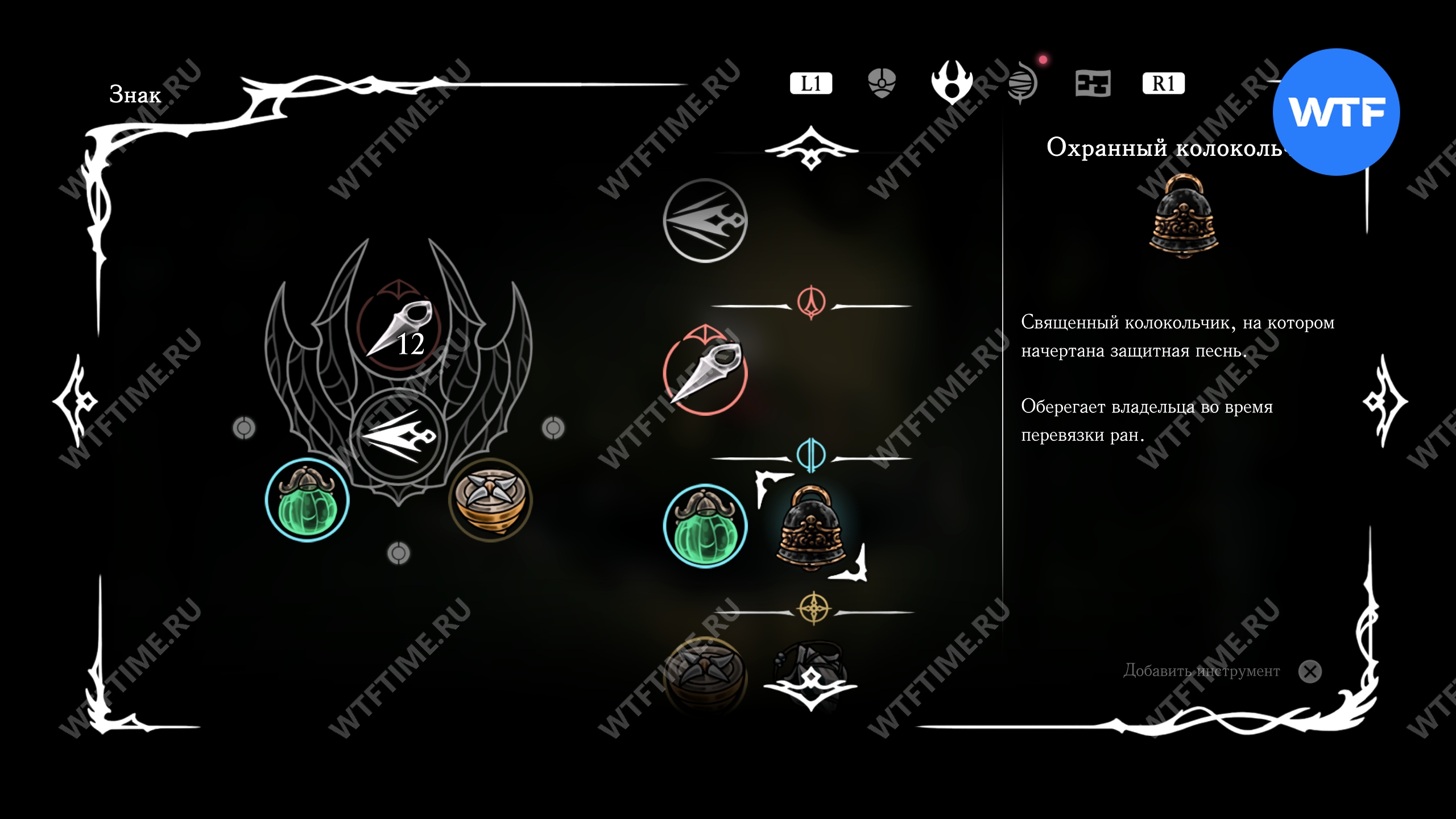 Продолжайте подниматься наверх и заберите со стола новый инструмент — «Охранный колокольчик». После экипировки будет оберегать владельца во время перевязки ран.