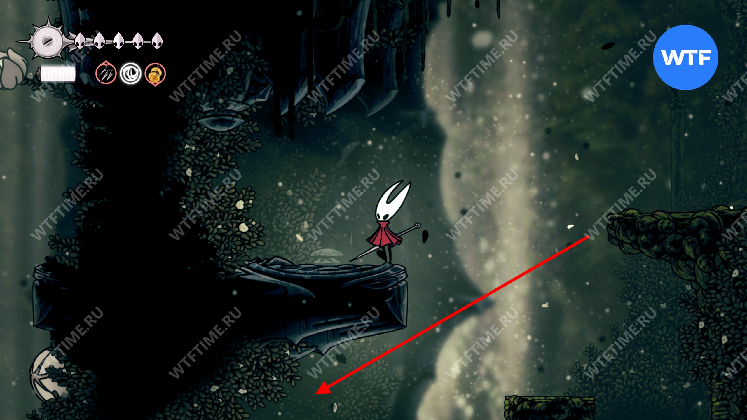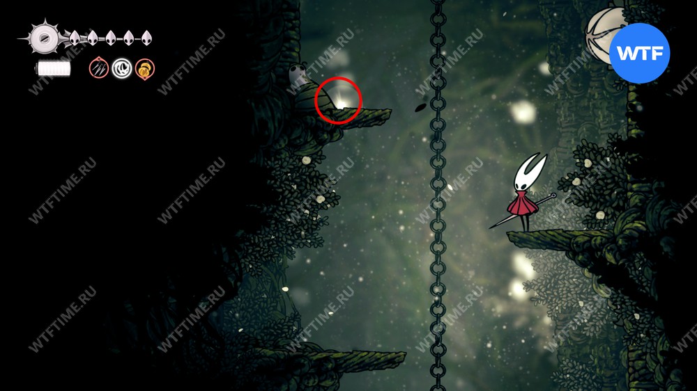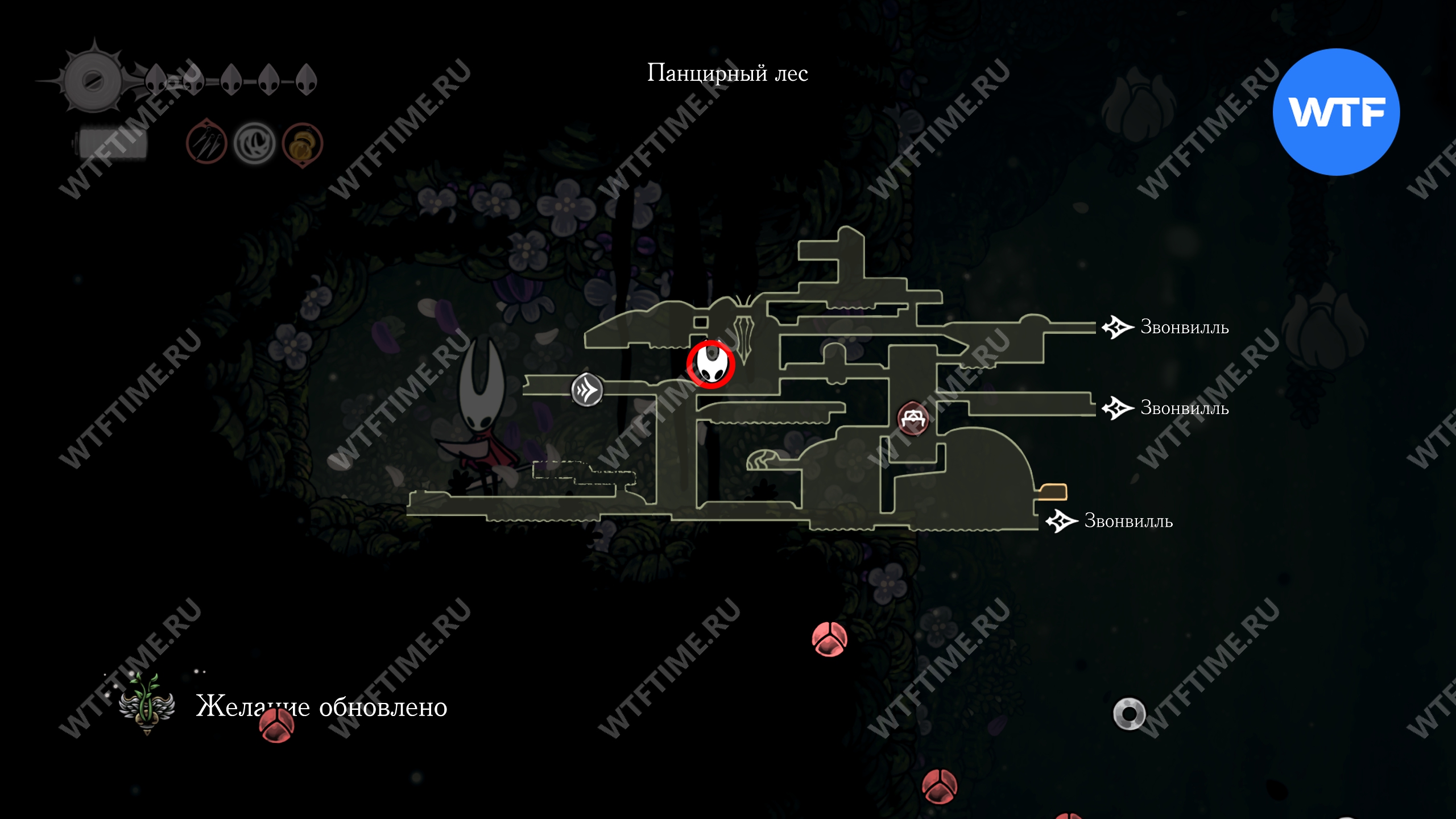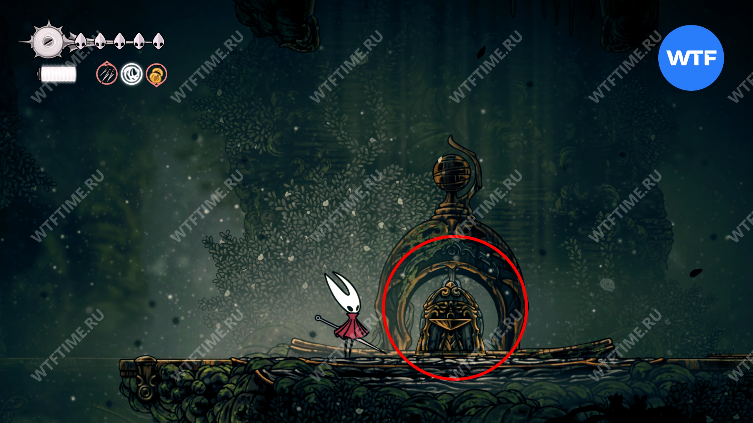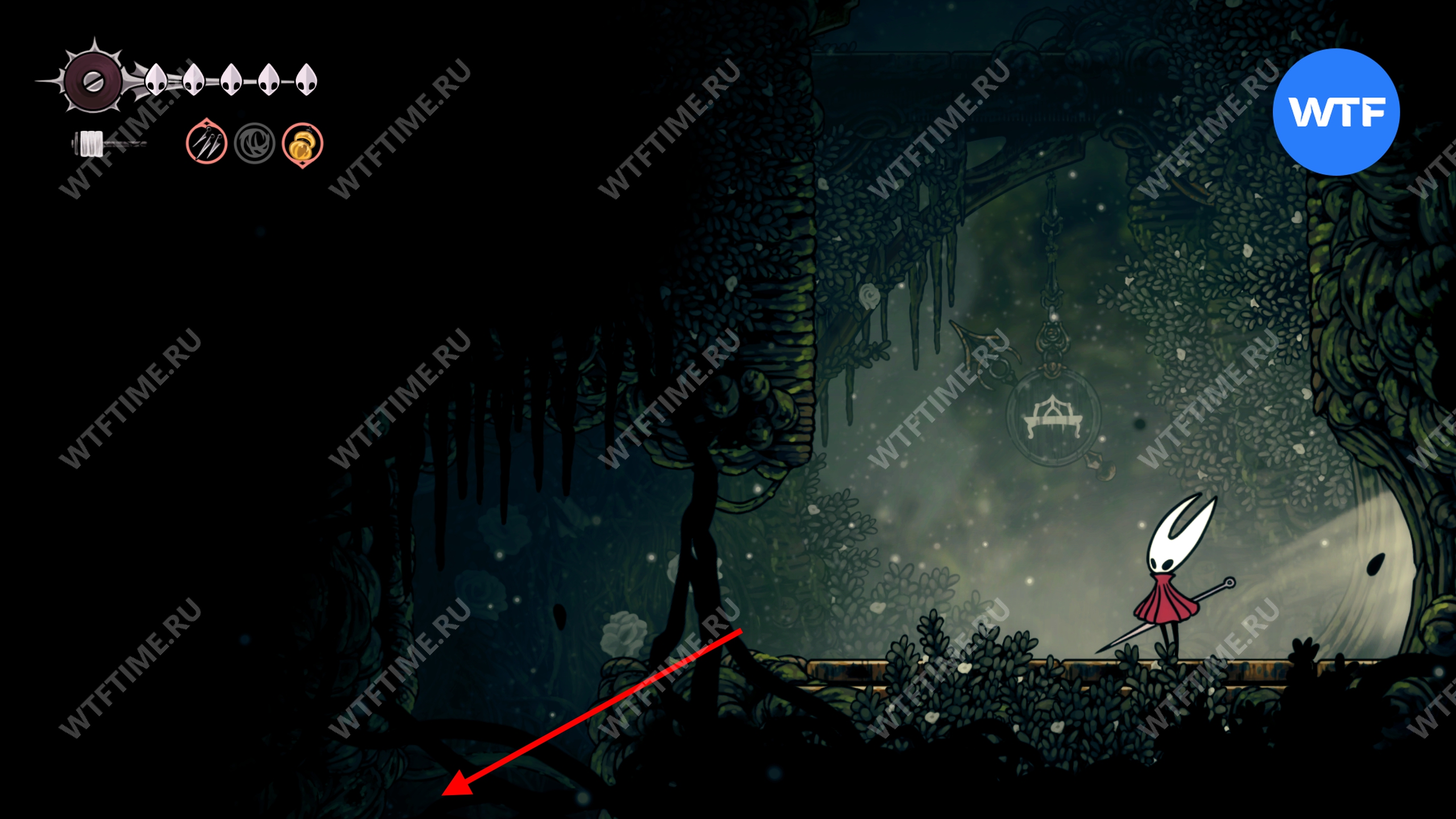 Залезьте на неё и сломайте несколько стен из колокольчиков, чтобы оказаться в Звонвилле. Там спускайтесь по шахтам вниз и влево, пока не вернетесь обратно в Панцирный лес. Позже мы будем исследовать Звонвилль отдельно, так что пока не отвлекайтесь на это.