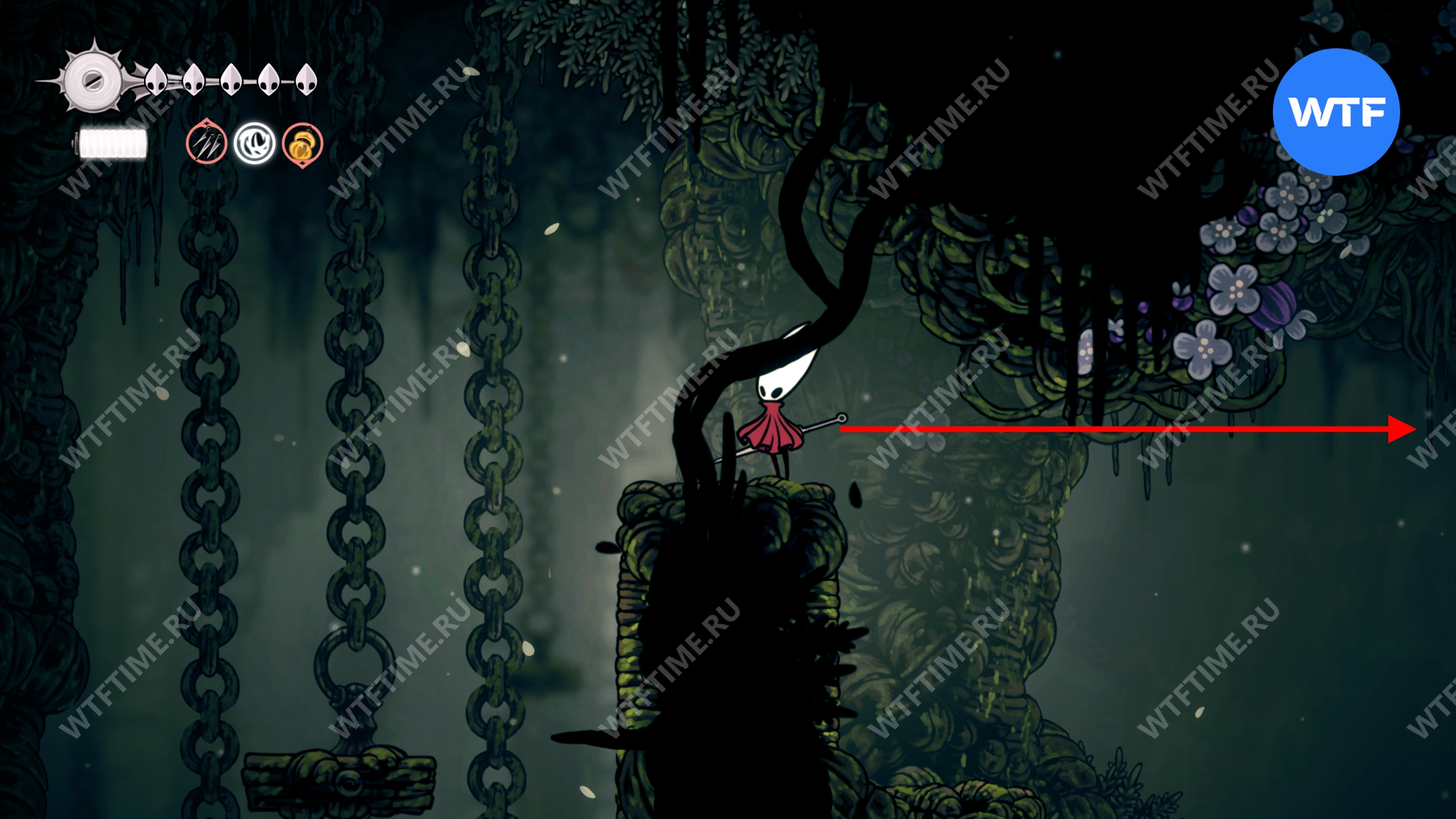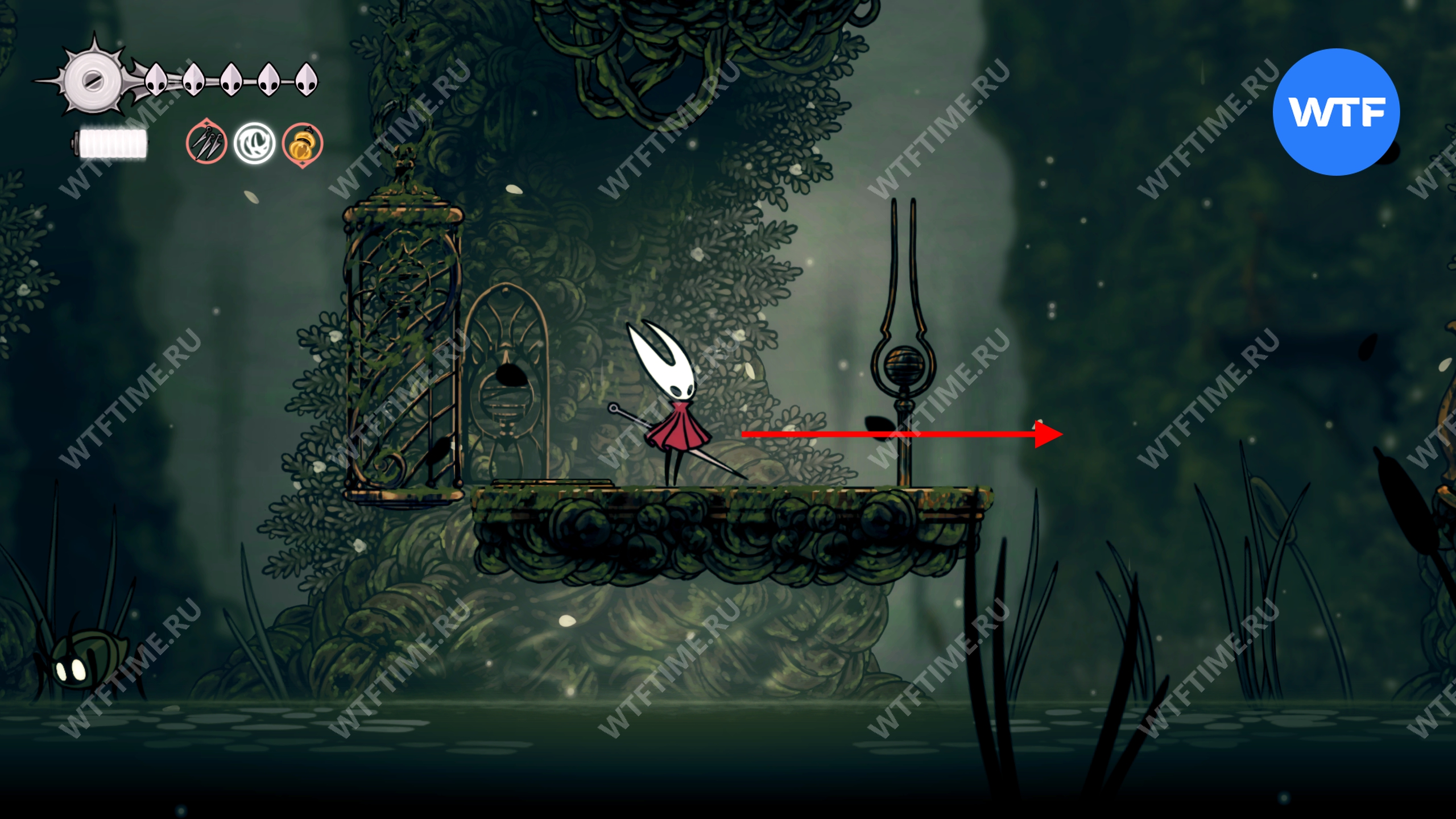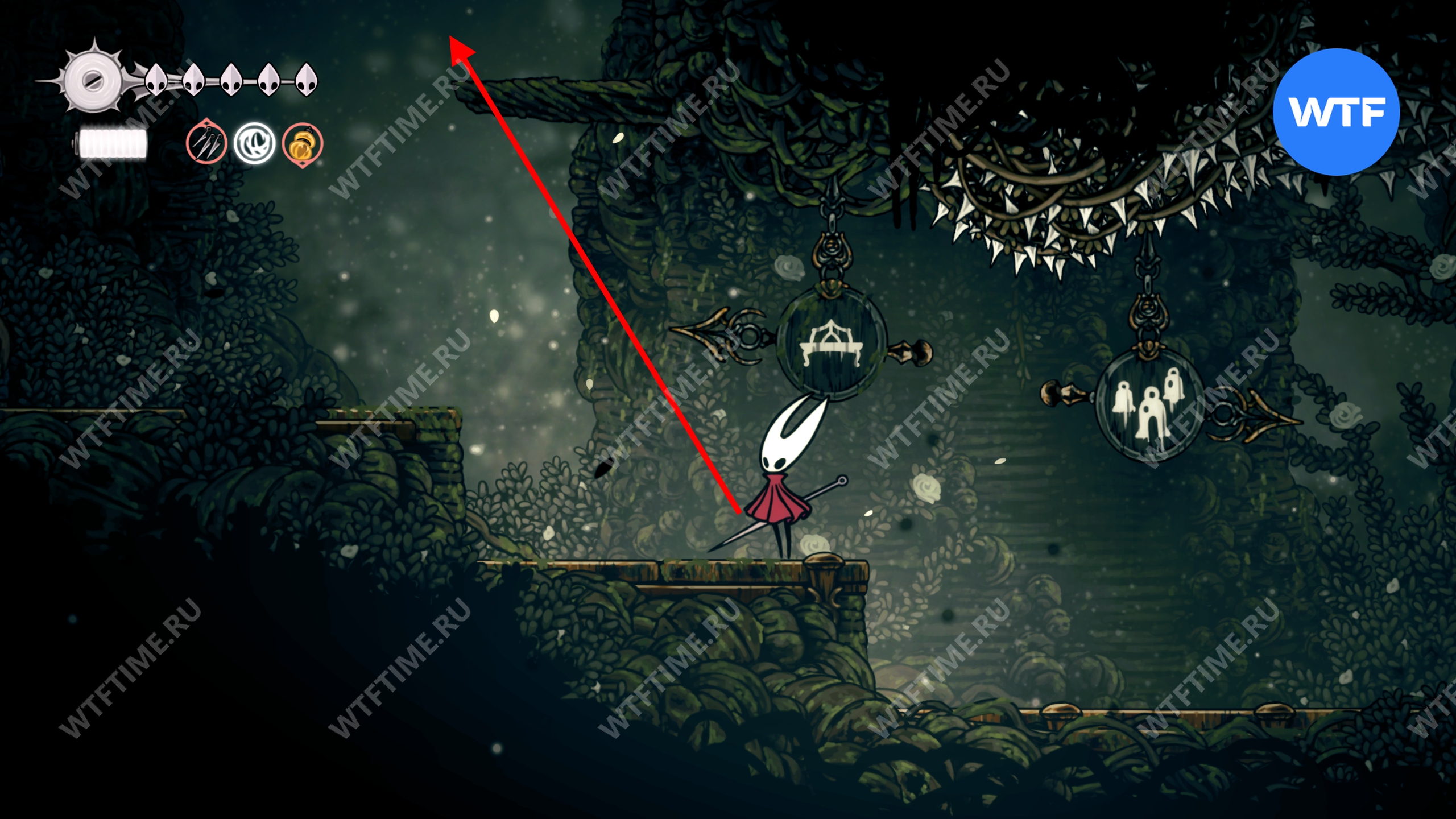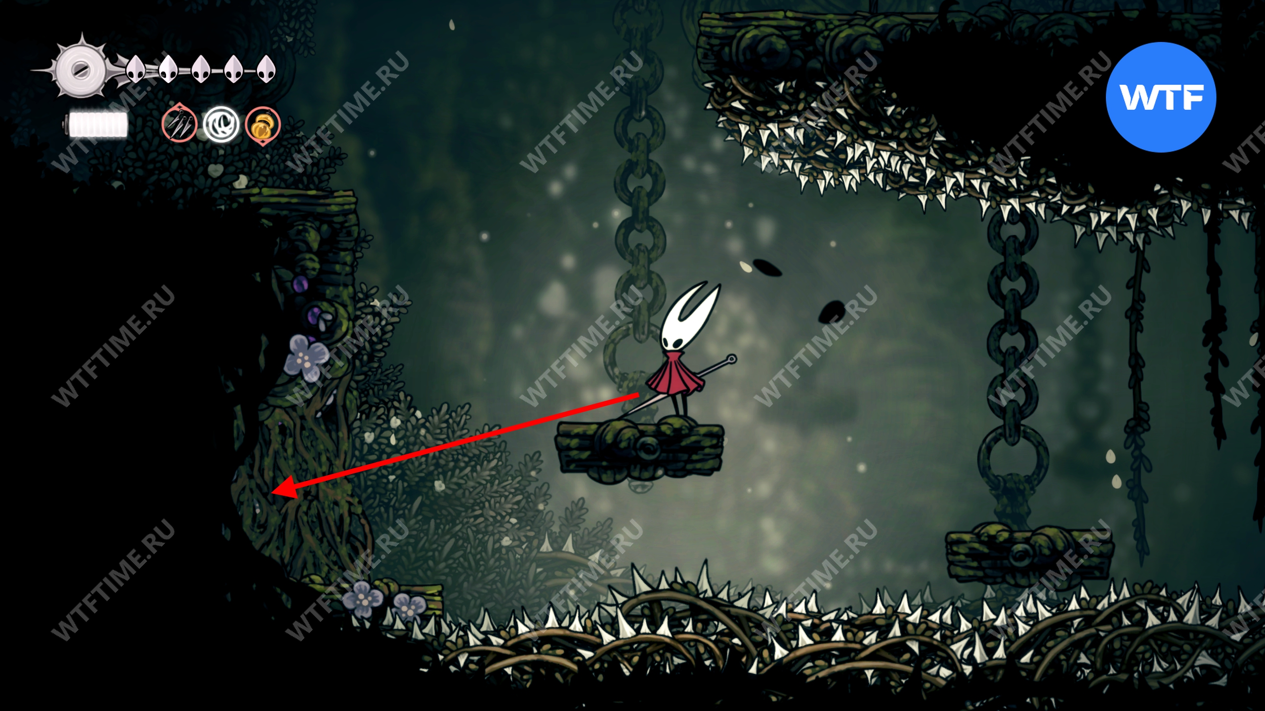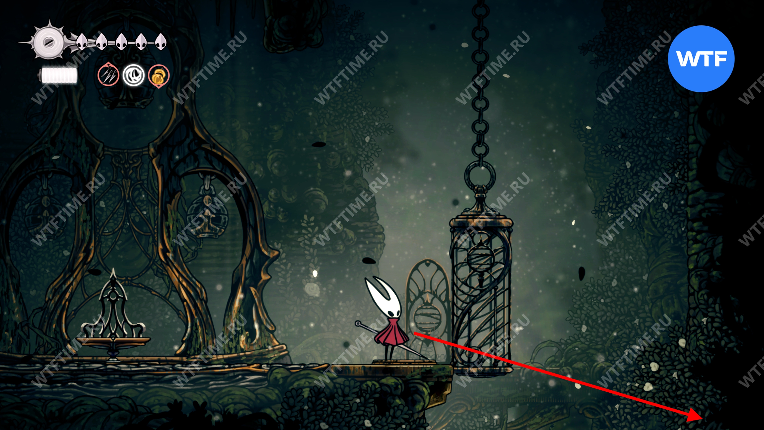 Поднимитесь обратно на вершину шипастого склона и оттуда продолжайте подъем по платформам вверх и влево, чтобы добраться до местной станции Звонкого пути. Разблокировав её, вы сможете переместиться в одну из предыдущих локаций, чтобы быстро подлечиться и сохраниться.