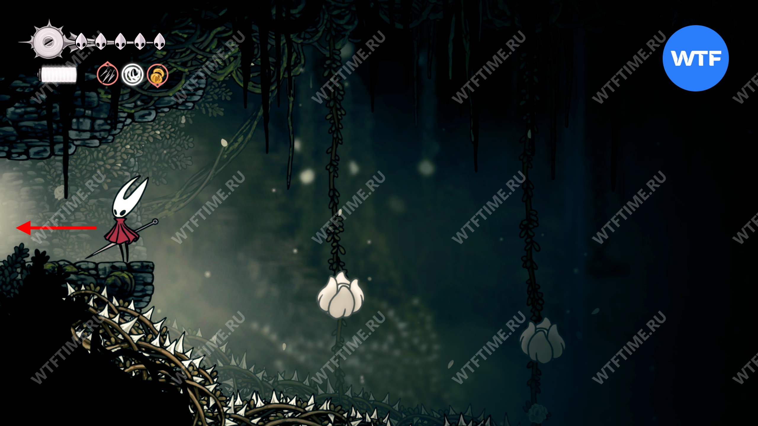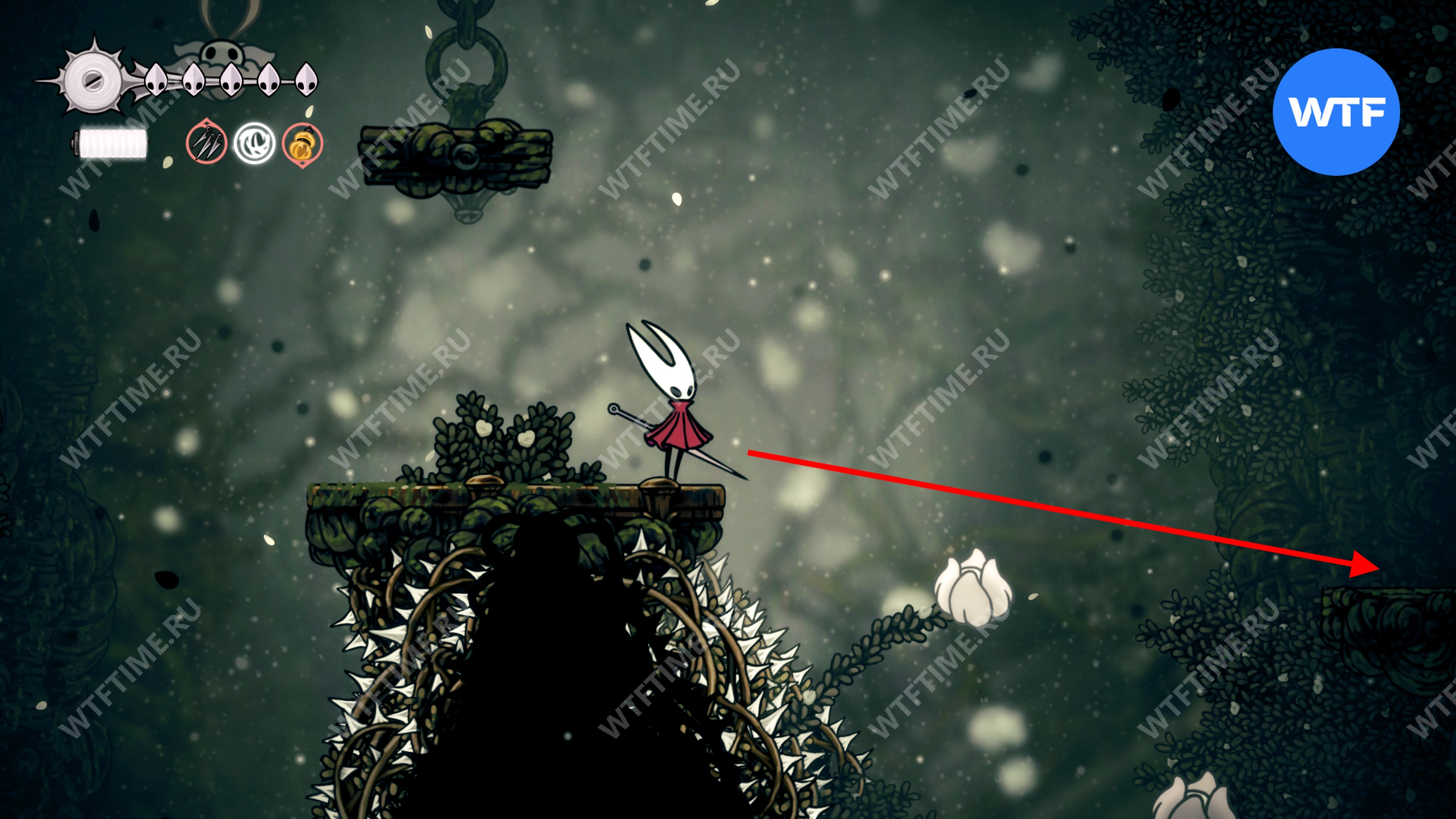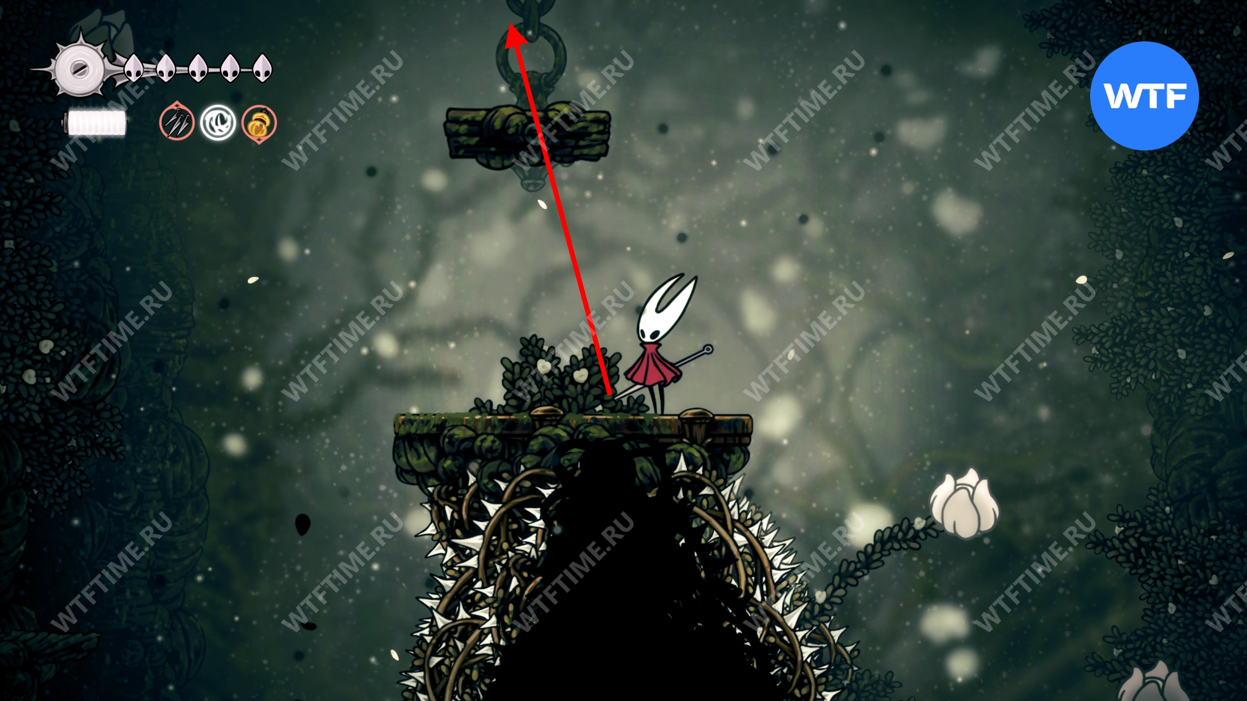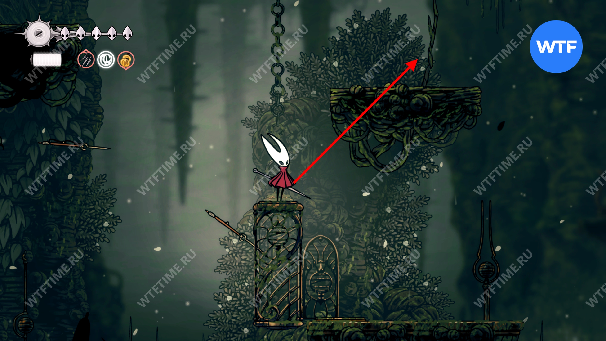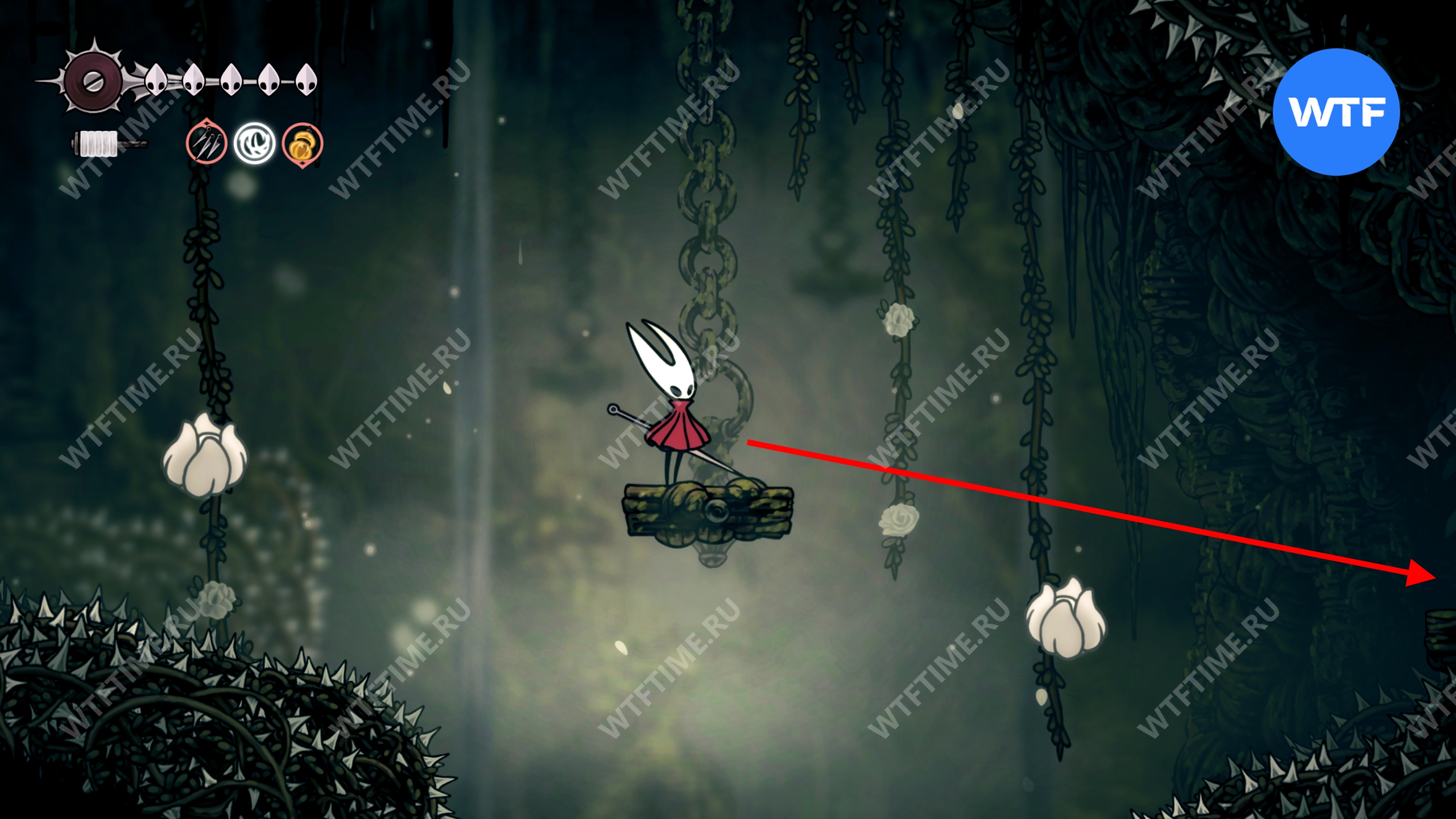 Поднимитесь обратно на вершину шипастого склона и оттуда продолжайте подъем по платформам вверх и влево, чтобы добраться до местной станции Звонкого пути. Разблокировав её, вы сможете переместиться в одну из предыдущих локаций, чтобы быстро подлечиться и сохраниться.