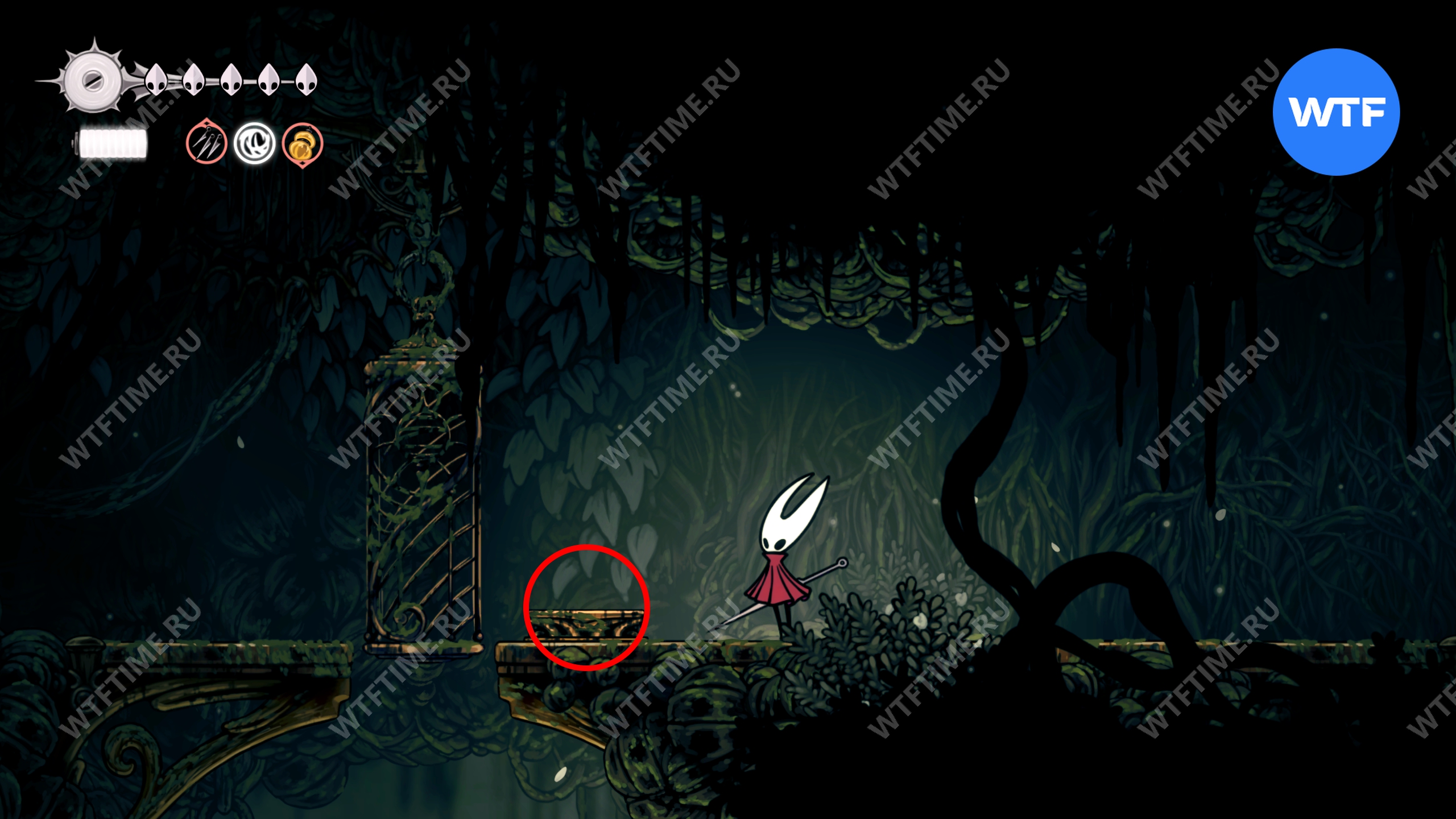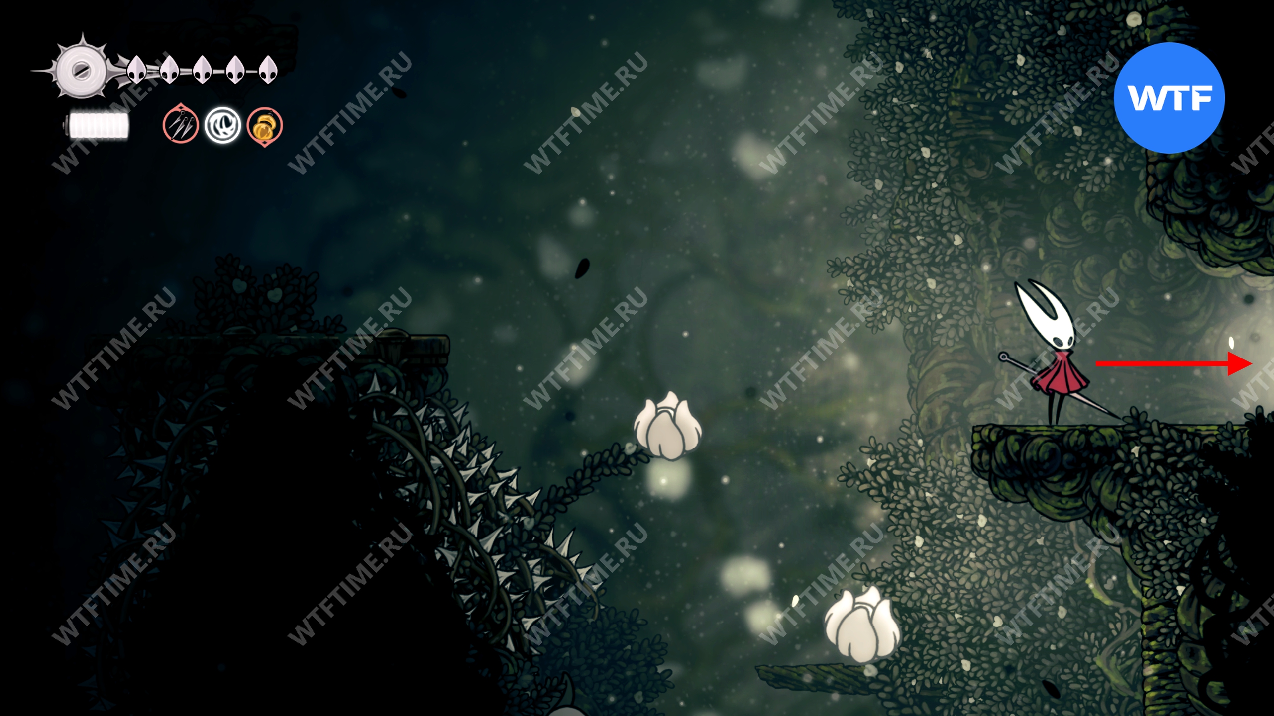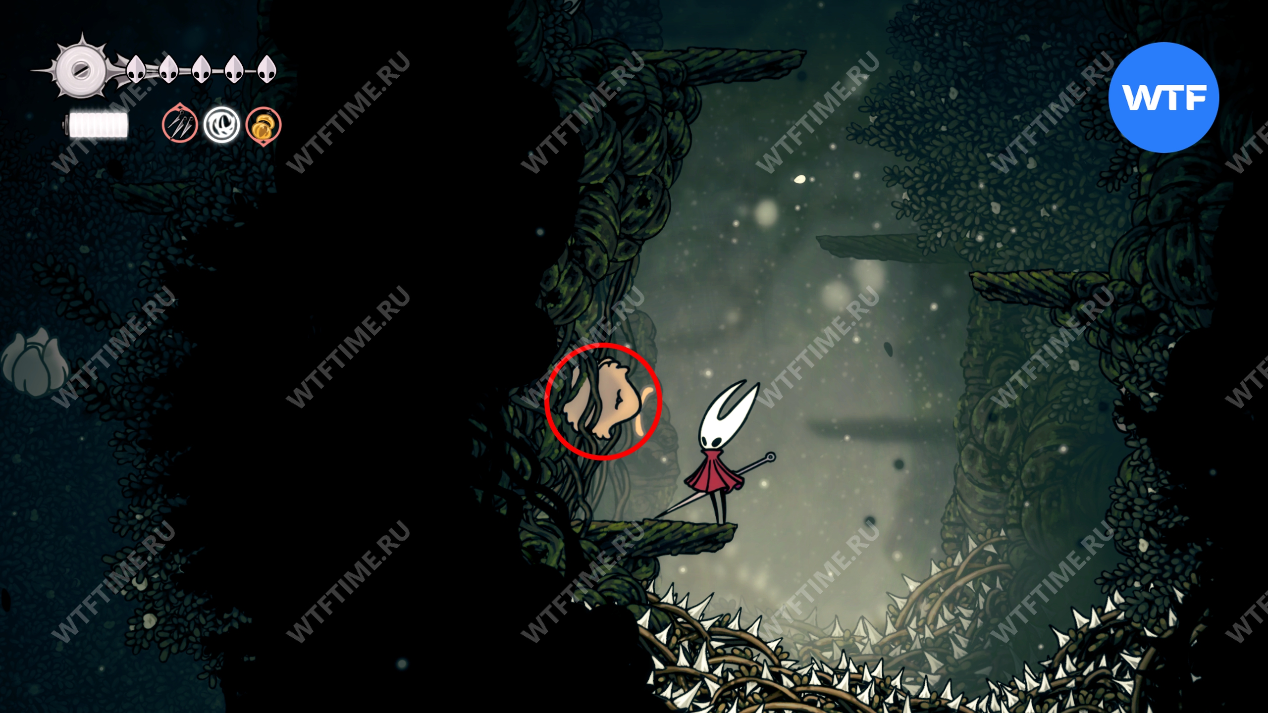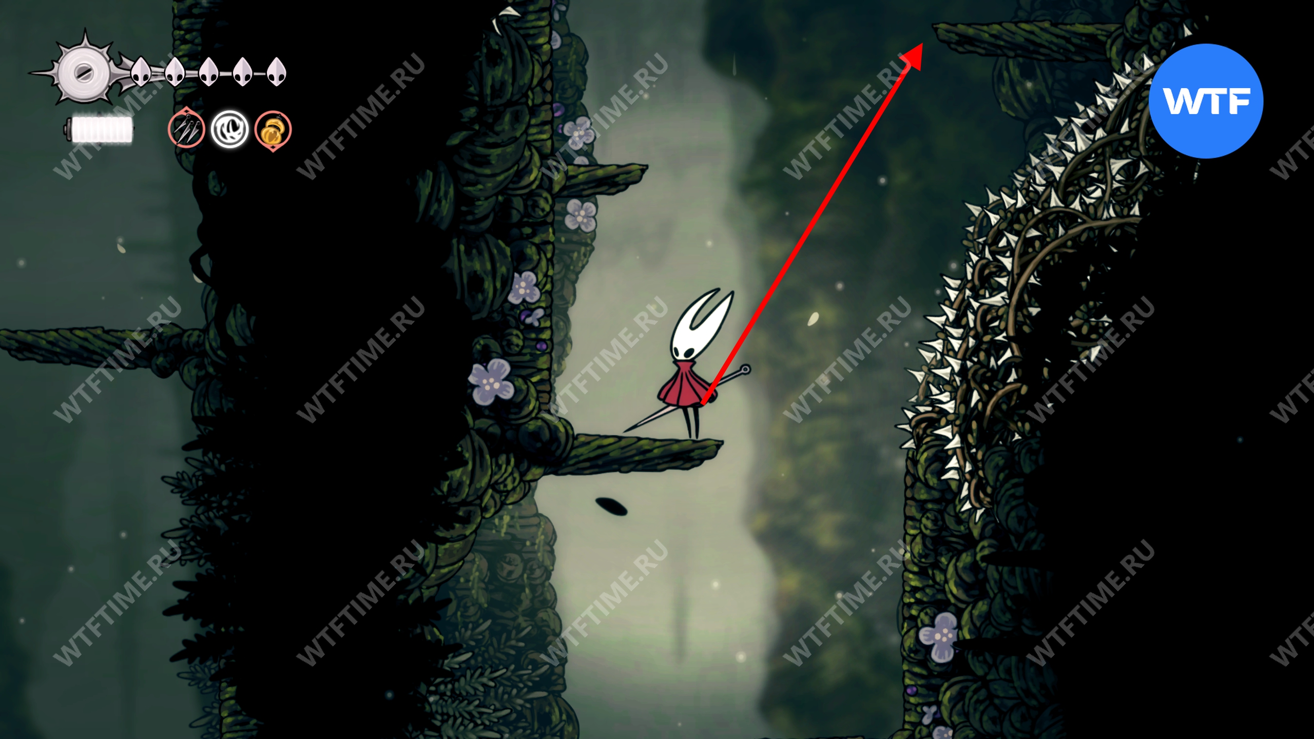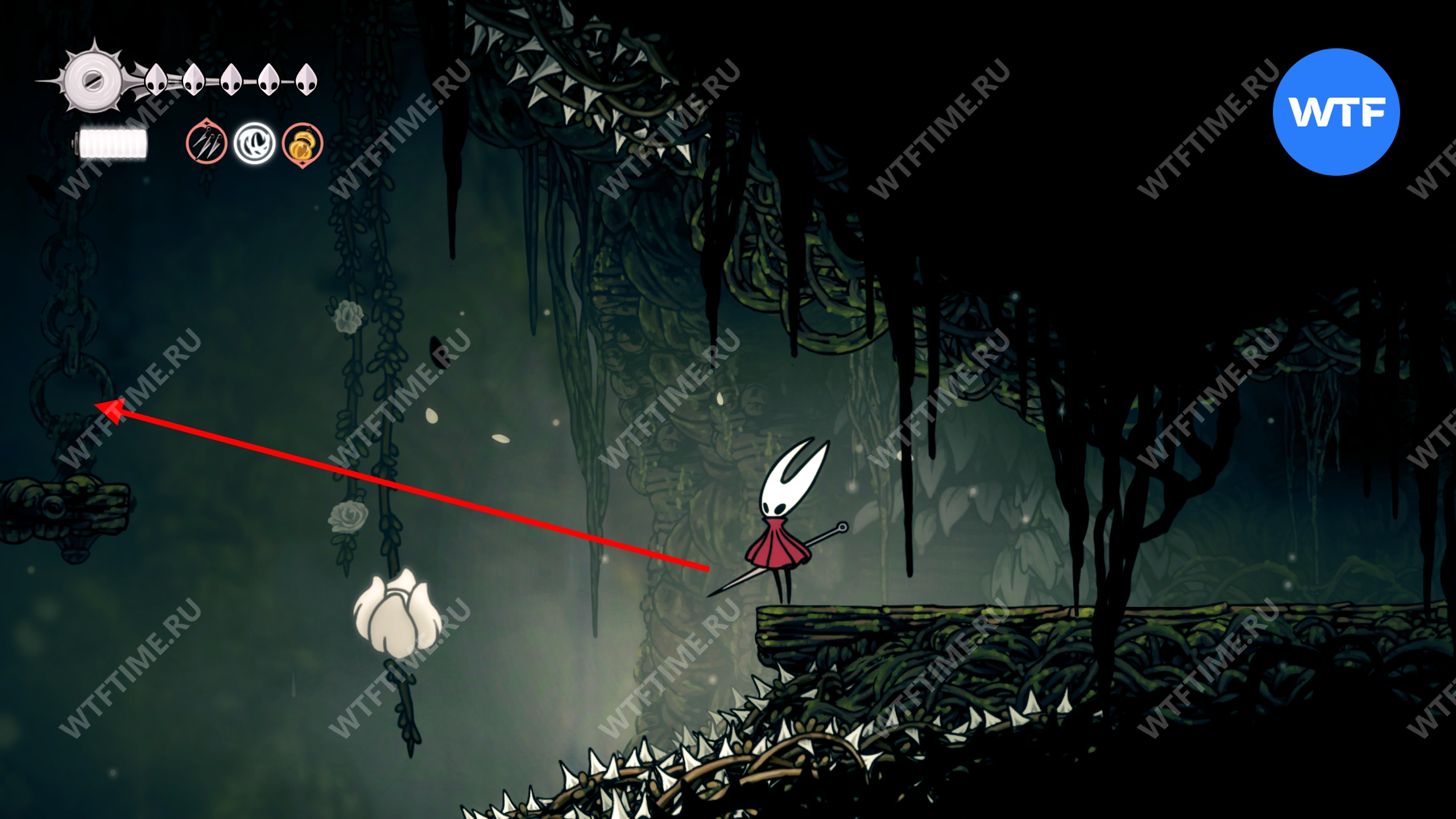 Поднимитесь обратно на вершину шипастого склона и оттуда продолжайте подъем по платформам вверх и влево, чтобы добраться до местной станции Звонкого пути. Разблокировав её, вы сможете переместиться в одну из предыдущих локаций, чтобы быстро подлечиться и сохраниться.