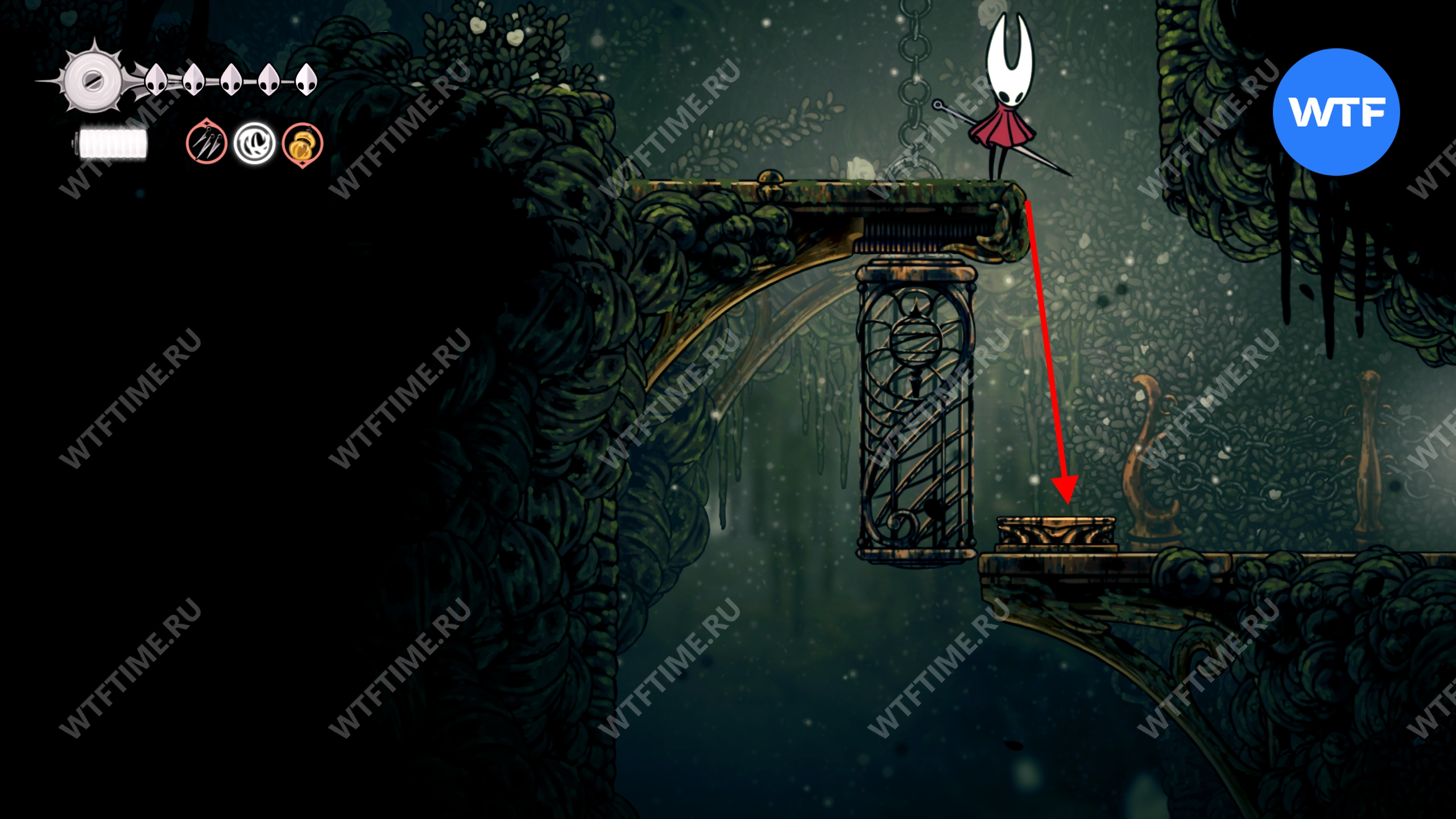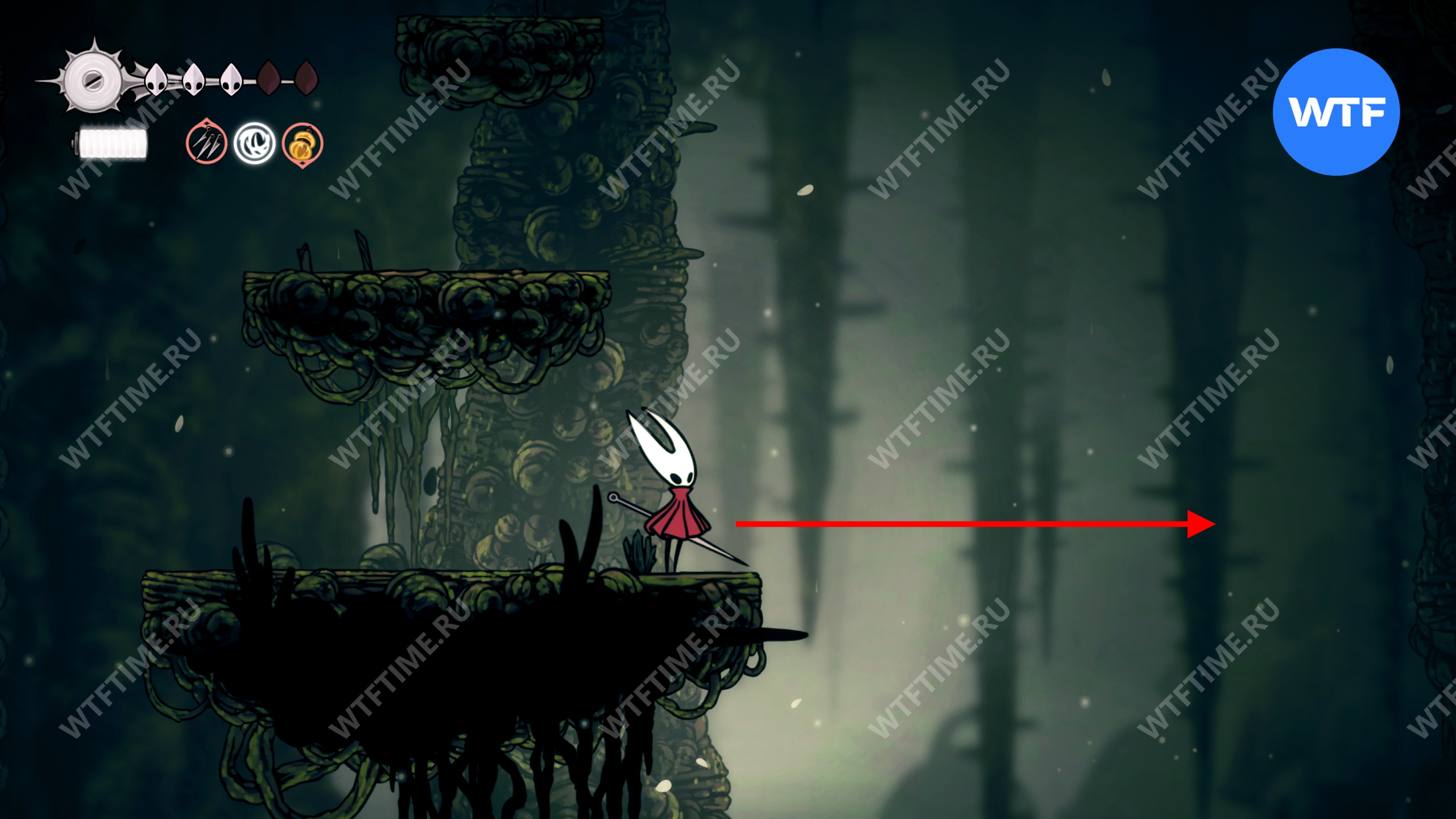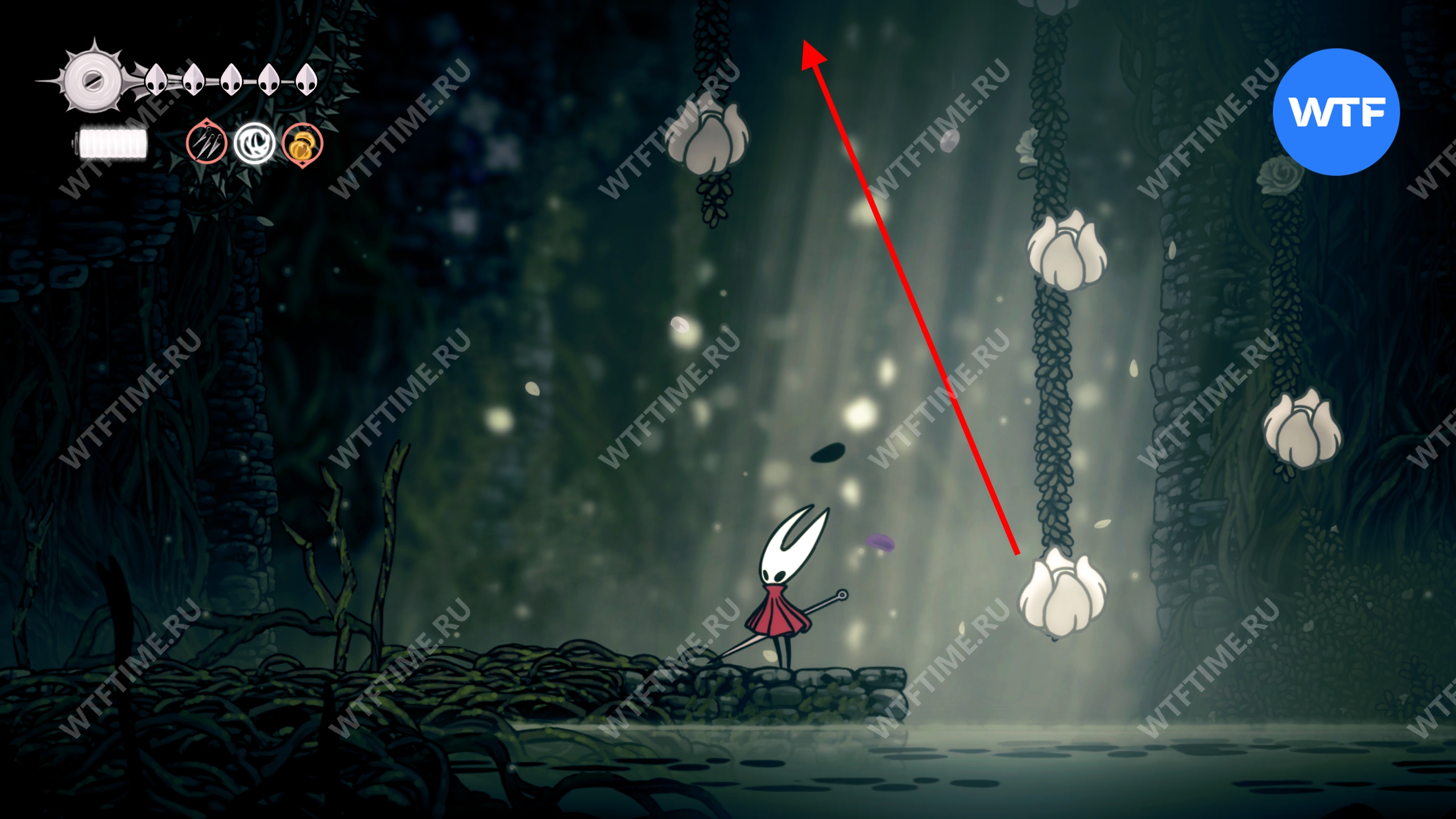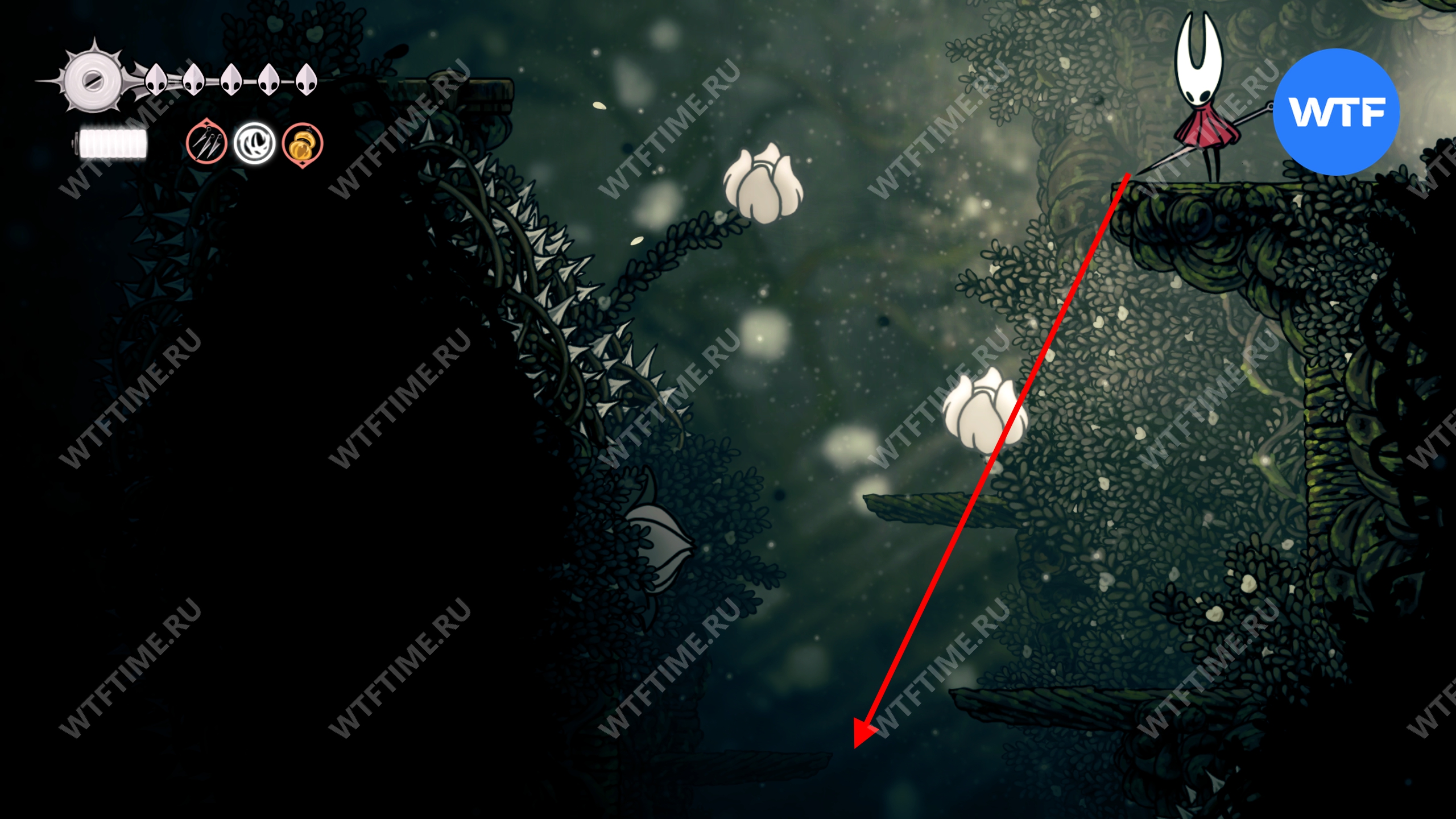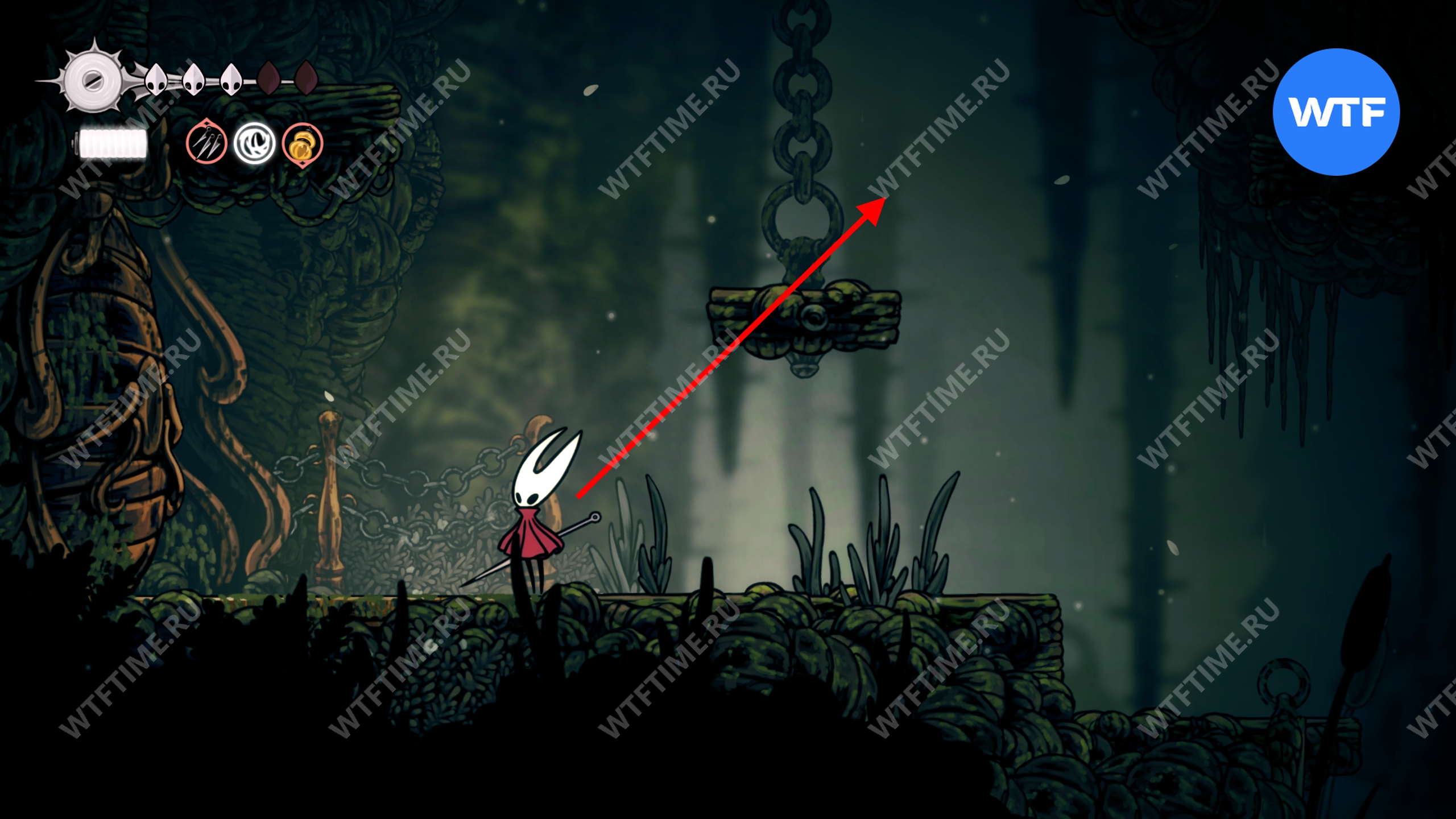 Поднимитесь обратно на вершину шипастого склона и оттуда продолжайте подъем по платформам вверх и влево, чтобы добраться до местной станции Звонкого пути. Разблокировав её, вы сможете переместиться в одну из предыдущих локаций, чтобы быстро подлечиться и сохраниться.