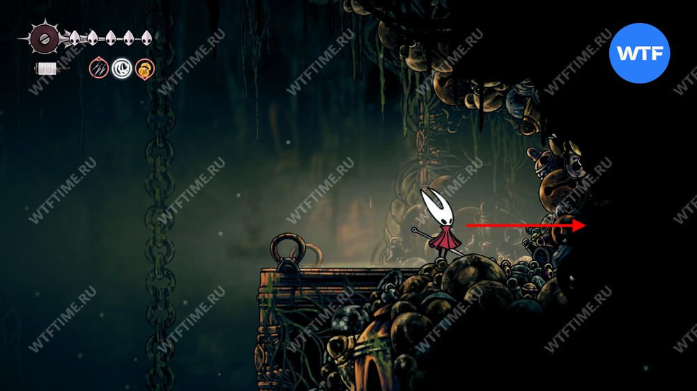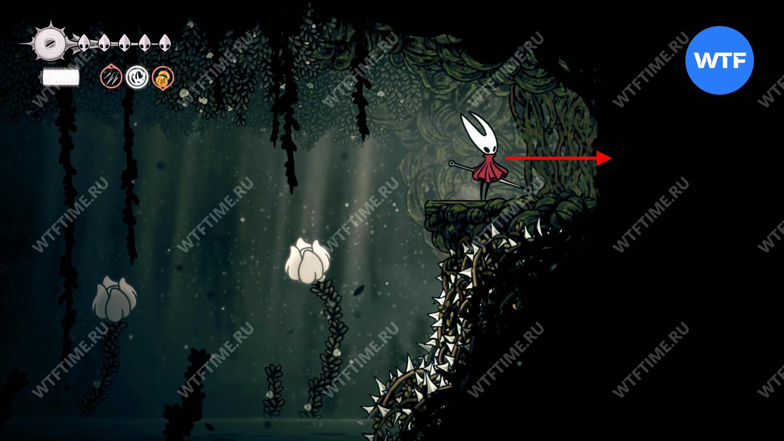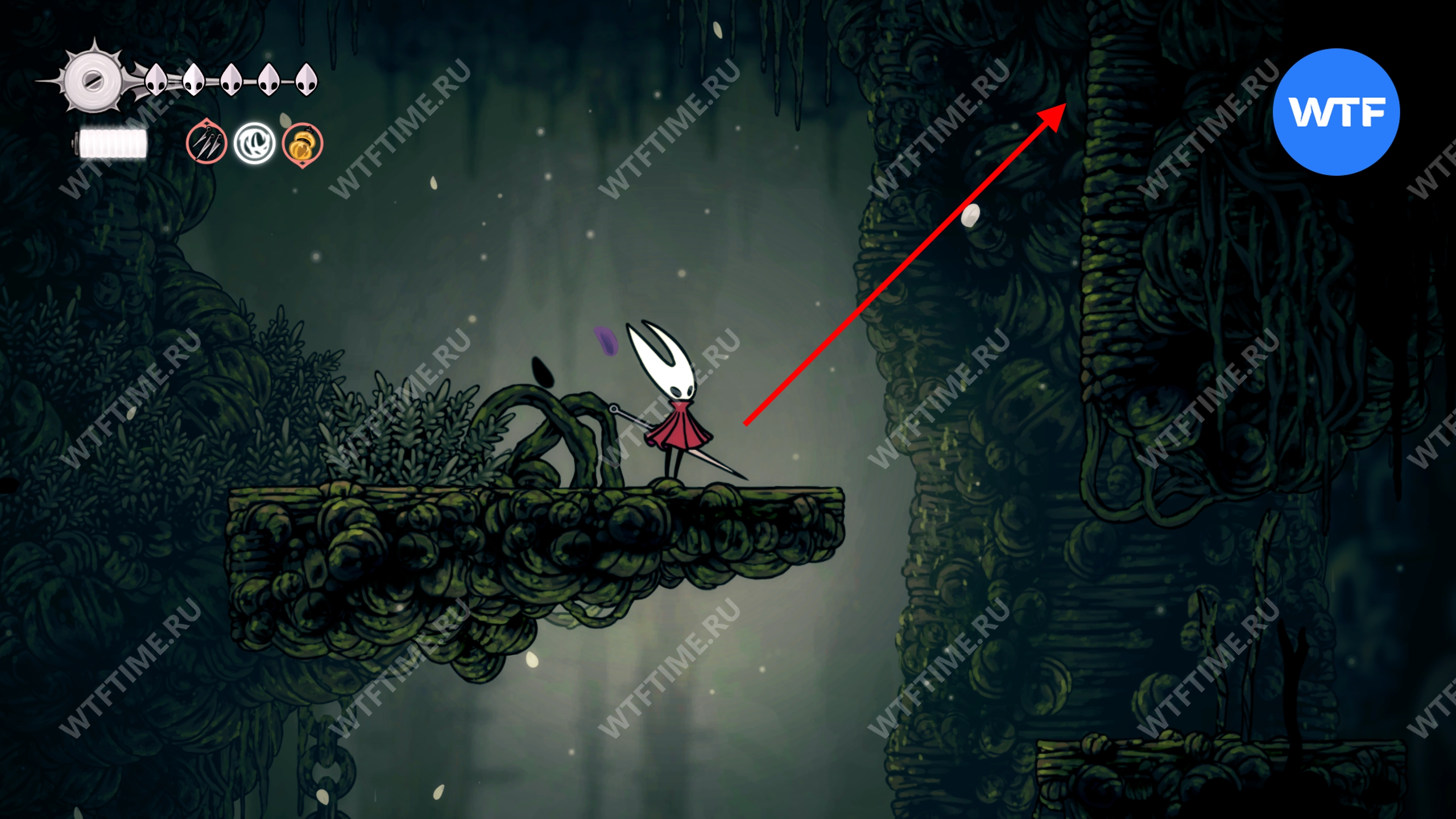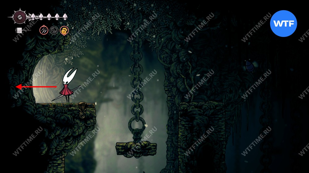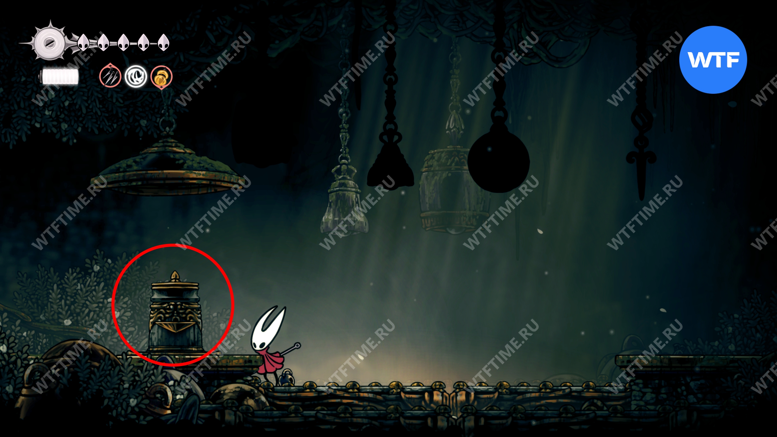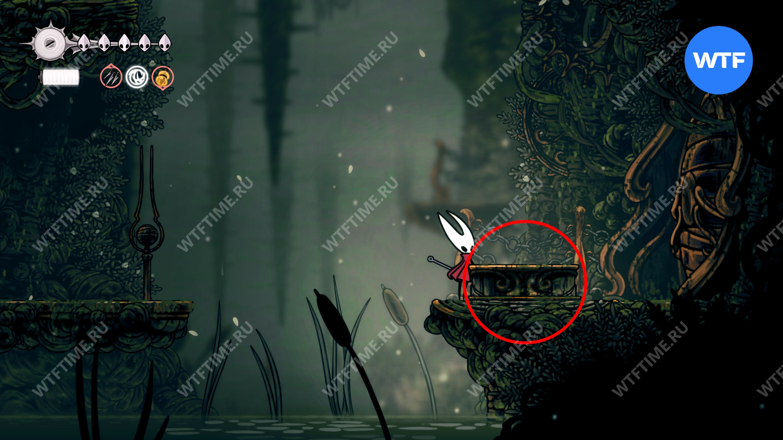 Поднимитесь обратно на вершину шипастого склона и оттуда продолжайте подъем по платформам вверх и влево, чтобы добраться до местной станции Звонкого пути. Разблокировав её, вы сможете переместиться в одну из предыдущих локаций, чтобы быстро подлечиться и сохраниться.