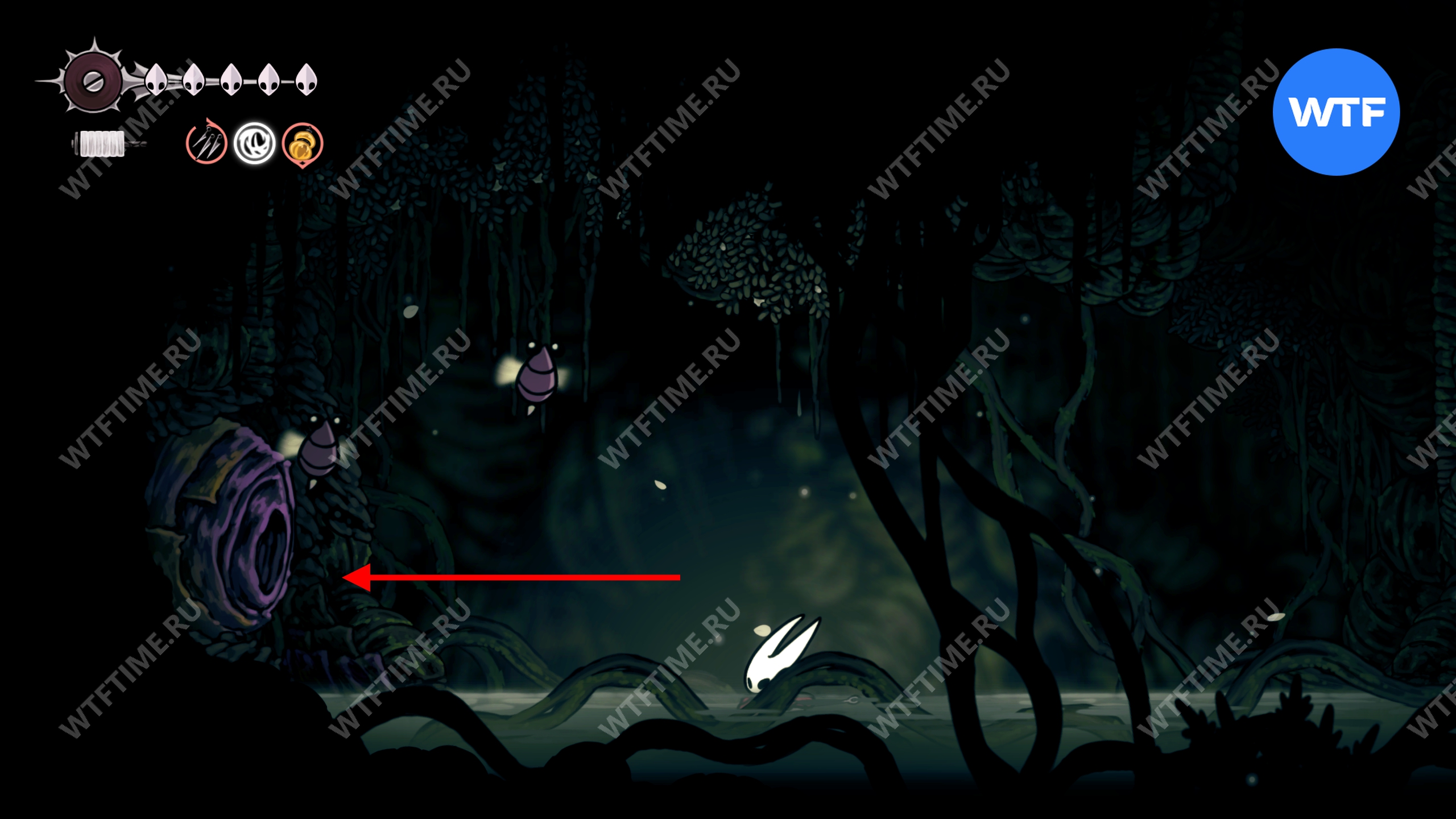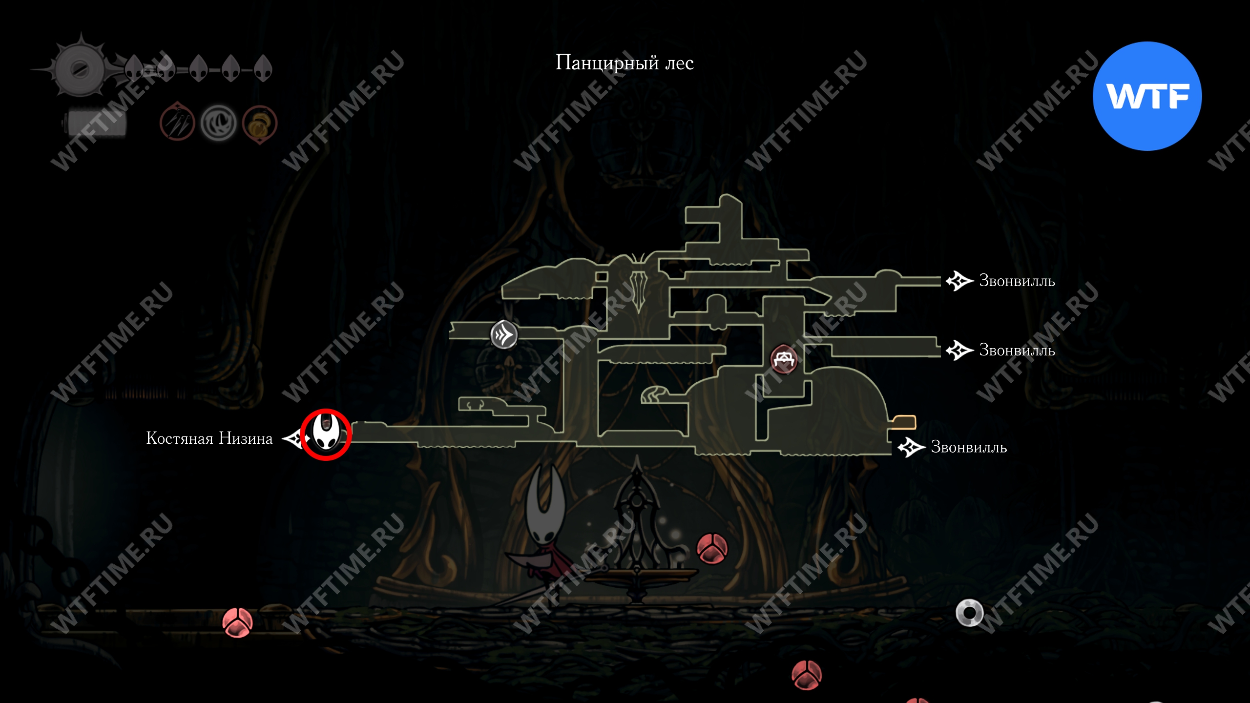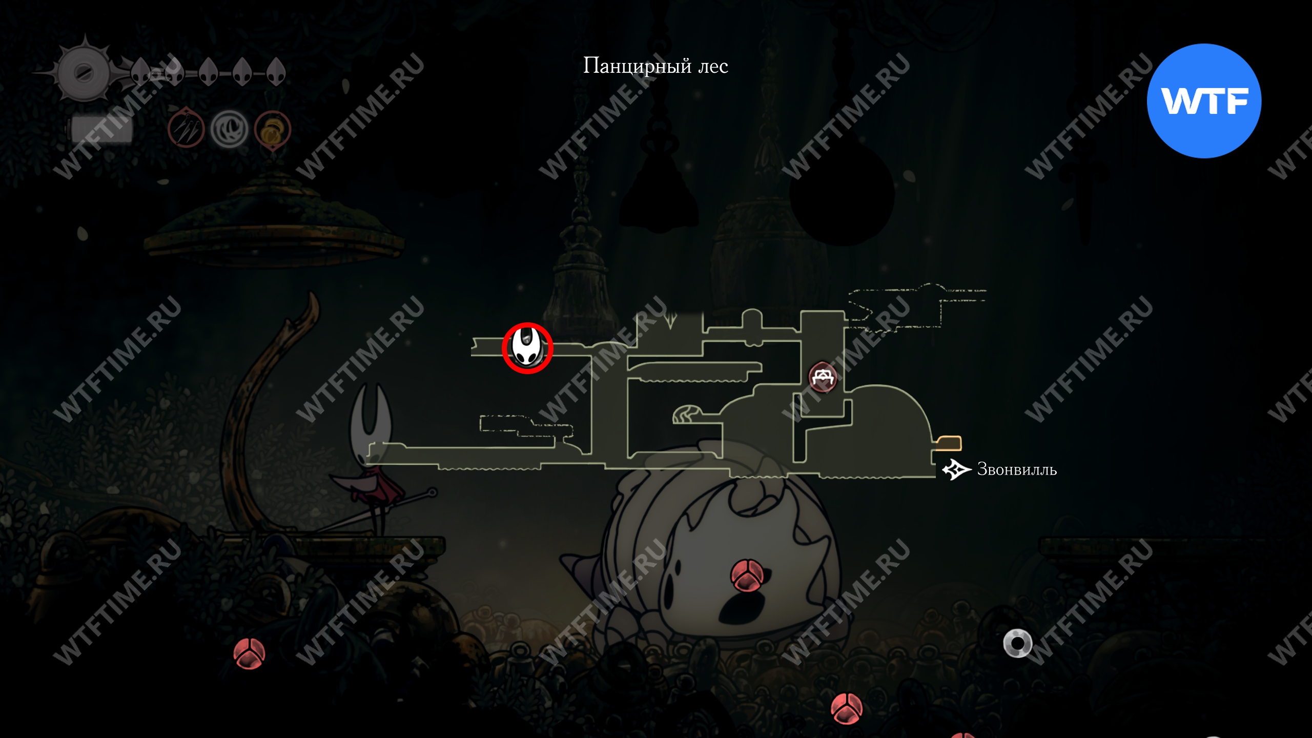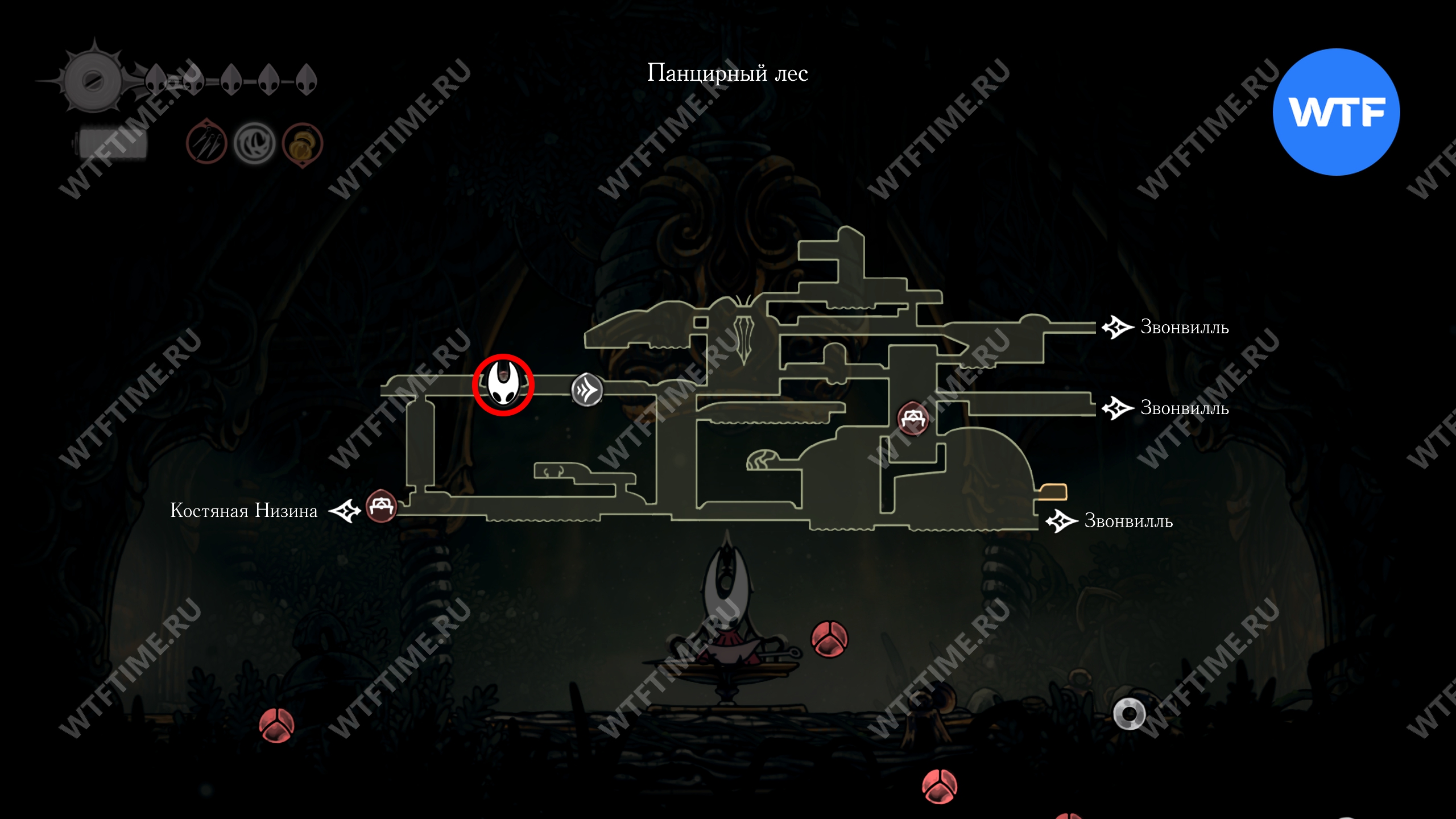 Впервые в Панцирный лес в Hollow Knight Silksong вы попадаете из Проклятого Звонвилля ближе к концу первого акта. Чтобы сюда добраться, от точки сохранения идите все время налево.