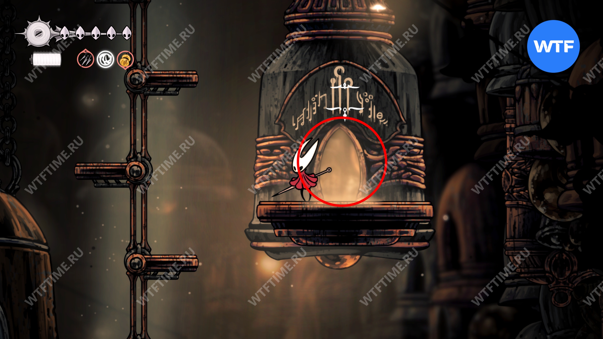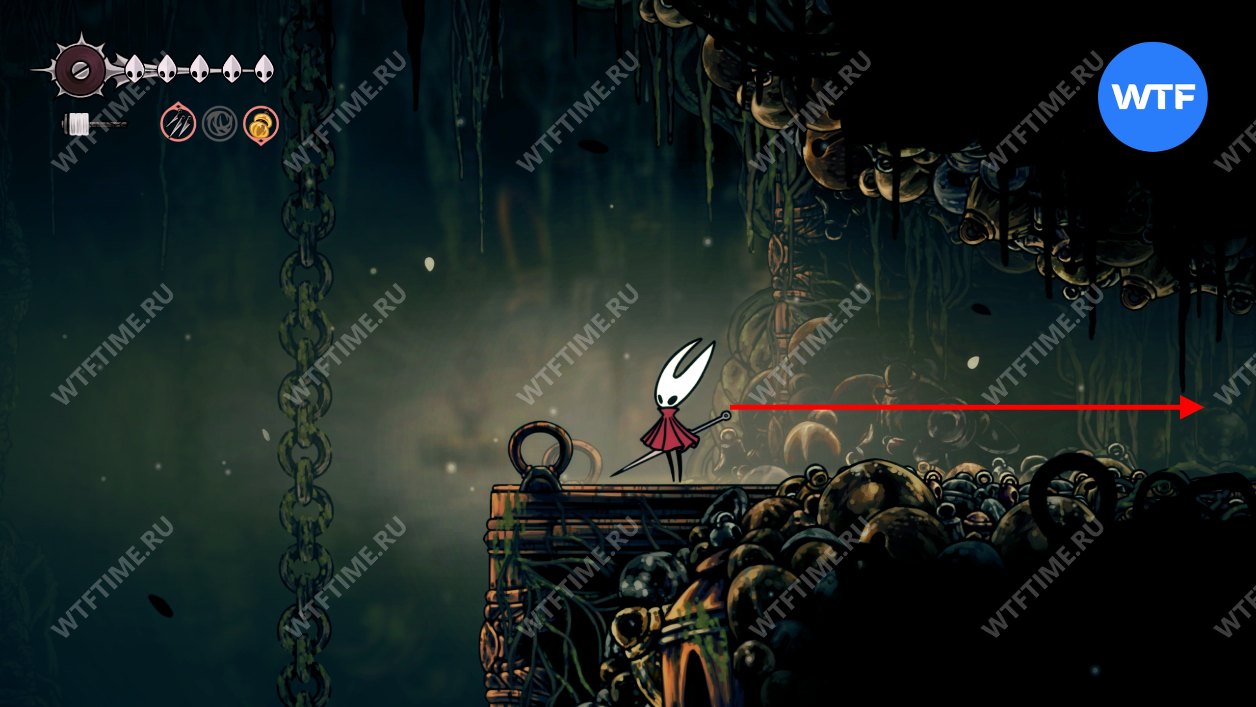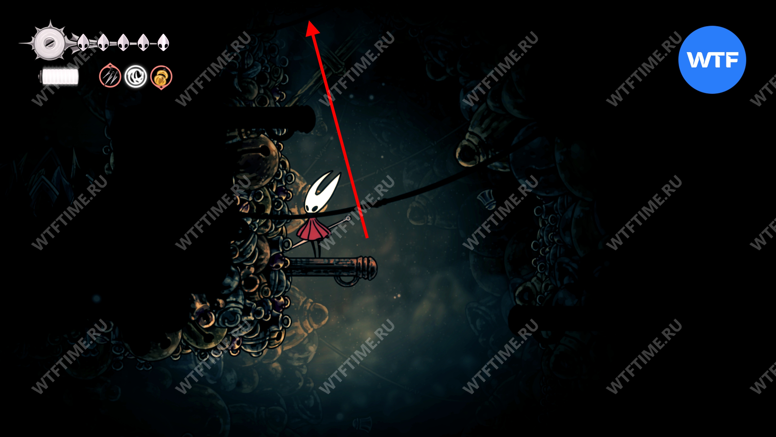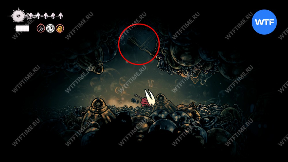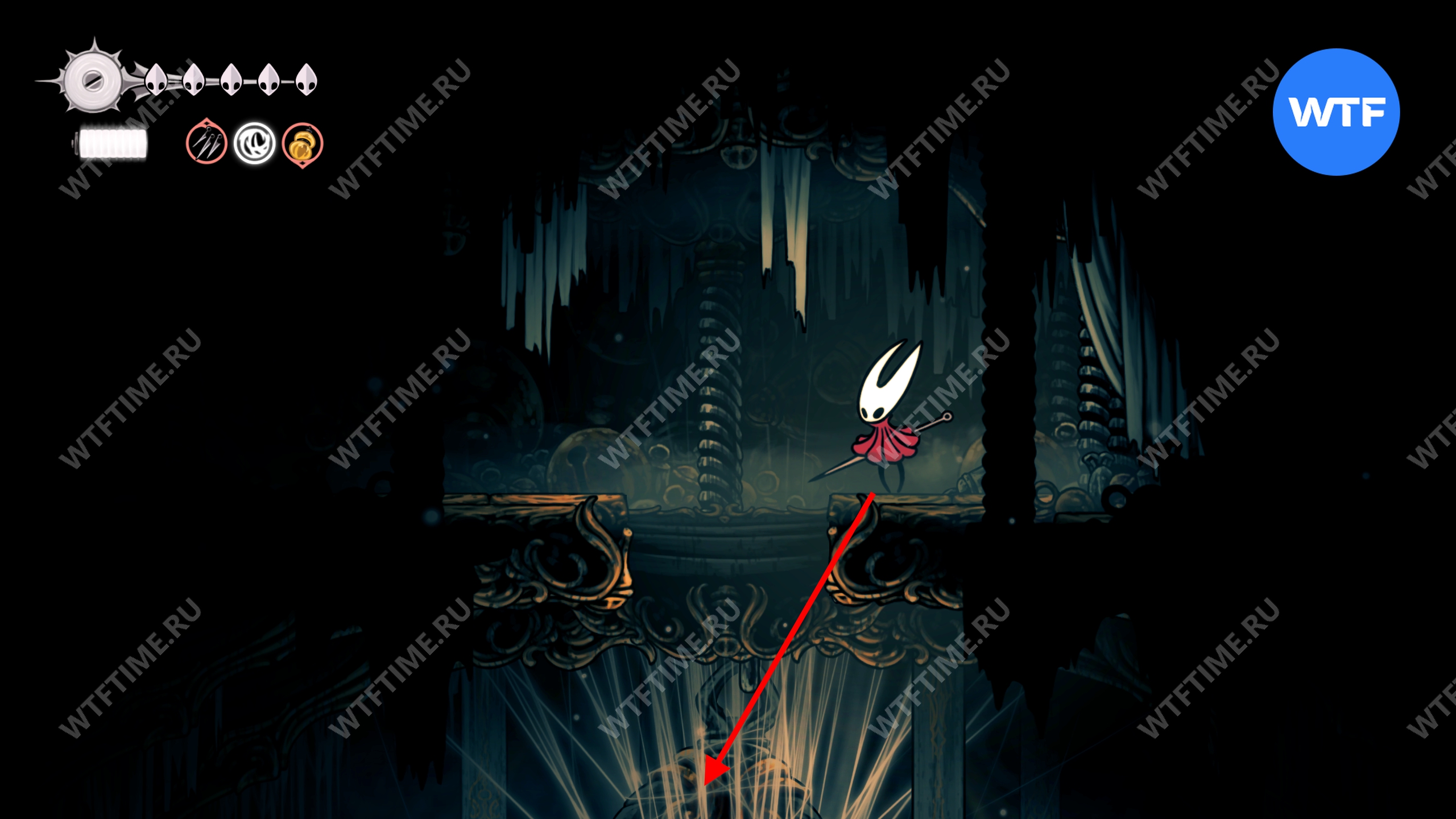 После победы над боссом вы получите новое умение «Иглончель», позволяющее вам отпирать двери определенного типа. Очнувшись в белой области с паутиной, поднимайтесь по платформам и стенам наверх, откройте дверь и снова продолжайте подъем, пока не достигните сверкающего предмета на земле.