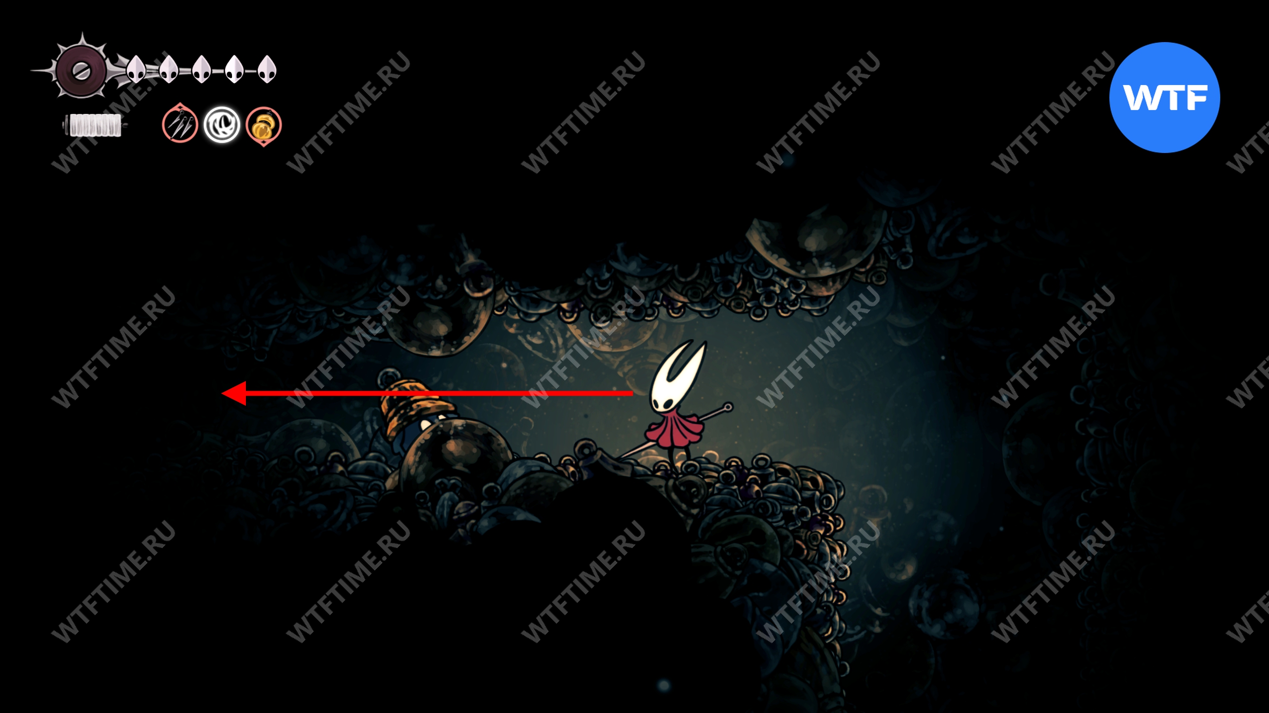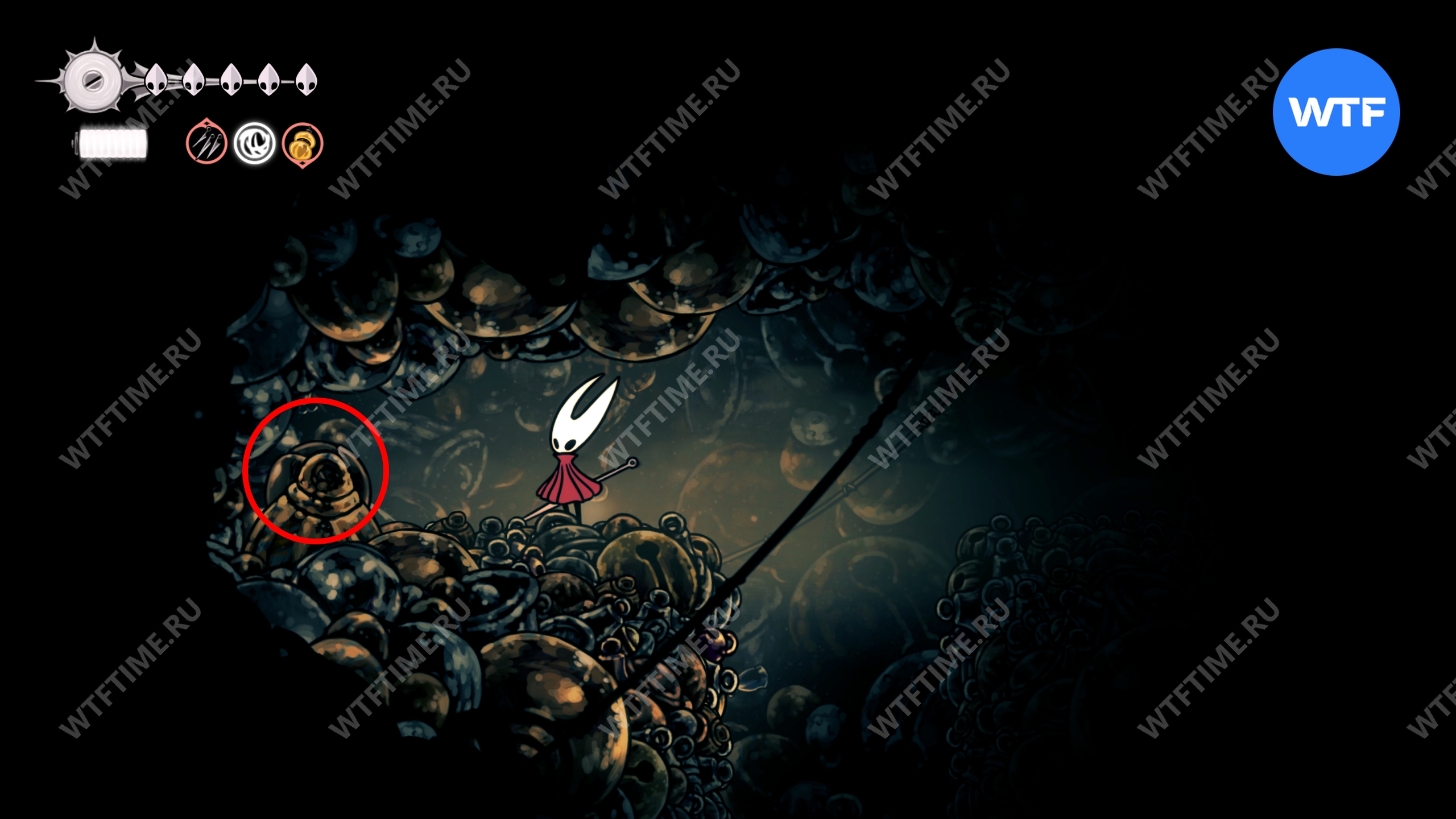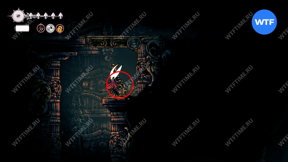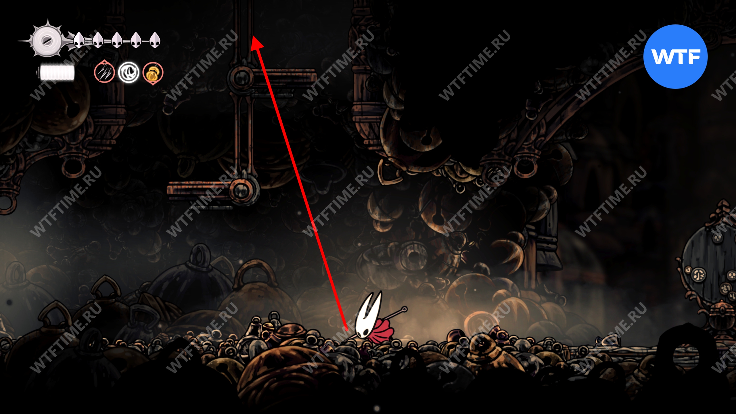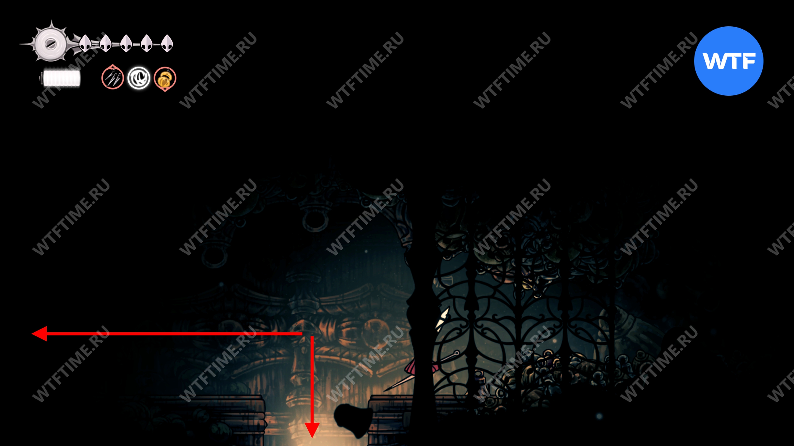 После победы над боссом вы получите новое умение «Иглончель», позволяющее вам отпирать двери определенного типа. Очнувшись в белой области с паутиной, поднимайтесь по платформам и стенам наверх, откройте дверь и снова продолжайте подъем, пока не достигните сверкающего предмета на земле.