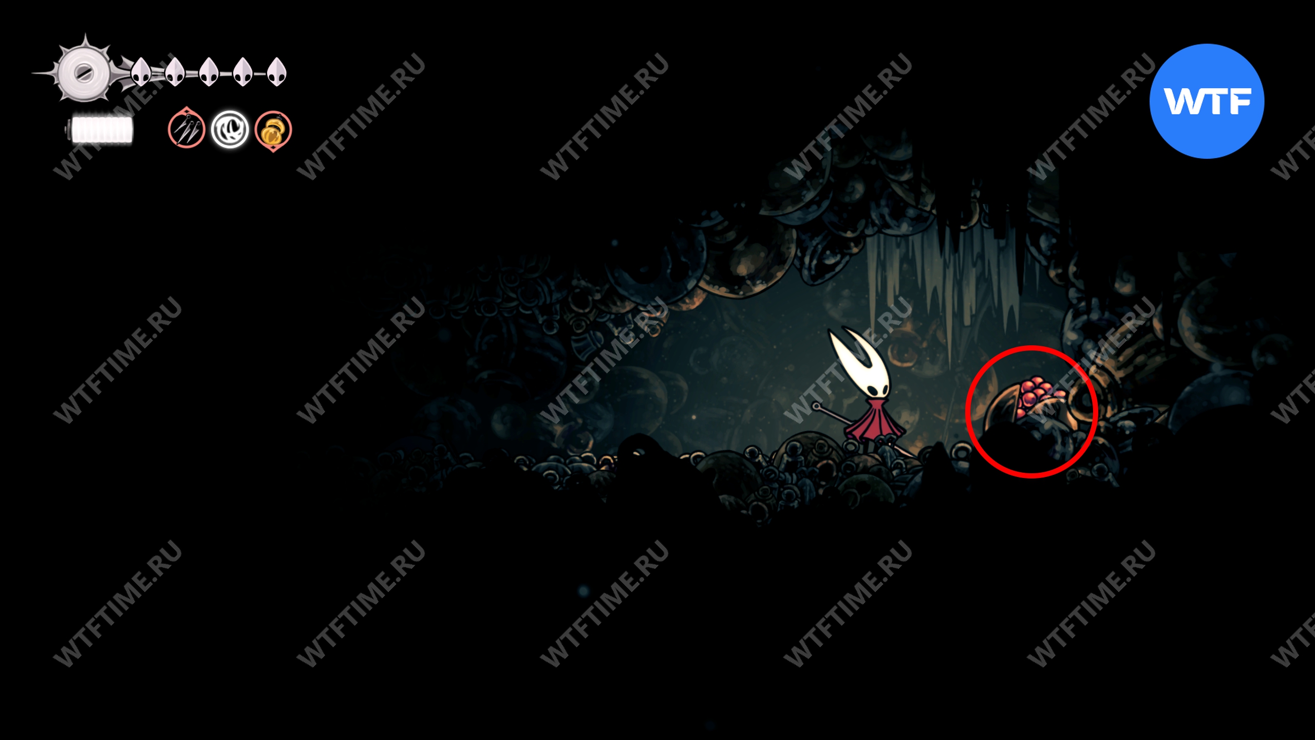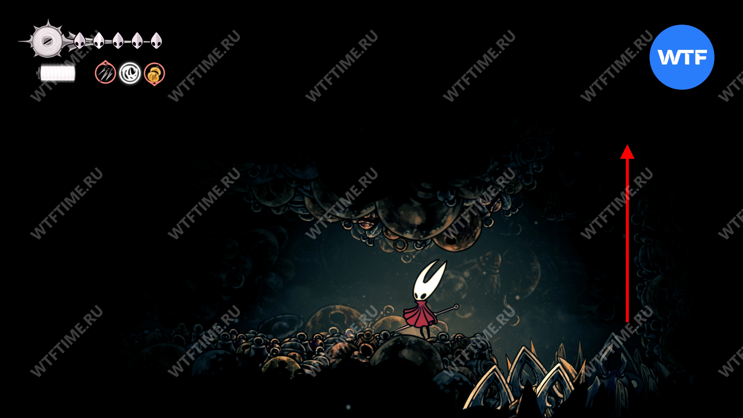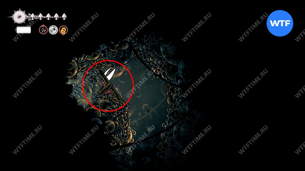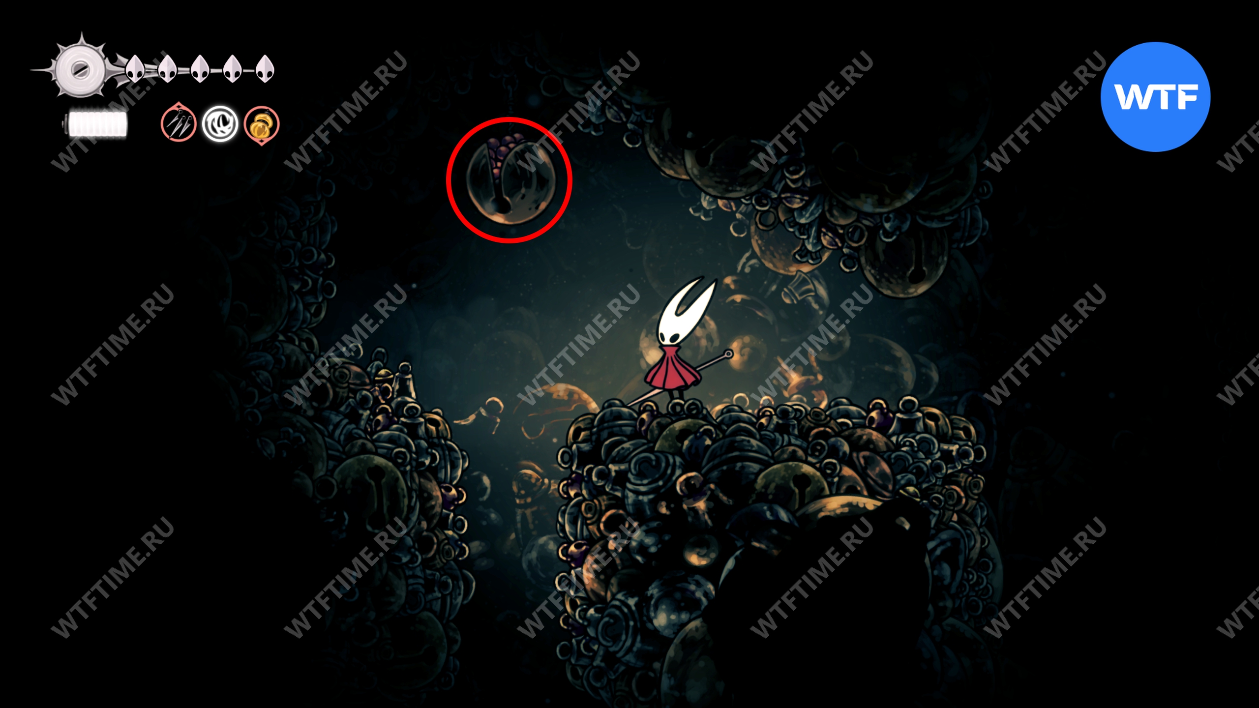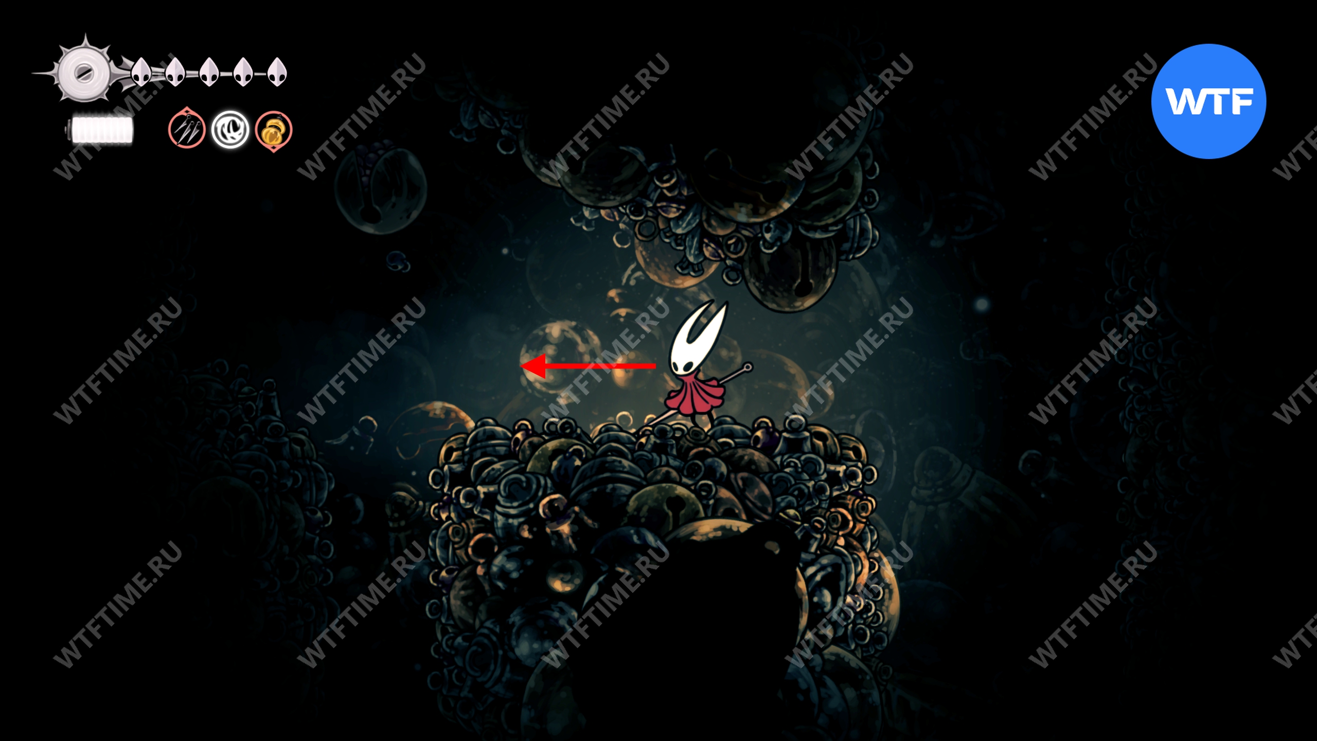 После победы над боссом вы получите новое умение «Иглончель», позволяющее вам отпирать двери определенного типа. Очнувшись в белой области с паутиной, поднимайтесь по платформам и стенам наверх, откройте дверь и снова продолжайте подъем, пока не достигните сверкающего предмета на земле.