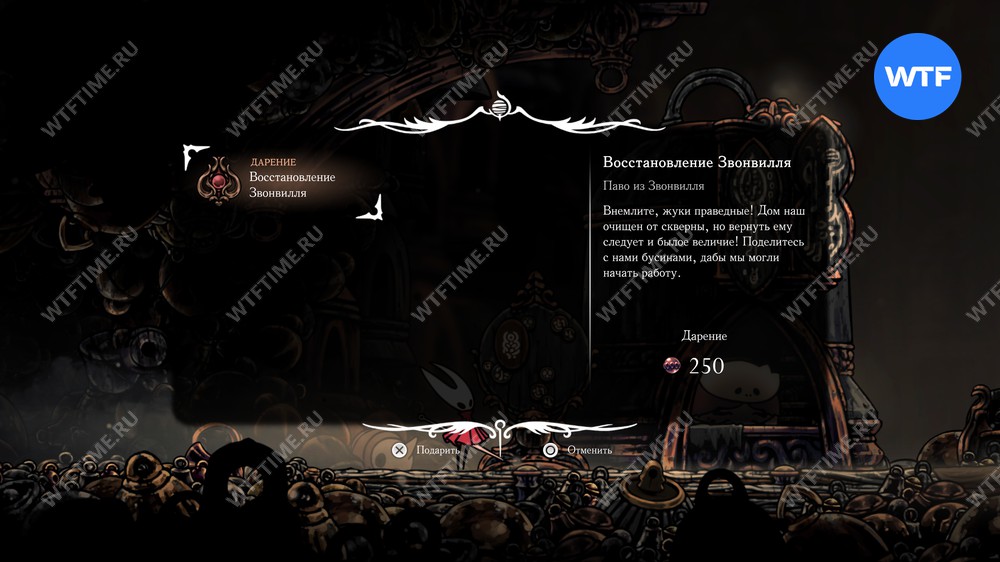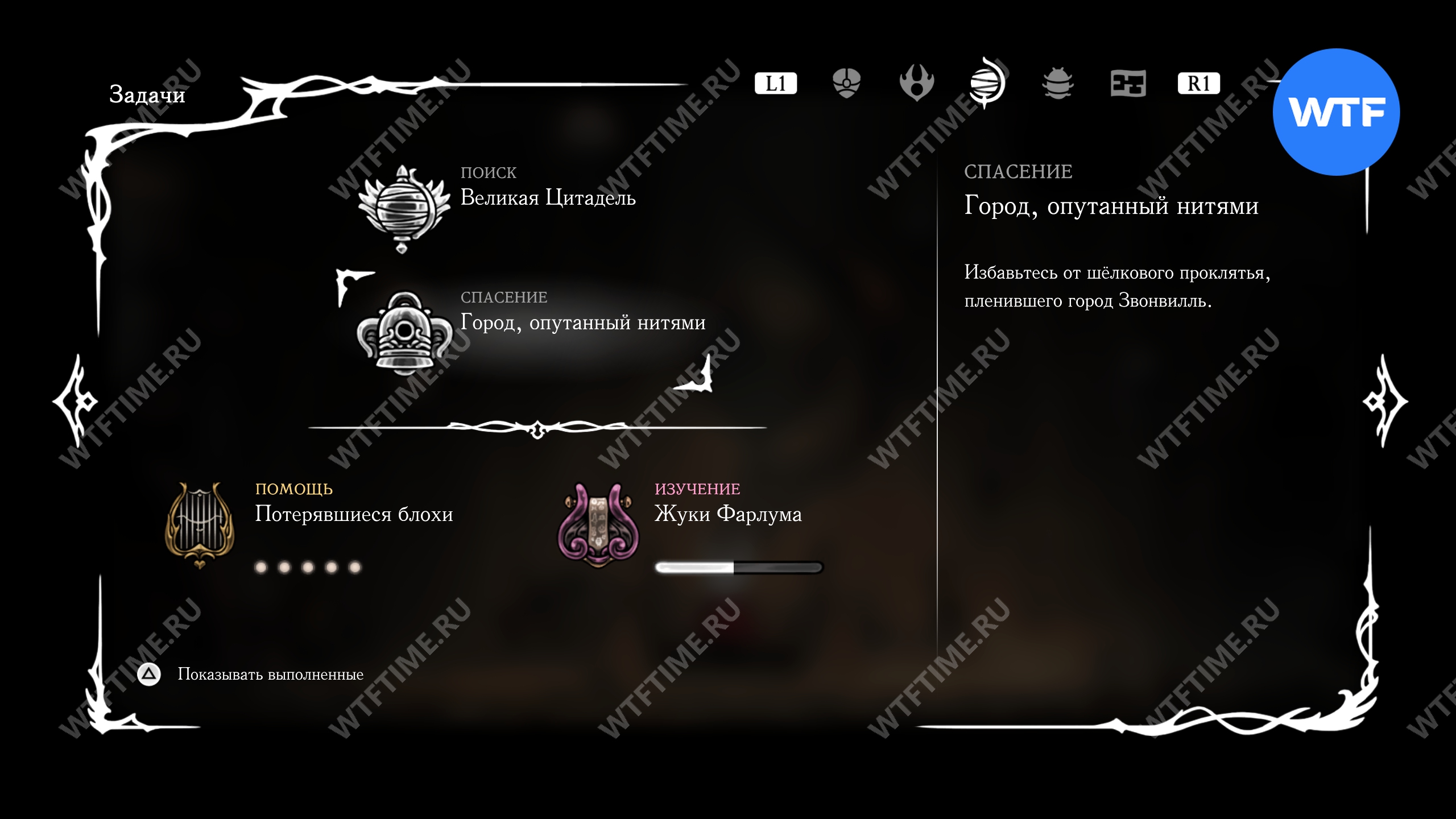 По мере прохождения сюжета и побочек, вы сможете разблокировать другие задания в этой локации. Само прохождение Звонвилля в Hollow Knight Silksong на этом будет завершено.