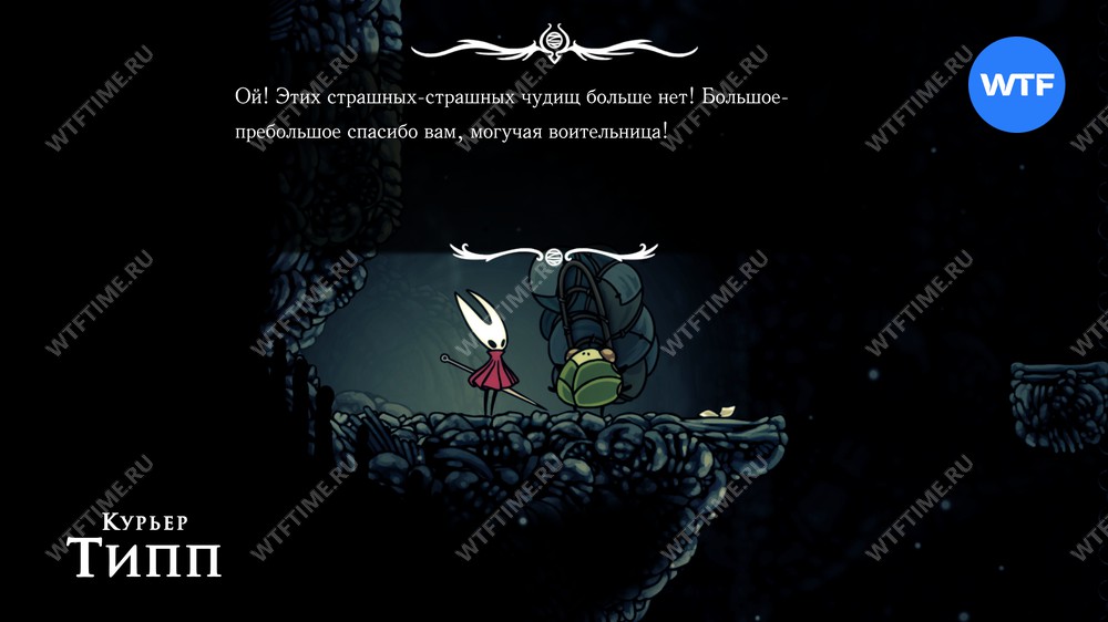 Курьер Типп поблагодарит вас за помощь и скажет, что теперь он наконец сможет вернуться в лавку Фреи вместе с товарами. На этом исполнению желания «Мой пропавший курьер» в Hollow Knight Silksong будет звершено.