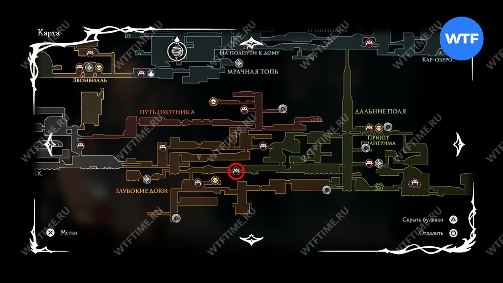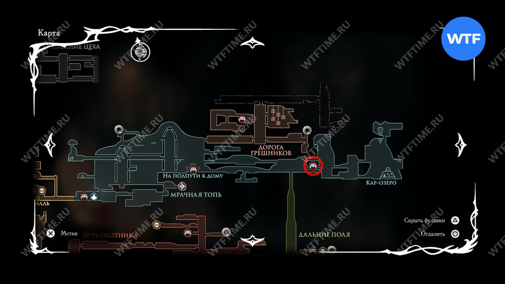 В Мрачной топи нам нужна самая восточная лавочка, которую можно открыть, возвращаясь из Кар-озера.