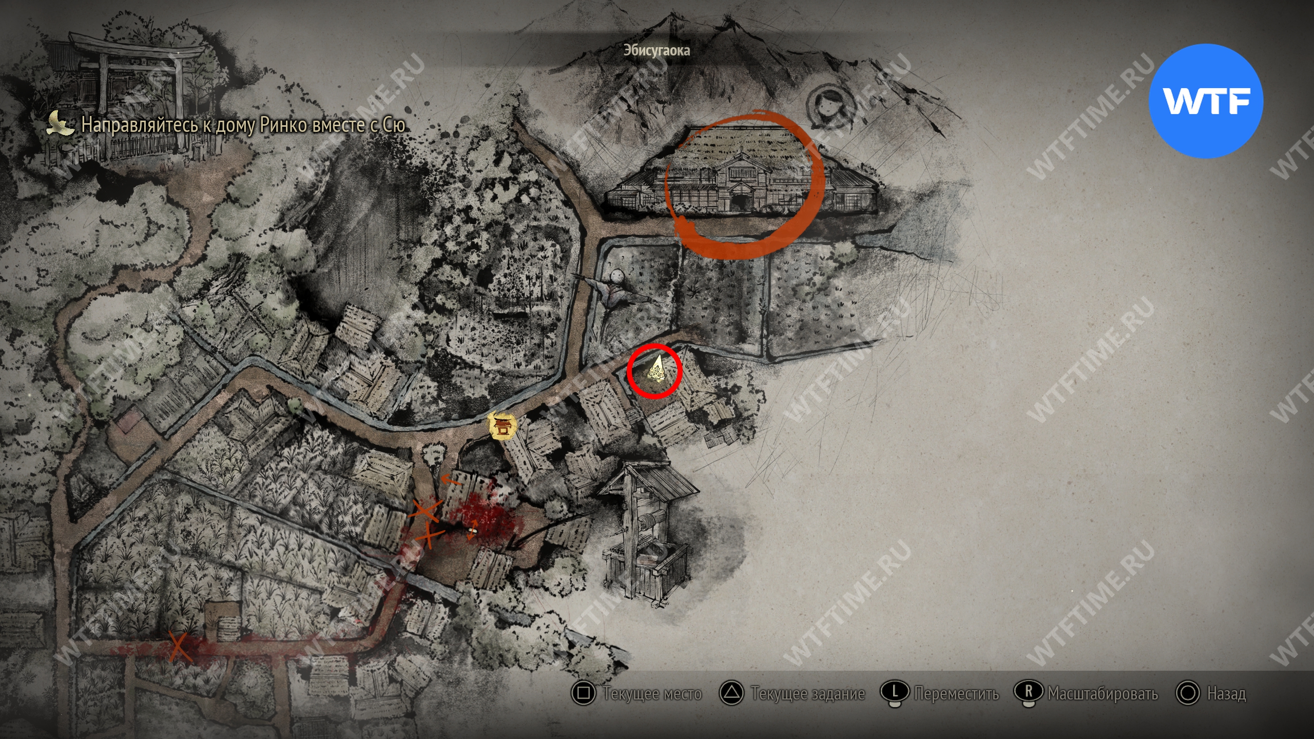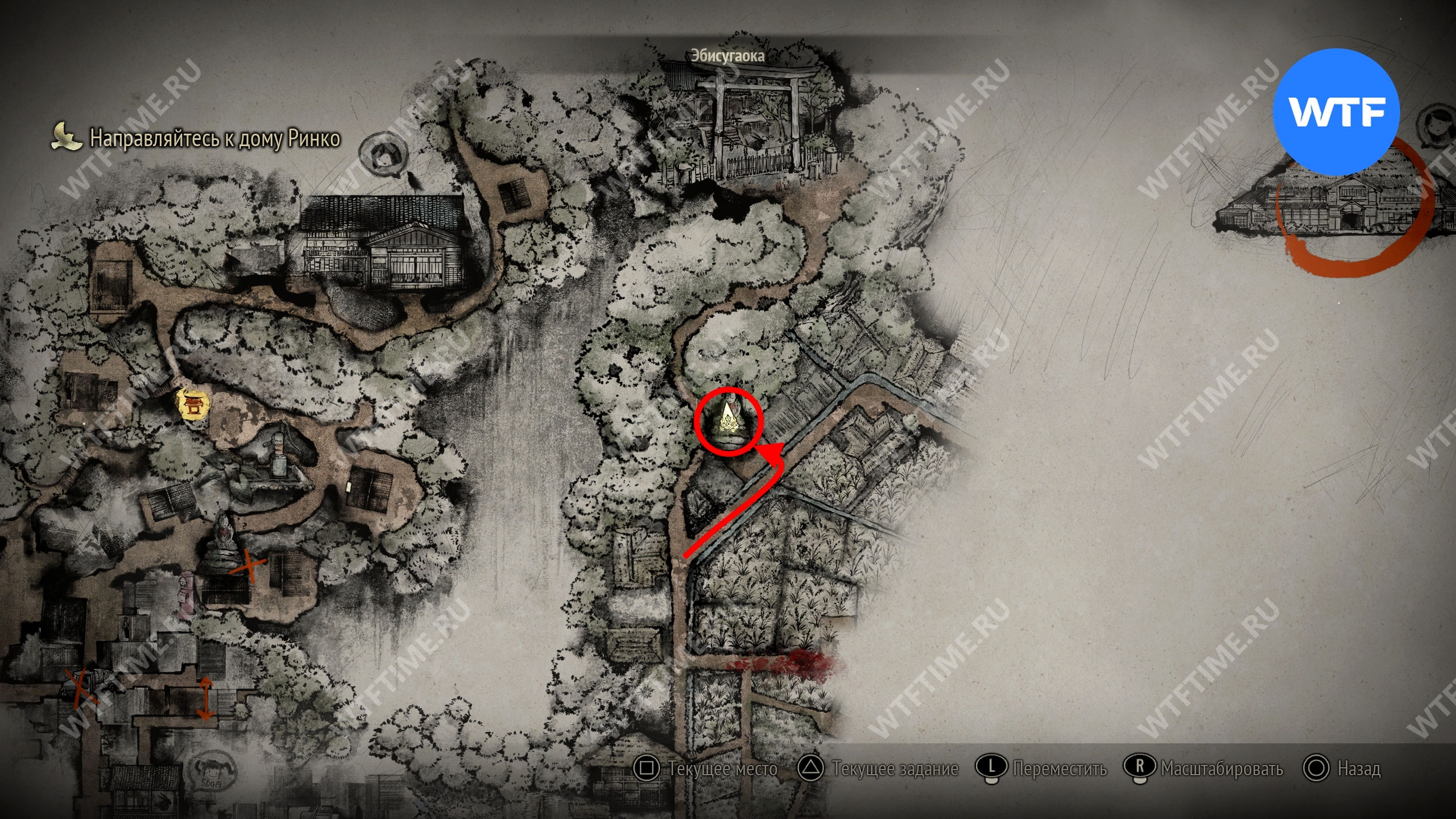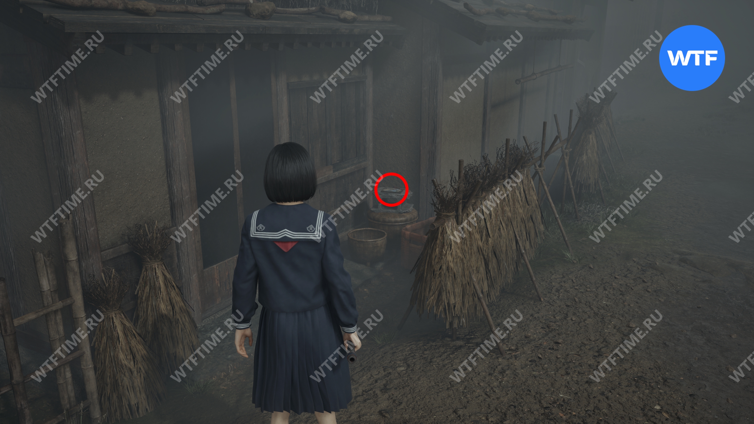 Не входите пока в дом Сю и вместо этого вернитесь по дороге к святилищу хокора. Примерно на середине пути слева от вас вы увидите статую Дзидзо. Положите к неё треснувшую жаровню хибати, чтобы продвинуть головоломку со Священным мечом.