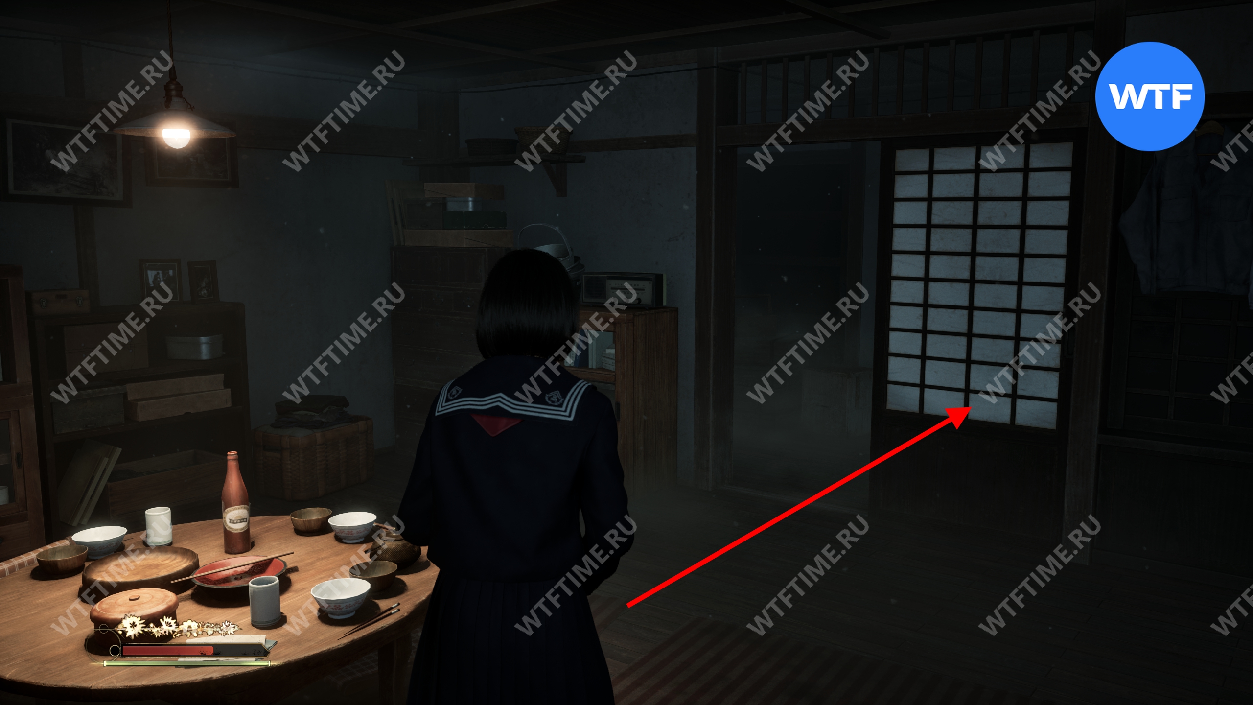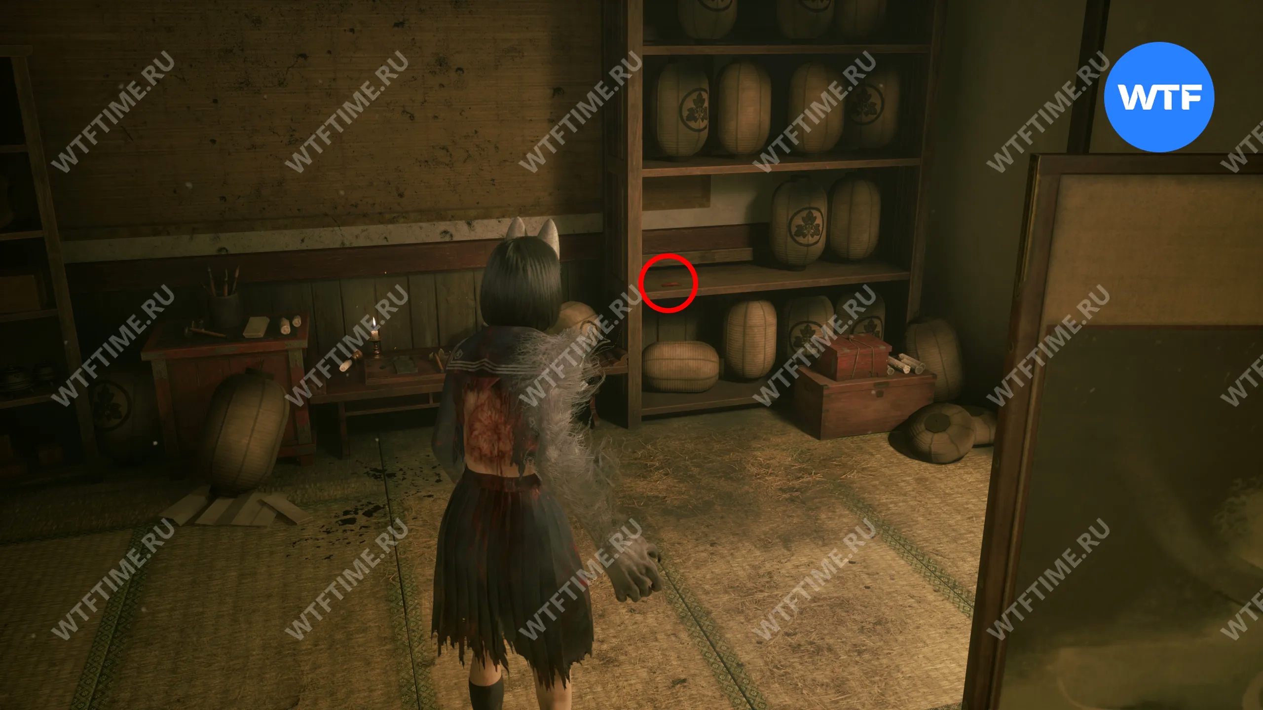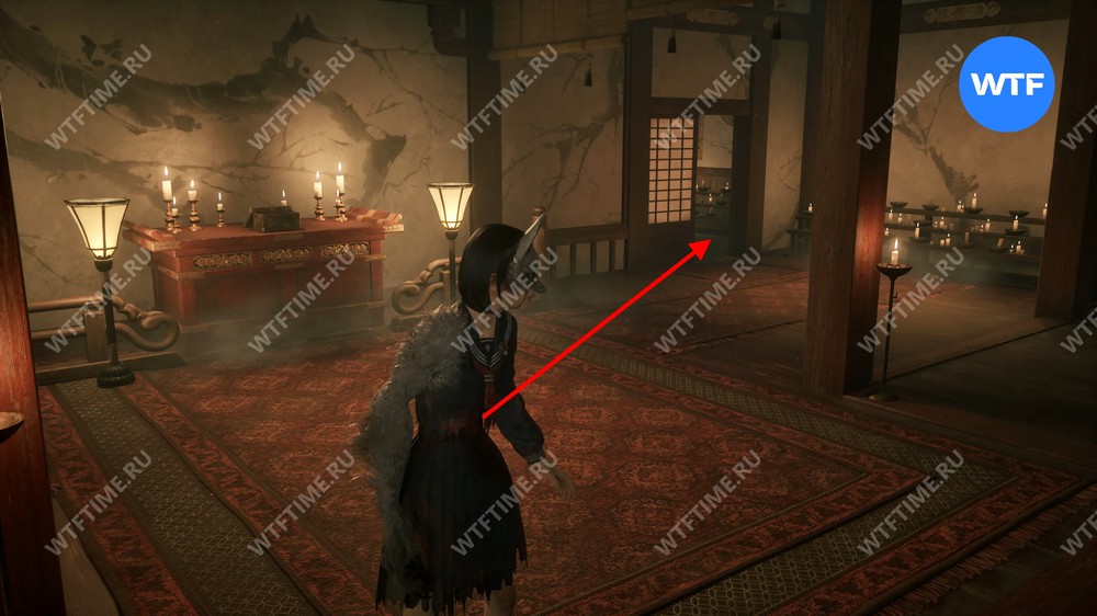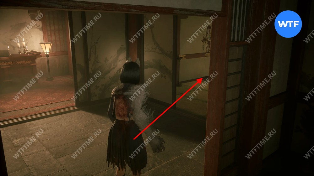 На этот раз ключ от ворот будет лежать не справа от святилища хокора, а на табуретке внутри дома. На столе прямо напротив входа в этот дом также лежит Омамори-козел, снижающий урон в бою с несколькими врагами.