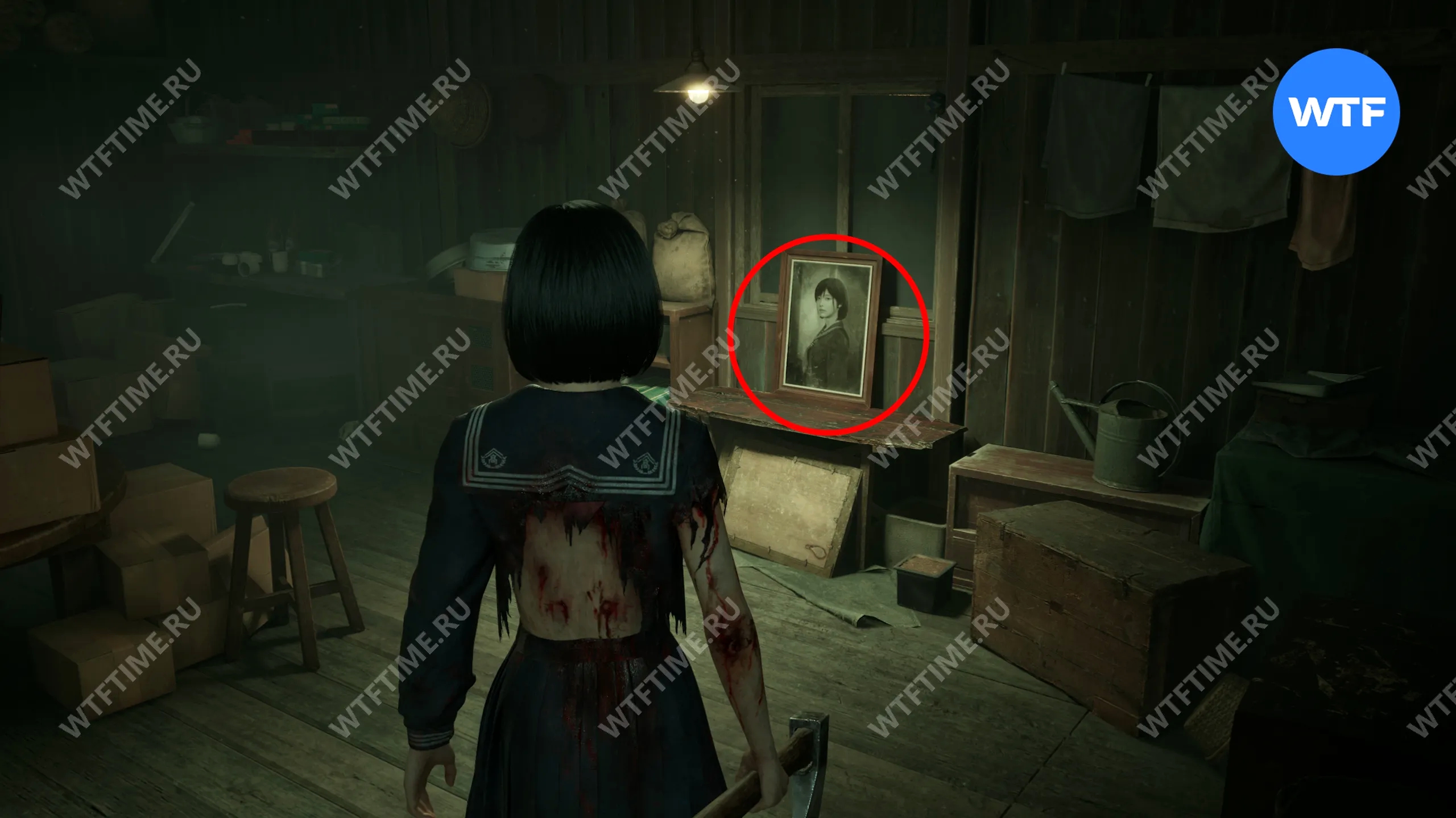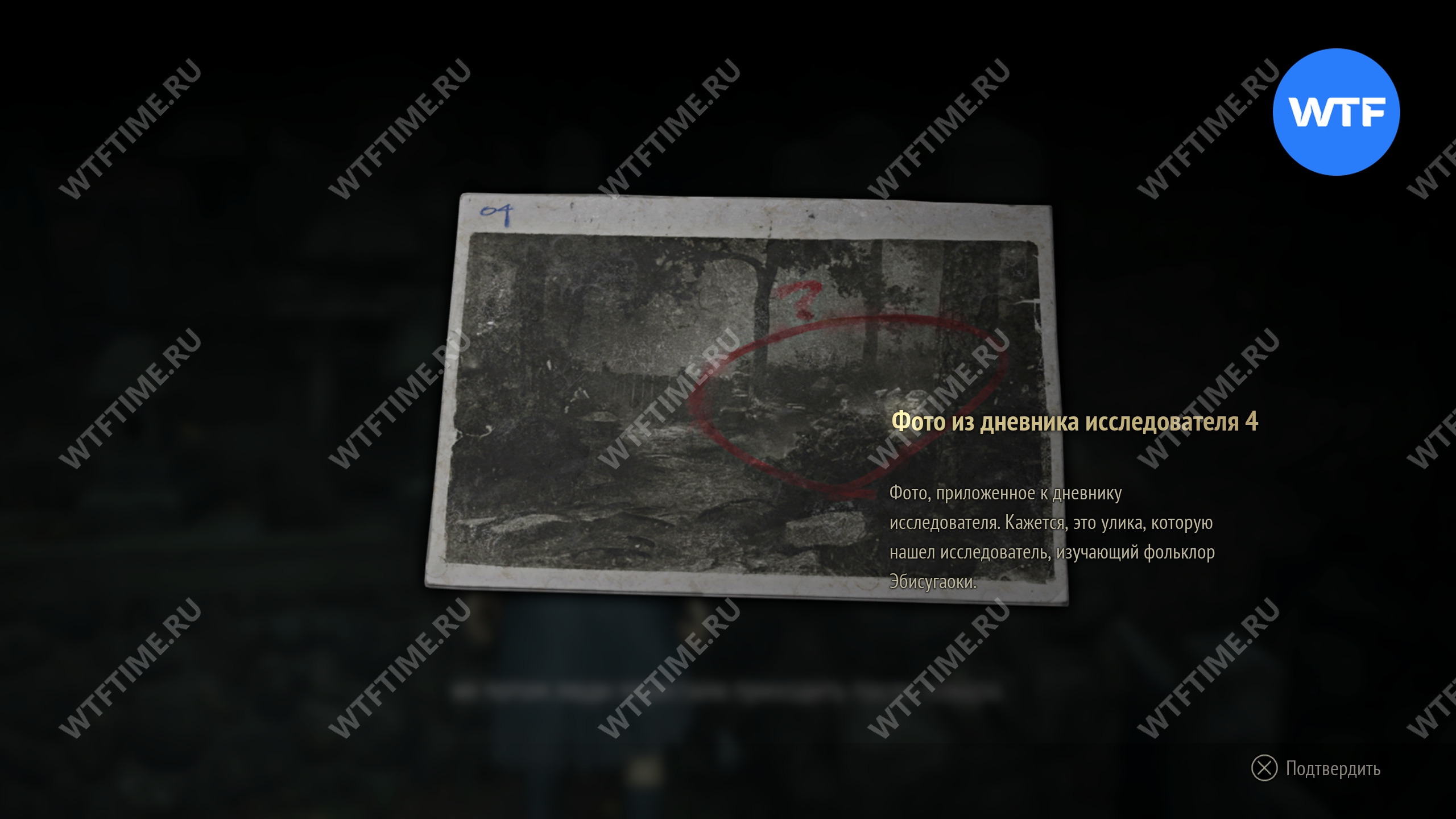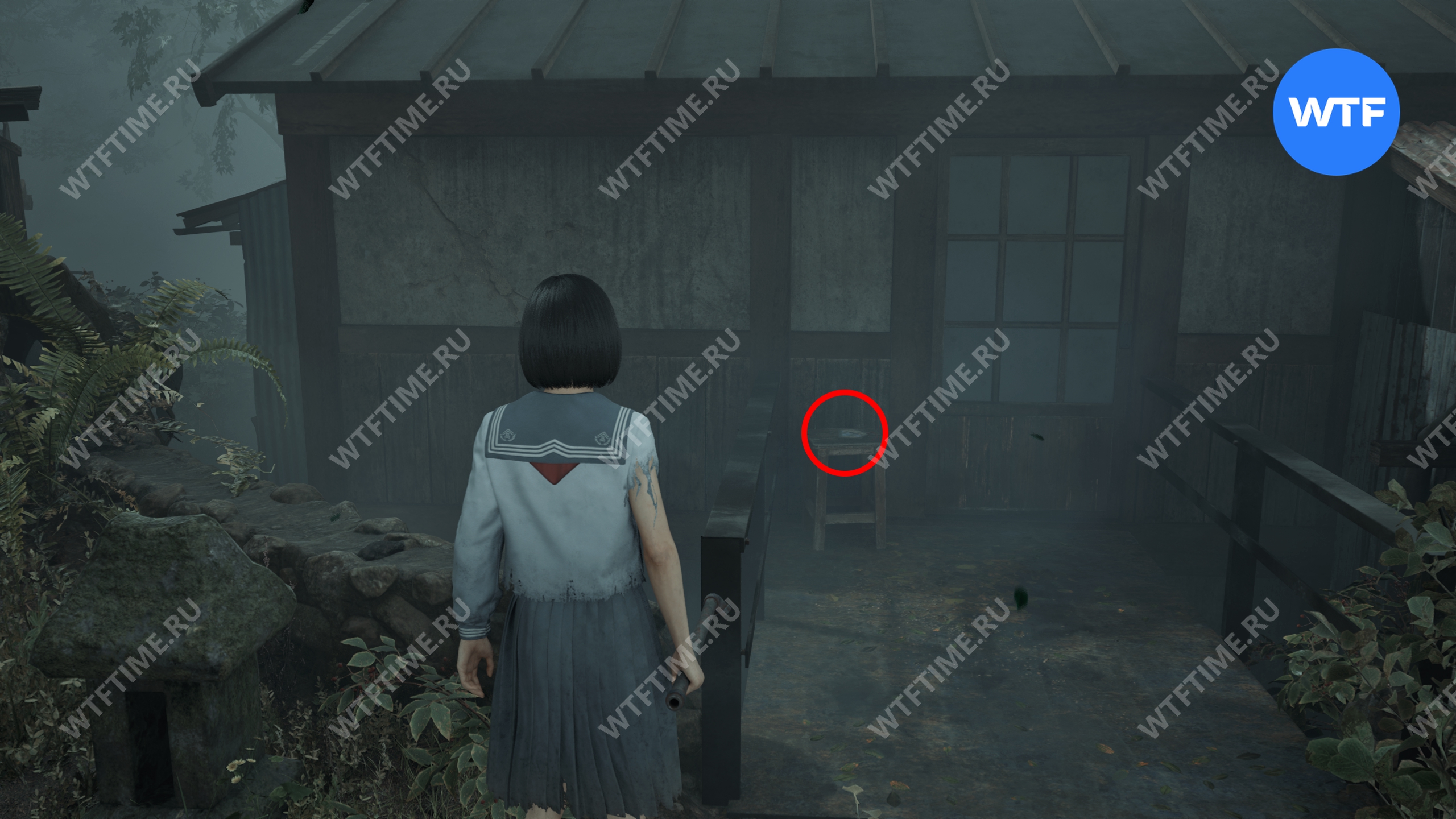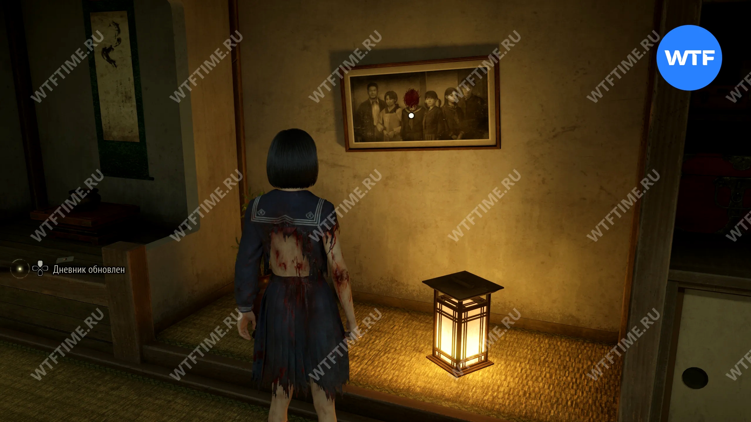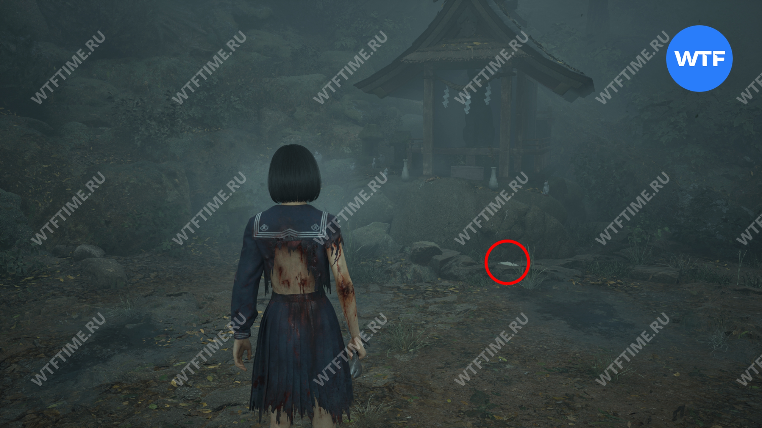 После того как вы сбежите от Туманного чудовища, поднимитесь по лестнице слева от точки сохранения на один пролет и заберите это фото из заброшенного святилища.