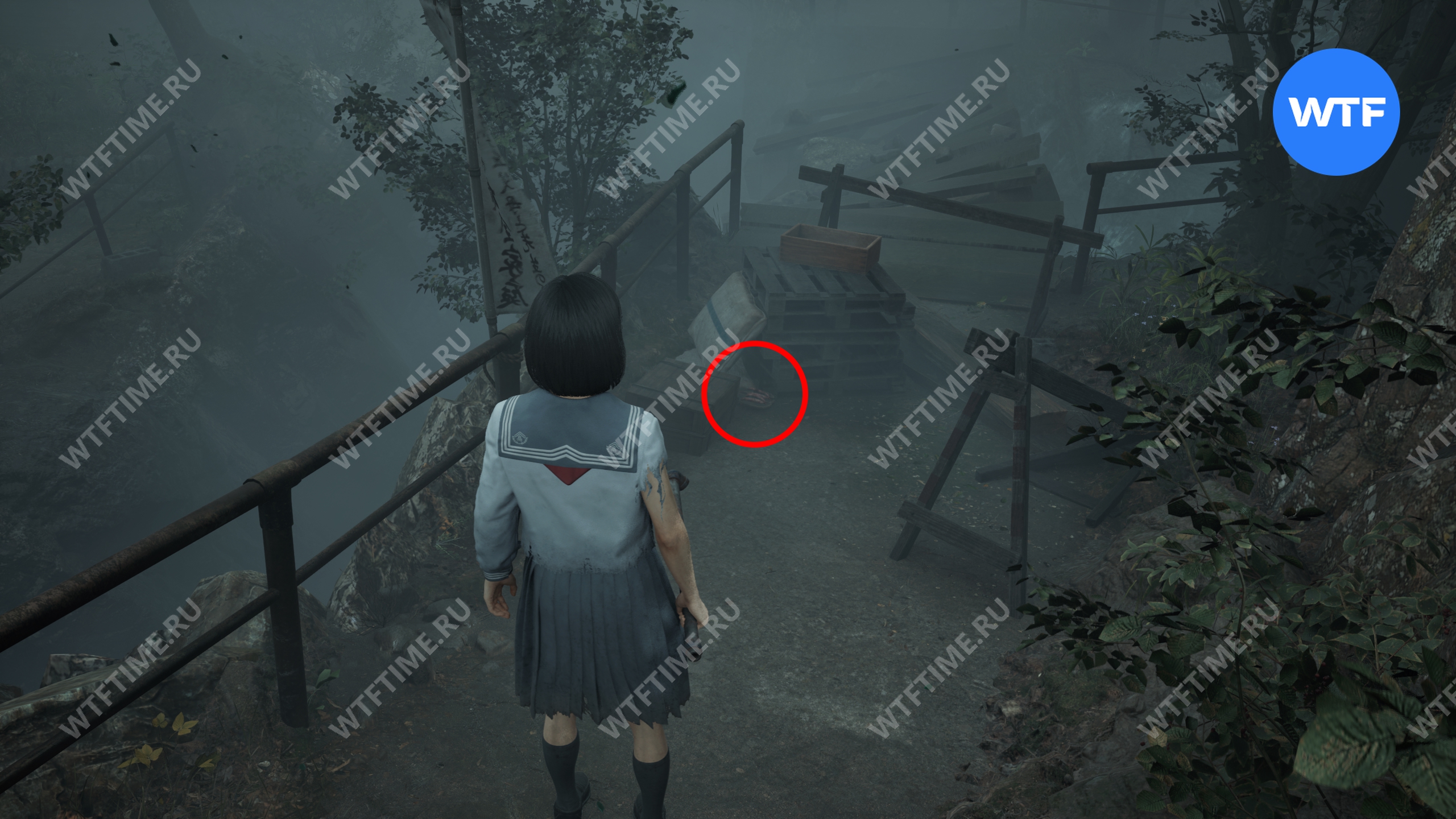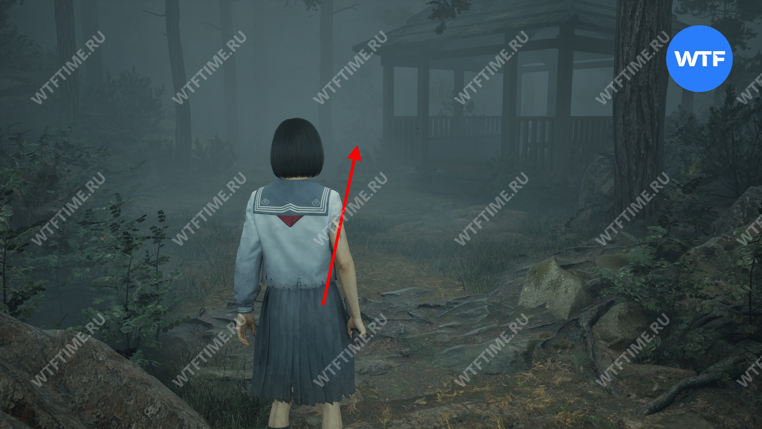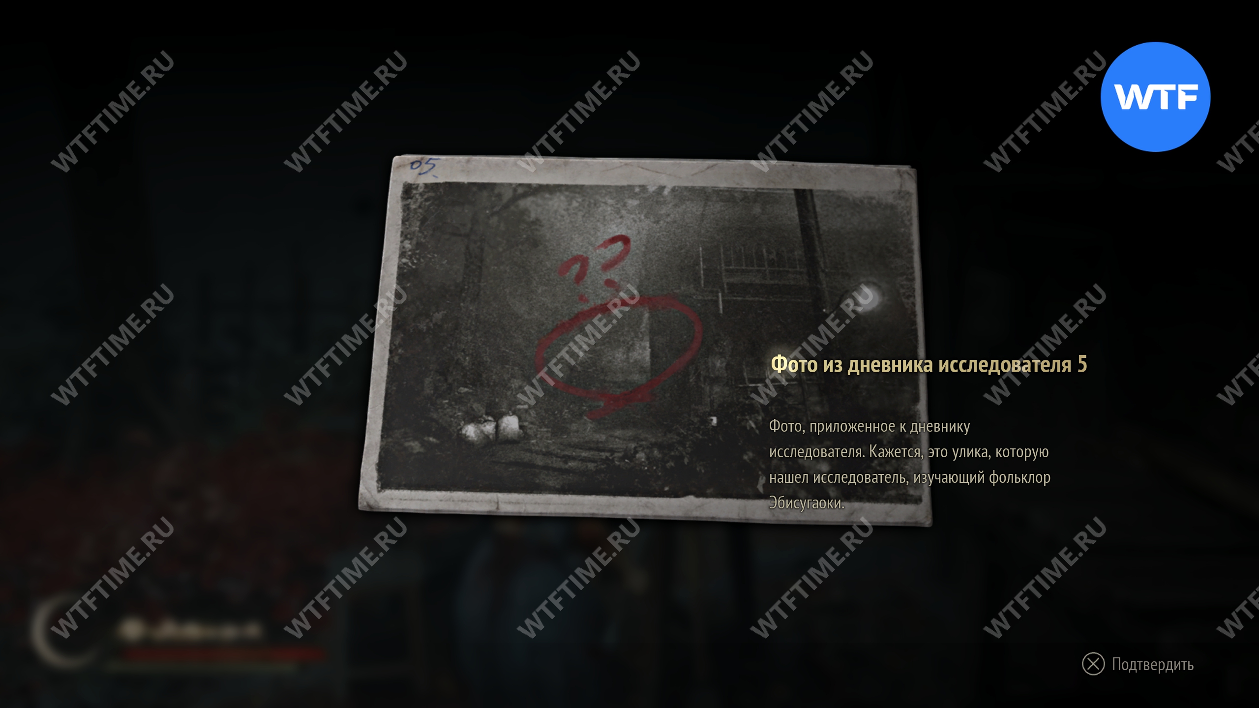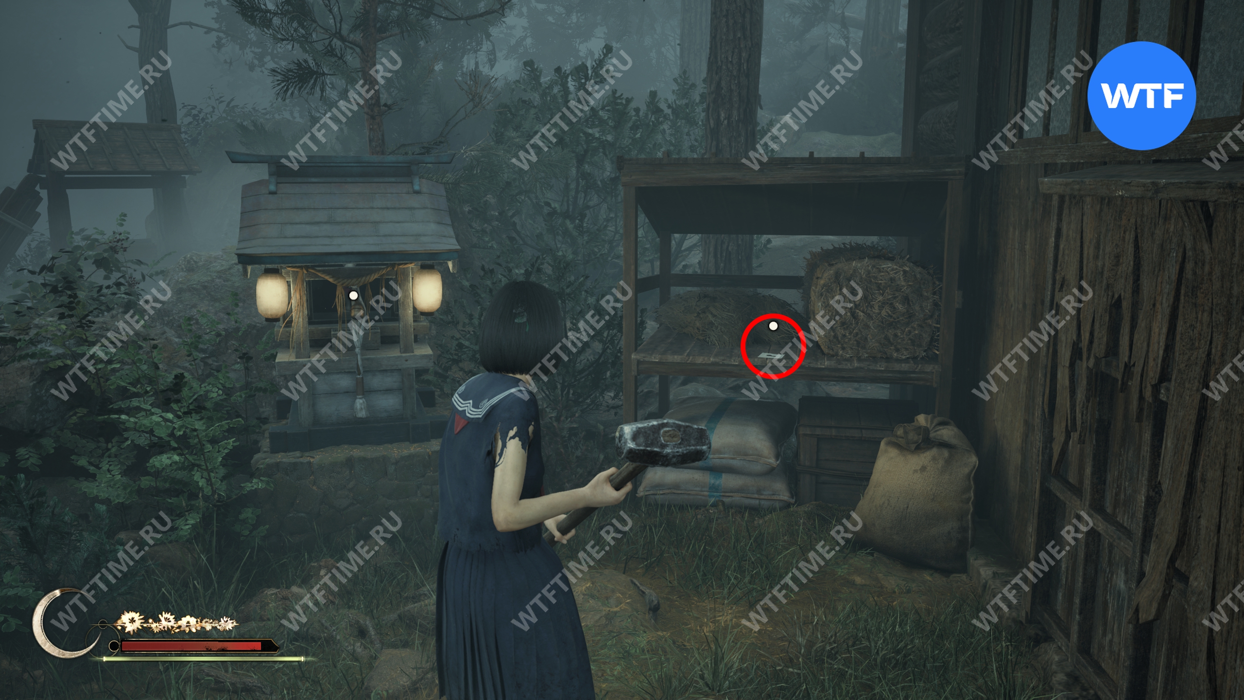 После того как вы сбежите от Туманного чудовища, поднимитесь по лестнице слева от точки сохранения на один пролет и заберите это фото из заброшенного святилища.