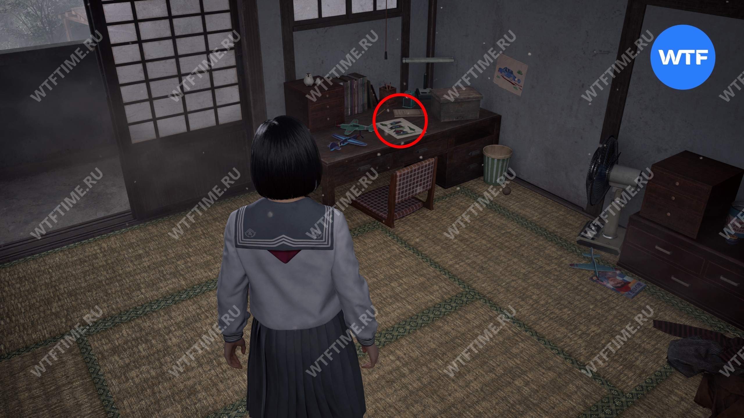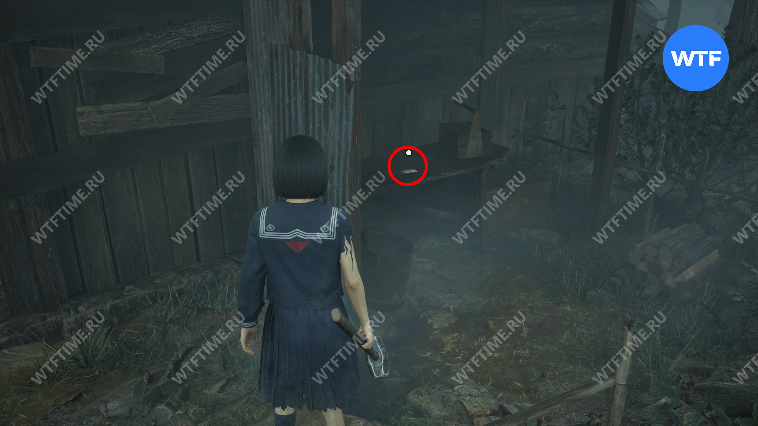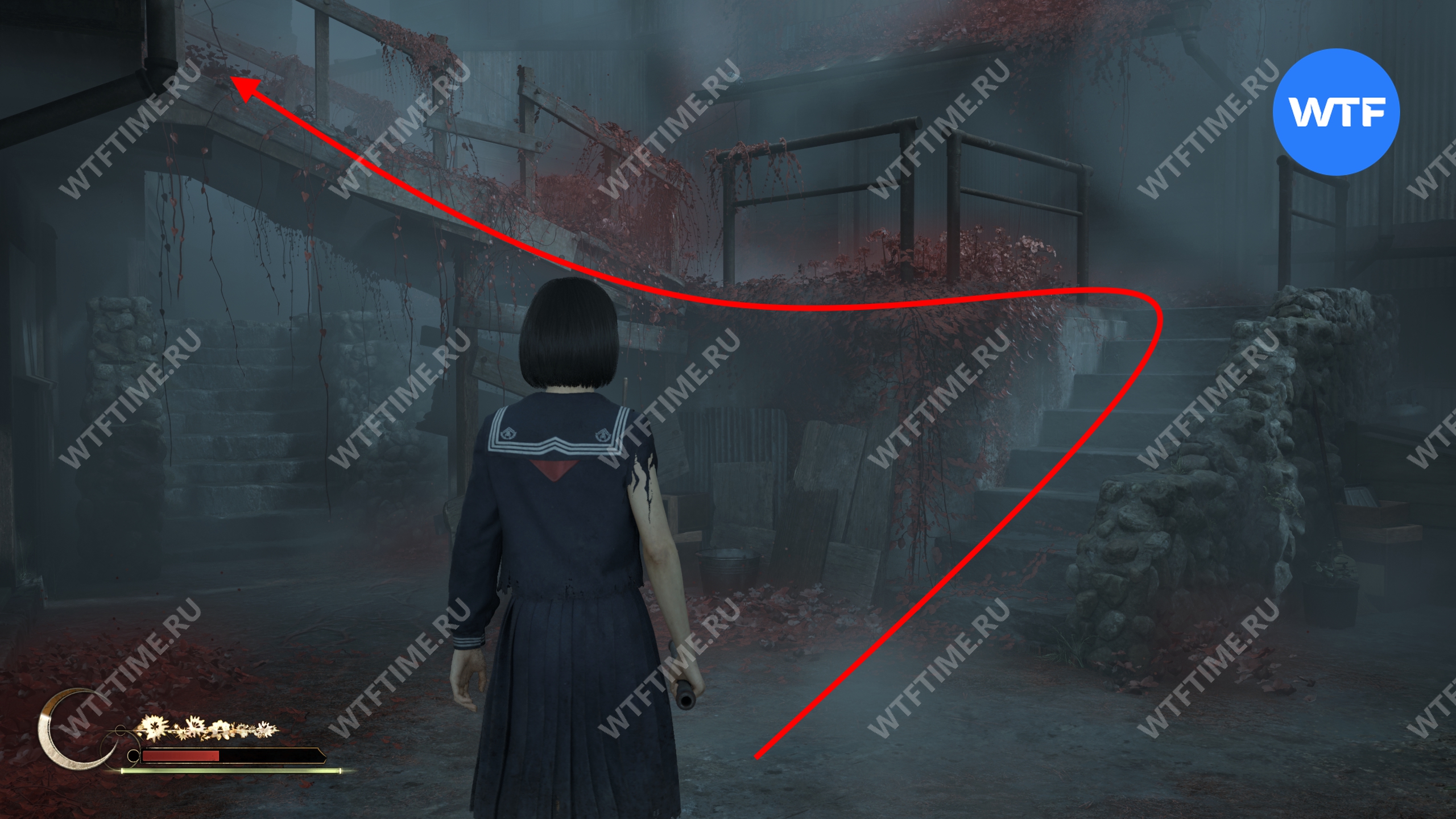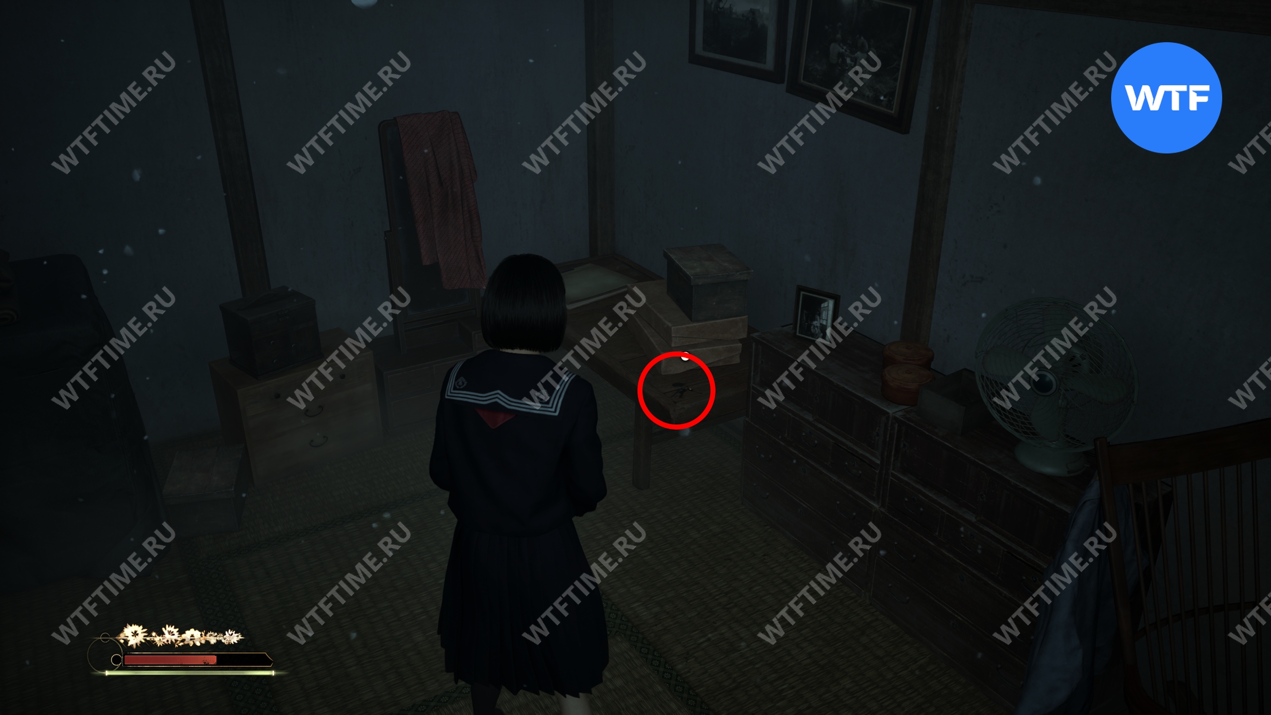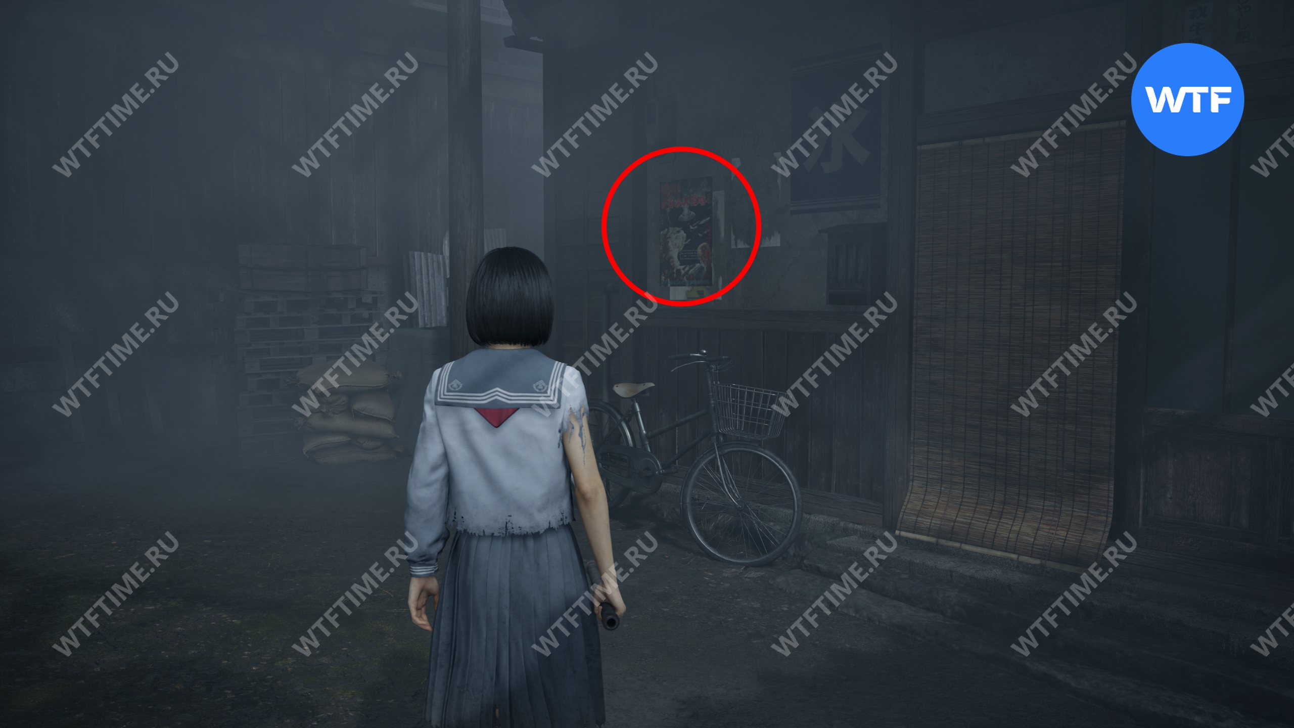 После того как вы сбежите от Туманного чудовища, поднимитесь по лестнице слева от точки сохранения на один пролет и заберите это фото из заброшенного святилища.