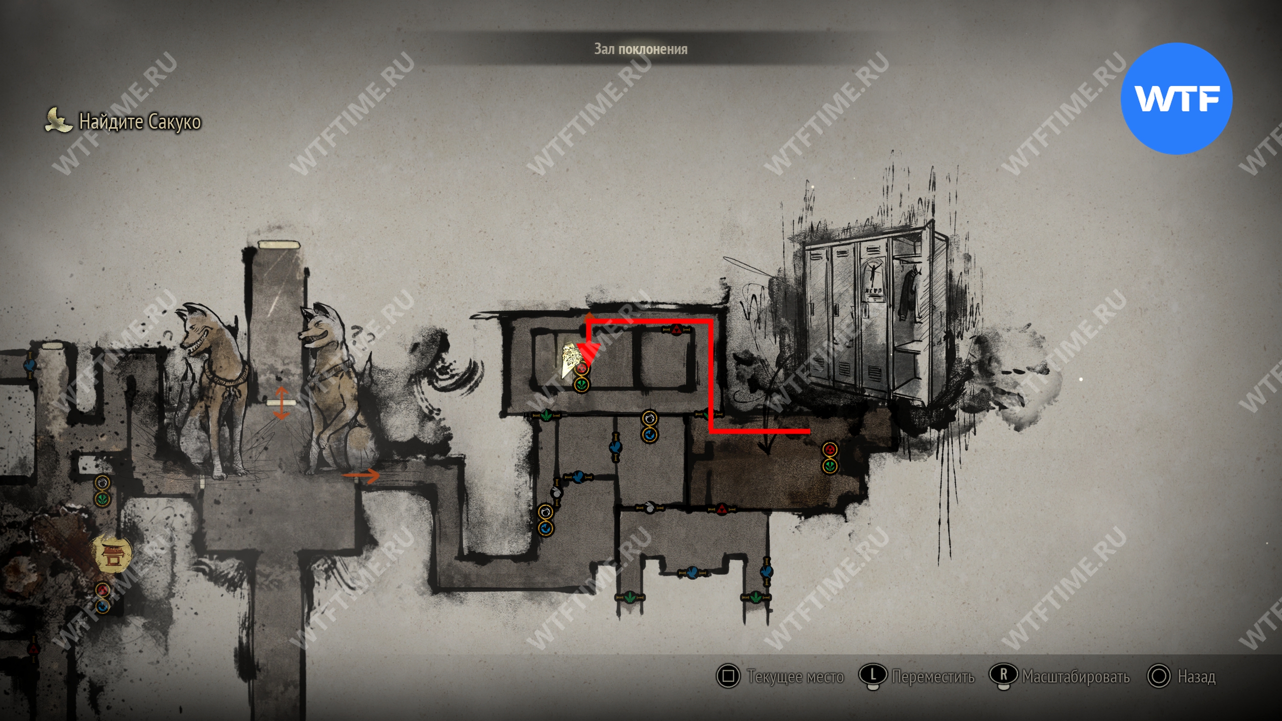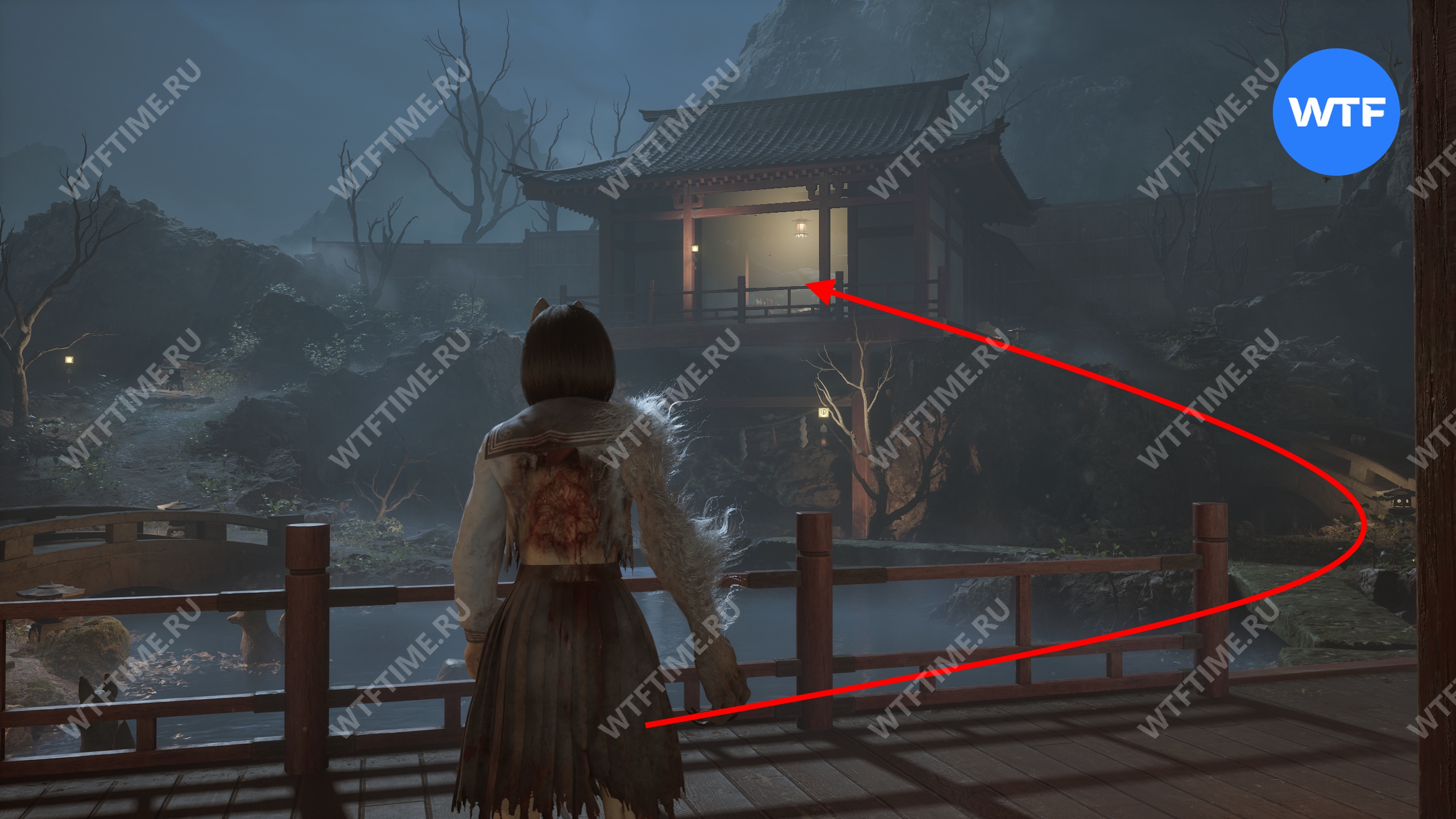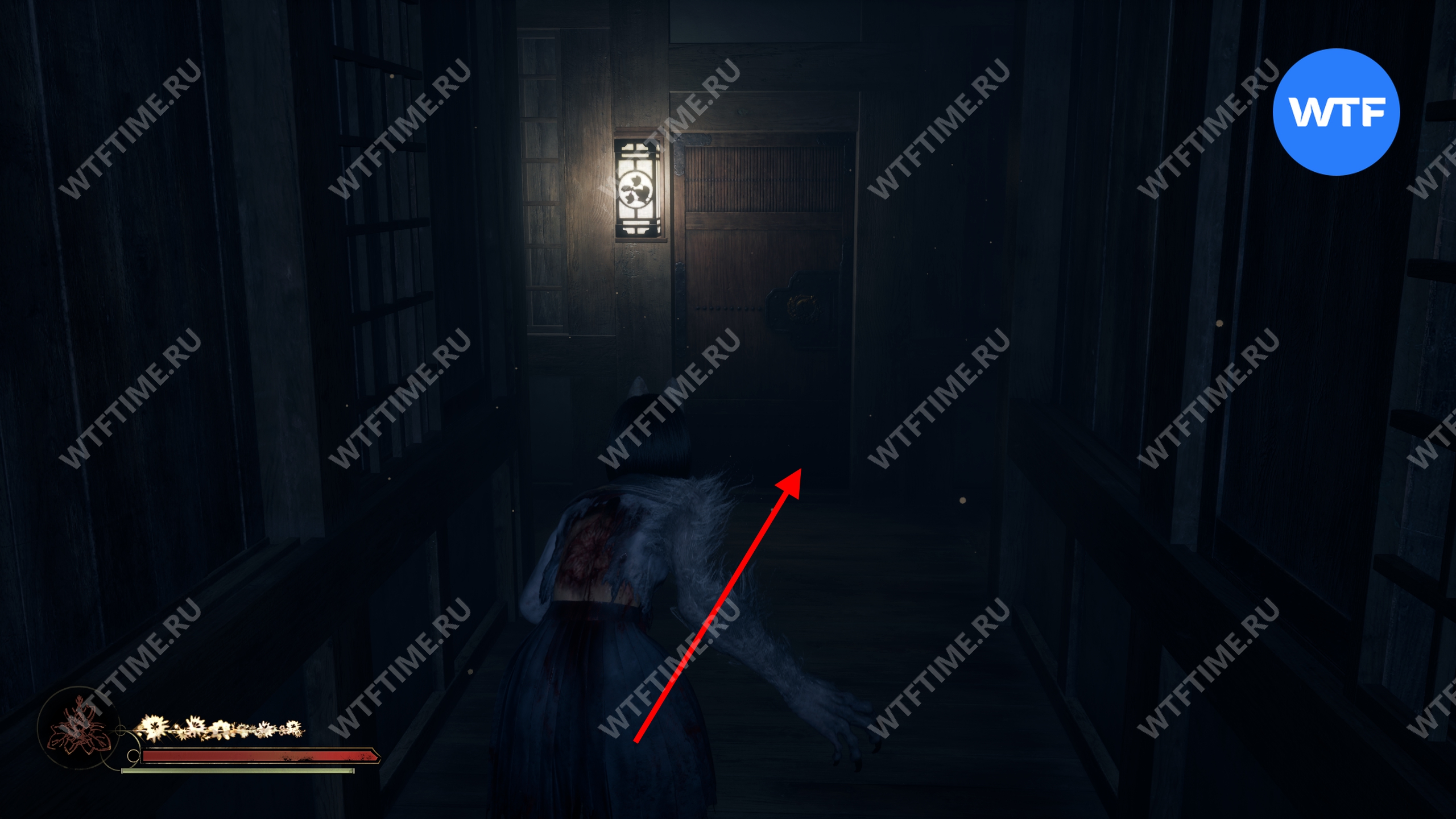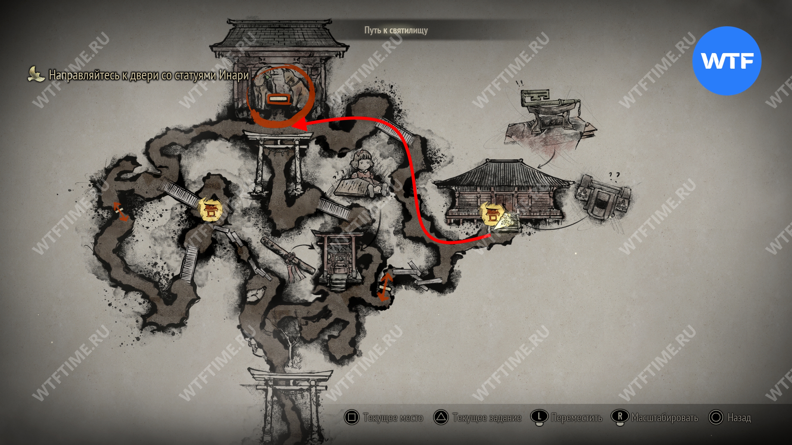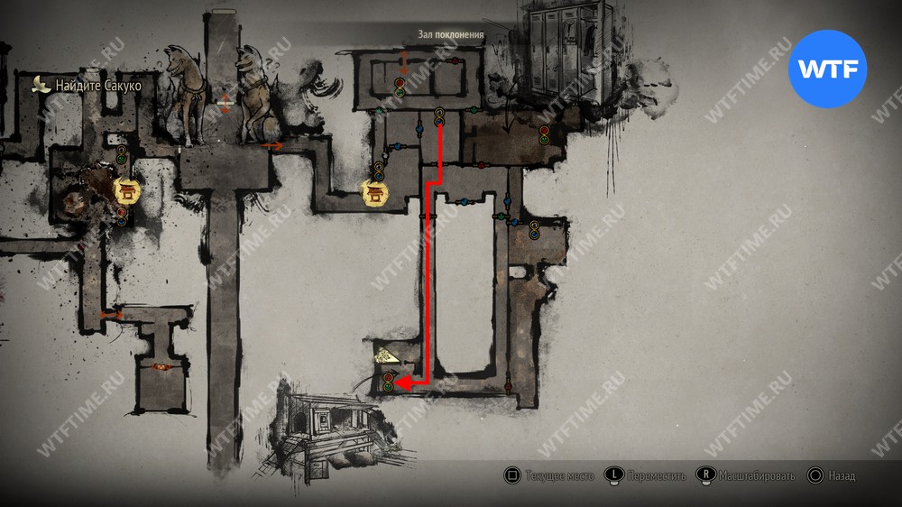 Сделайте это и окажетесь в небольшом коридоре, который приведет вас к двери с эмблемой Инари-сама. На этот раз за ней окажется новая секретная область — Обитель багряной воды.