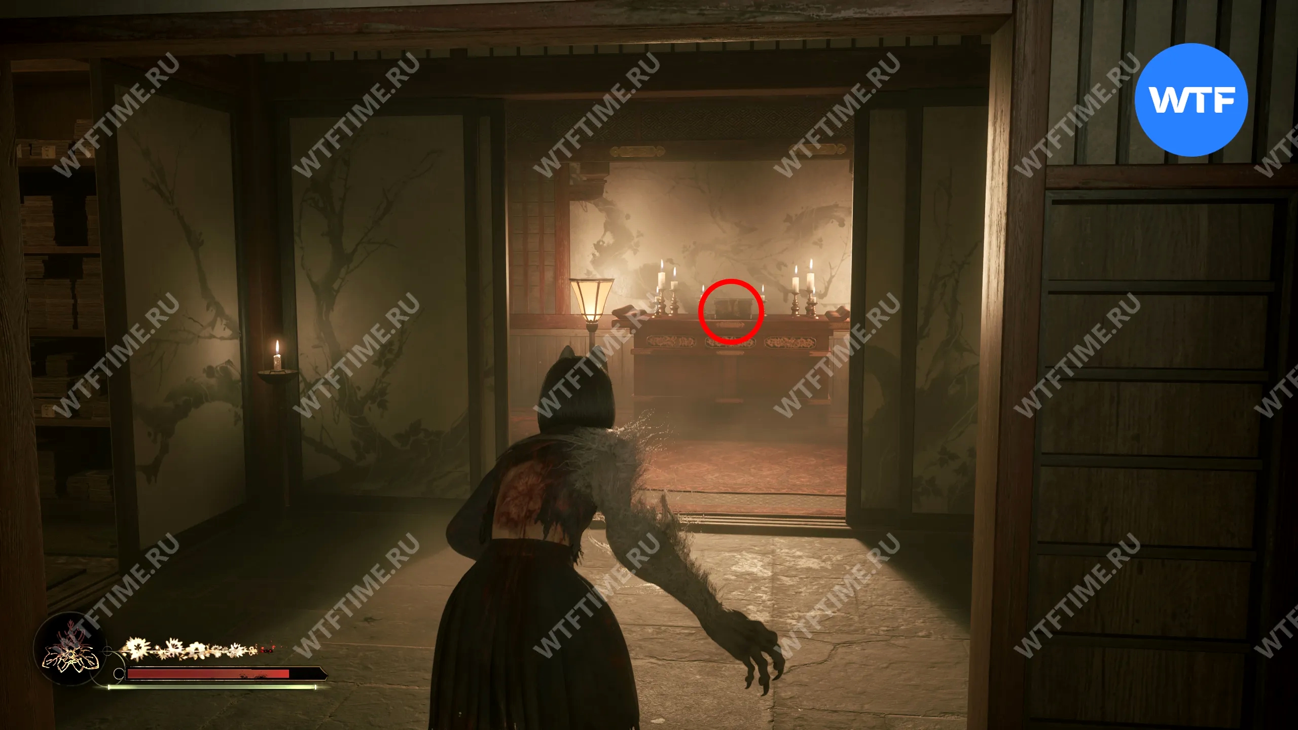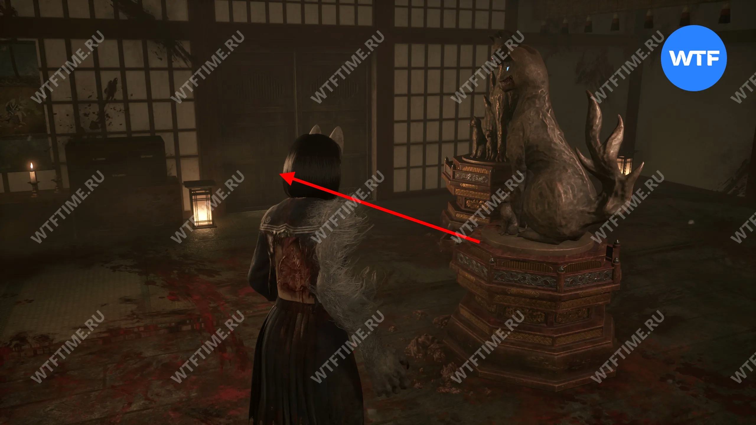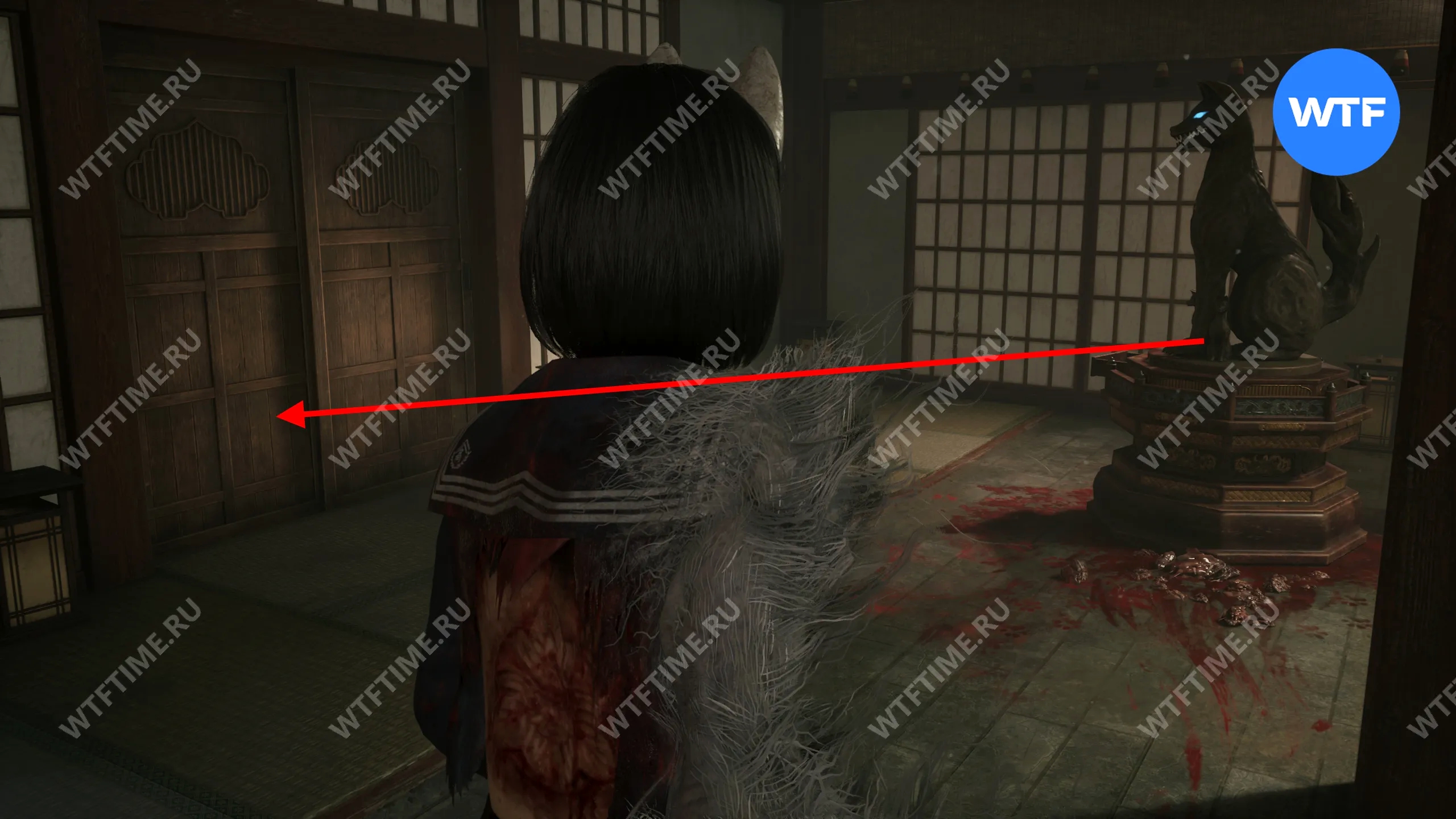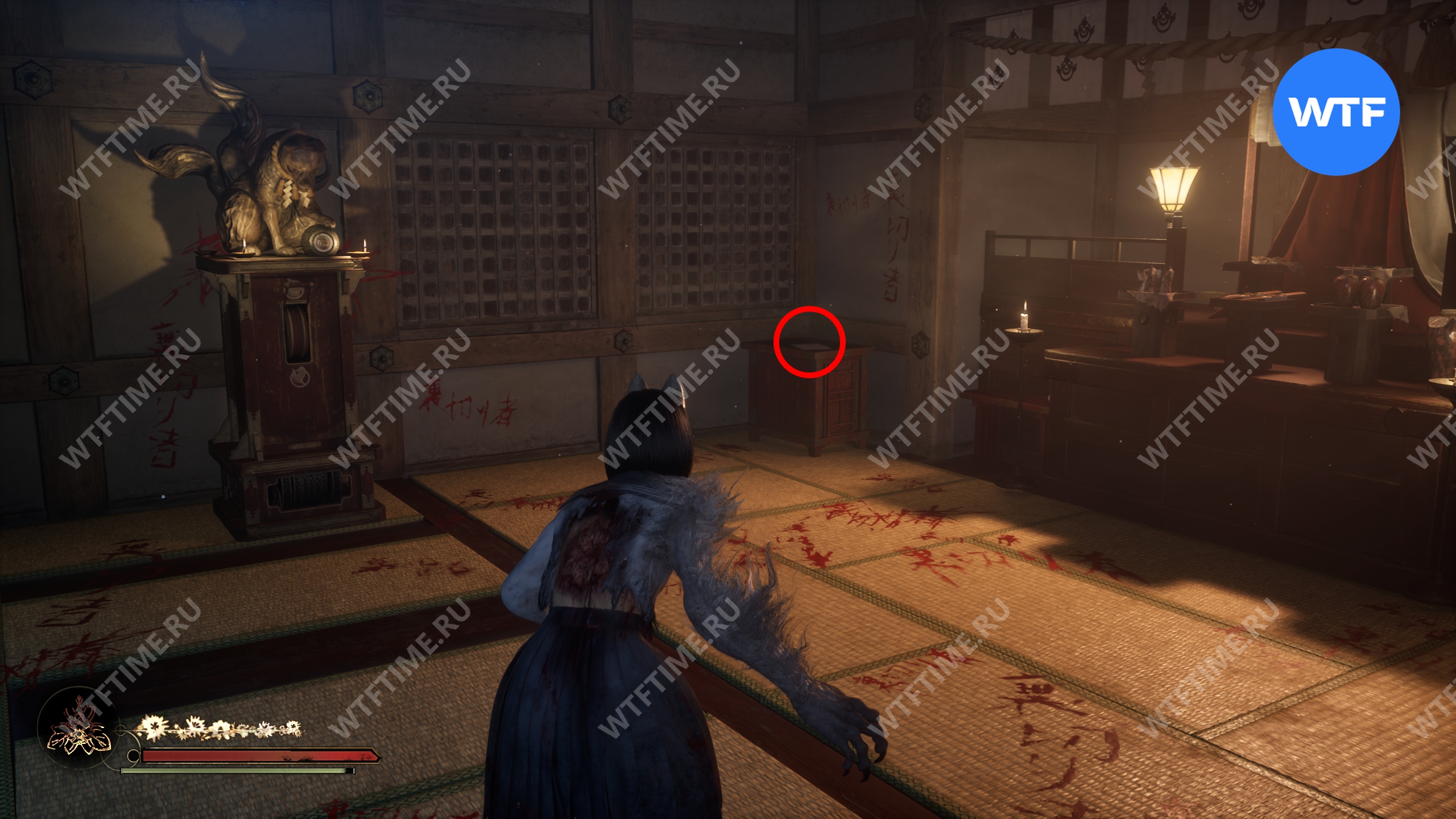 Сделайте это и окажетесь в небольшом коридоре, который приведет вас к двери с эмблемой Инари-сама. На этот раз за ней окажется новая секретная область — Обитель багряной воды.