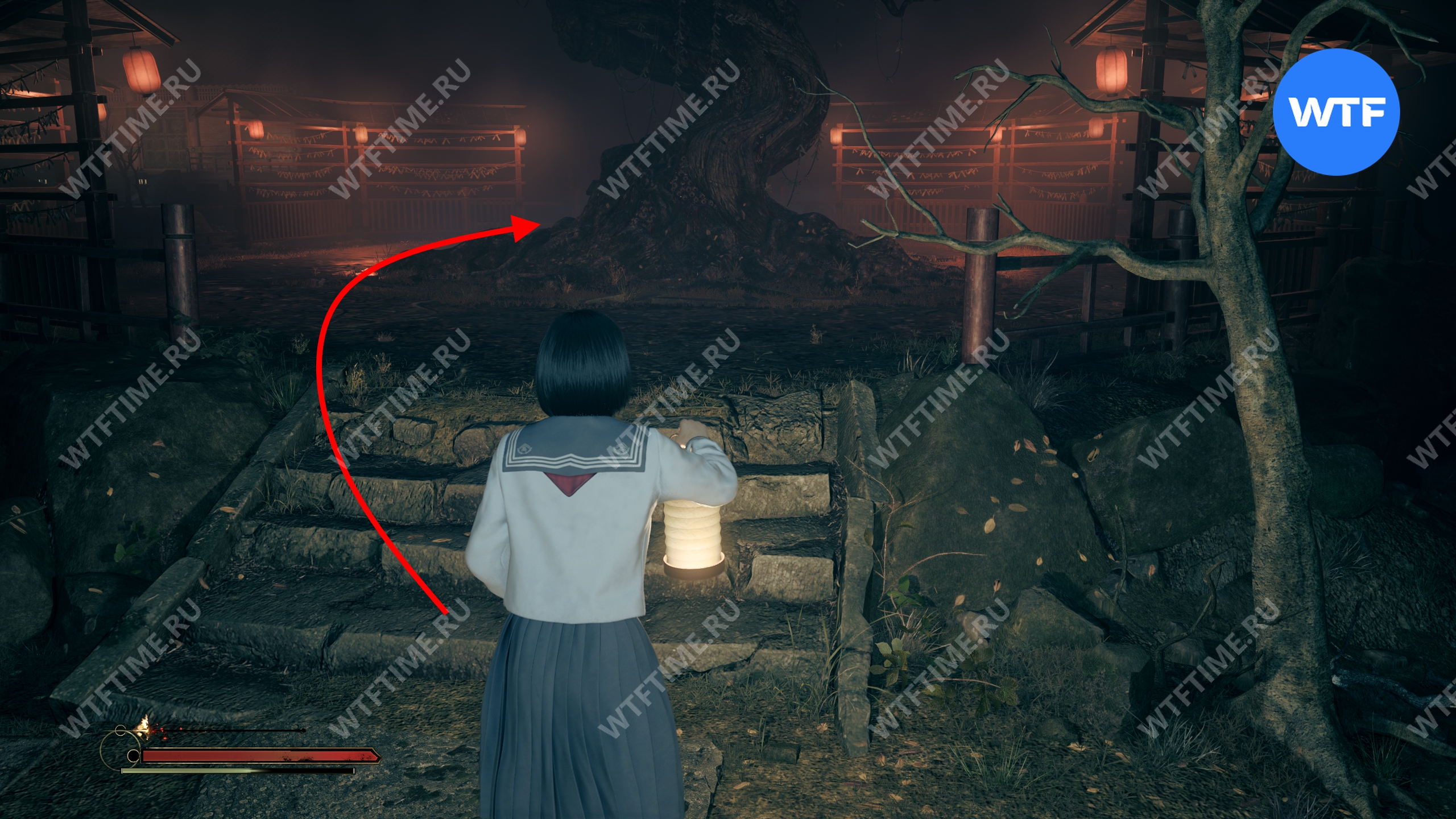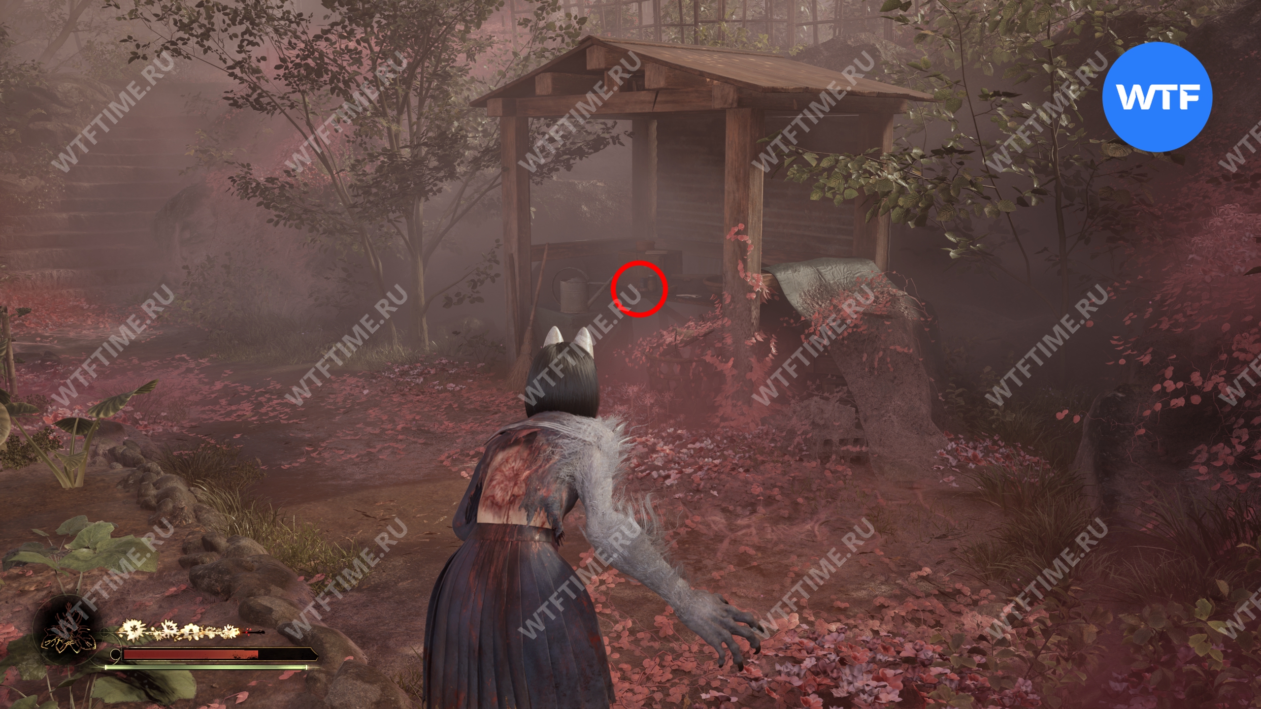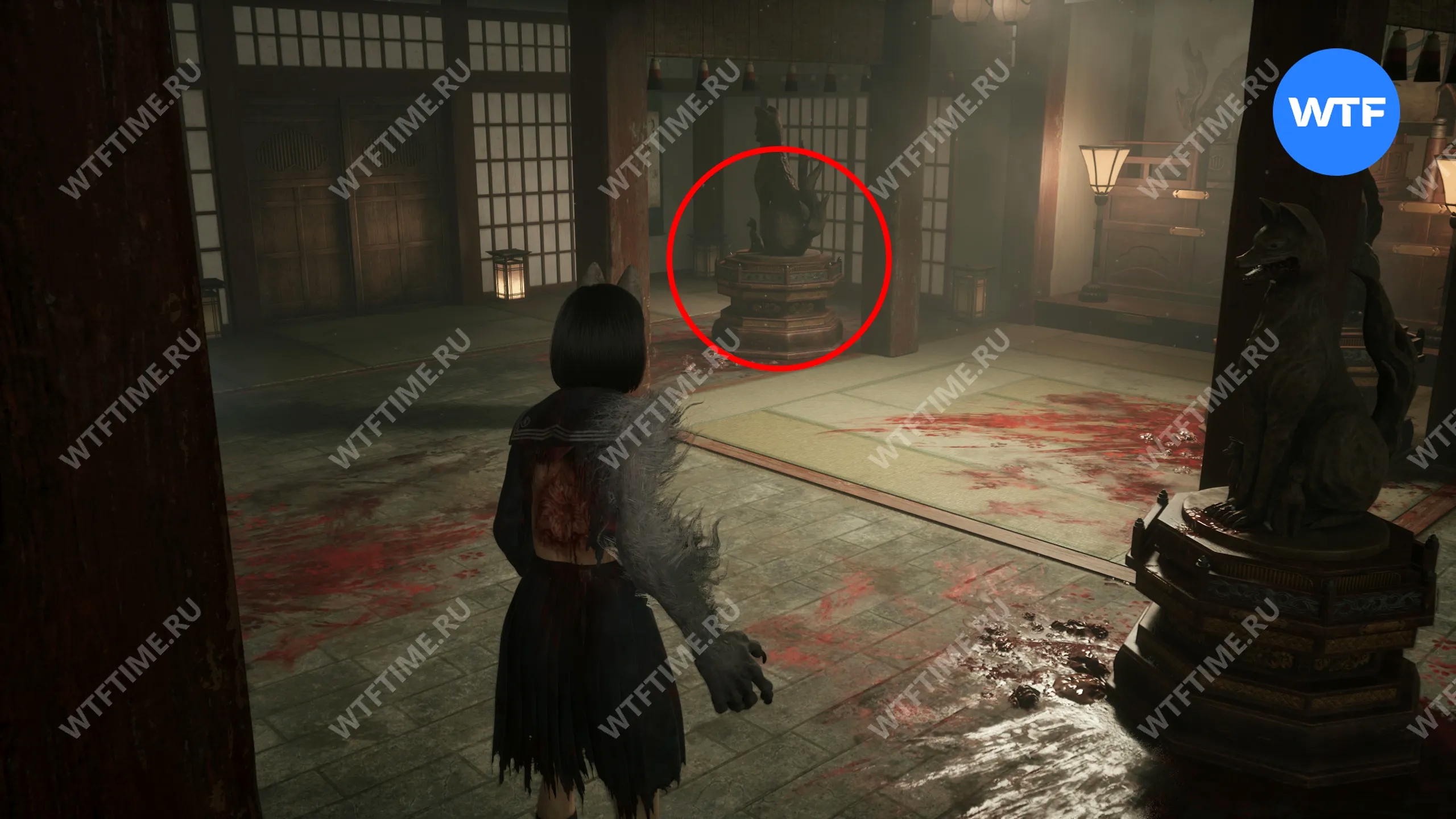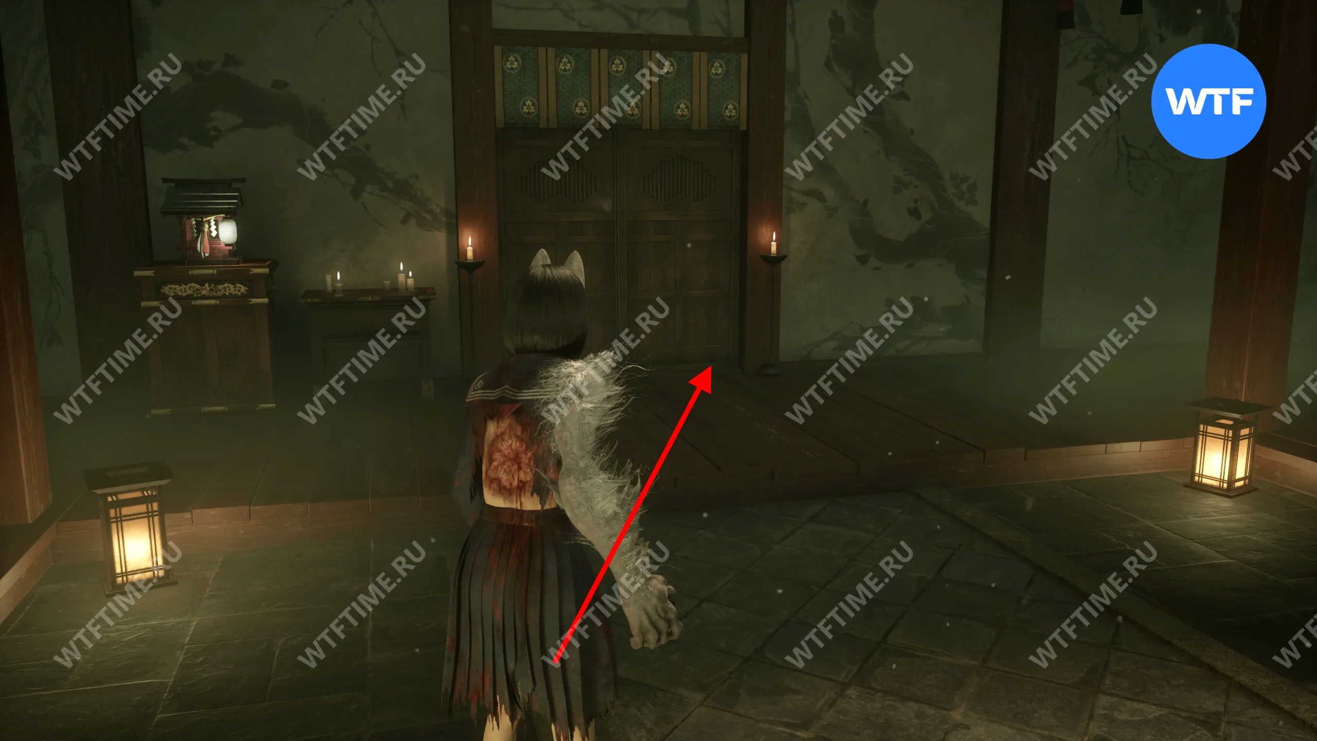 Сделайте это и окажетесь в небольшом коридоре, который приведет вас к двери с эмблемой Инари-сама. На этот раз за ней окажется новая секретная область — Обитель багряной воды.