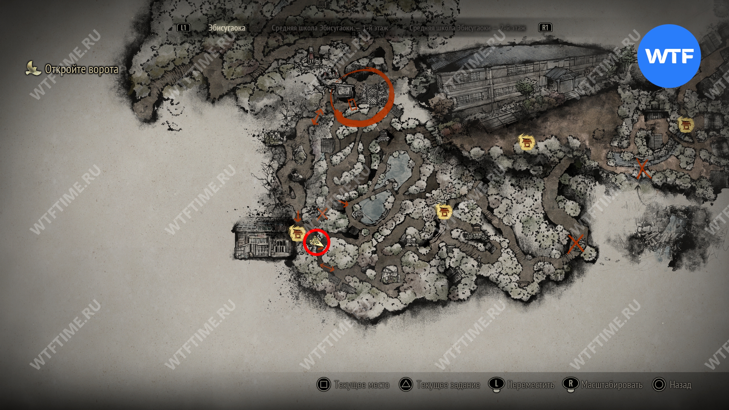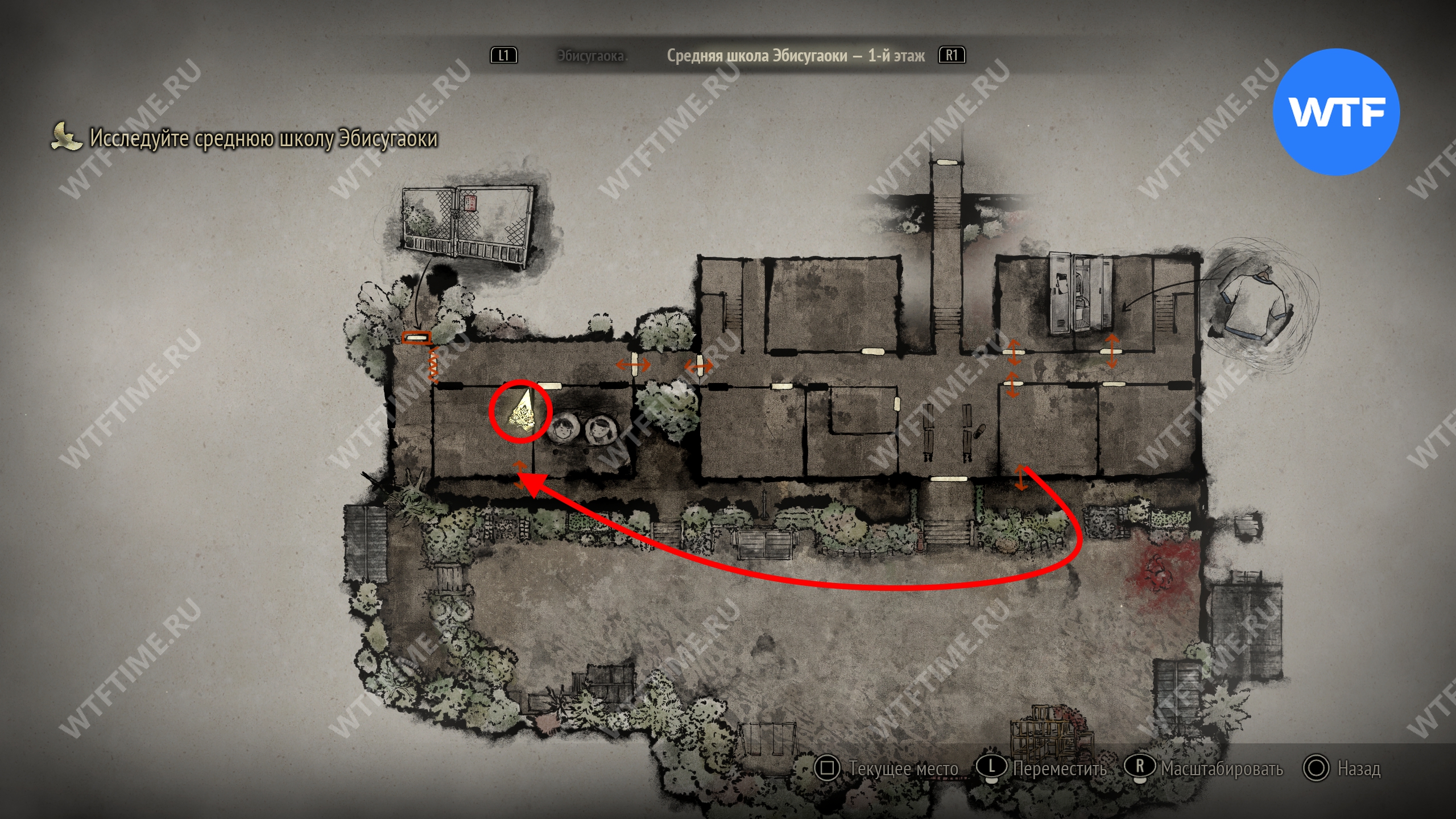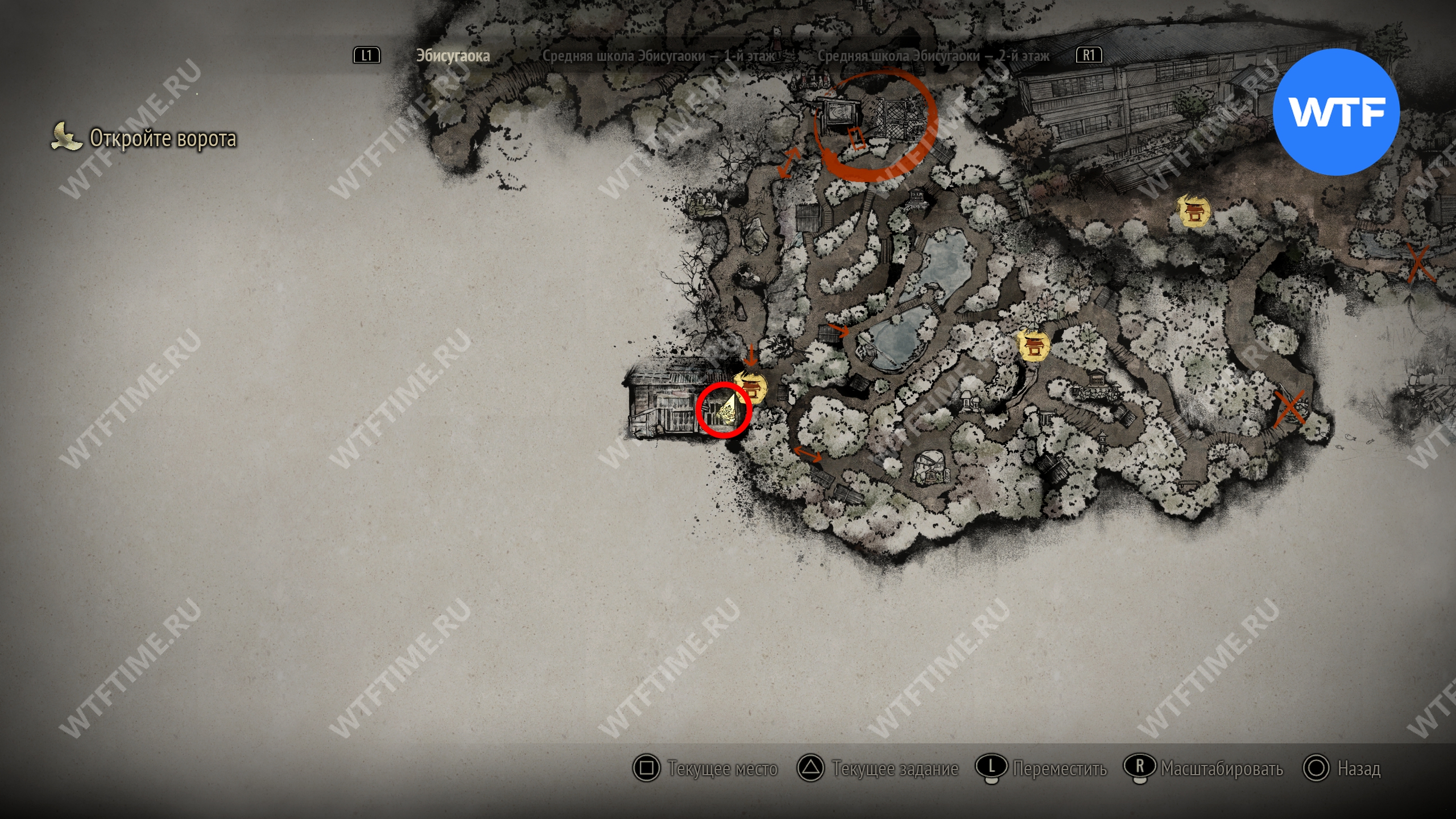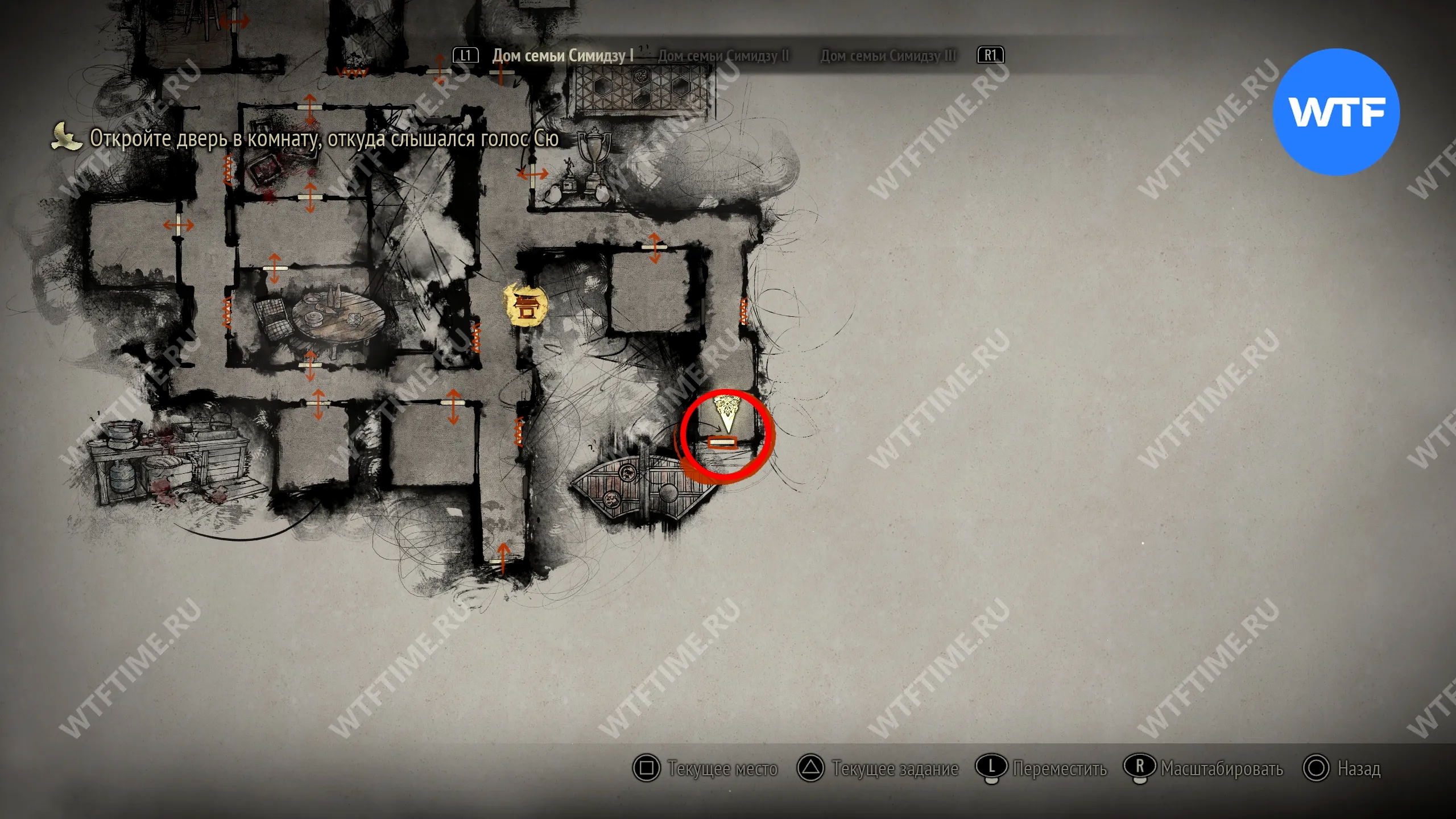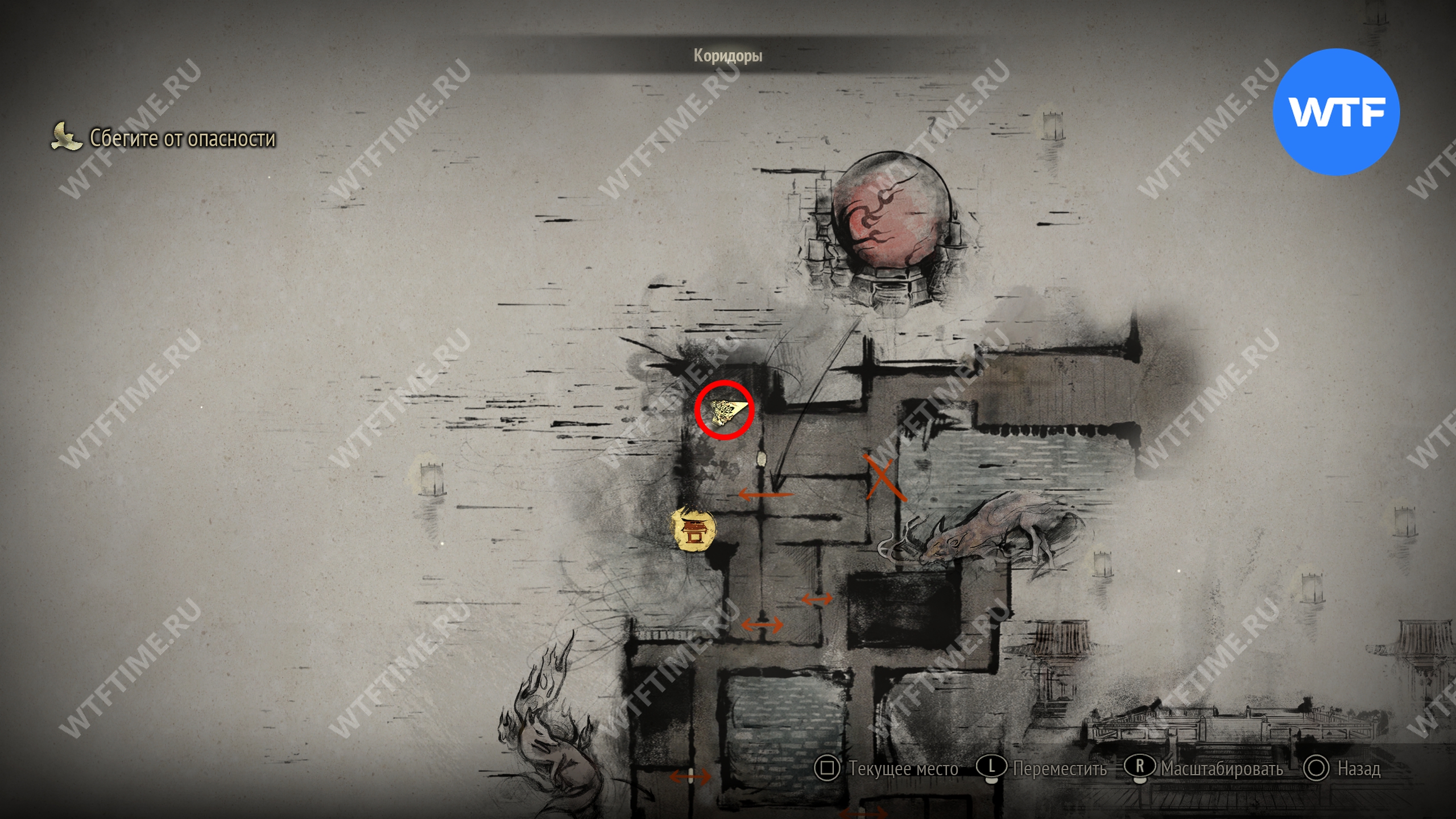 Поскольку все навыки, полученные в ходе ритуалов, будут перенесены в Новую игру+, вы сможете свободно передвигаться по локации с самого начала. Пройдите к двери в юго-восточном углу, отмеченной на скриншоте ниже.
