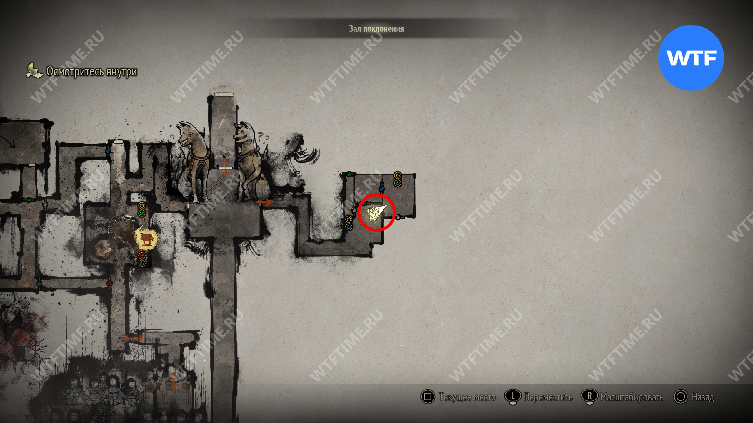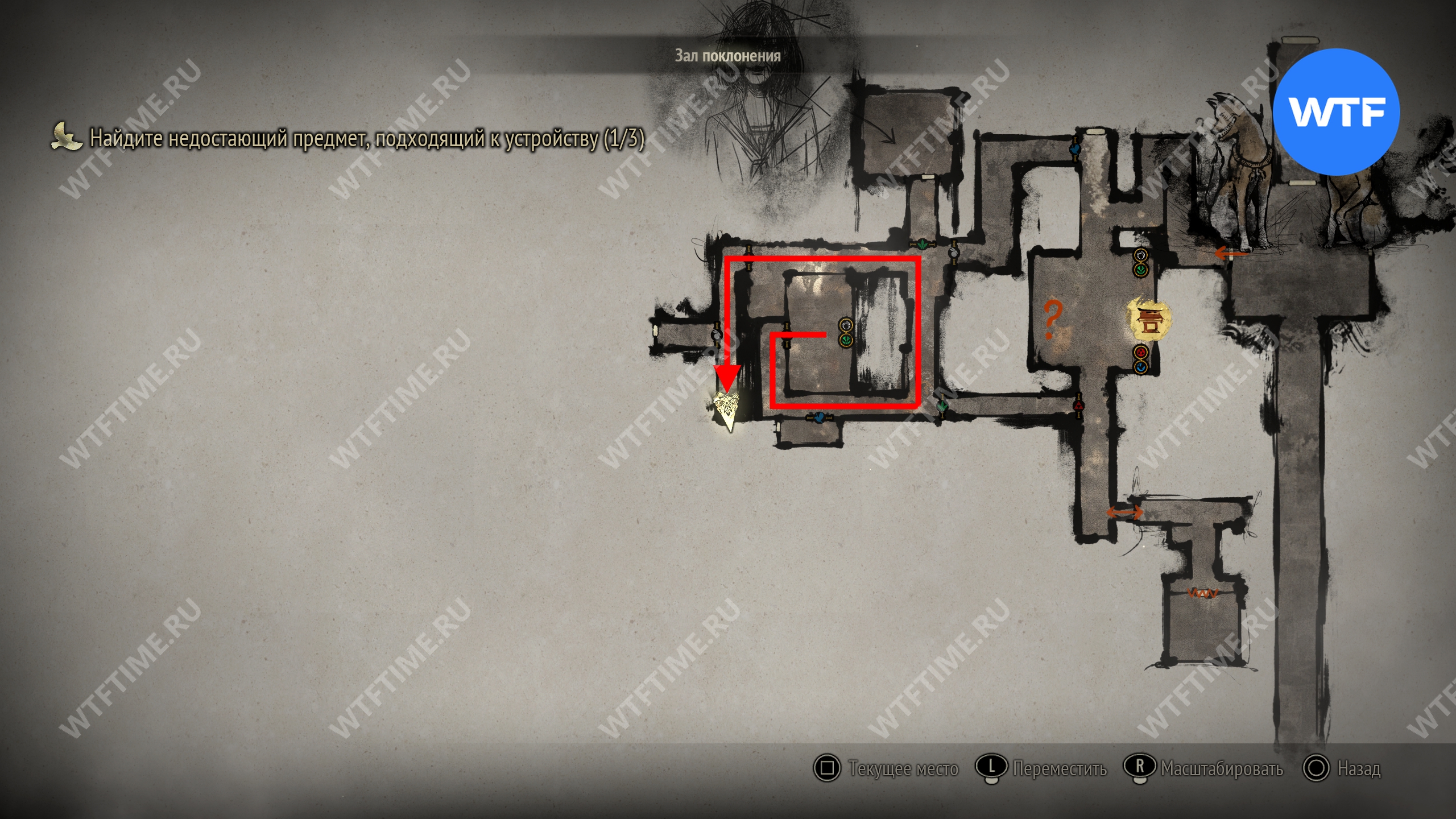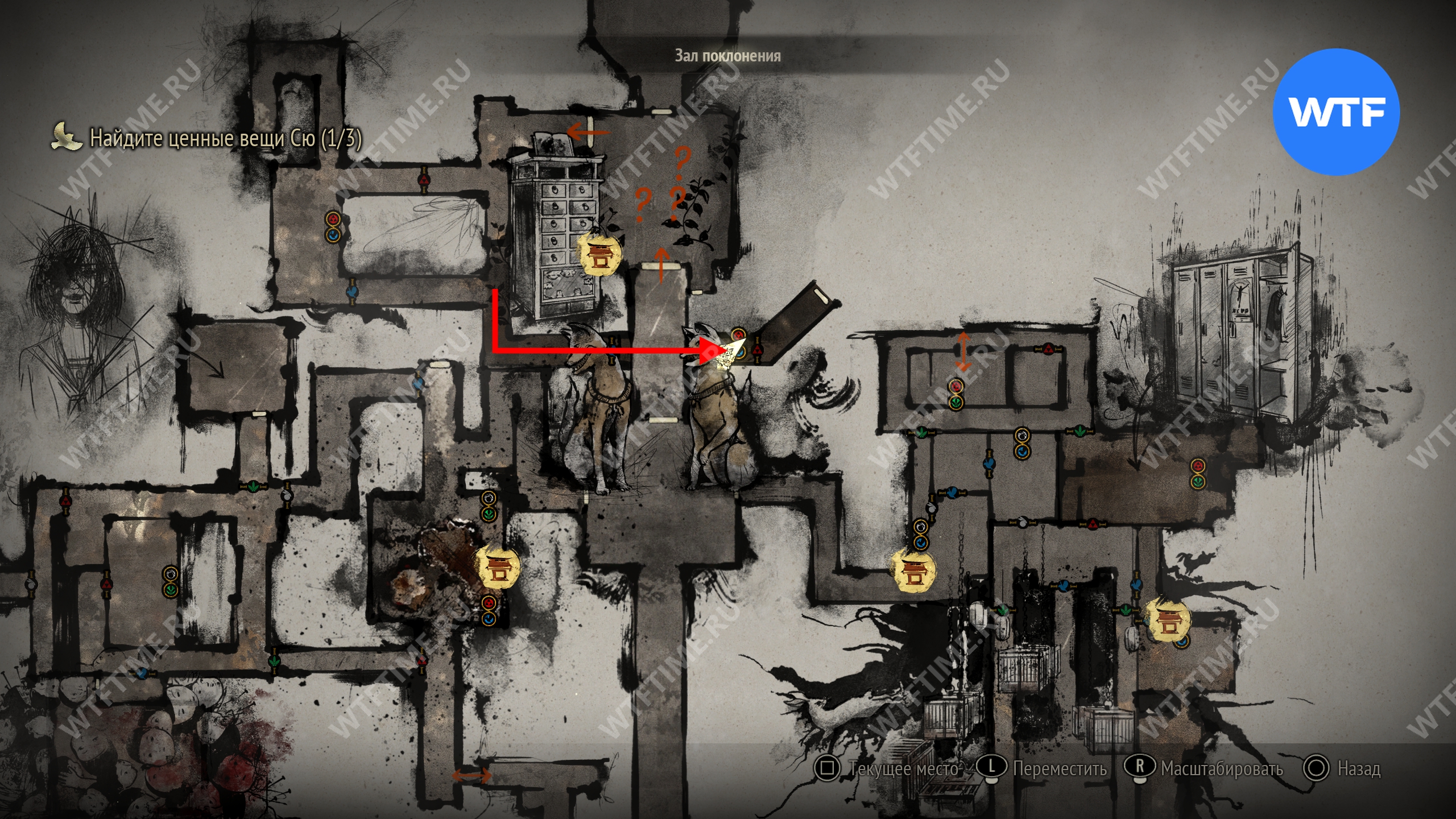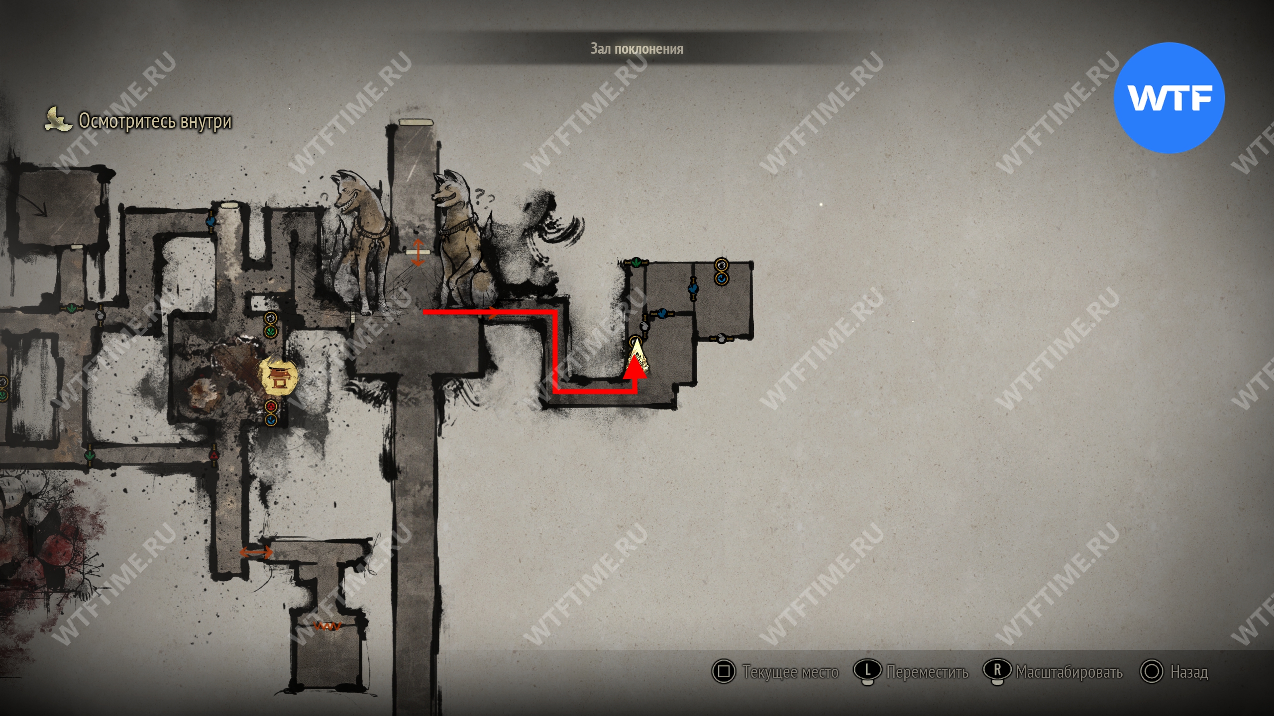 Затем вернитесь обратно на основной путь и идите к святилищу, отмеченному на карте ниже. Если в Главном зале вы решили загадку «Багряная жидкость», здесь появится ванна, наполненная кровью.
