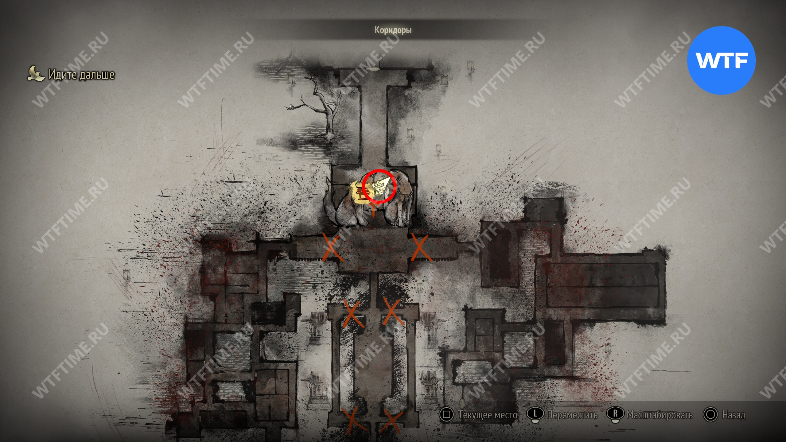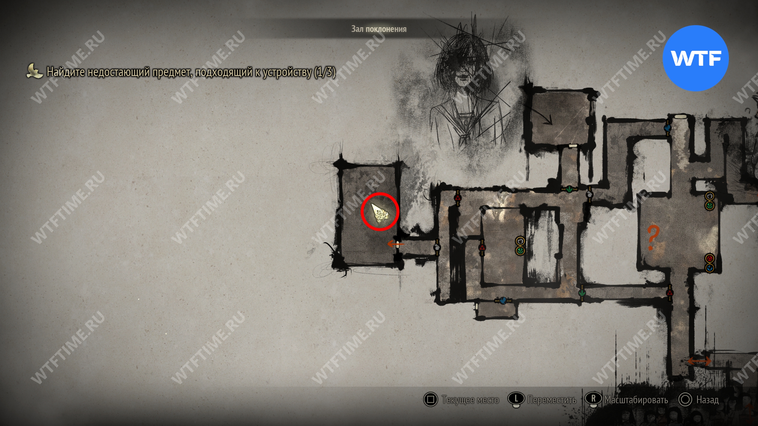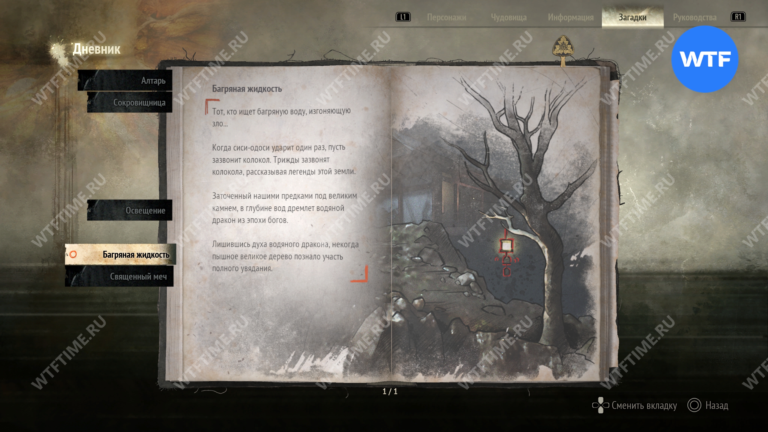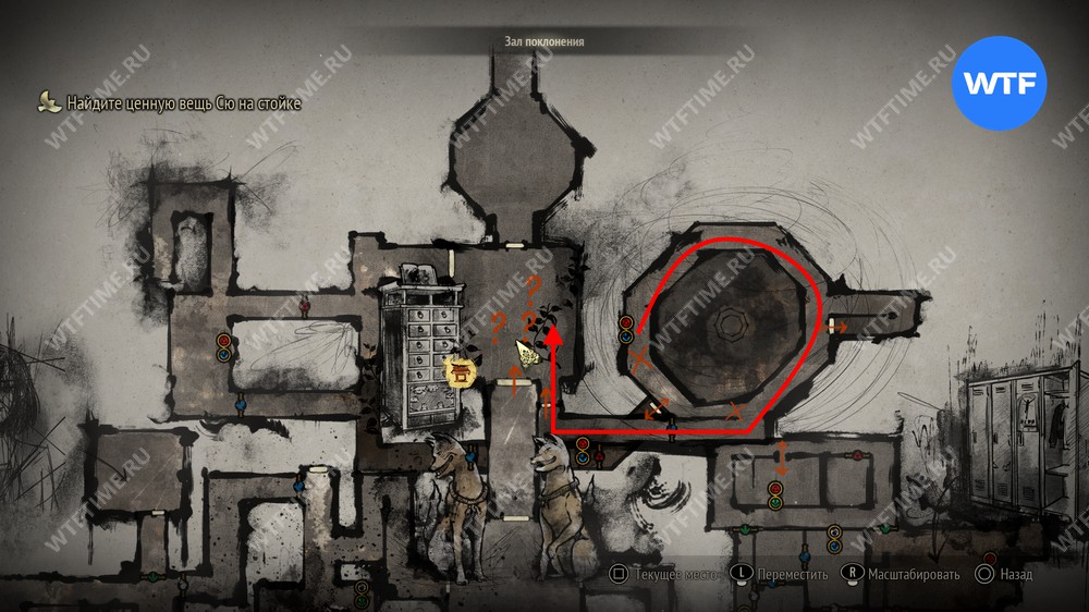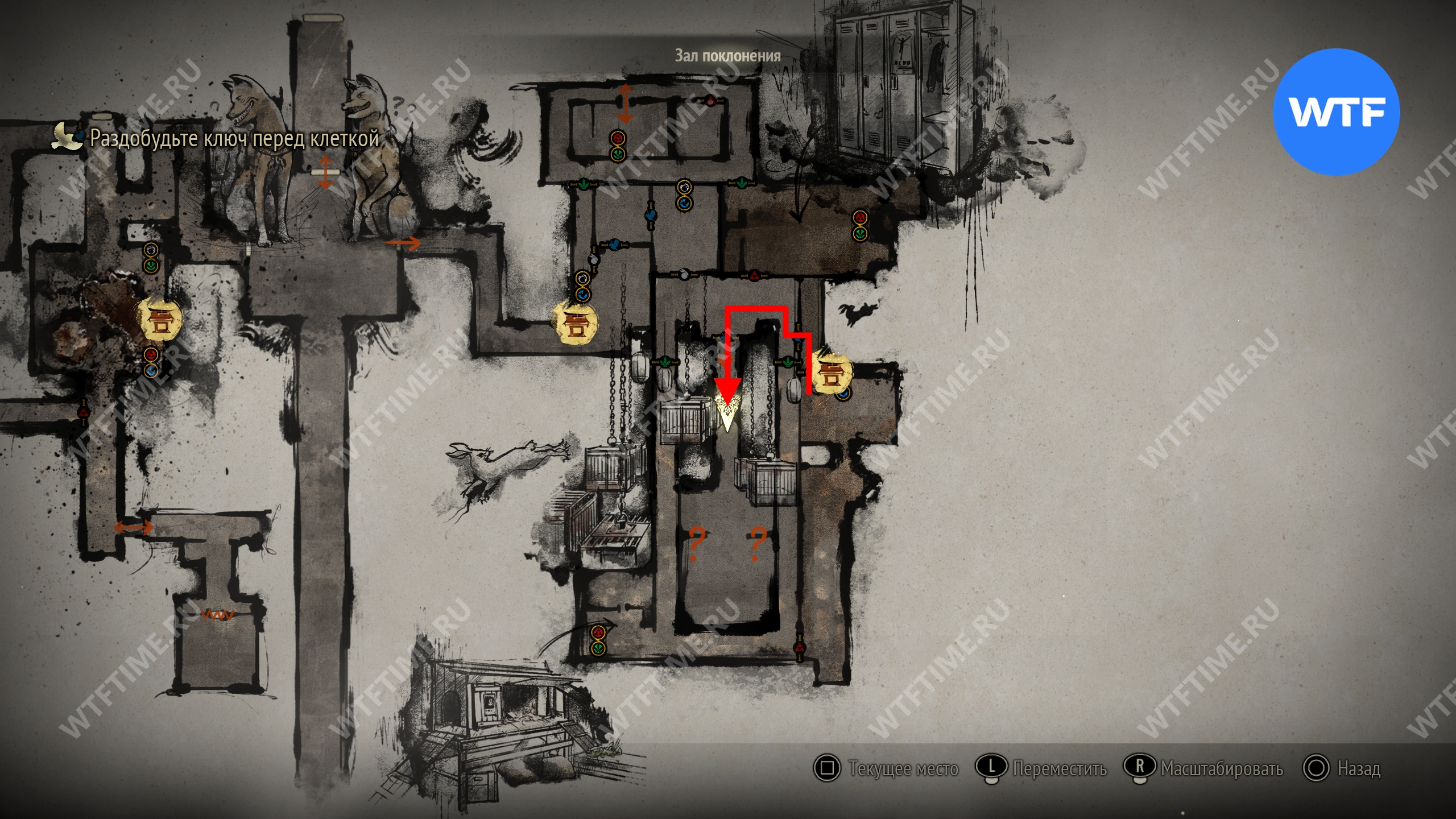 Затем вернитесь обратно на основной путь и идите к святилищу, отмеченному на карте ниже. Если в Главном зале вы решили загадку «Багряная жидкость», здесь появится ванна, наполненная кровью.