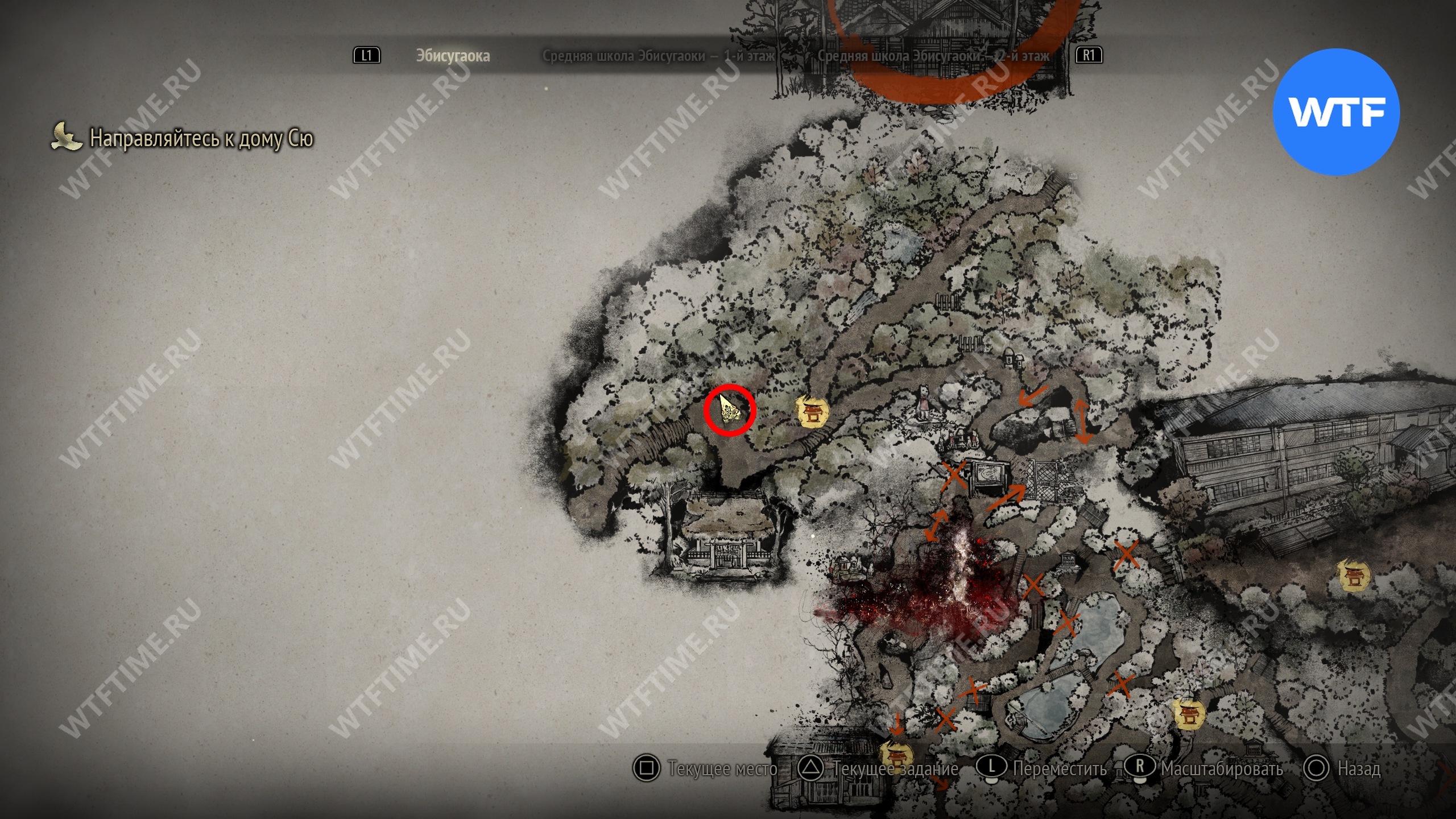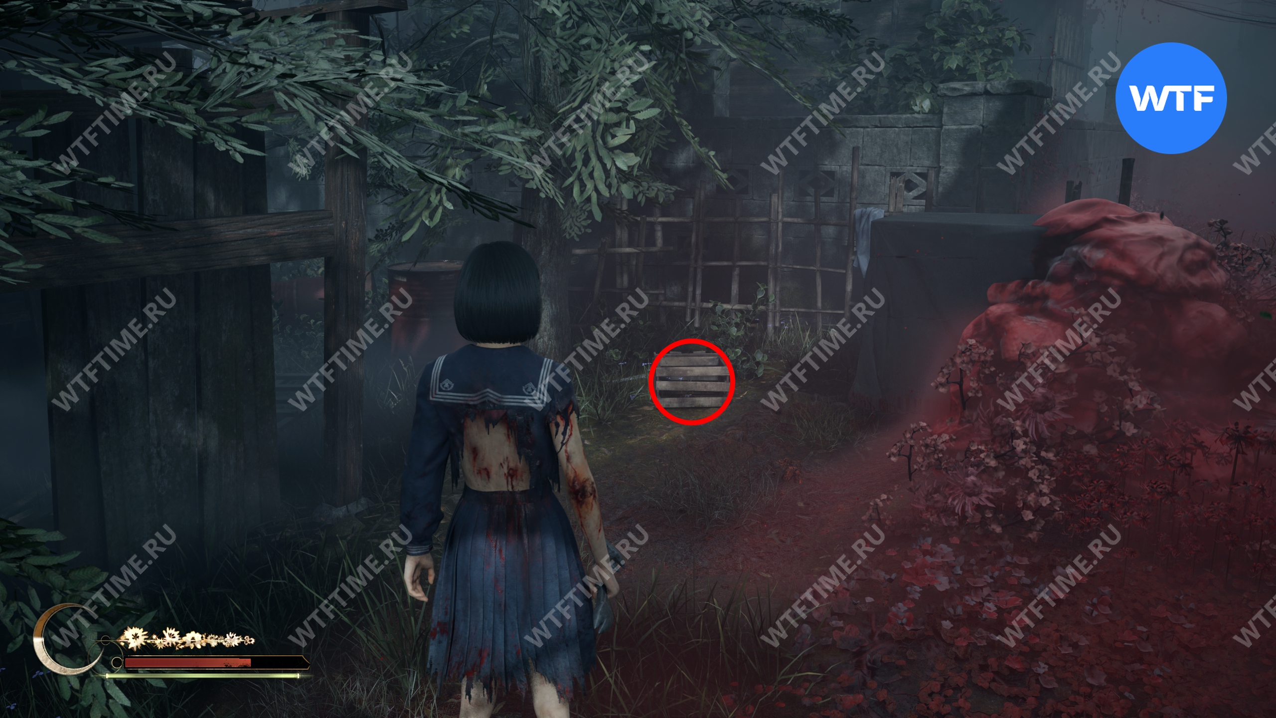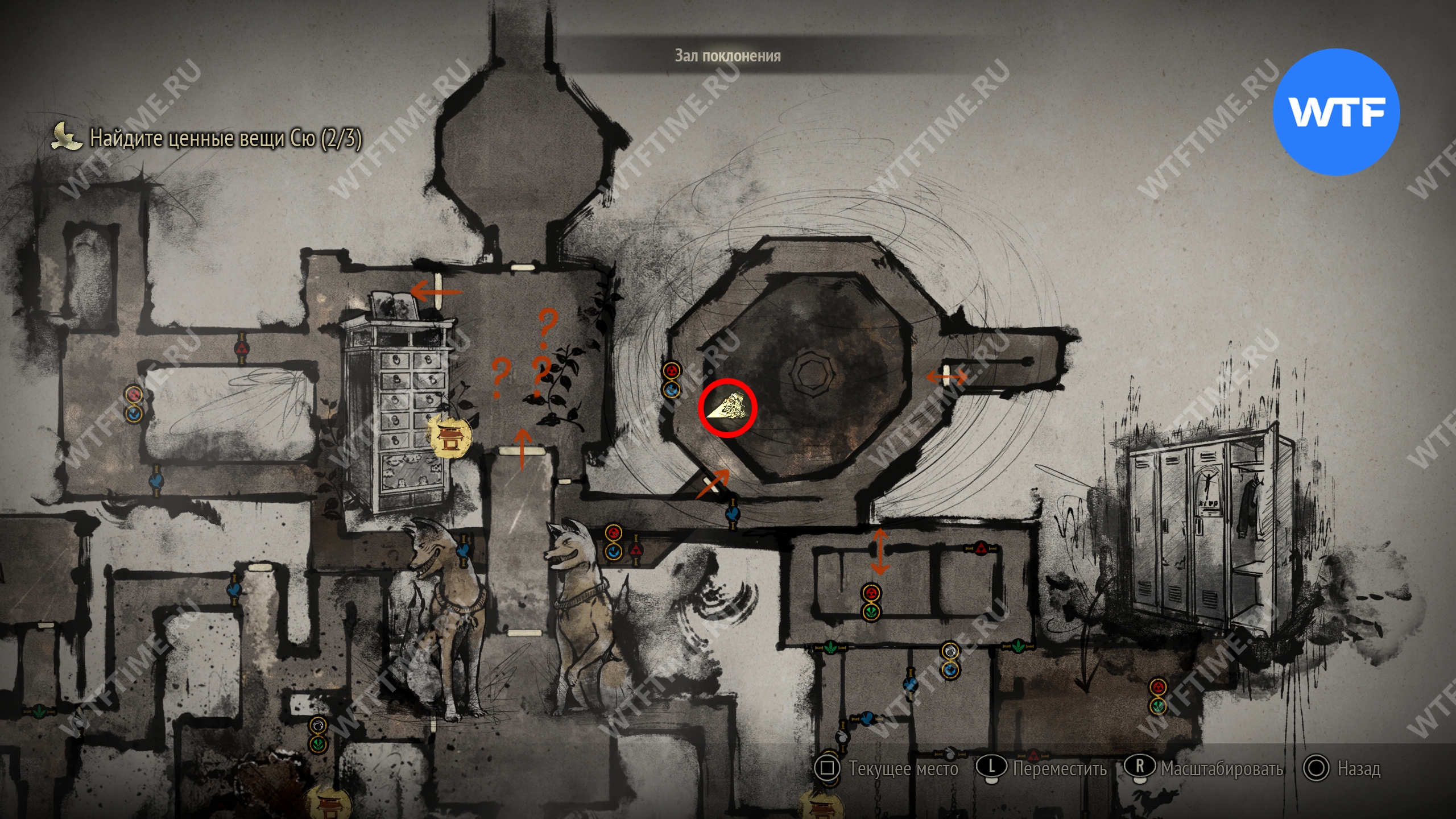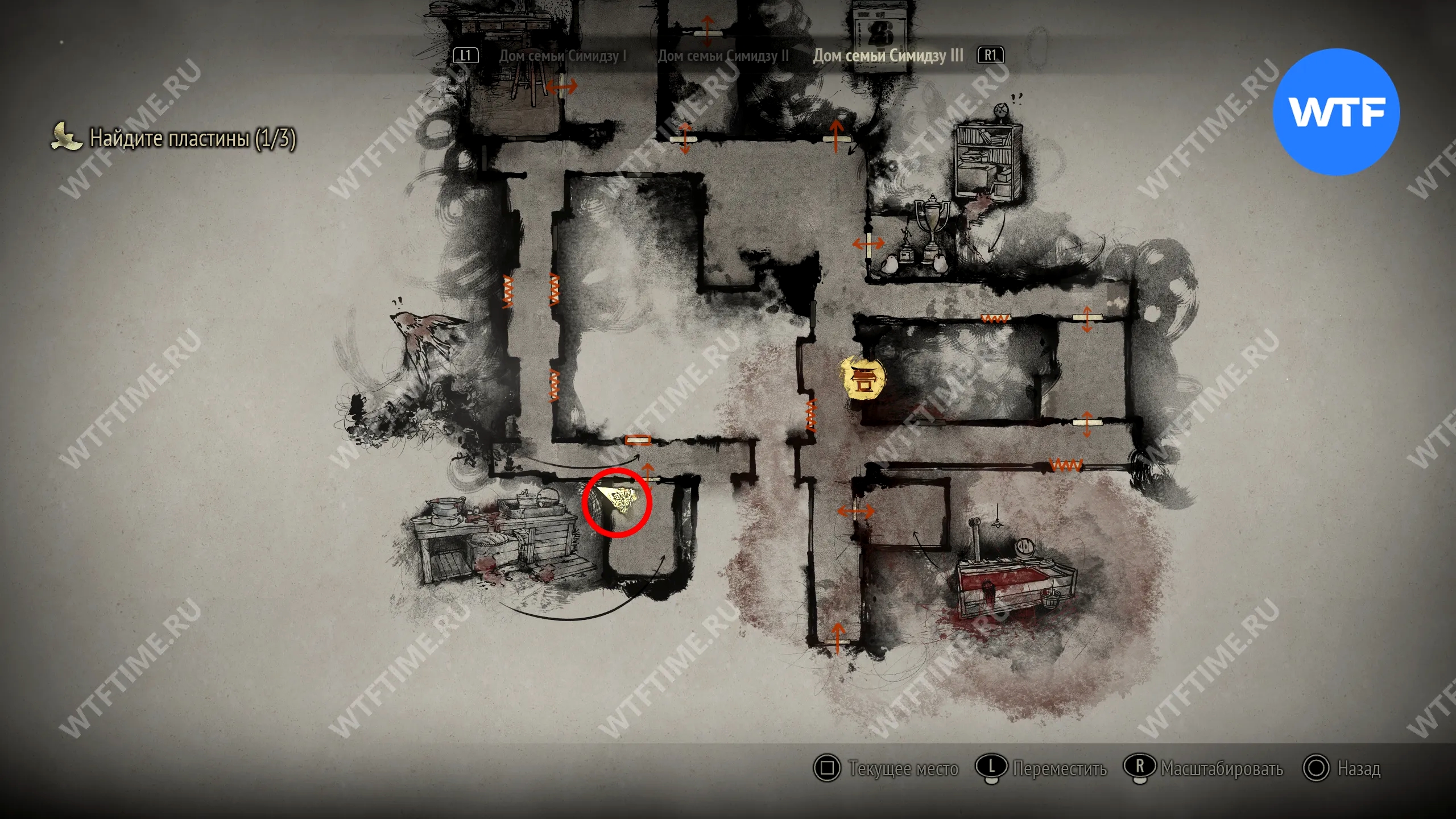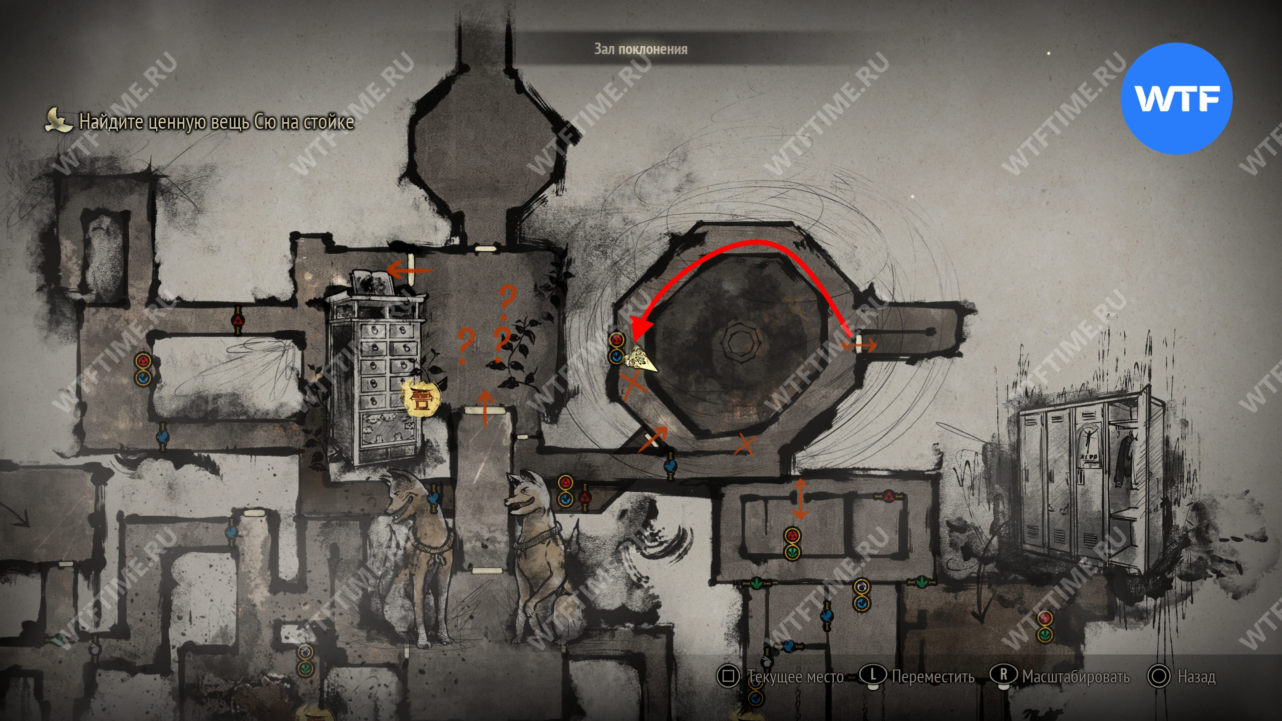 Затем вернитесь обратно на основной путь и идите к святилищу, отмеченному на карте ниже. Если в Главном зале вы решили загадку «Багряная жидкость», здесь появится ванна, наполненная кровью.