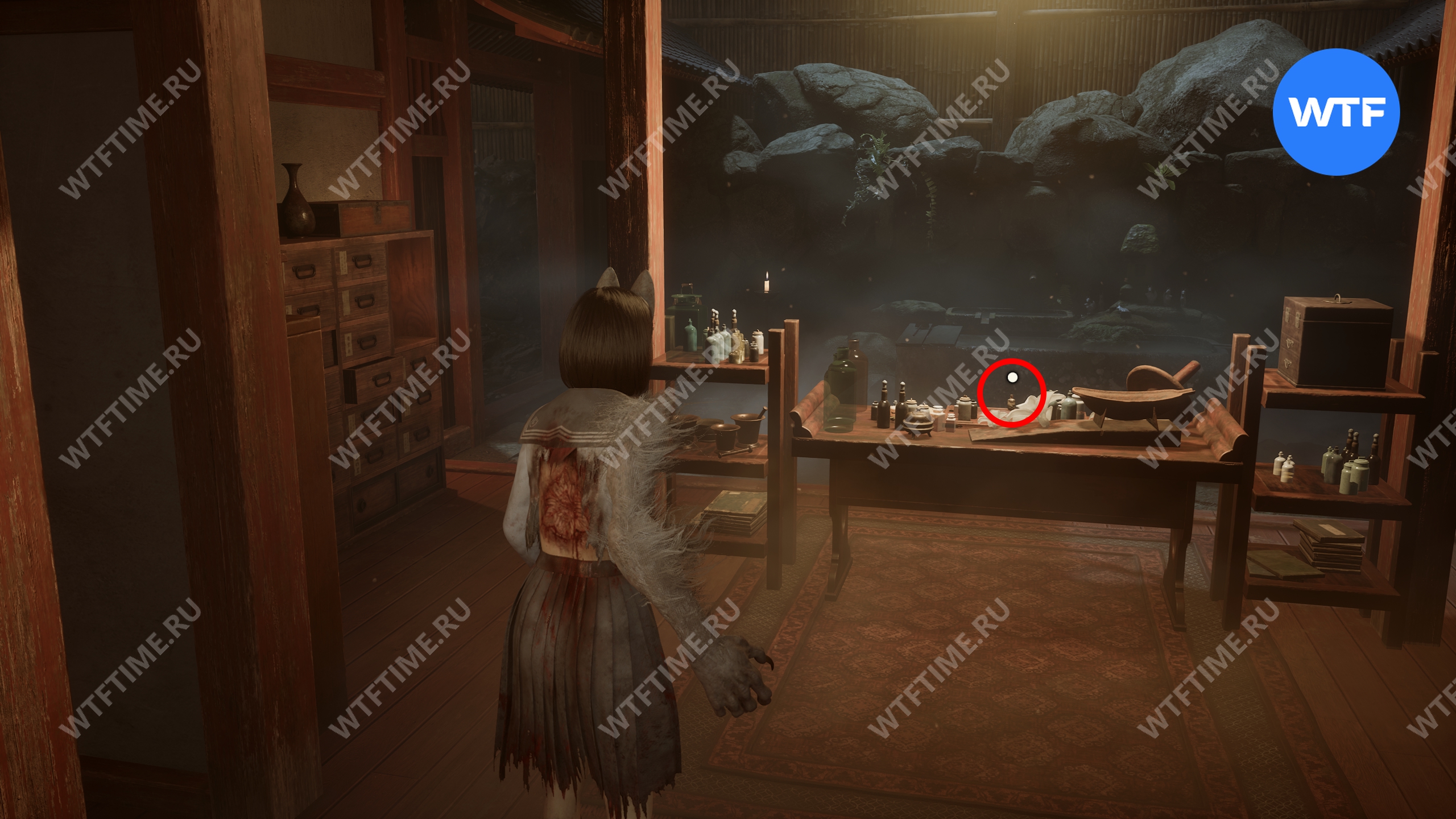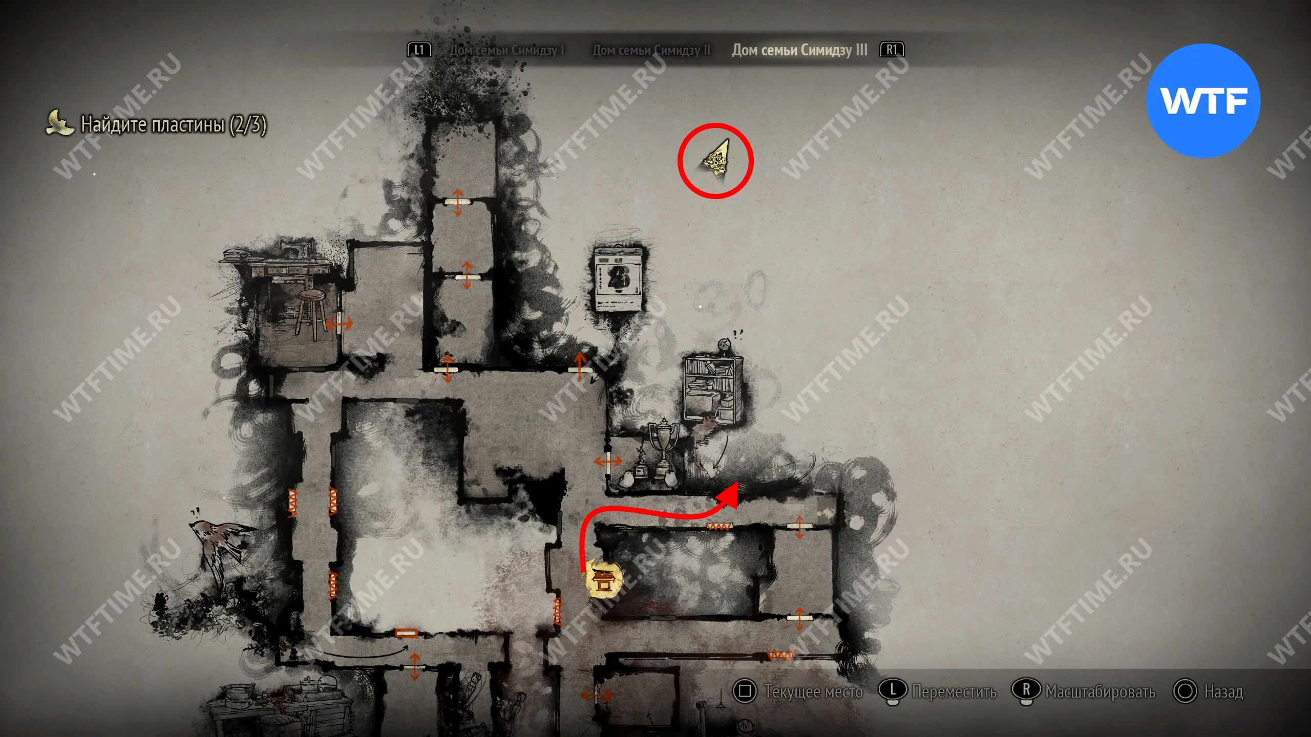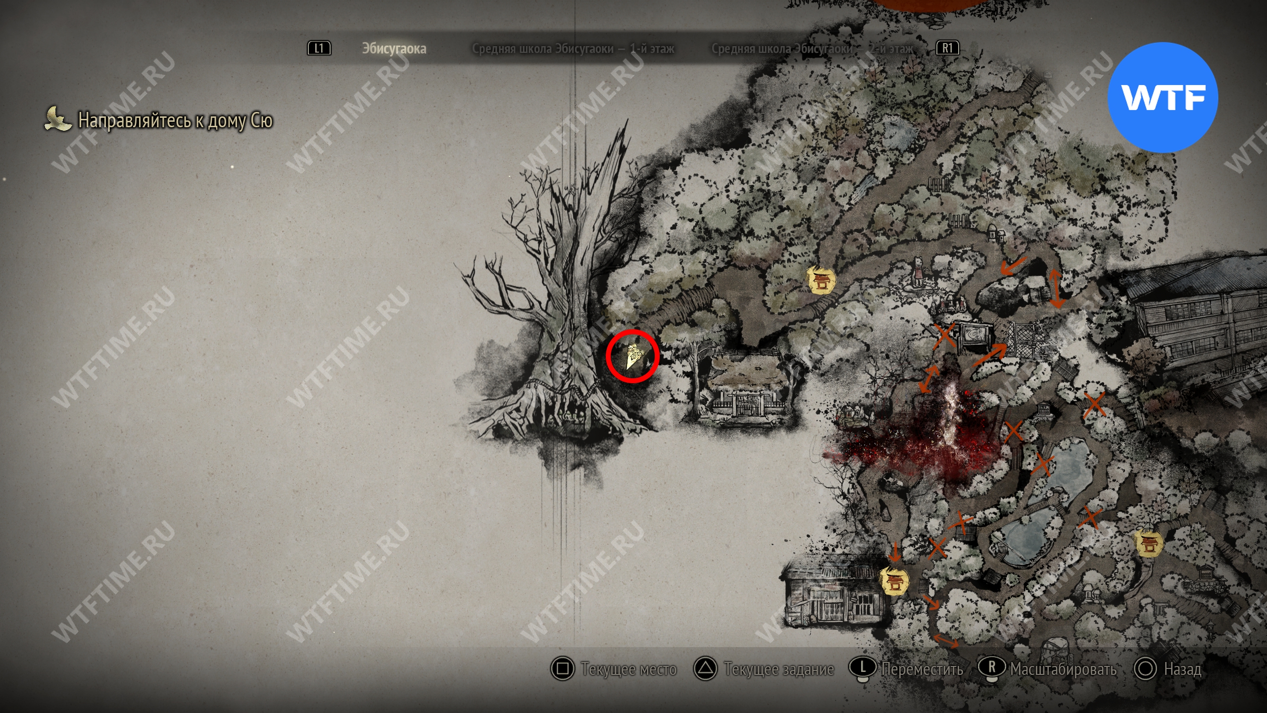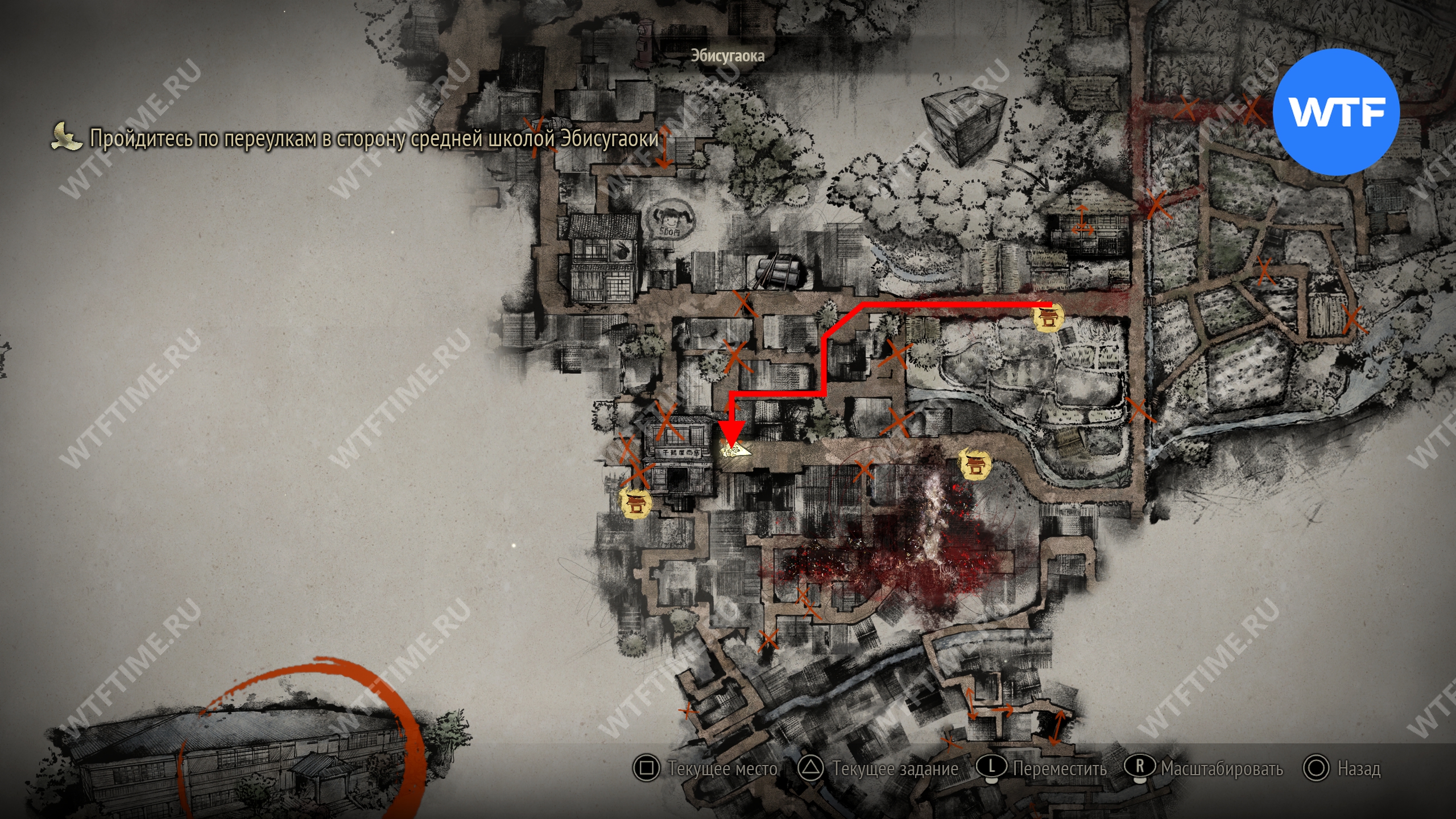 Затем вернитесь обратно на основной путь и идите к святилищу, отмеченному на карте ниже. Если в Главном зале вы решили загадку «Багряная жидкость», здесь появится ванна, наполненная кровью.