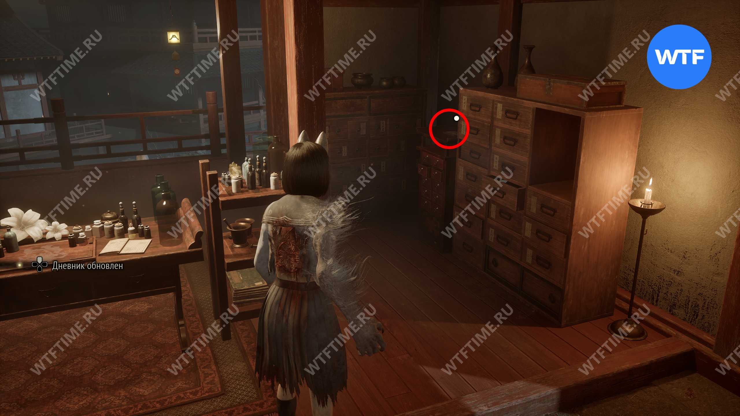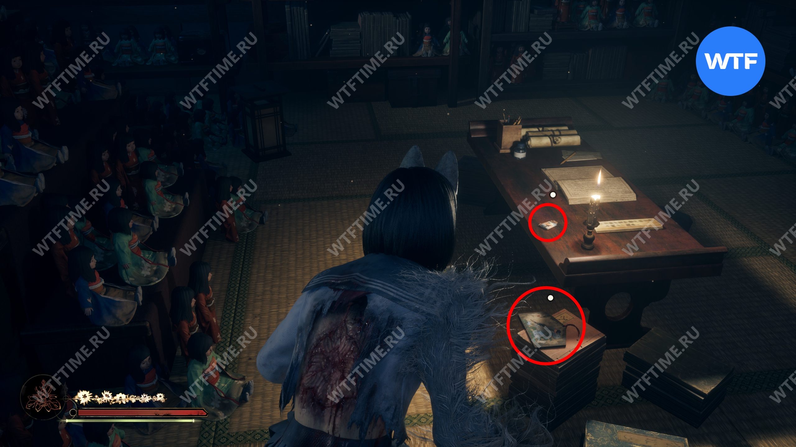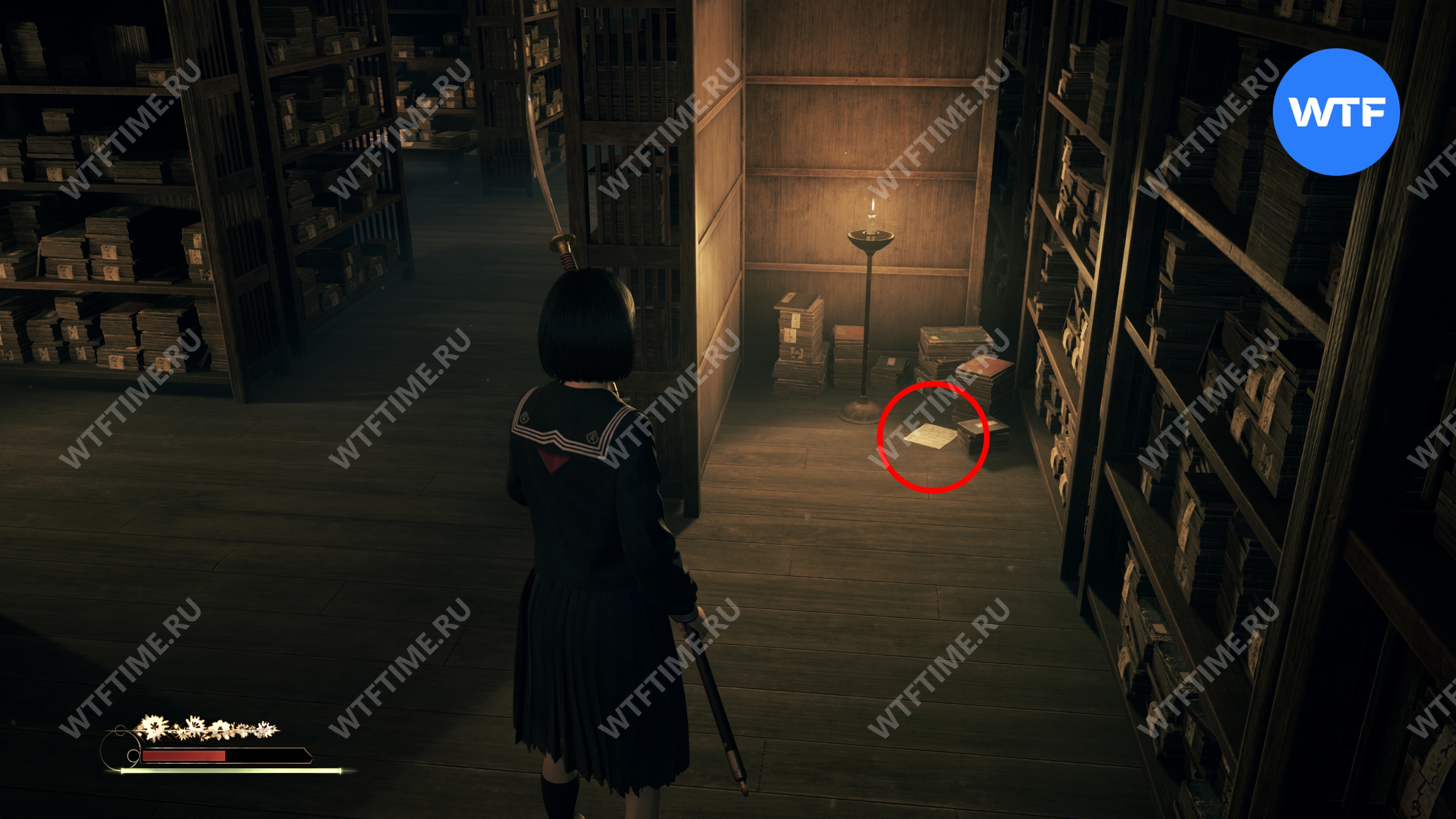 В Зале поклонения вам нужно дособрать несколько документов. В западной секции, посвященной Ринко, идите в комнату, где вы получаете первый герб. Дневник Ринко можно найти на полке слева от входа ДО использования лампы.